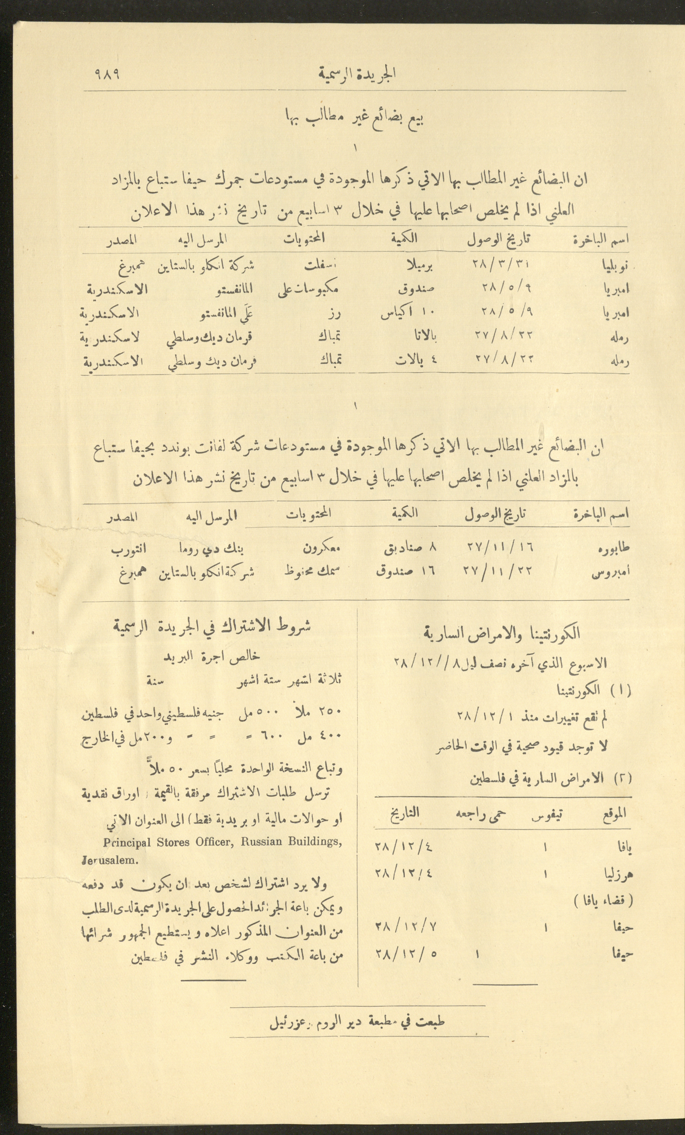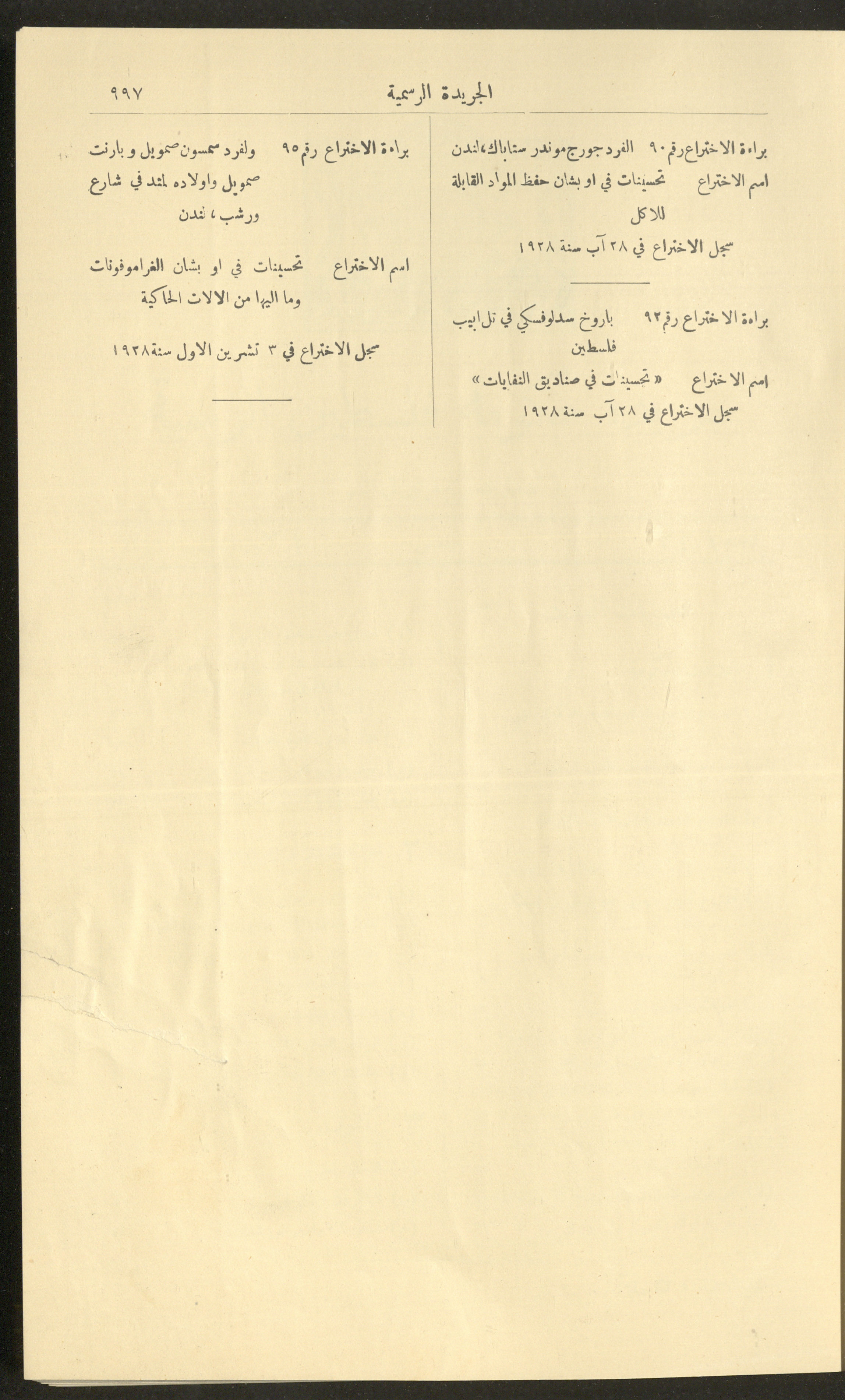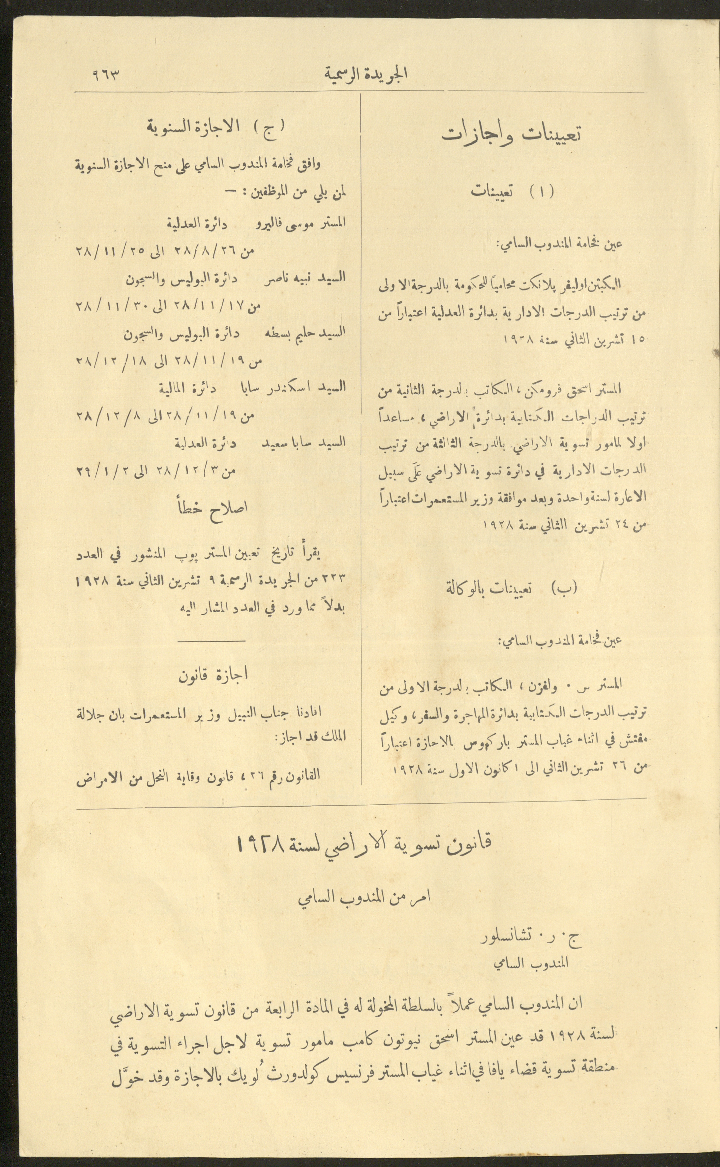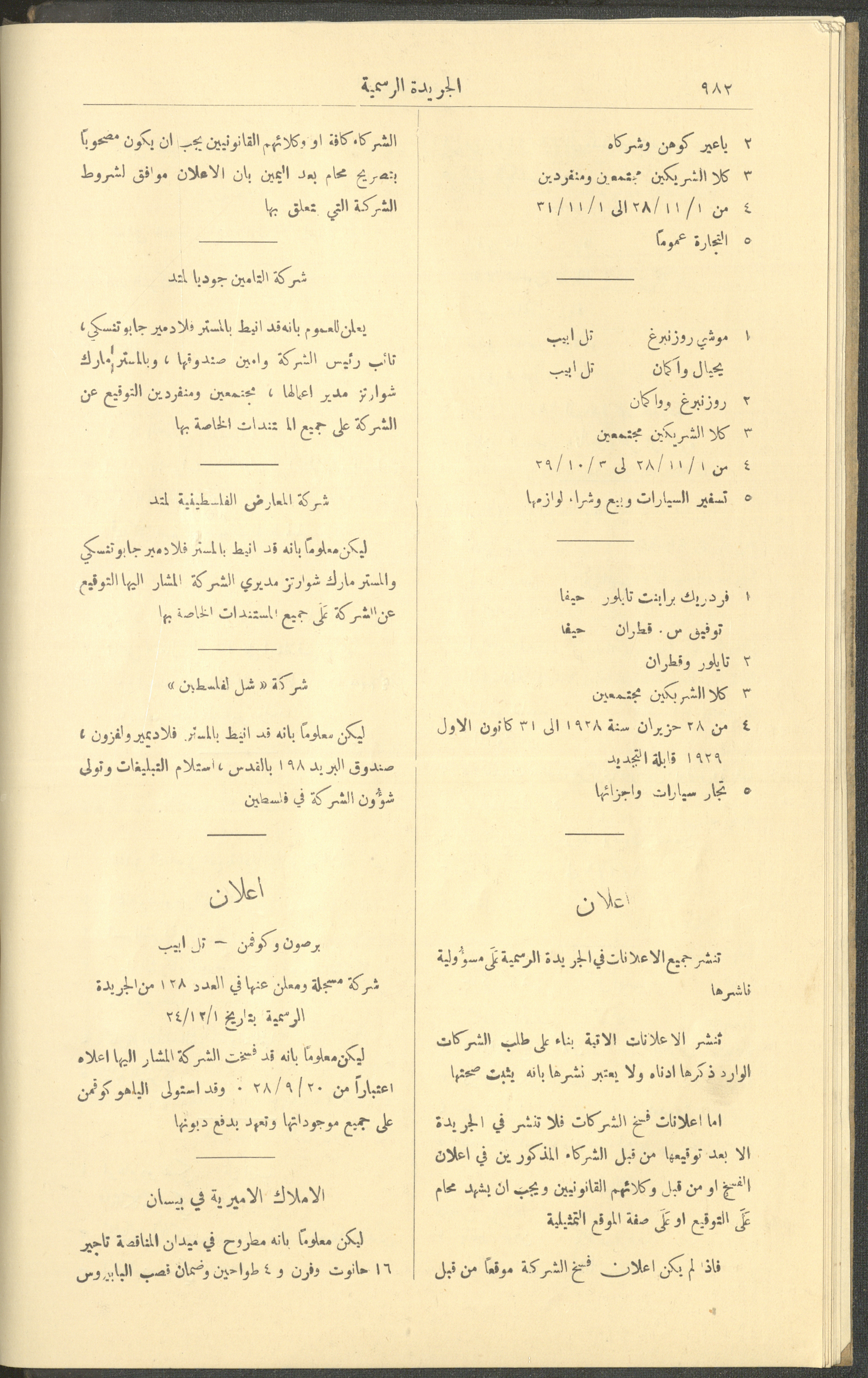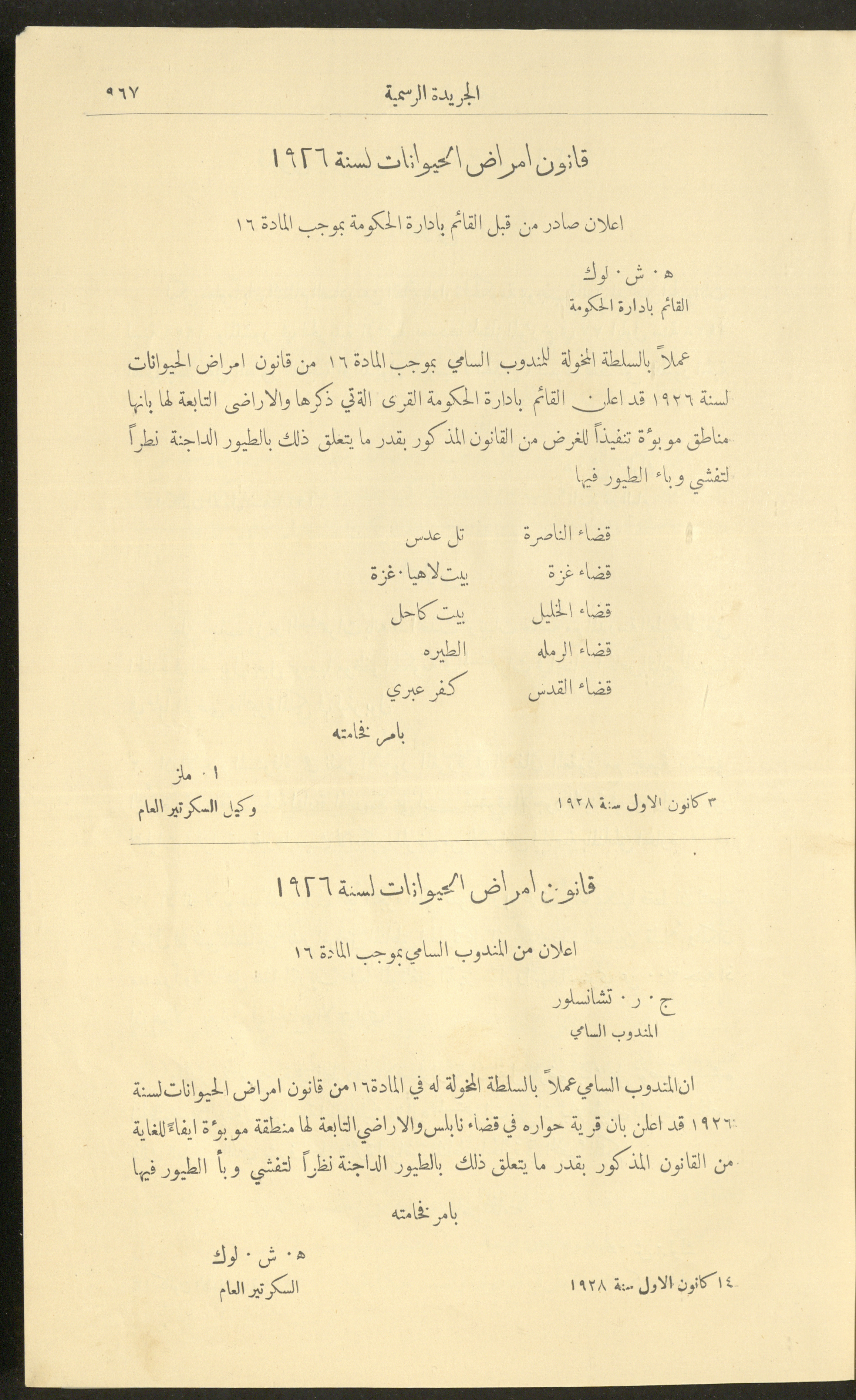 العدد 225 من جريدة فلسطين الرسمية، 16 كانون الأول 1928