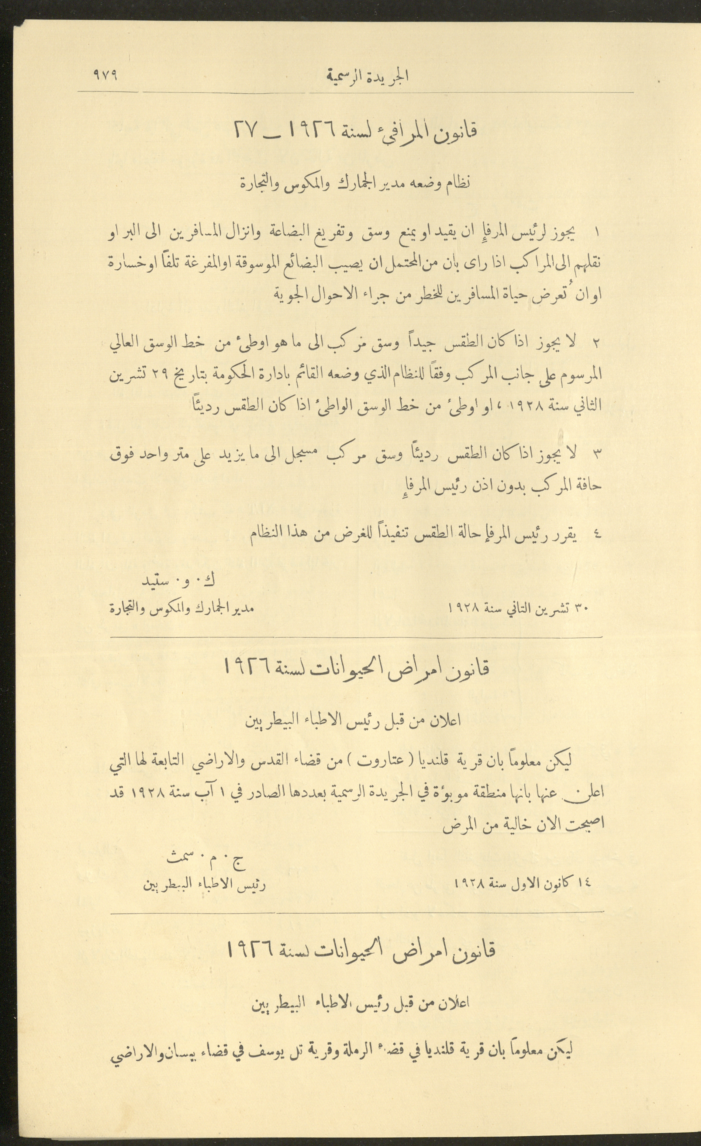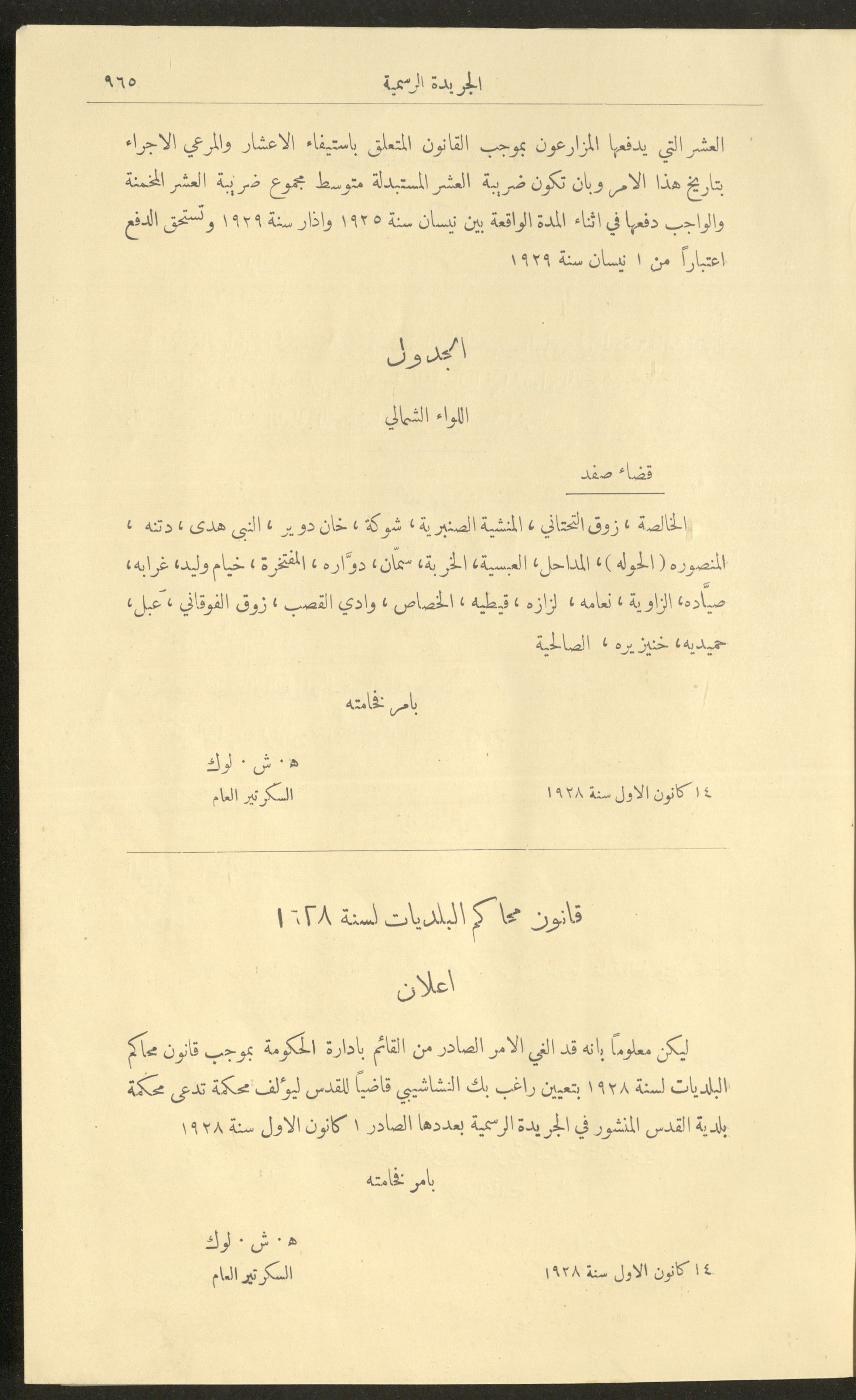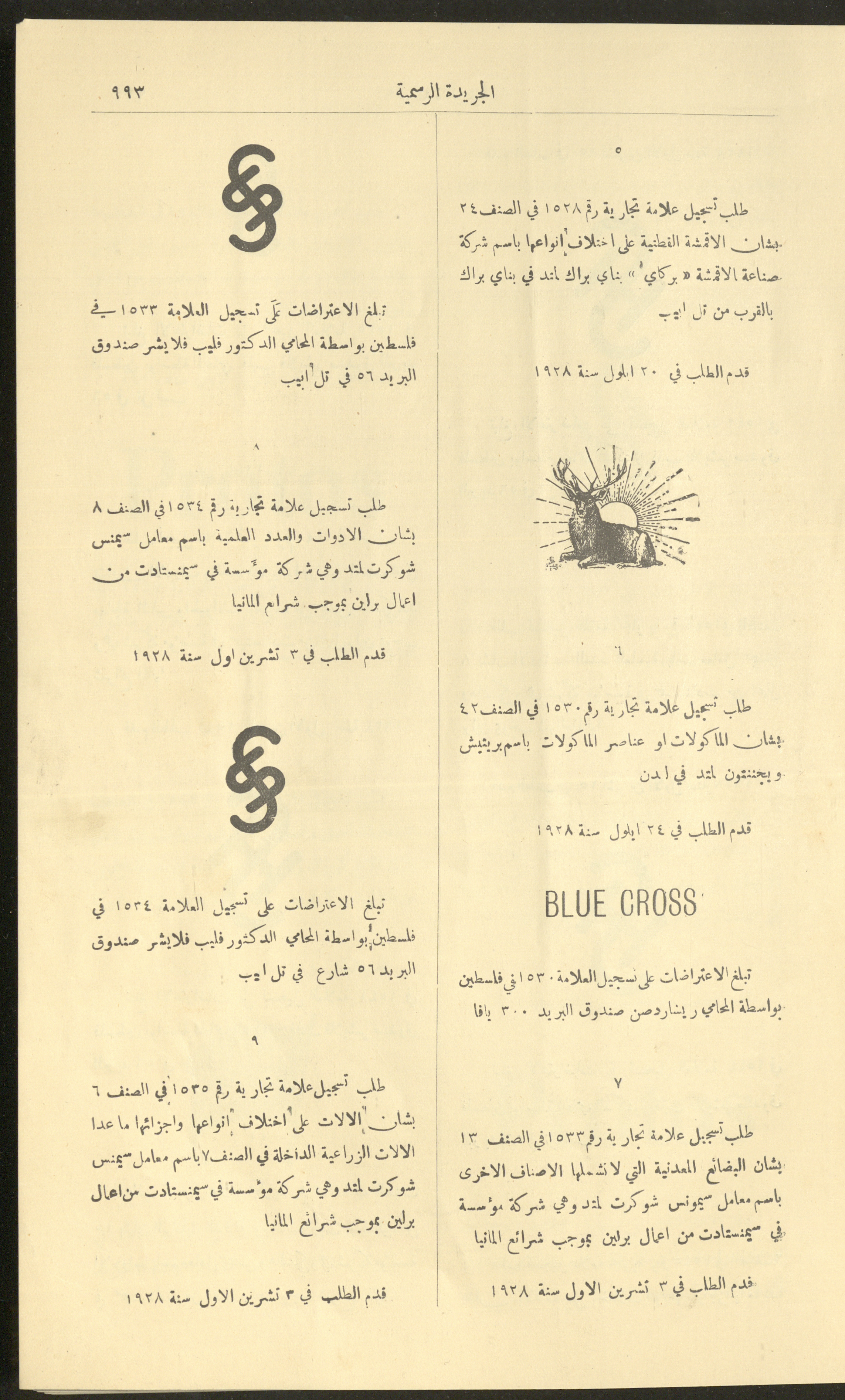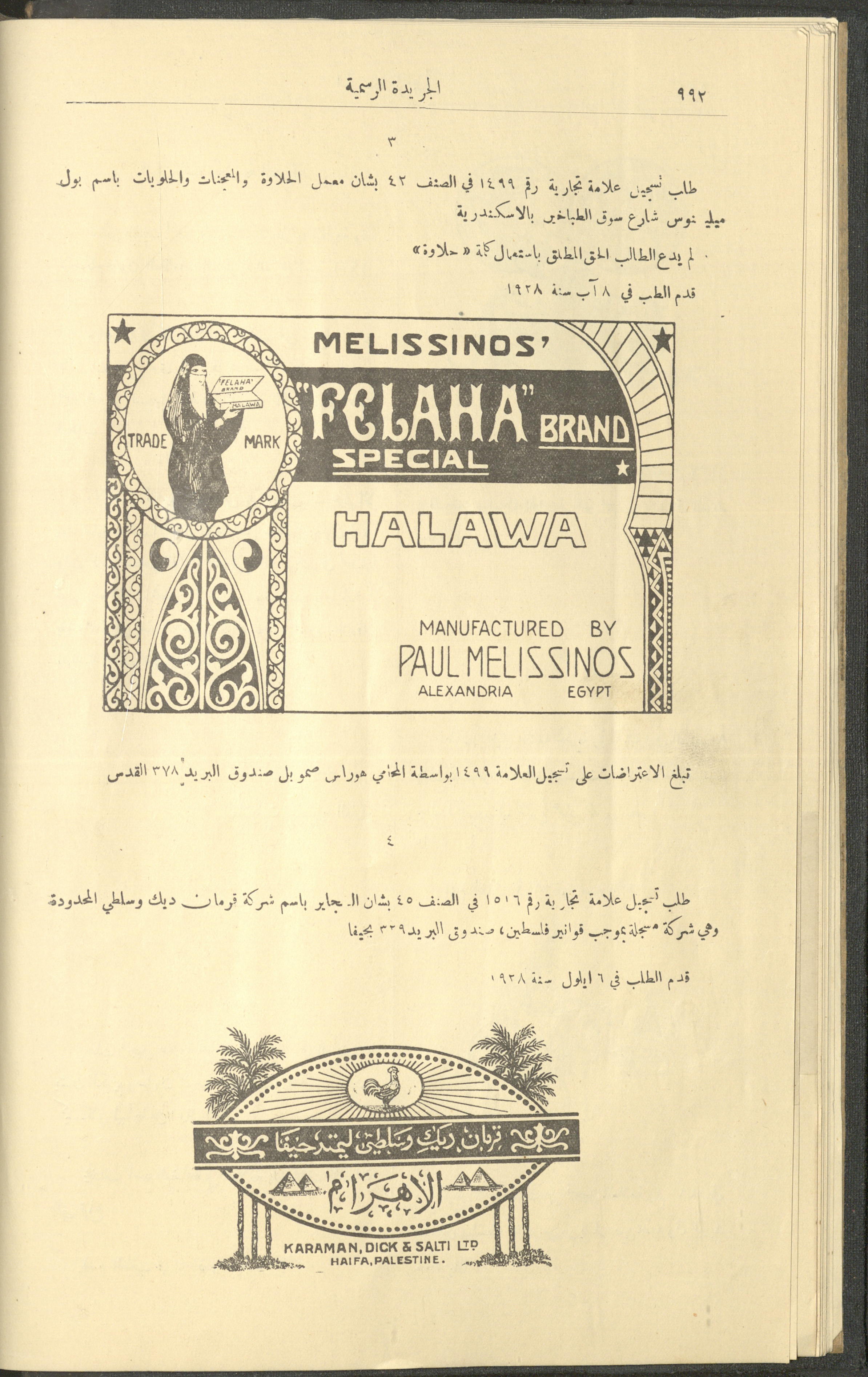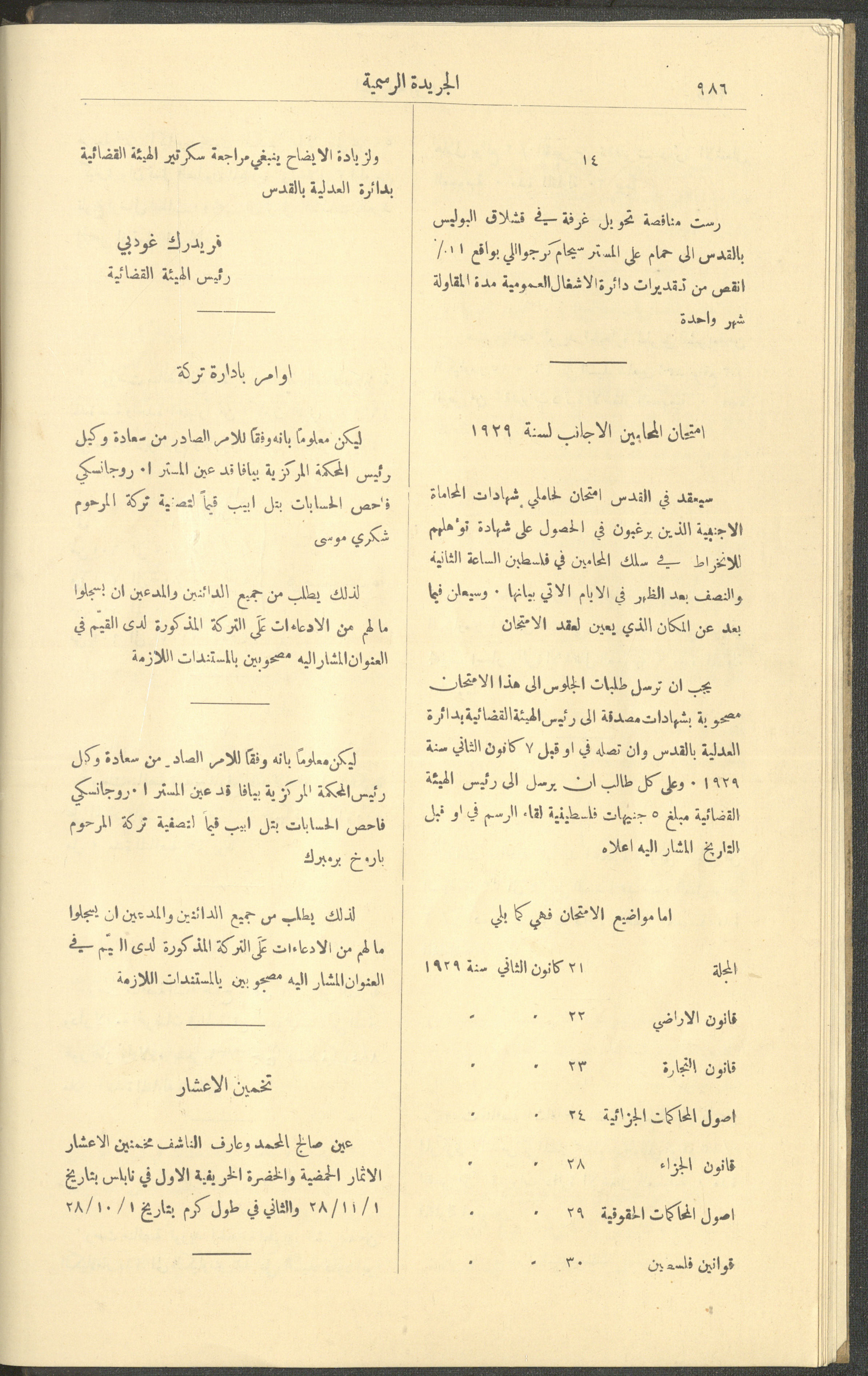 العدد 225 من جريدة فلسطين الرسمية، 16 كانون الأول 1928