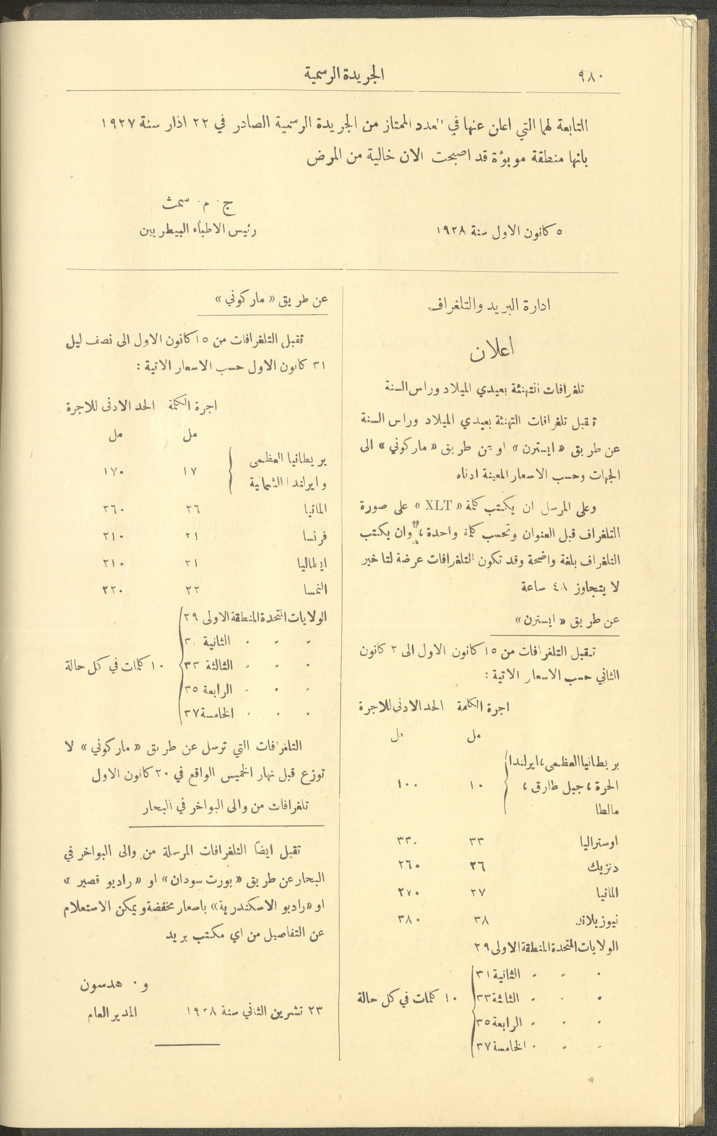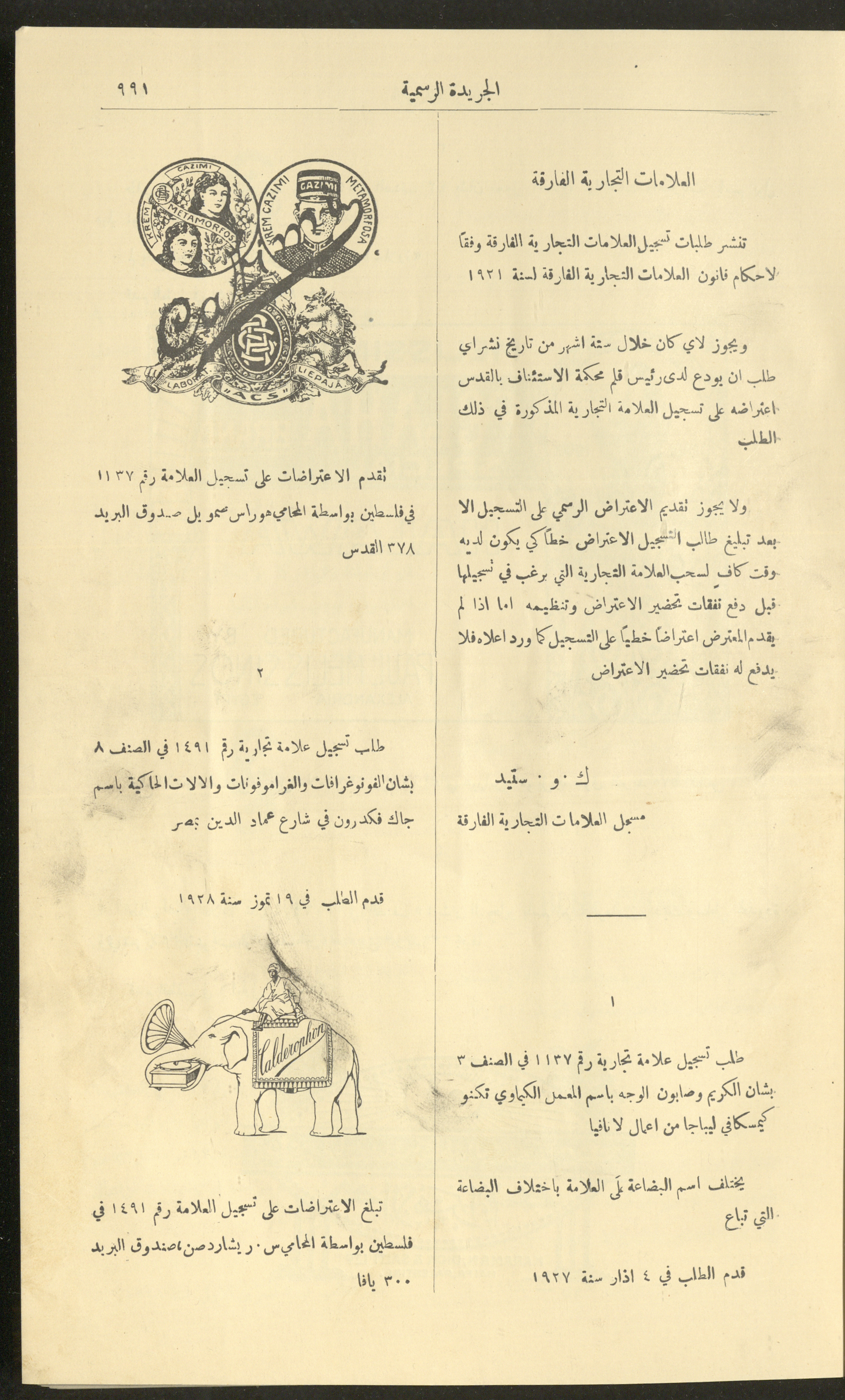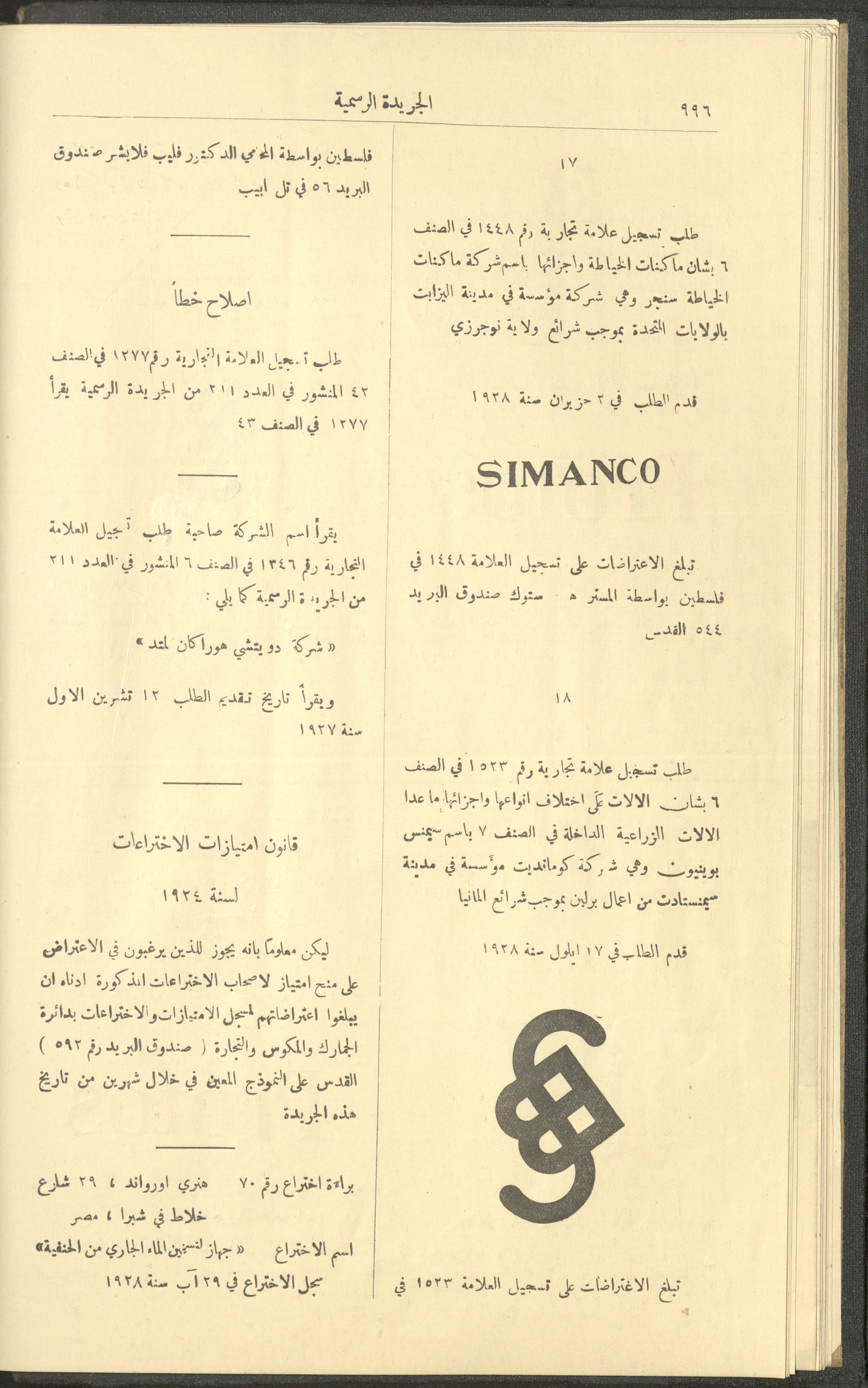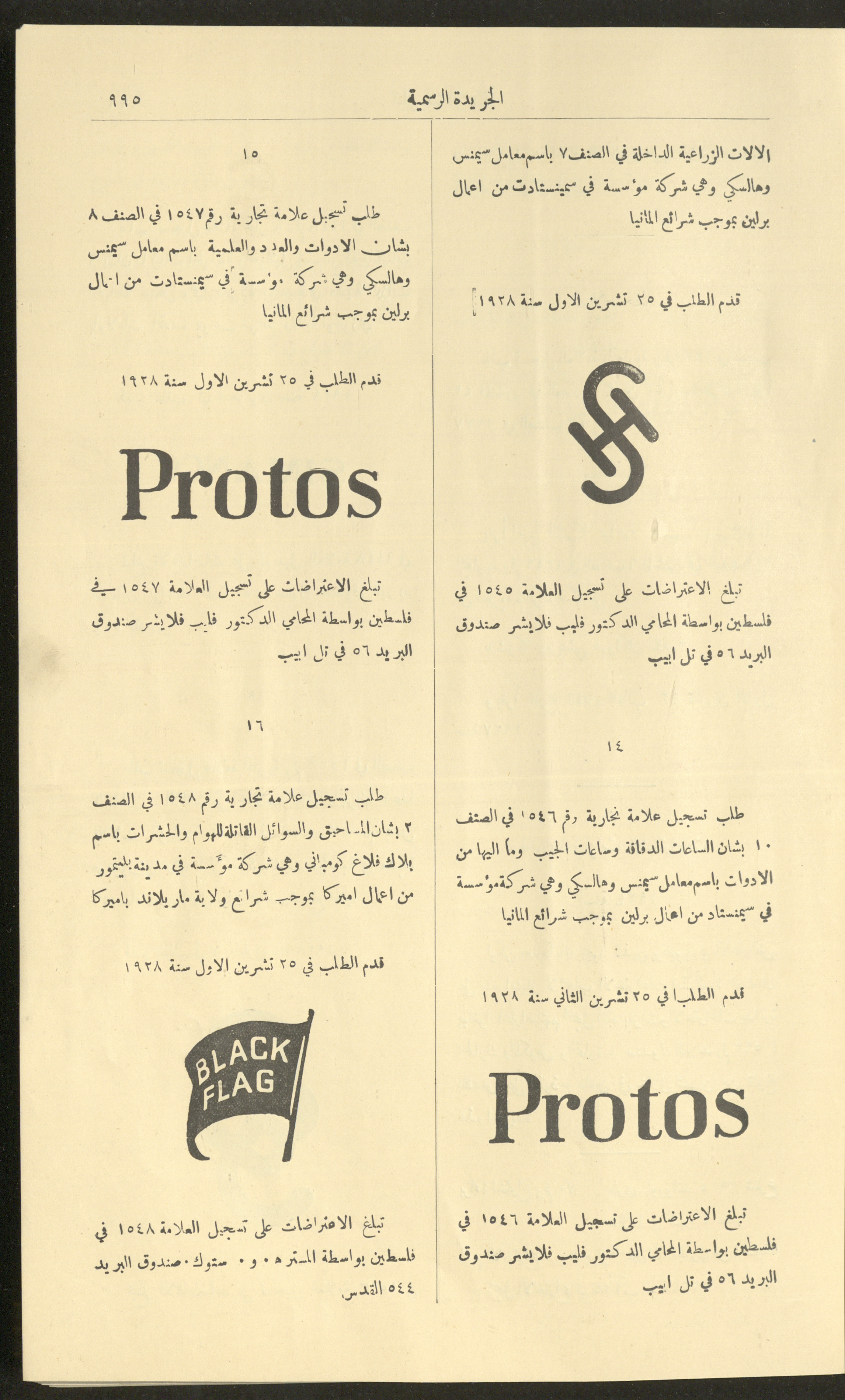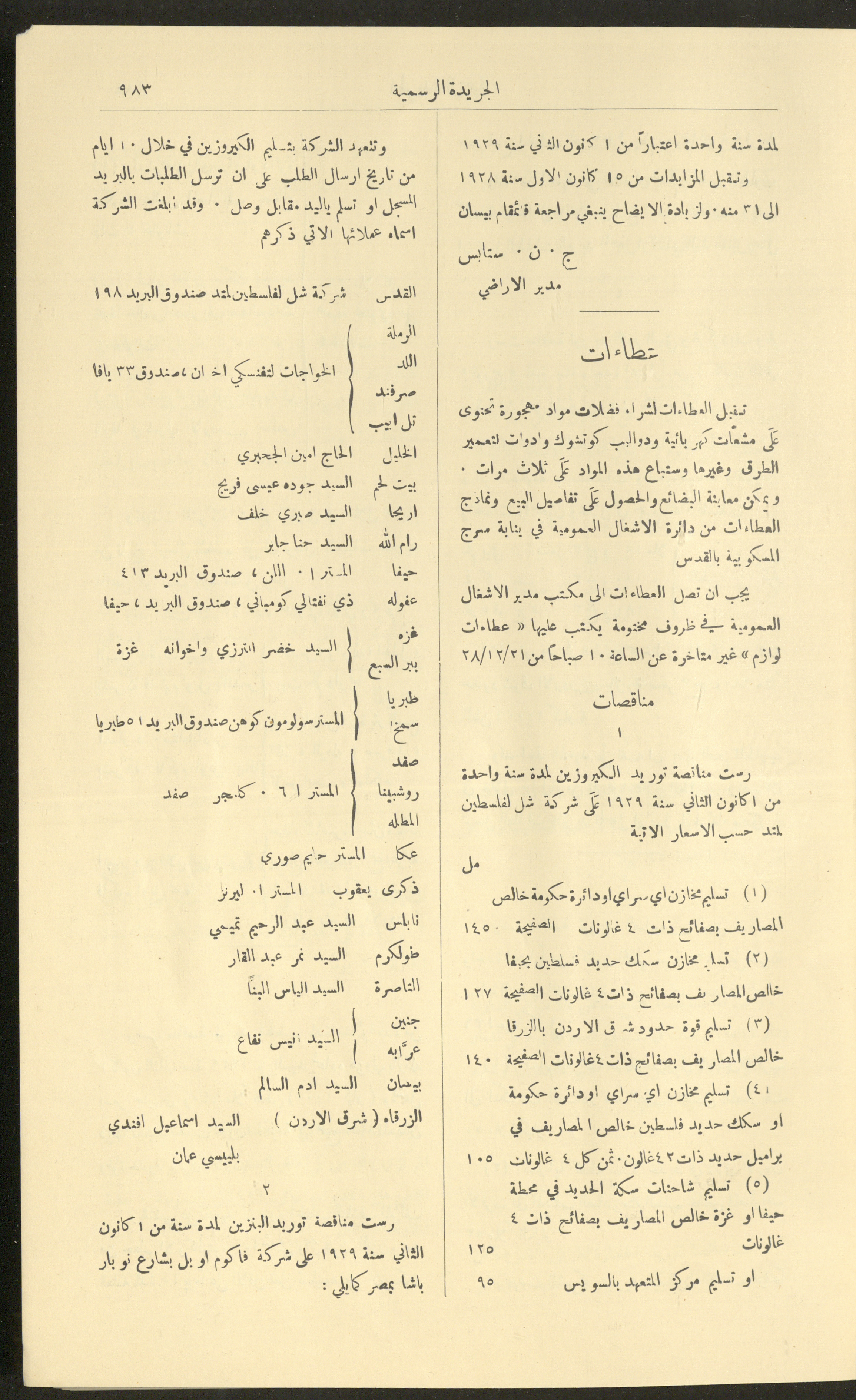 العدد 225 من جريدة فلسطين الرسمية، 16 كانون الأول 1928