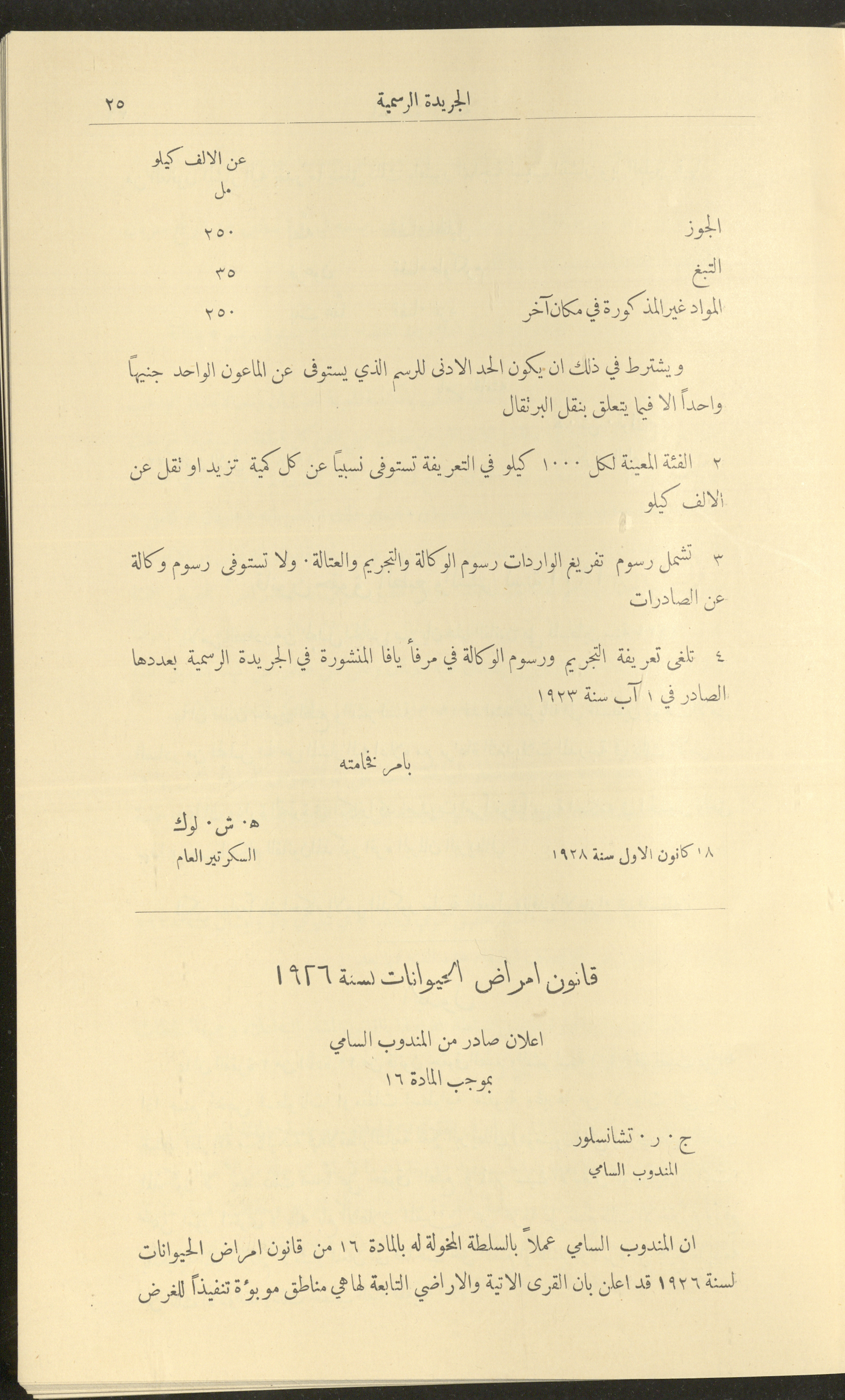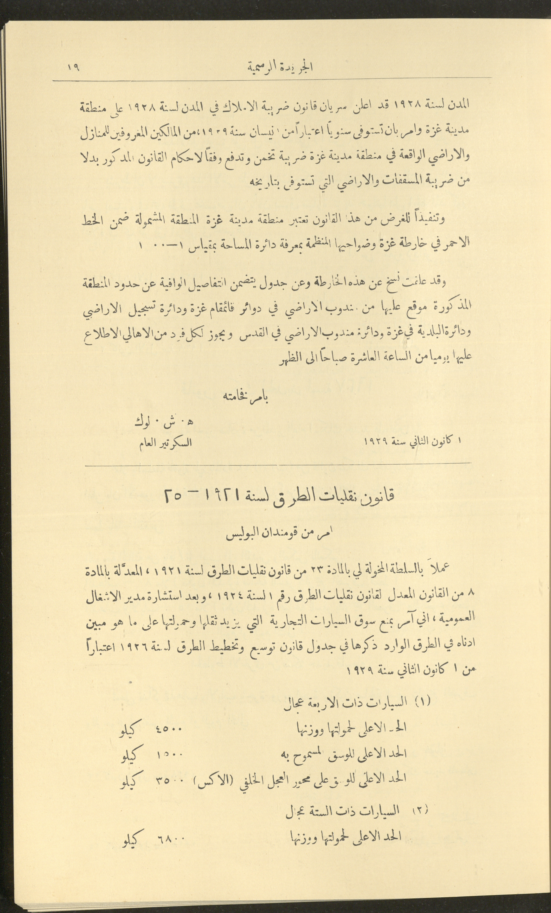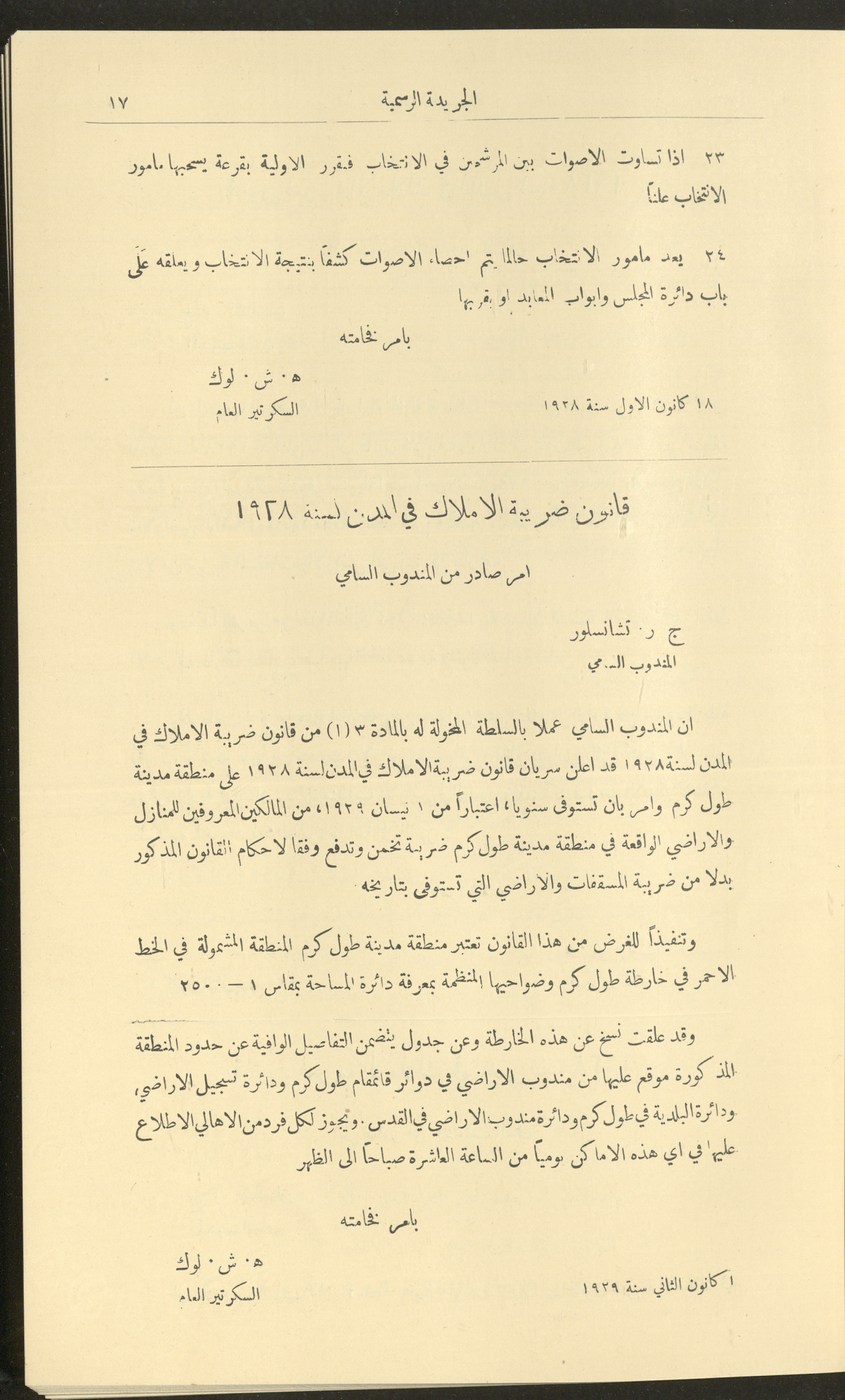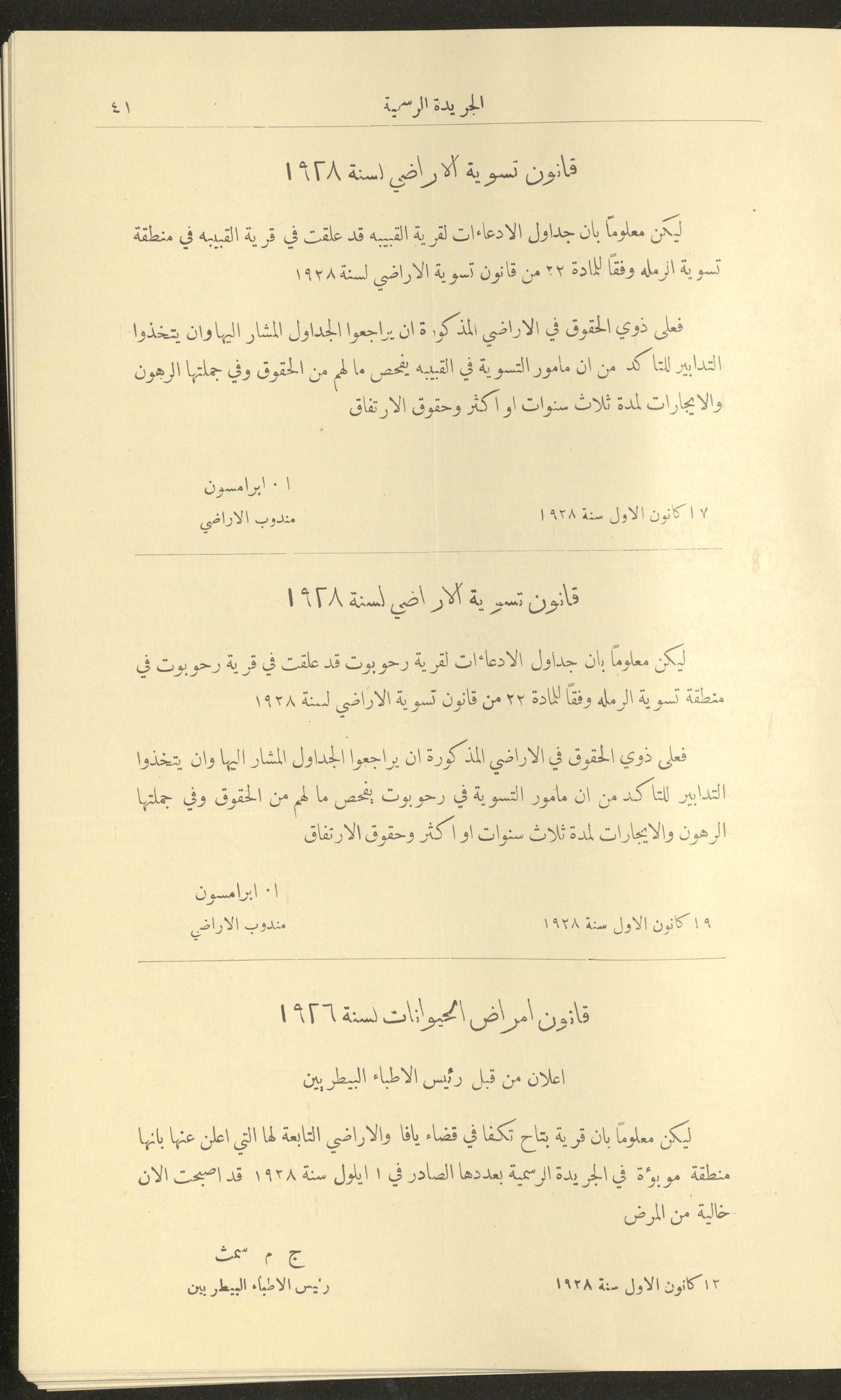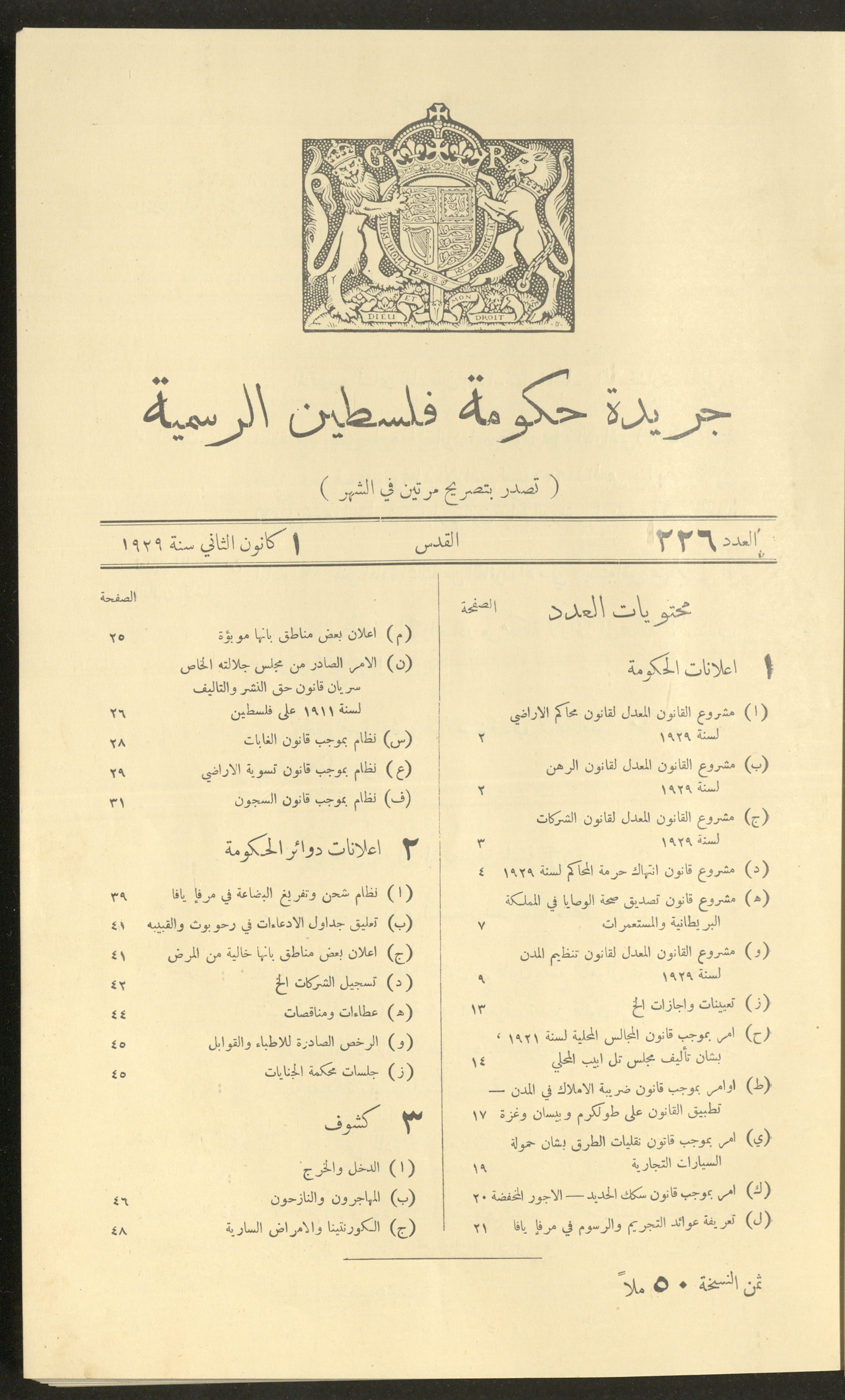 Issue No. 226 of the Official Palestine Newspaper, 1 January 1929