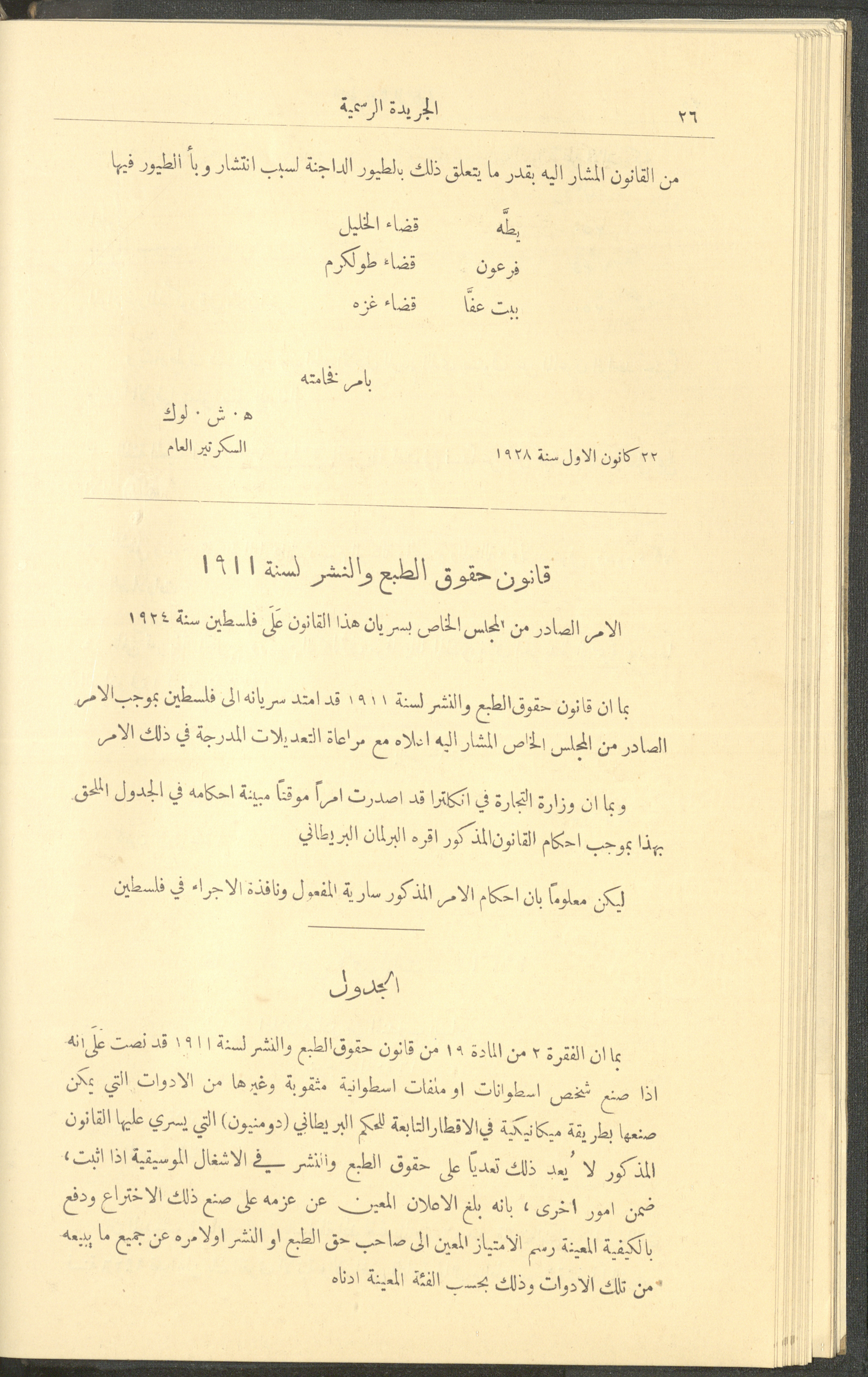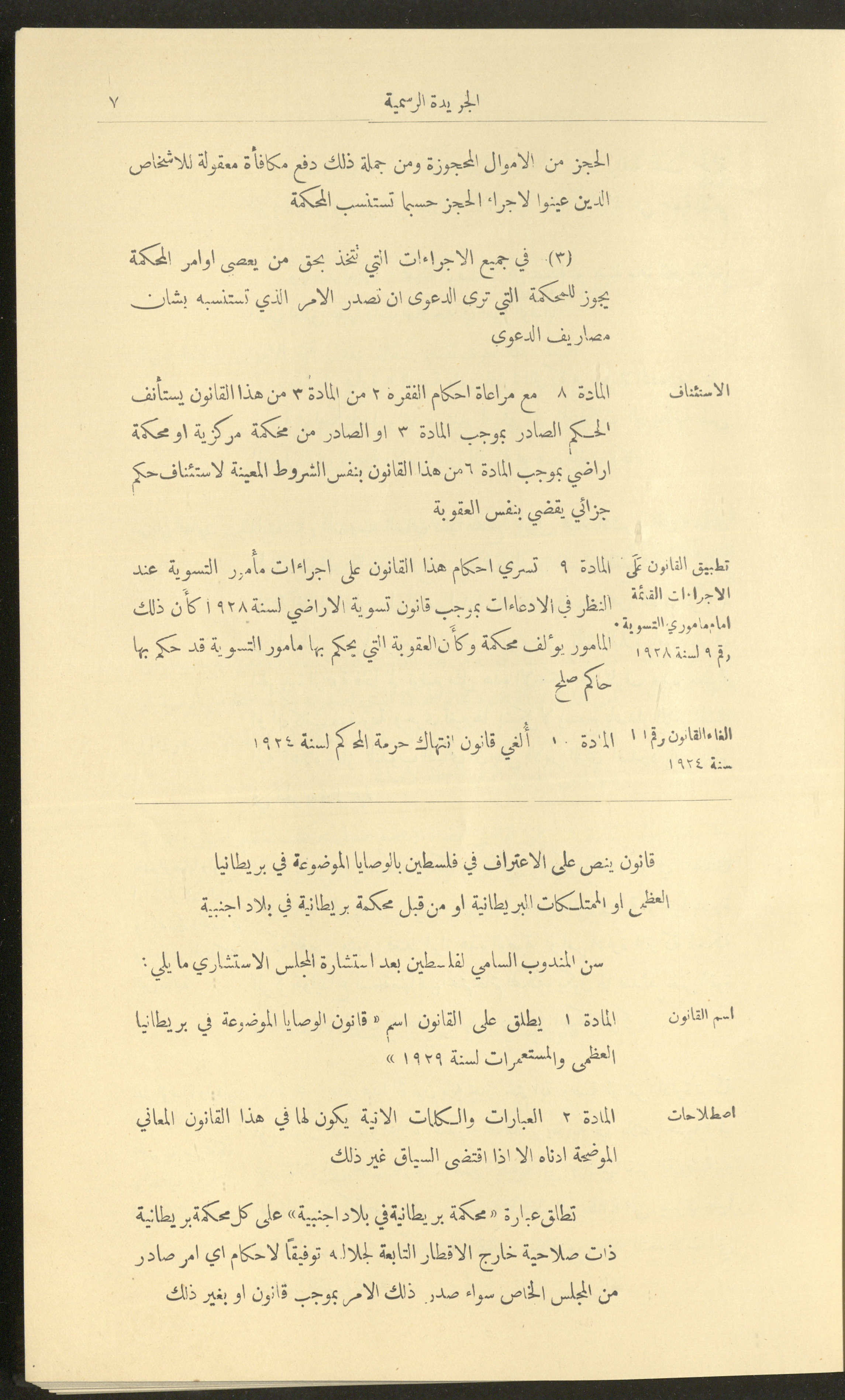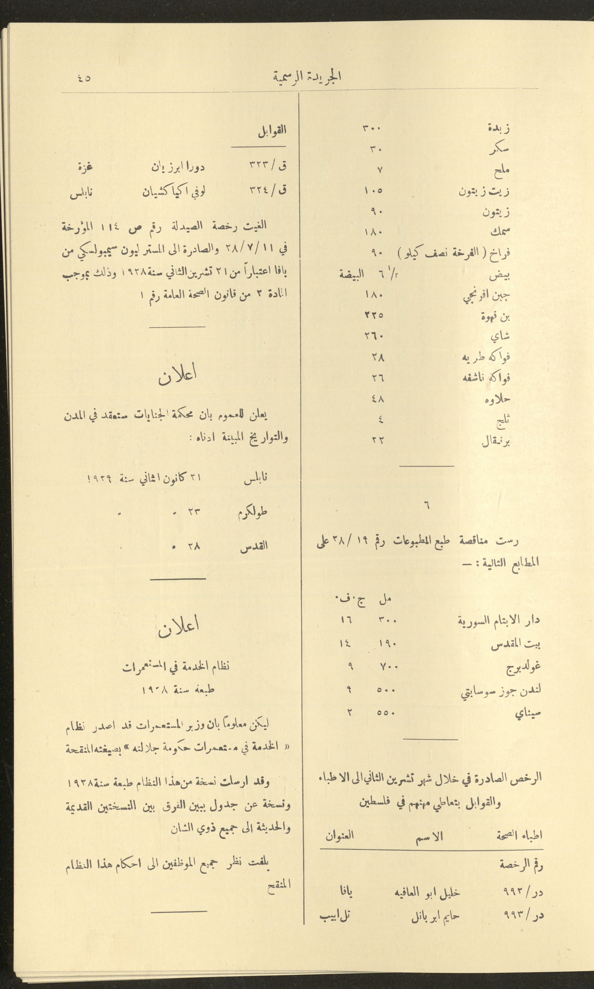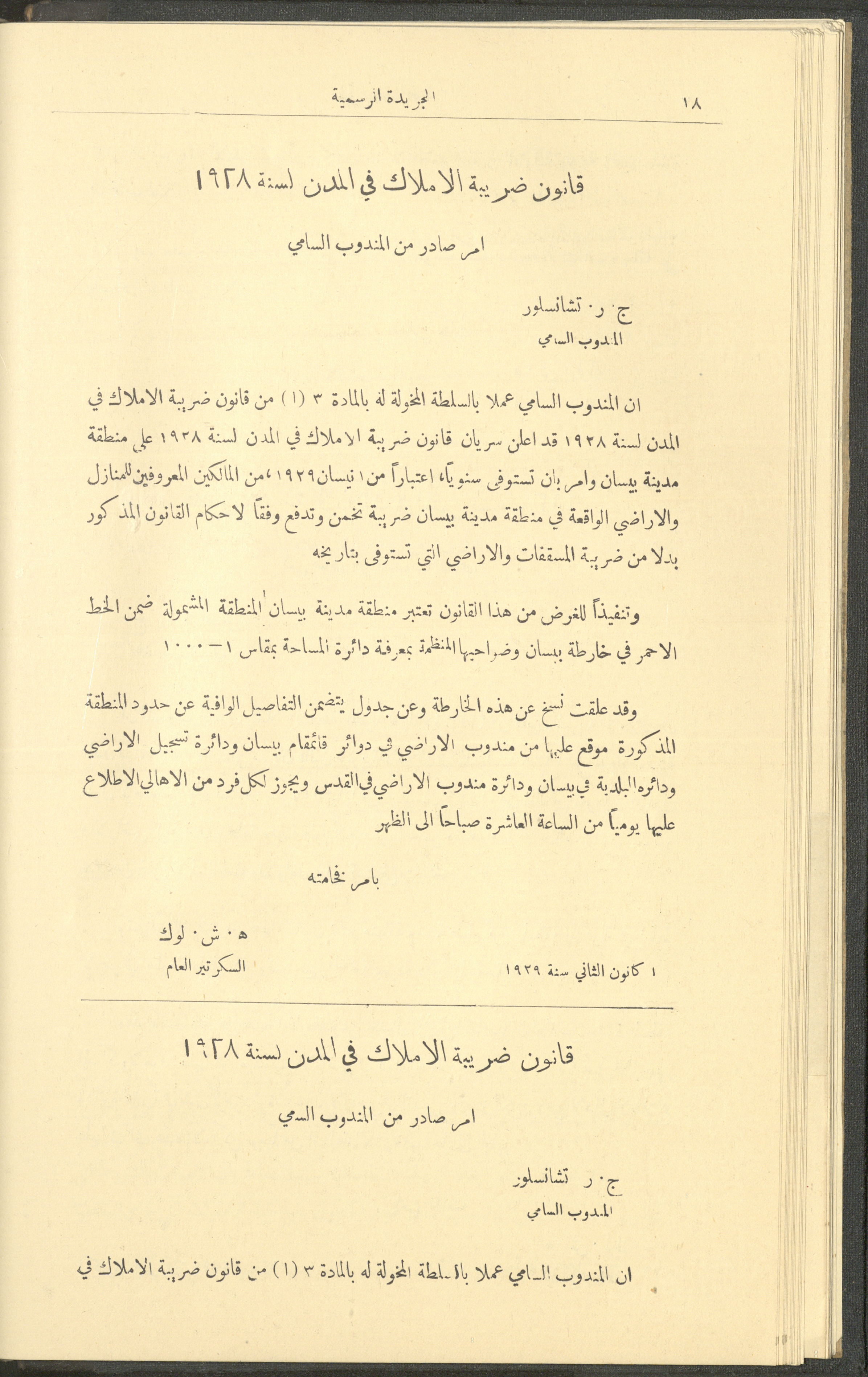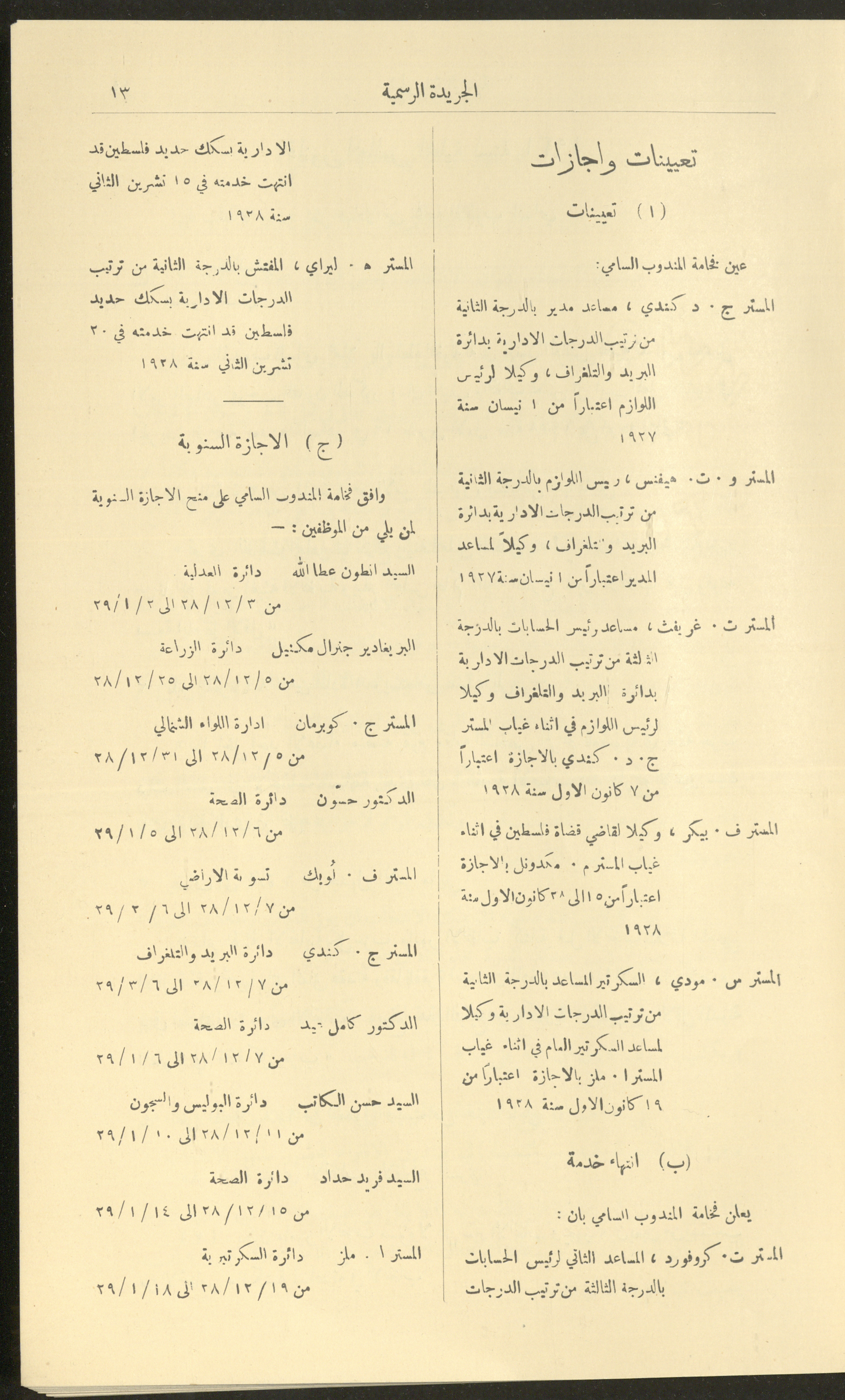 Issue No. 226 of the Official Palestine Newspaper, 1 January 1929