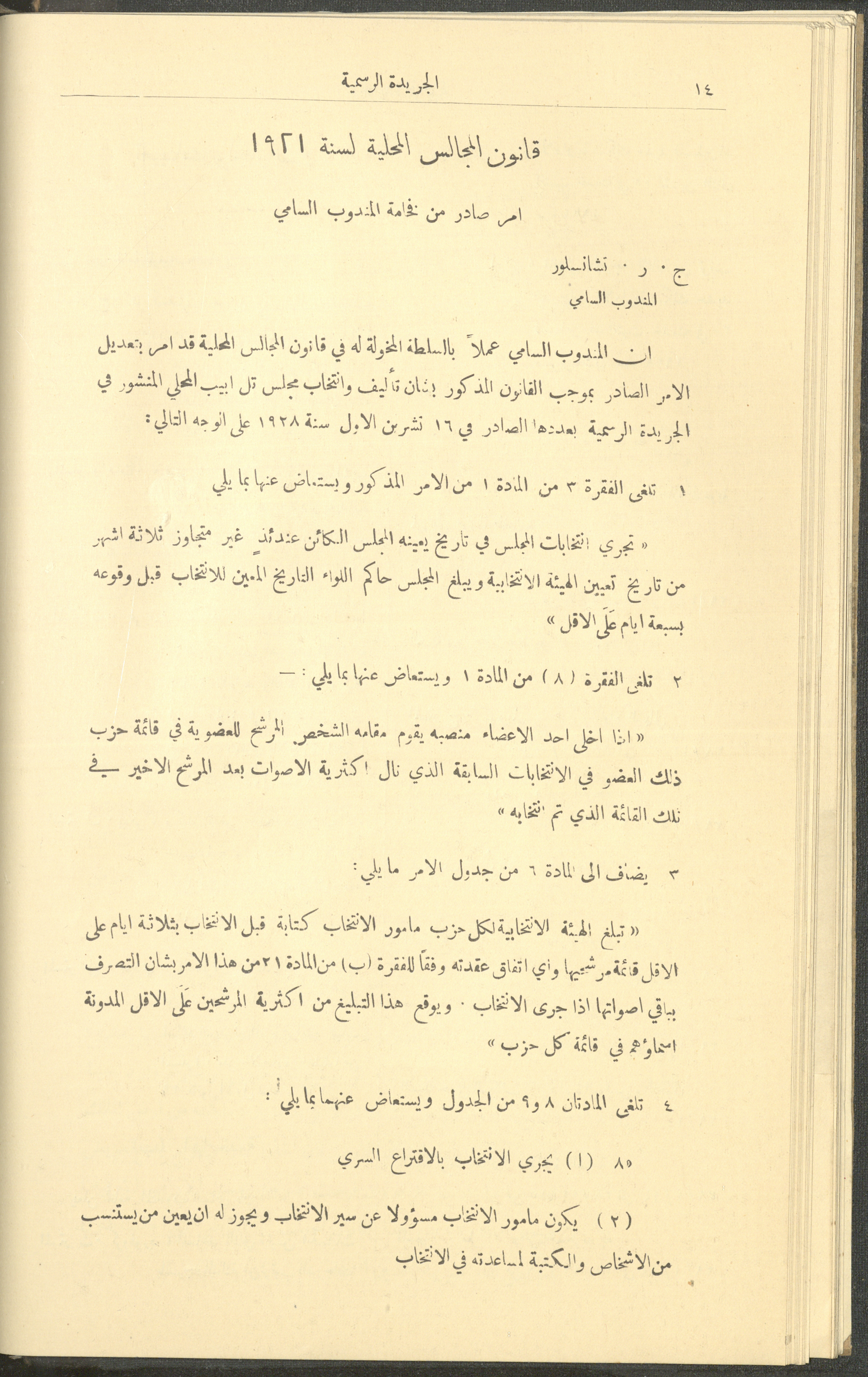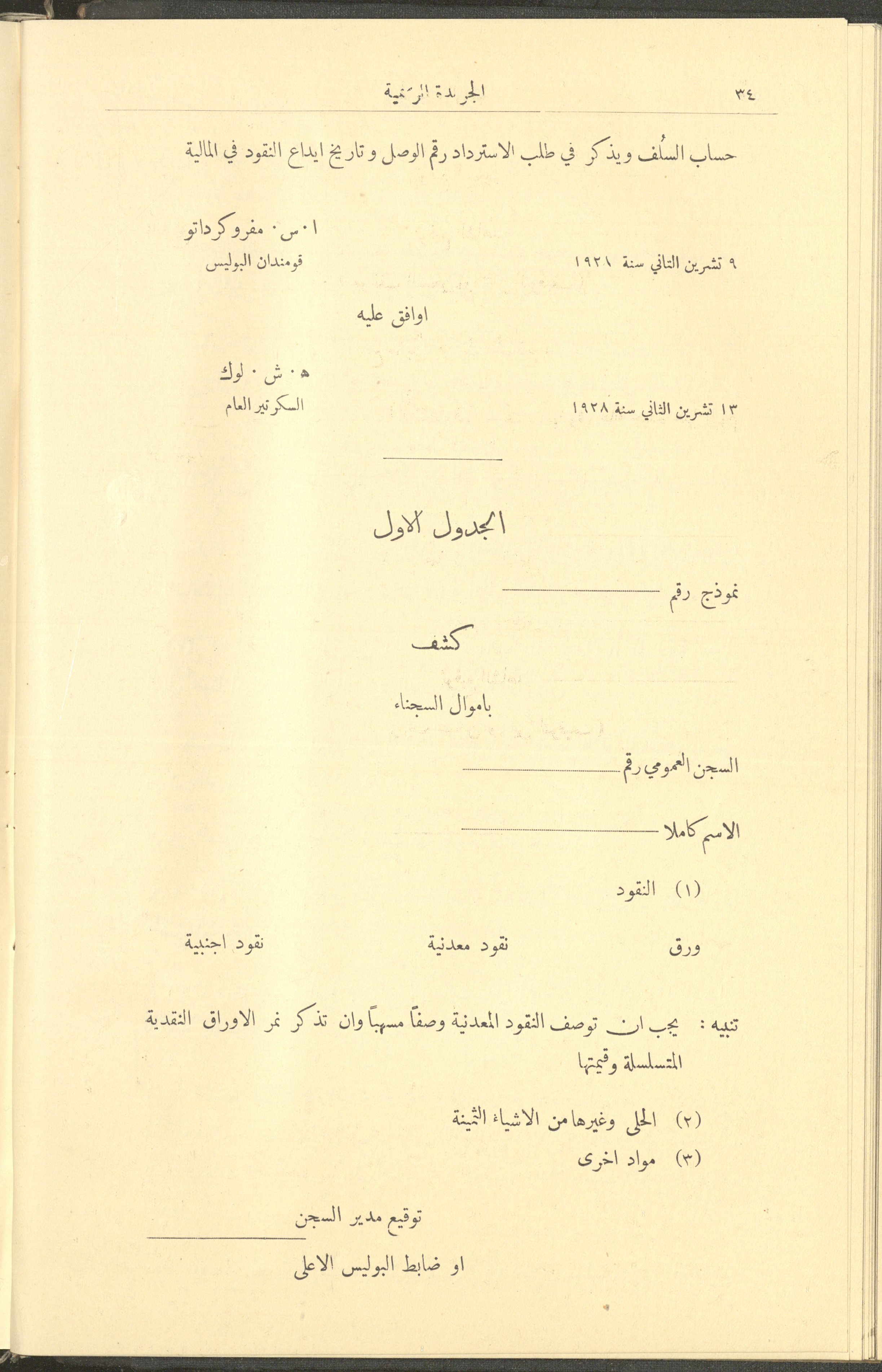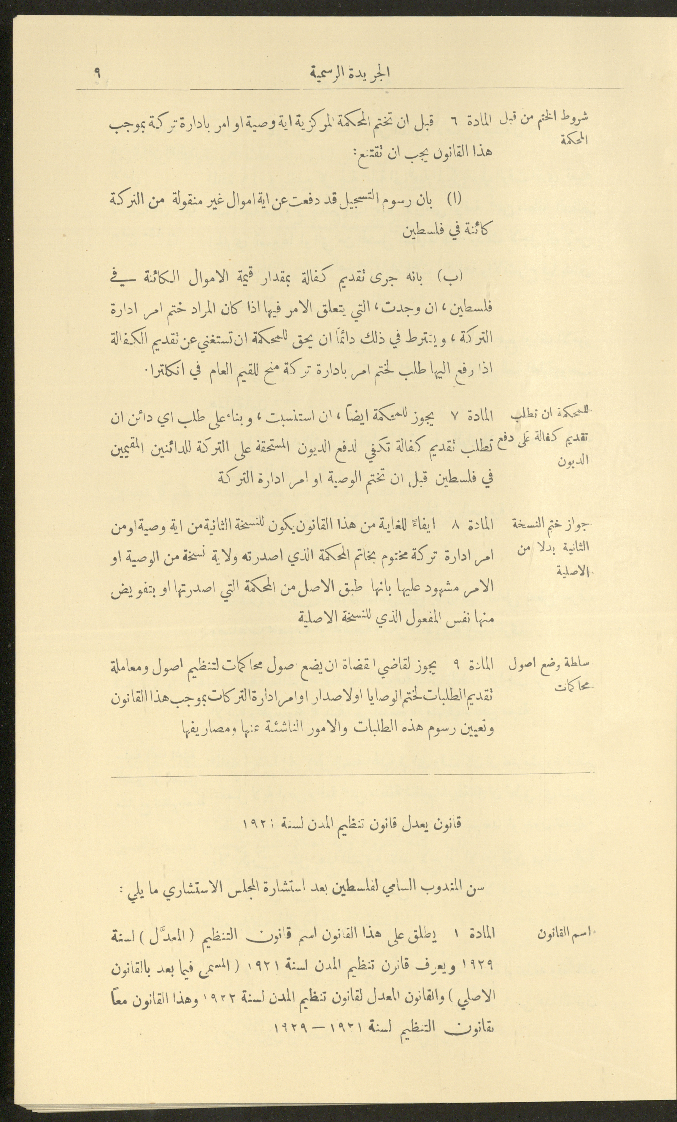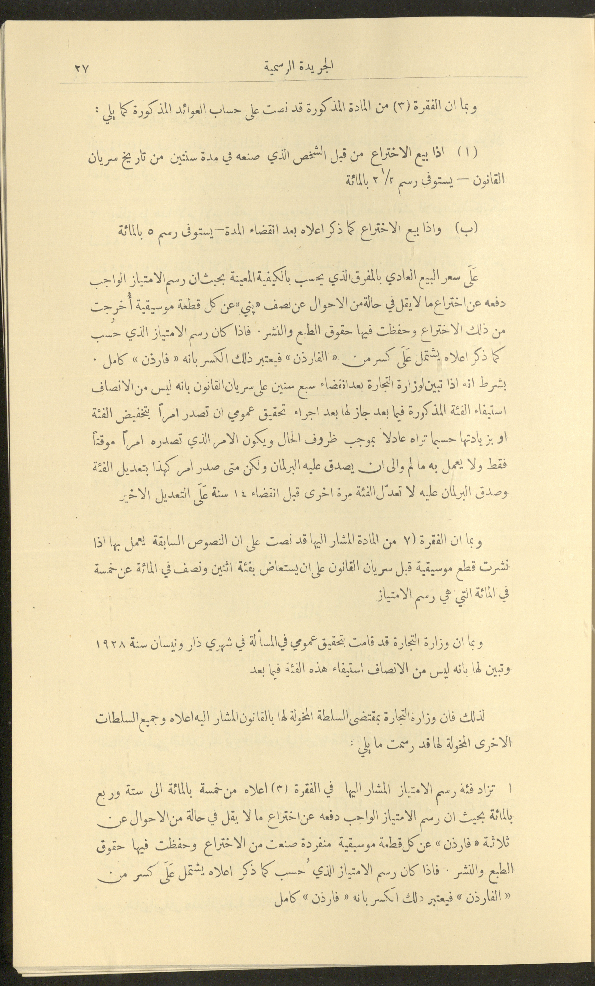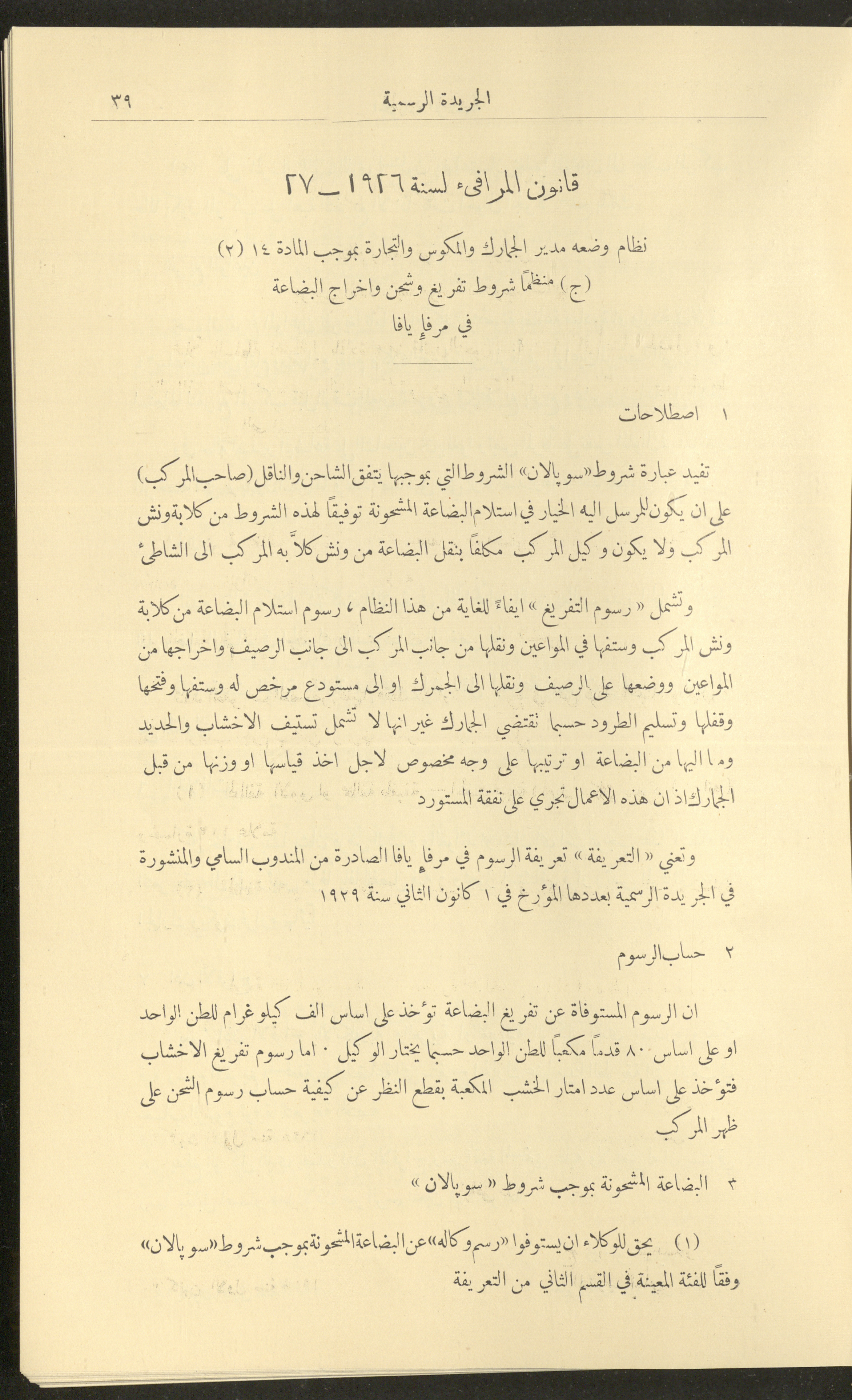 Issue No. 226 of the Official Palestine Newspaper, 1 January 1929