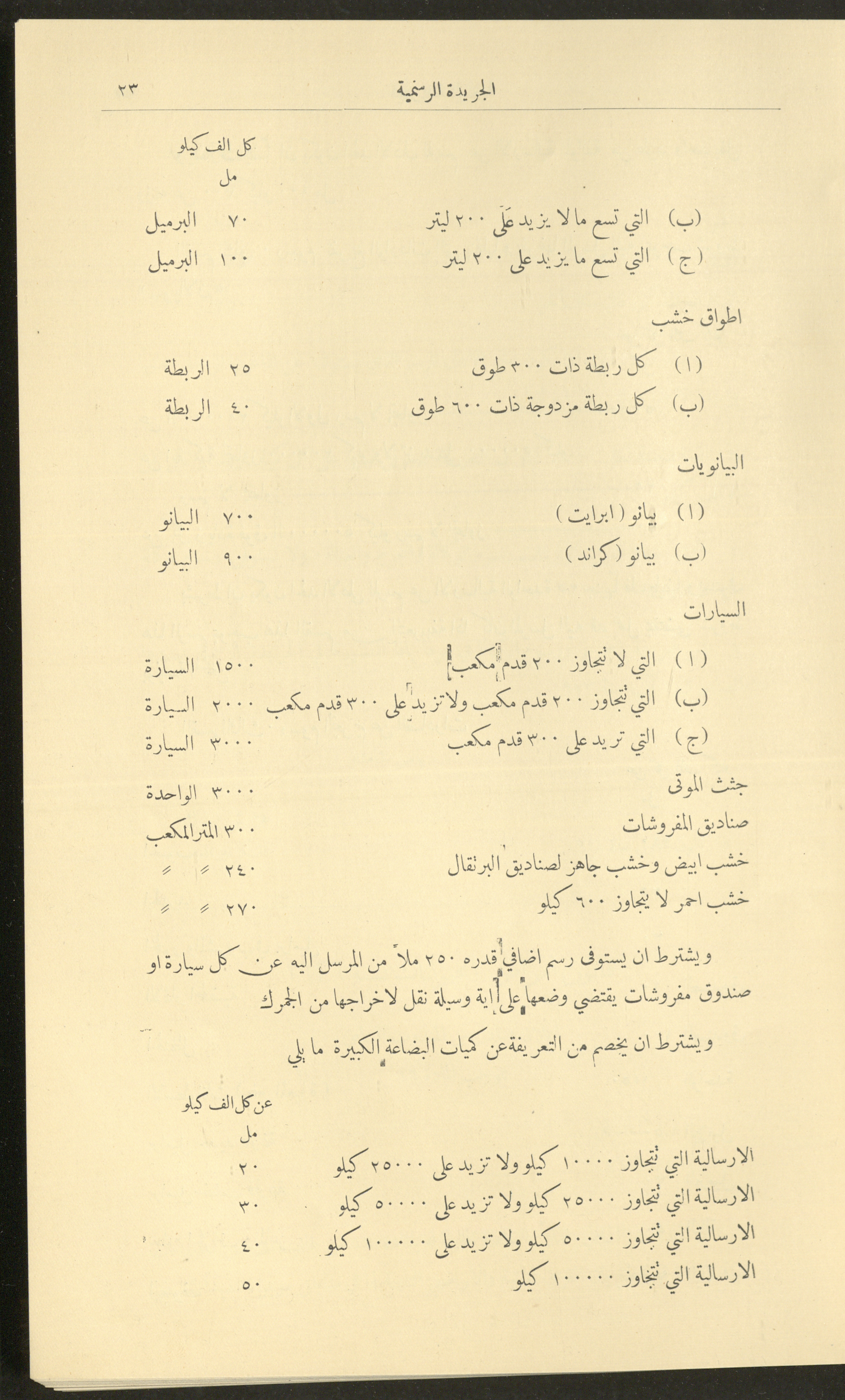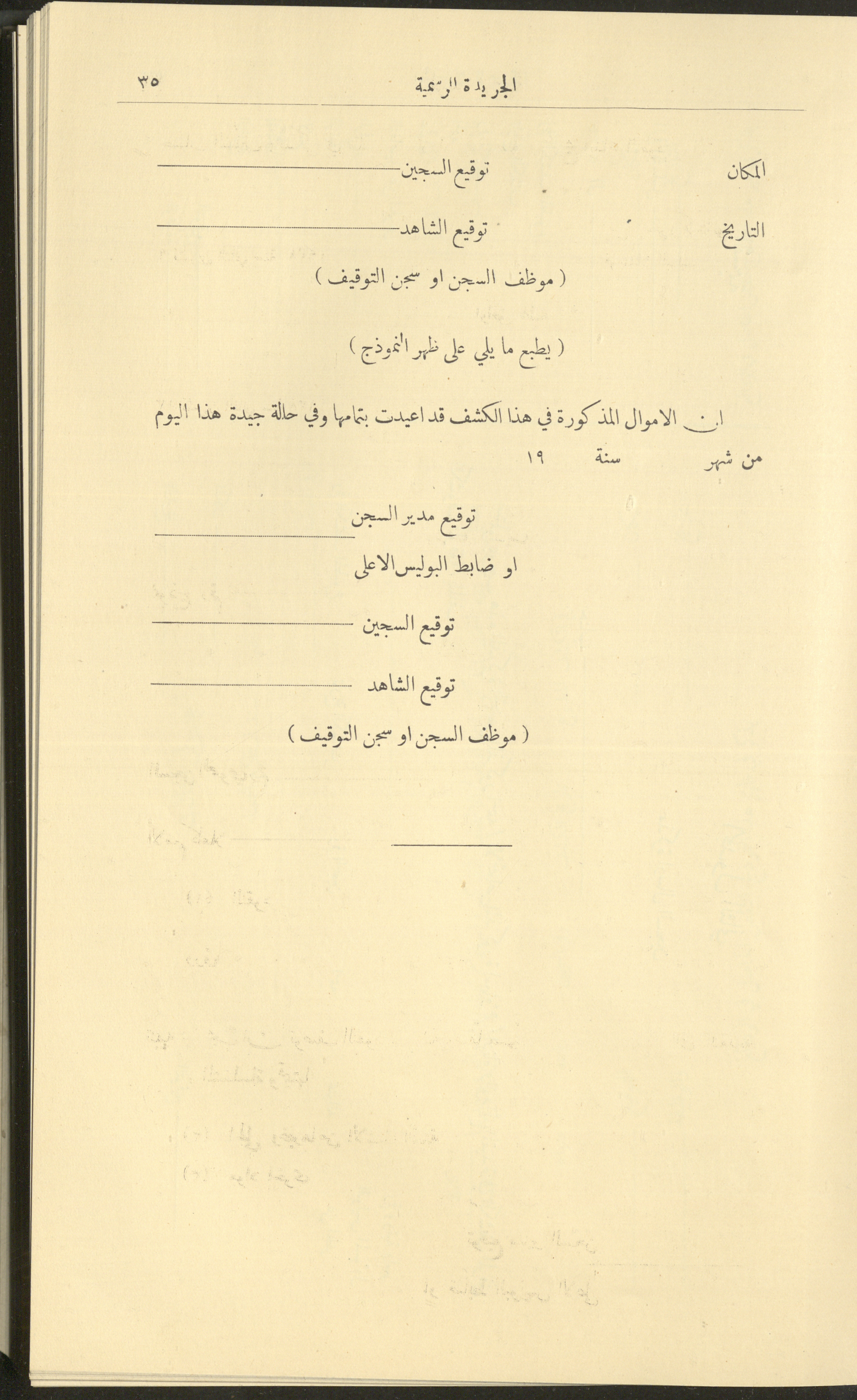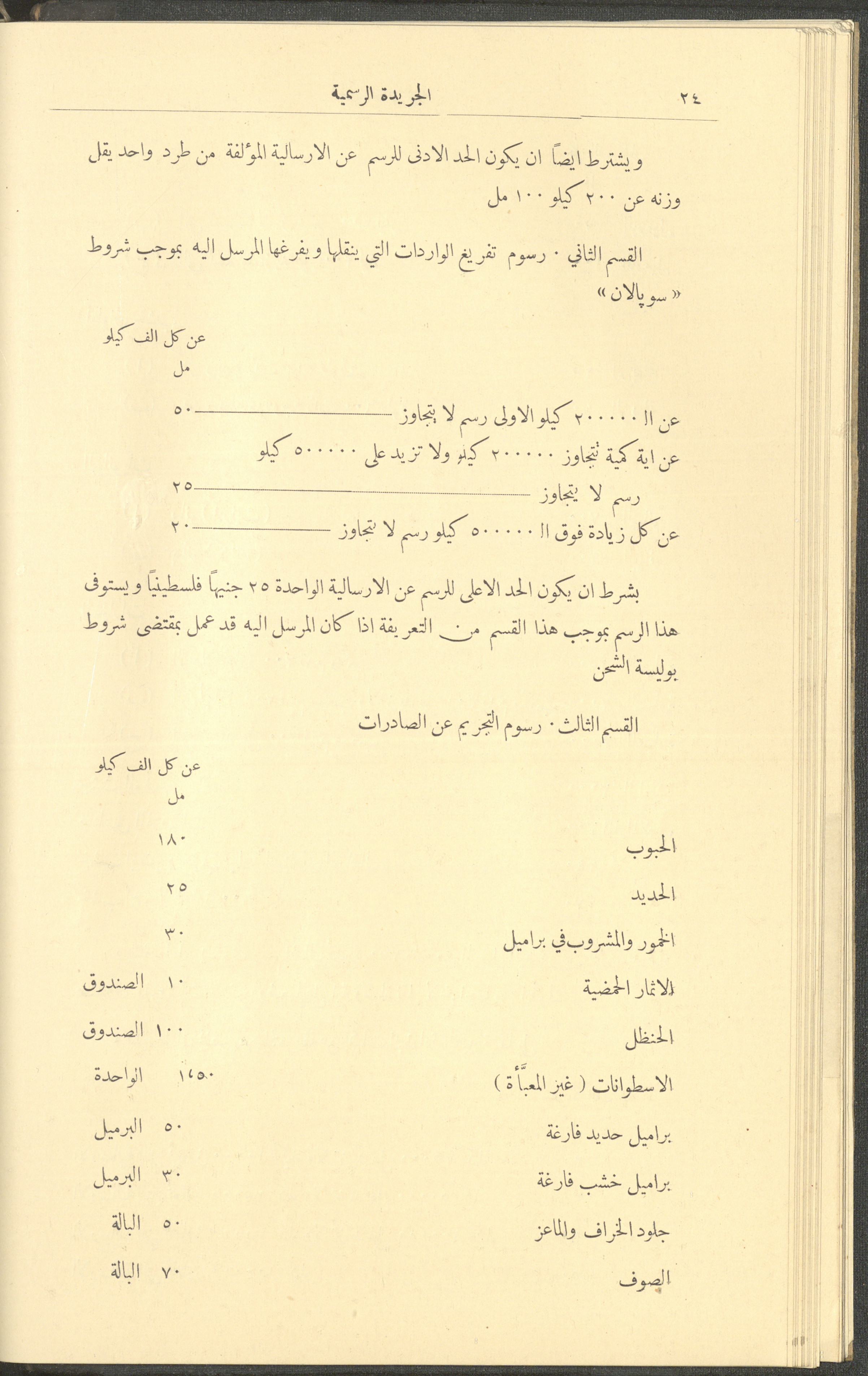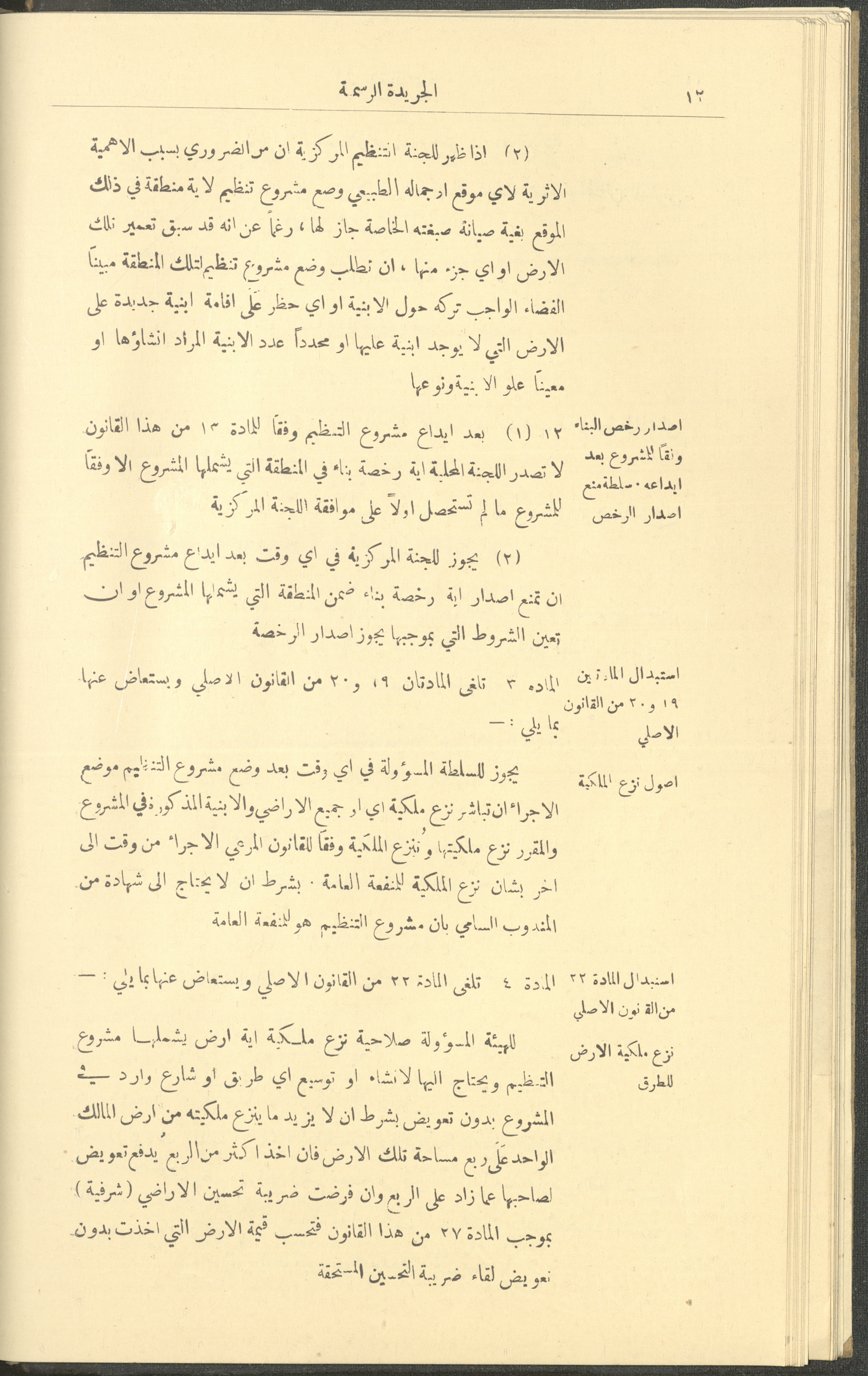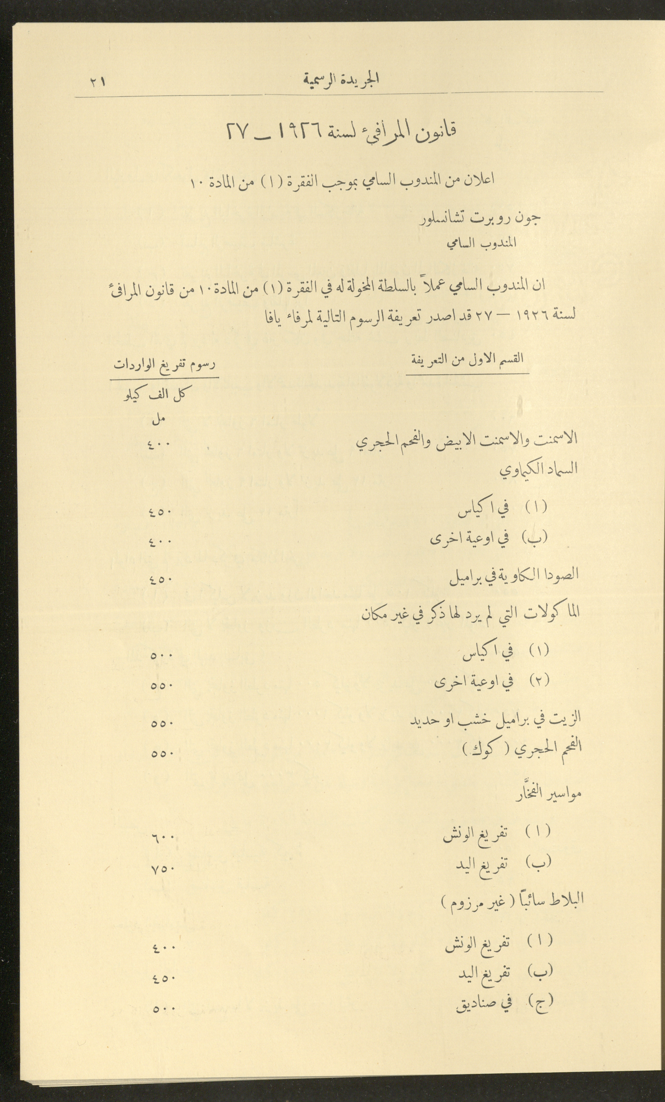 Issued on 1 January 1929, this document shows issue no. 226 of the Official Palestine Newspaper featuring official government announcements including appointments and orders issued under the laws in force in Palestine during the British Mandate, it also shed light on laws about loading and unloading goods and company registrations, the Law of Communicable Diseases and Epidemiology, and the law of doctors licensing. It also follows asylum to and exodus from Palestine, as well as some miscellaneous advertisements. The issue was printed in Azriel Press in Jerusalem, where the price of the copy was fifty mils and was published twice a month. Said official government announcements and amendments include: 1. Land Law 2. Companies Law 3. Mortgage Law 4. Contempt of Court 5. Colonial Probates Act in the British Kingdom 6. Urban Planning Law 7. Local Councils Law 8. Property Tax Law 9. Law on Road Transport 10. Railway Law 11. Forest Law 12. Jaffa Port Law 13. Land Settlement Law 13. Prison System Law 14. Publishing Law