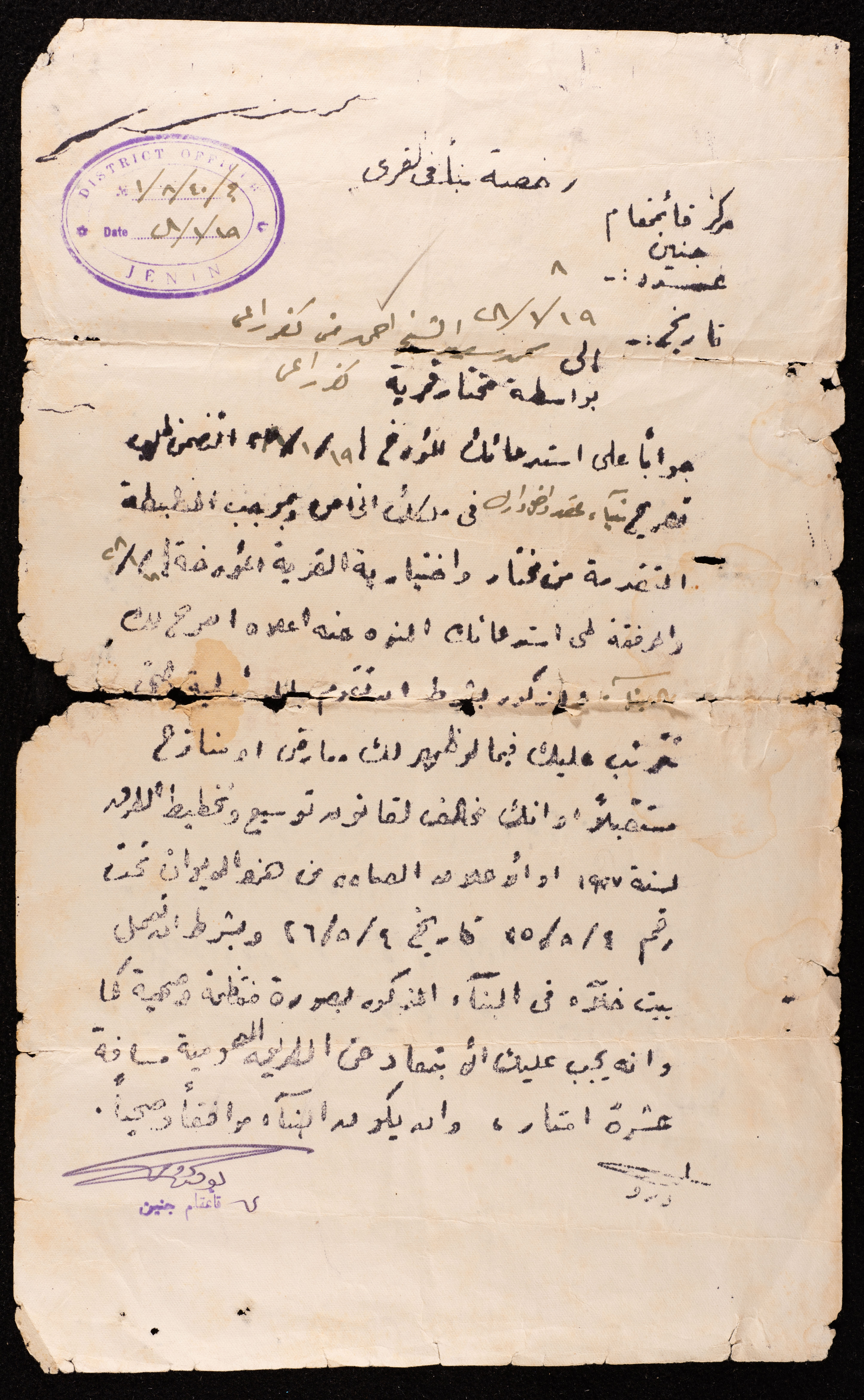 A Letter to Mohammad Ahmad from The Administrative Governor of Jenin, 19 January 1928