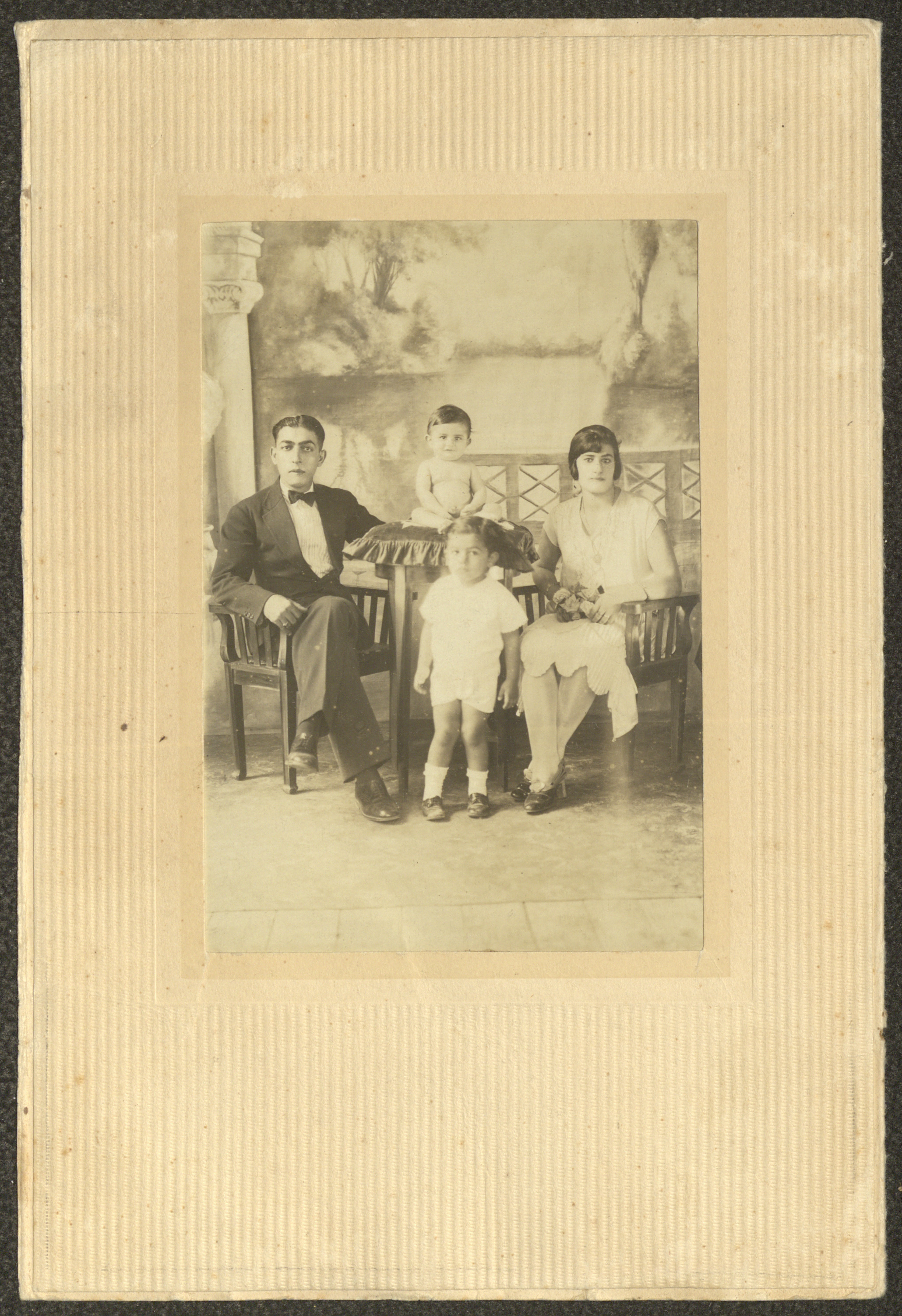 Taken in their residence in Ecuador in 1934, this photograph shows the family of Isa Khalil Touma, Ne'ma Awwad, their son Khalil and their daughter Raquel.