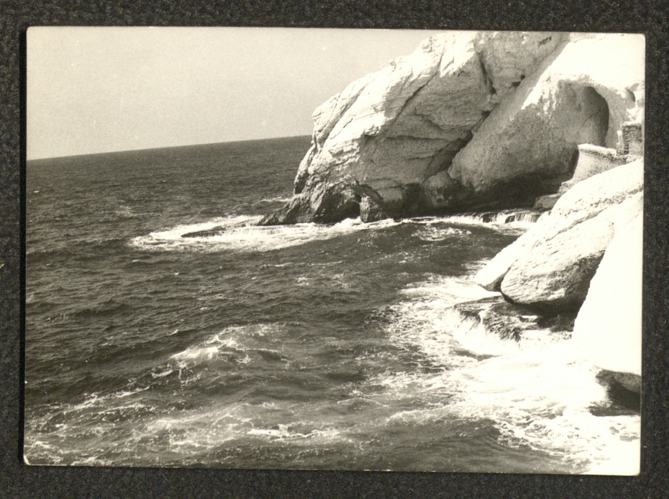 Taken during the 1990s, this photograph shows the sea and rocks at Ras an-Naqura in northern Palestine.