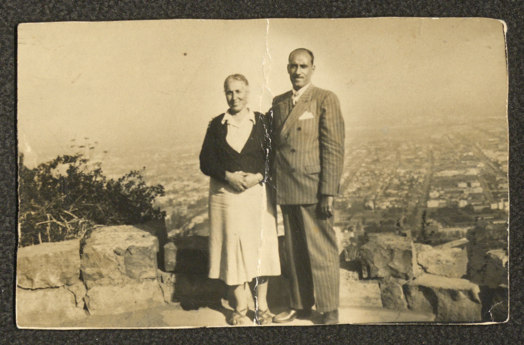 Taken on 14 April 1949, this photograph shows Sofia Saliba Touma and her brother Atallah on a visit to the Chilean capital, Santiago, which Atallah sent to his family in the town of Beit Jala.