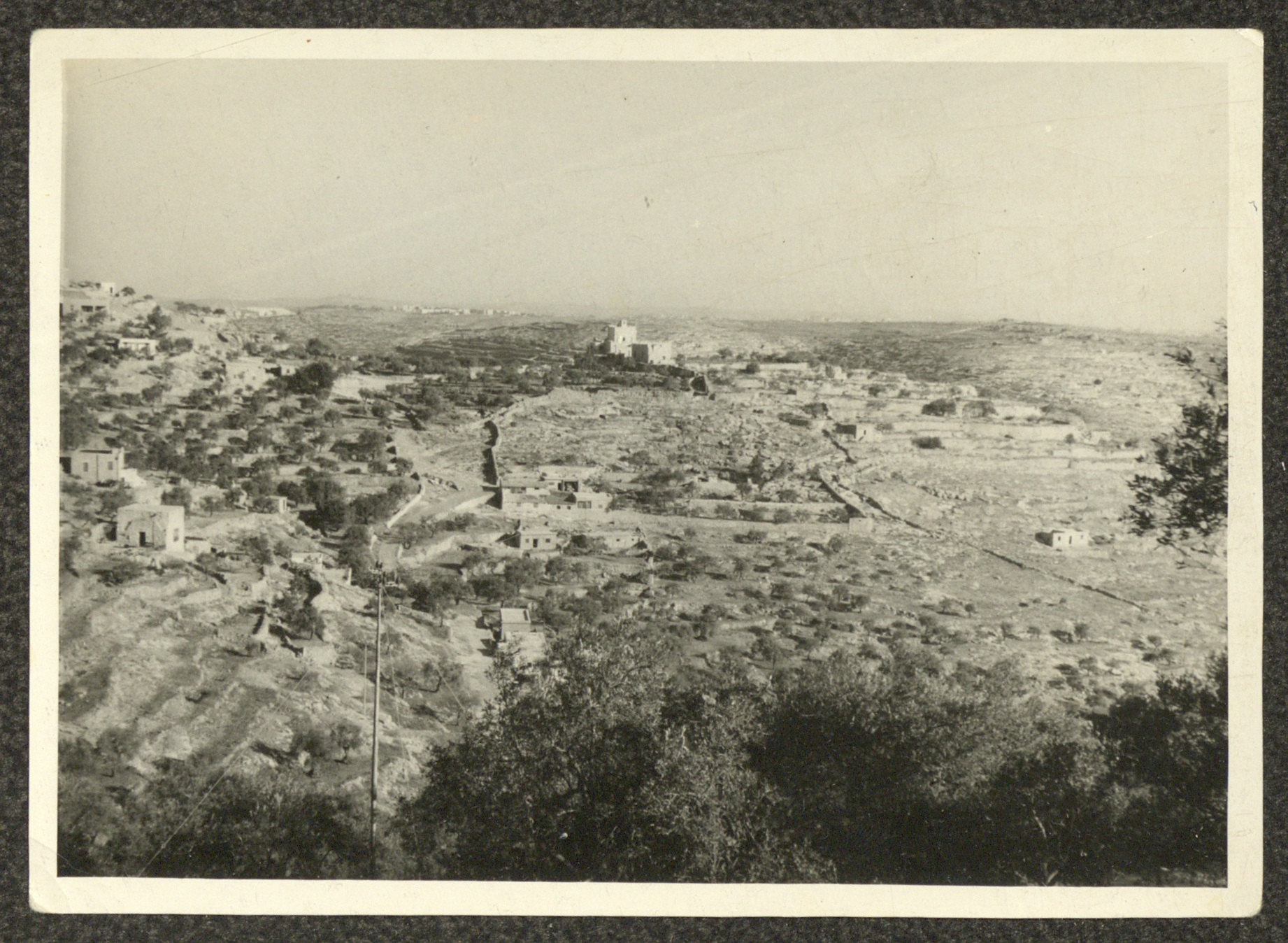 Taken in the 1950s, this photograph shows wide spaces of the lands of the town of Beit Jala and several of the town's houses.