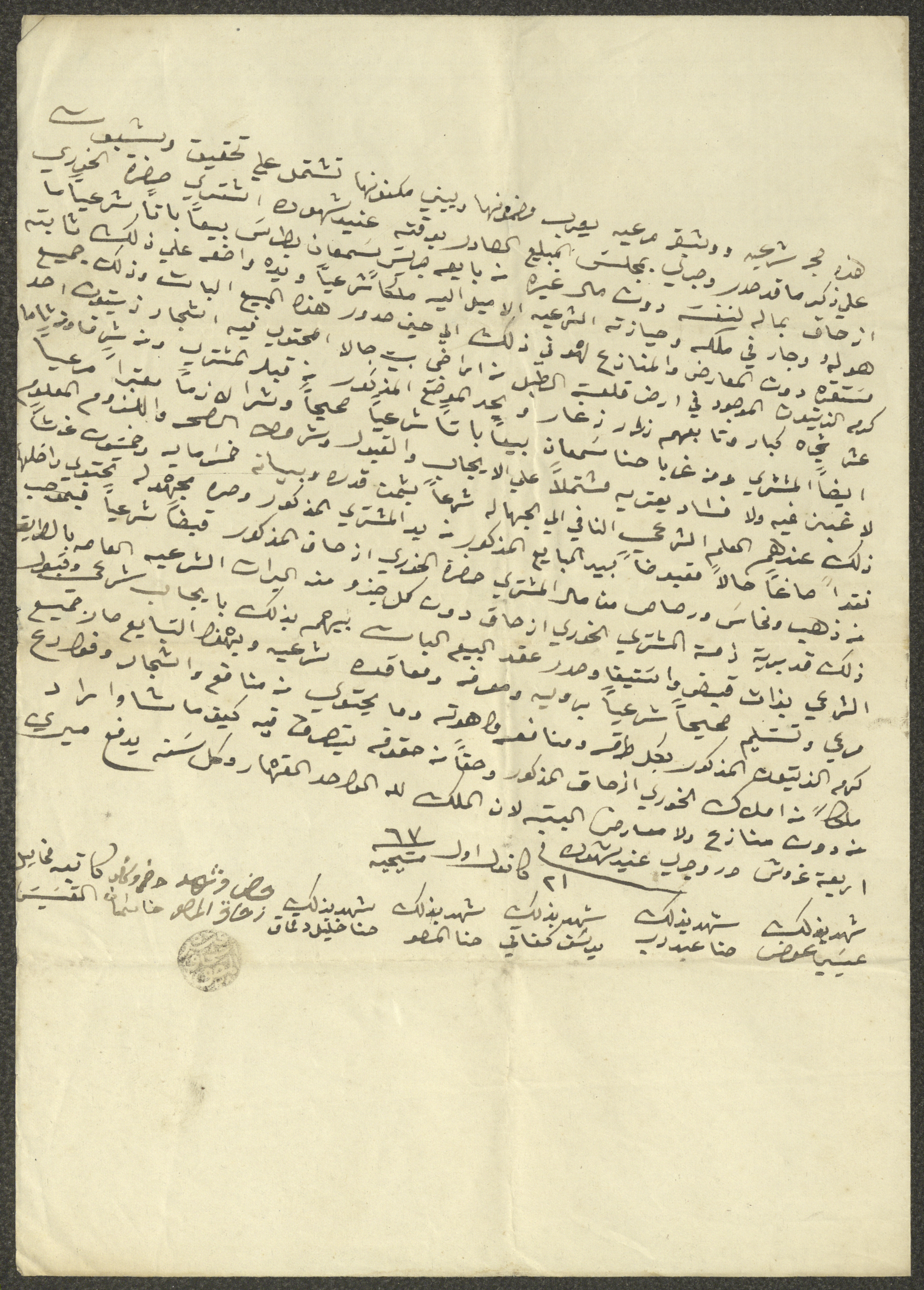 An Olive Grove Sale Deed between Jeries Boutros and Ishaq Touma, 21 December 1863
