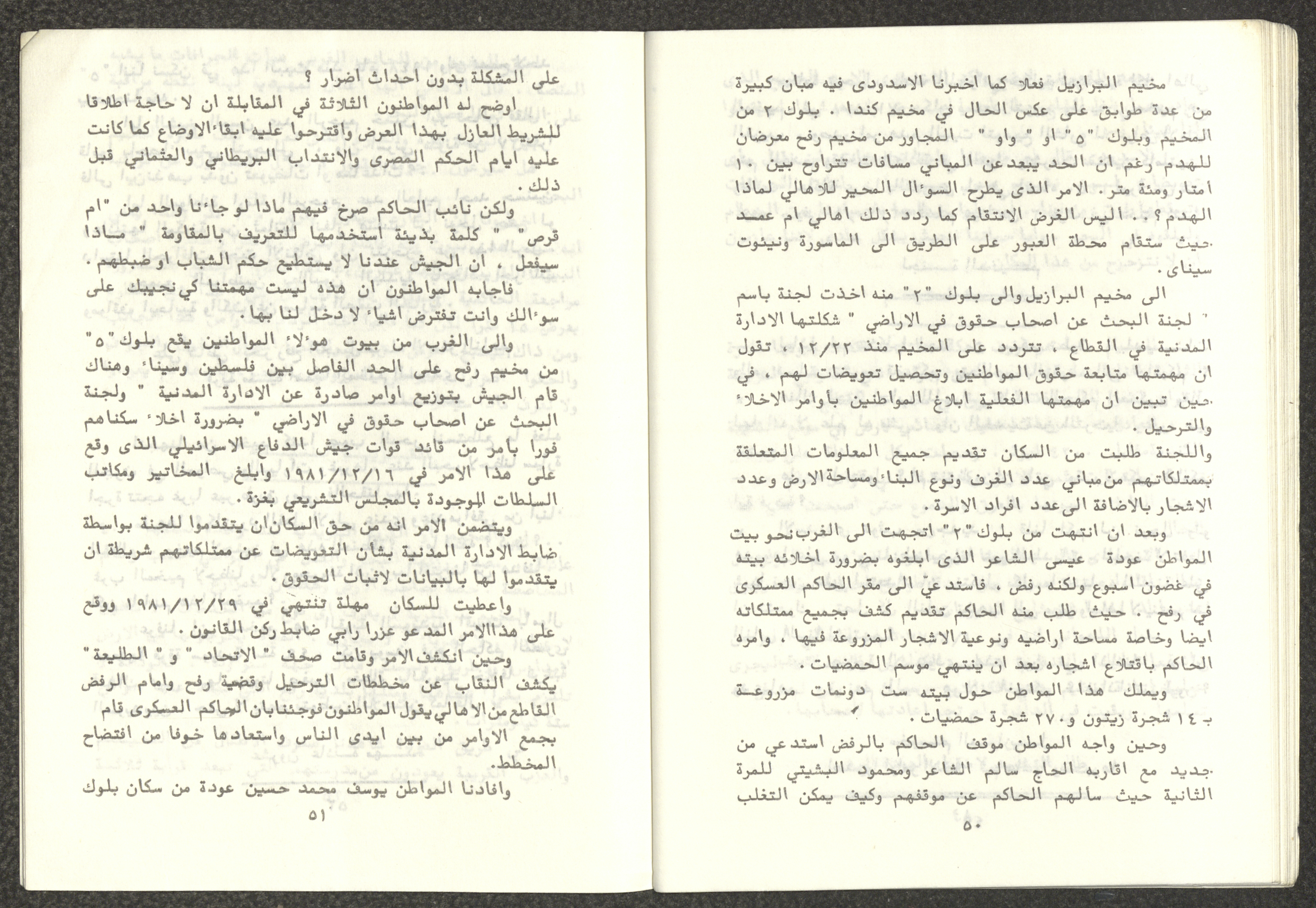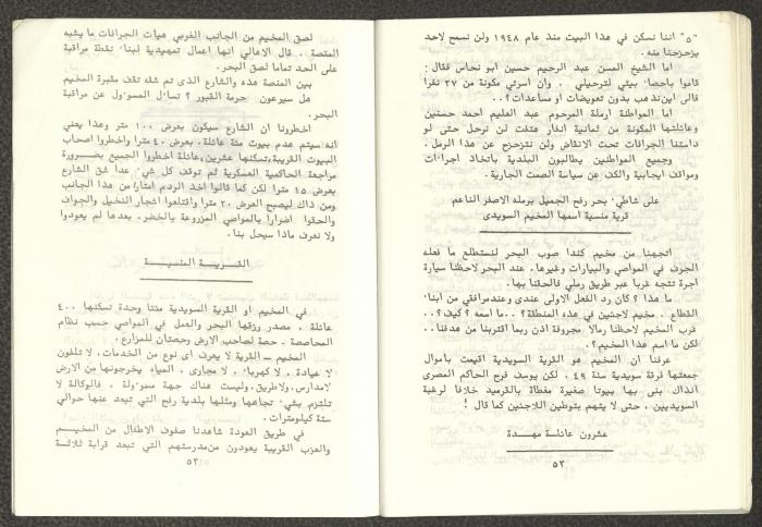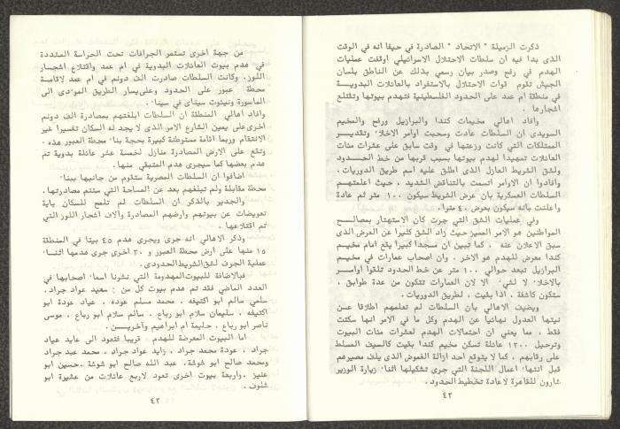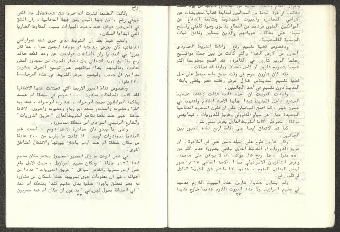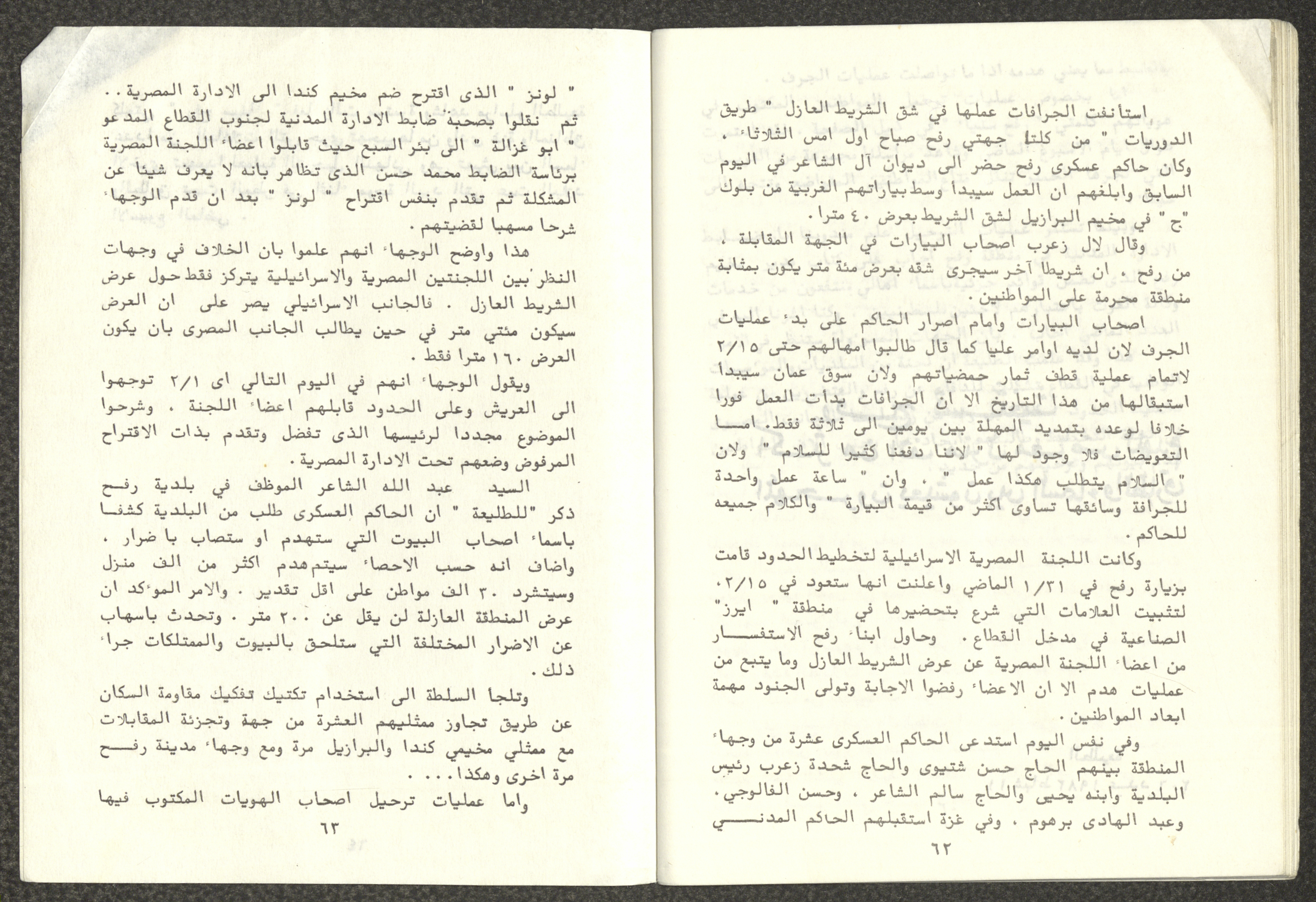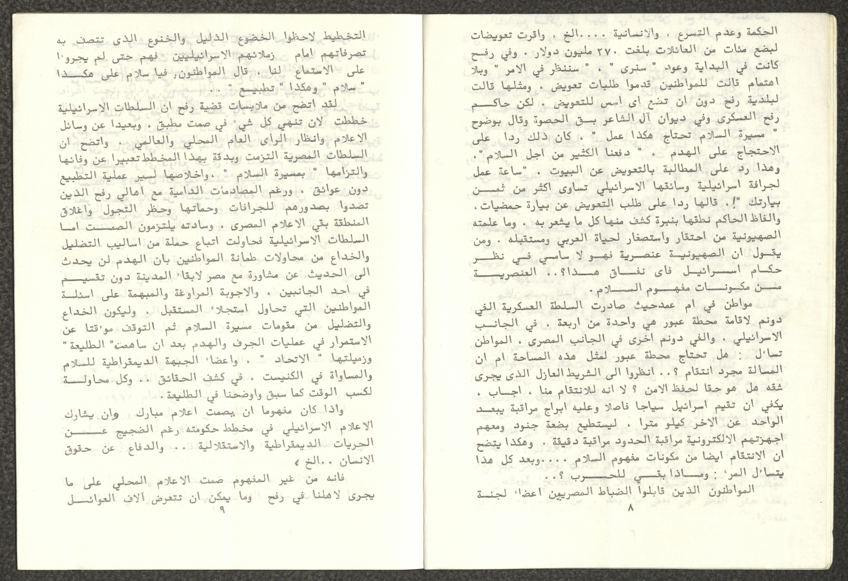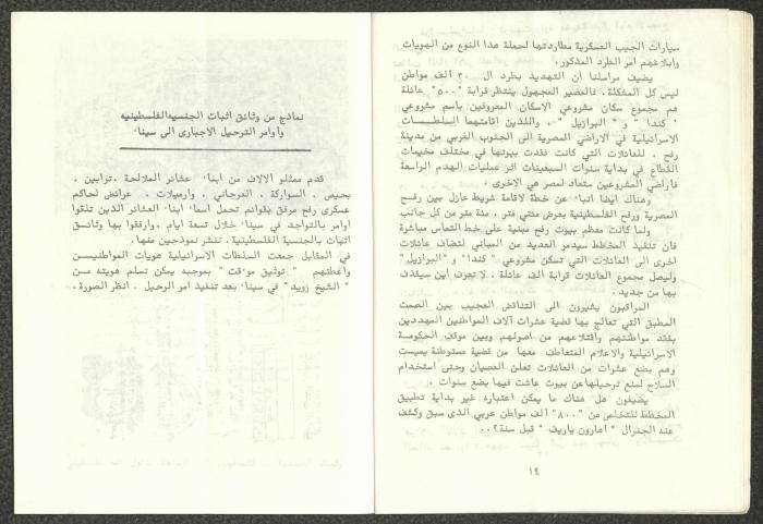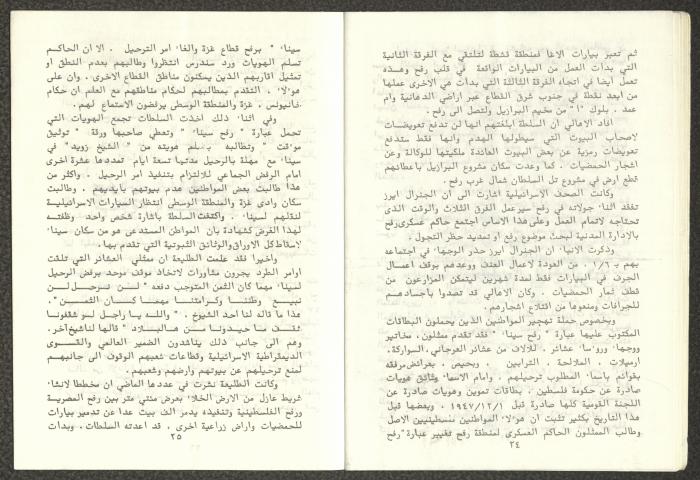 Issued by Attali'a Publications in February 1982, this one-time pamphlet is titled "Rafah, Victims of the Peace March" and it shows the history of the city of Rafah and its position in the Arab-Israeli conflict, it also contains several articles that were published in the various Attali'a issues during January and February of 1982.