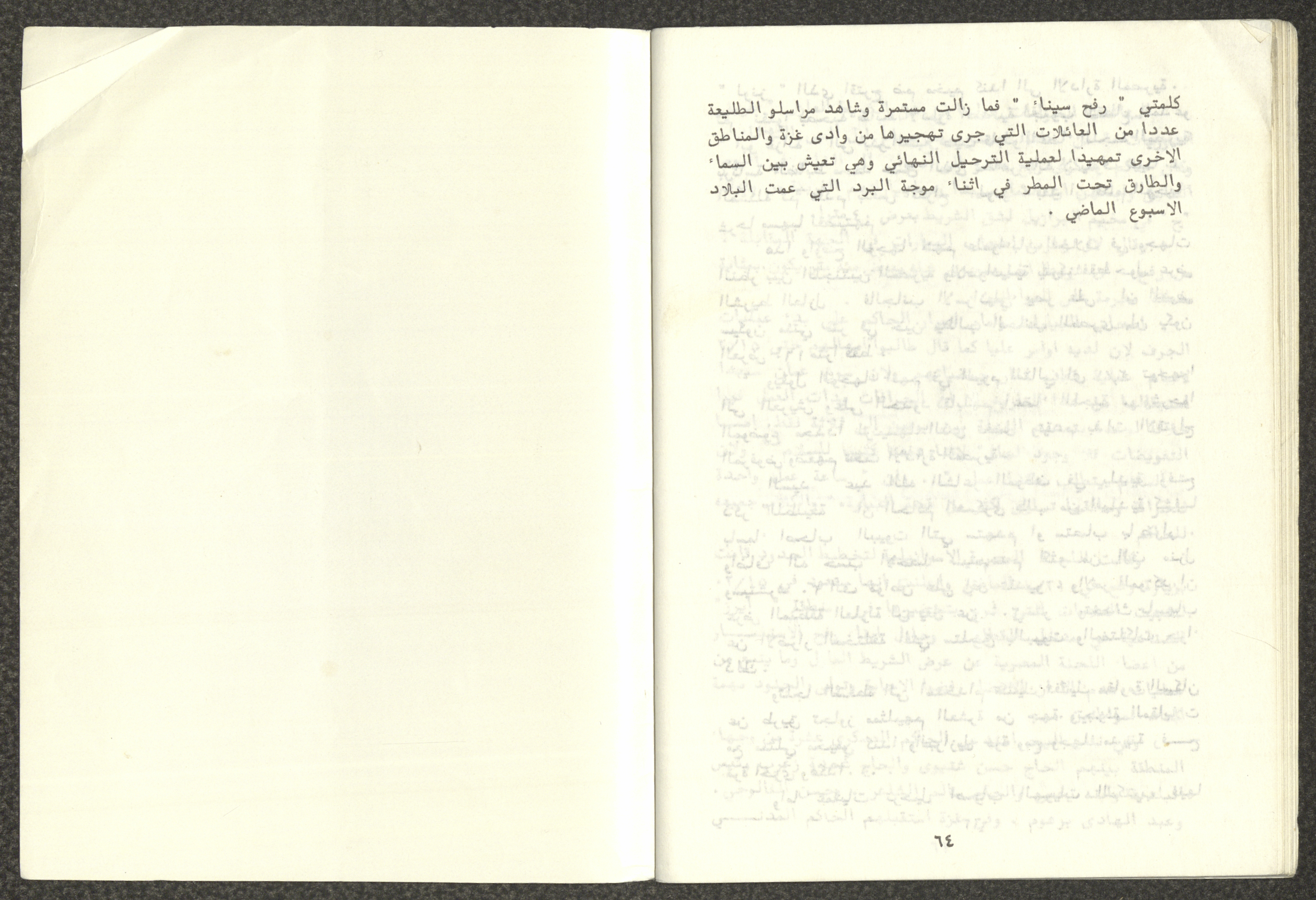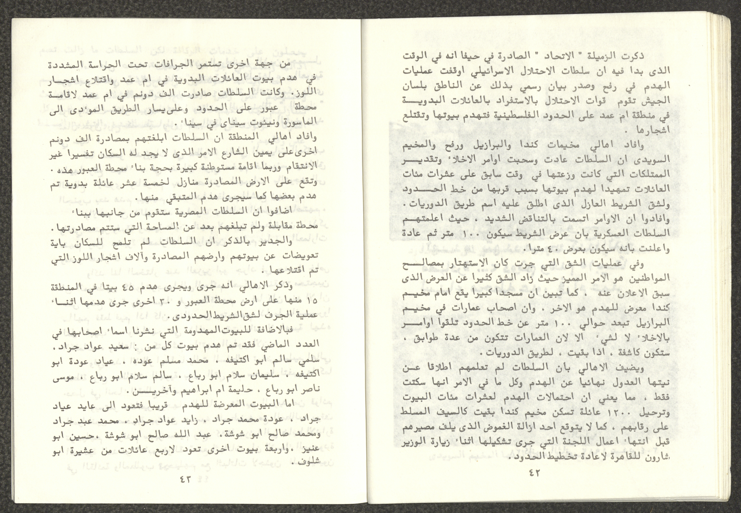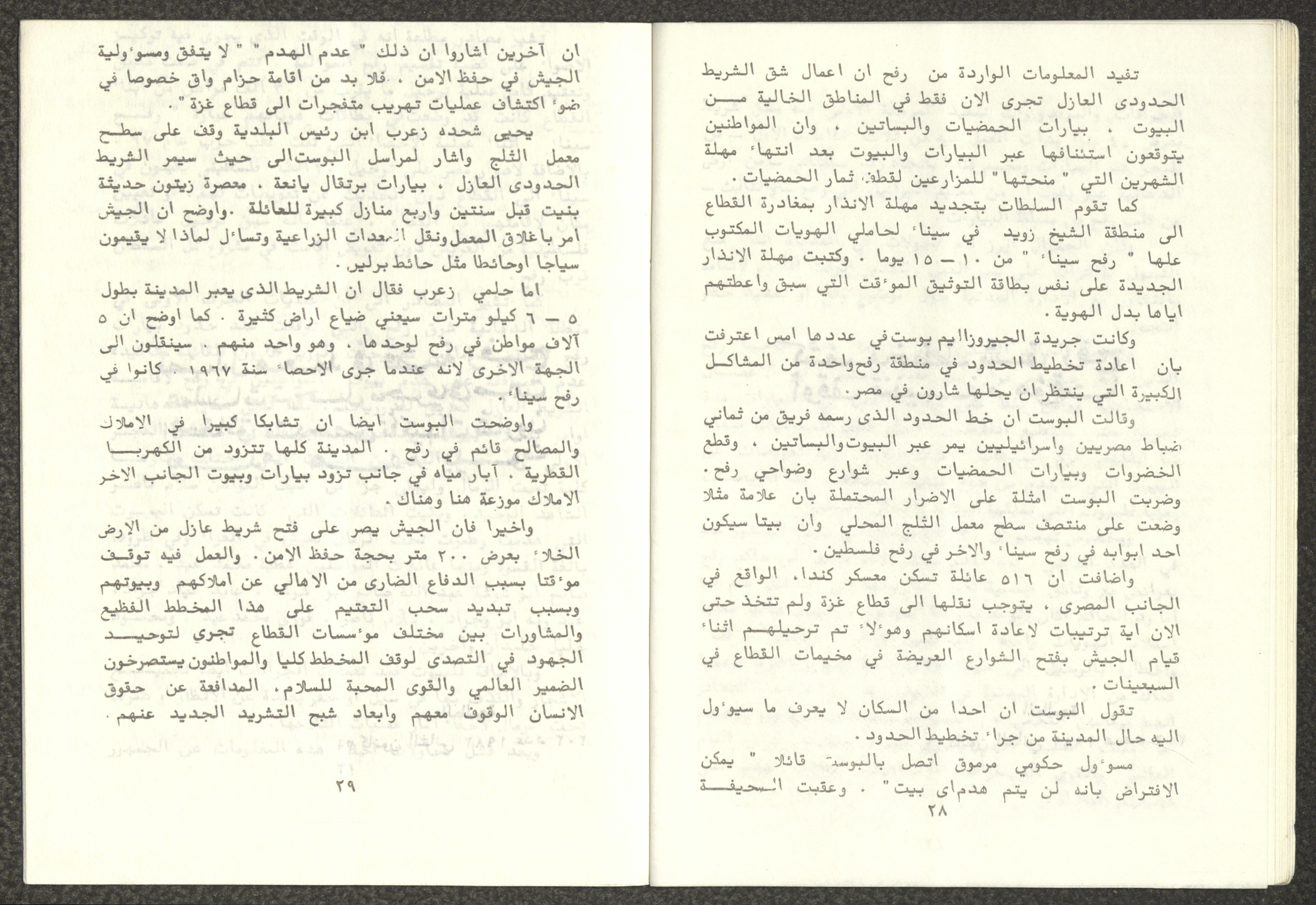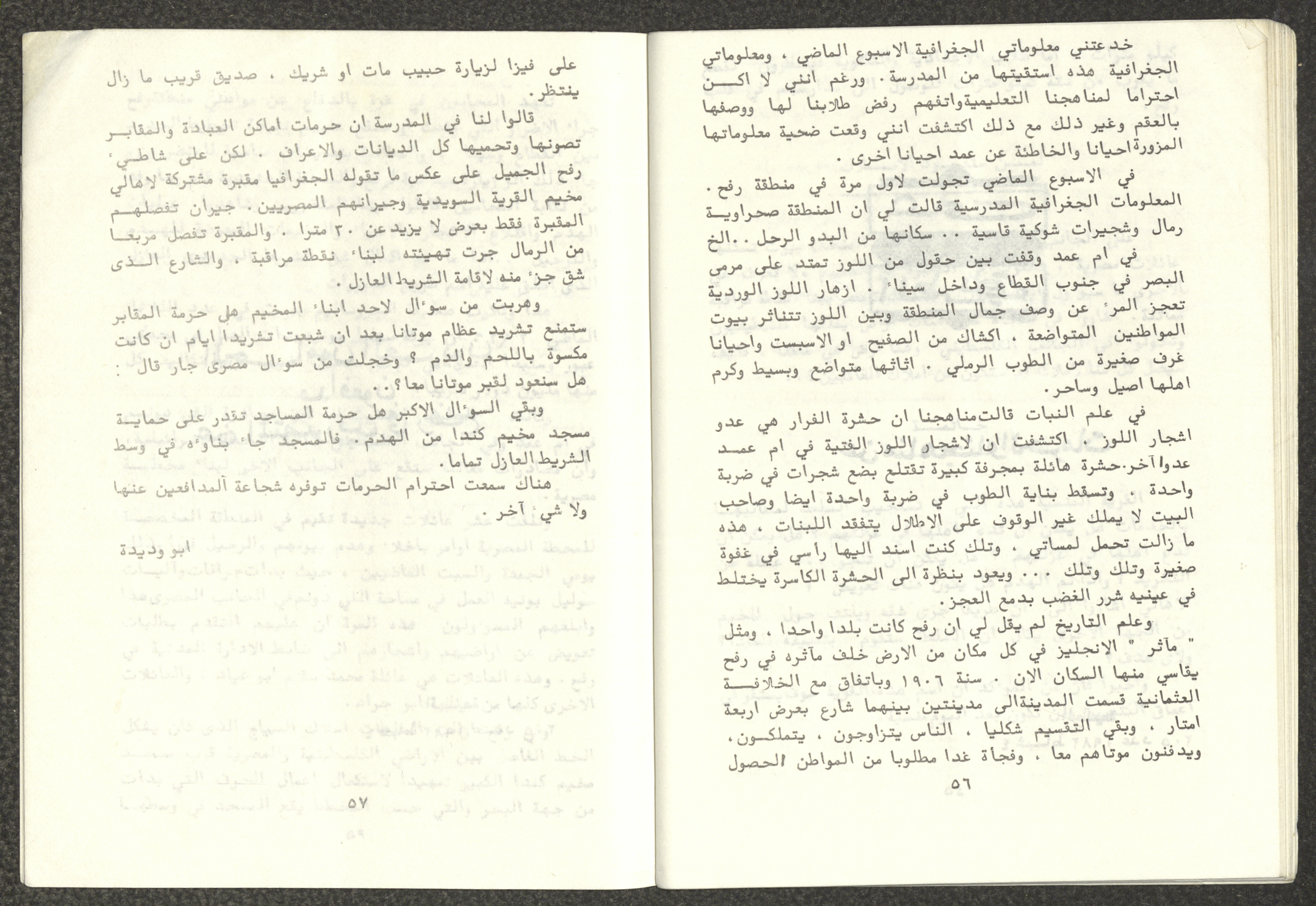 Issued by Attali'a Publications in February 1982, this one-time pamphlet is titled "Rafah, Victims of the Peace March" and it shows the history of the city of Rafah and its position in the Arab-Israeli conflict, it also contains several articles that were published in the various Attali'a issues during January and February of 1982.
