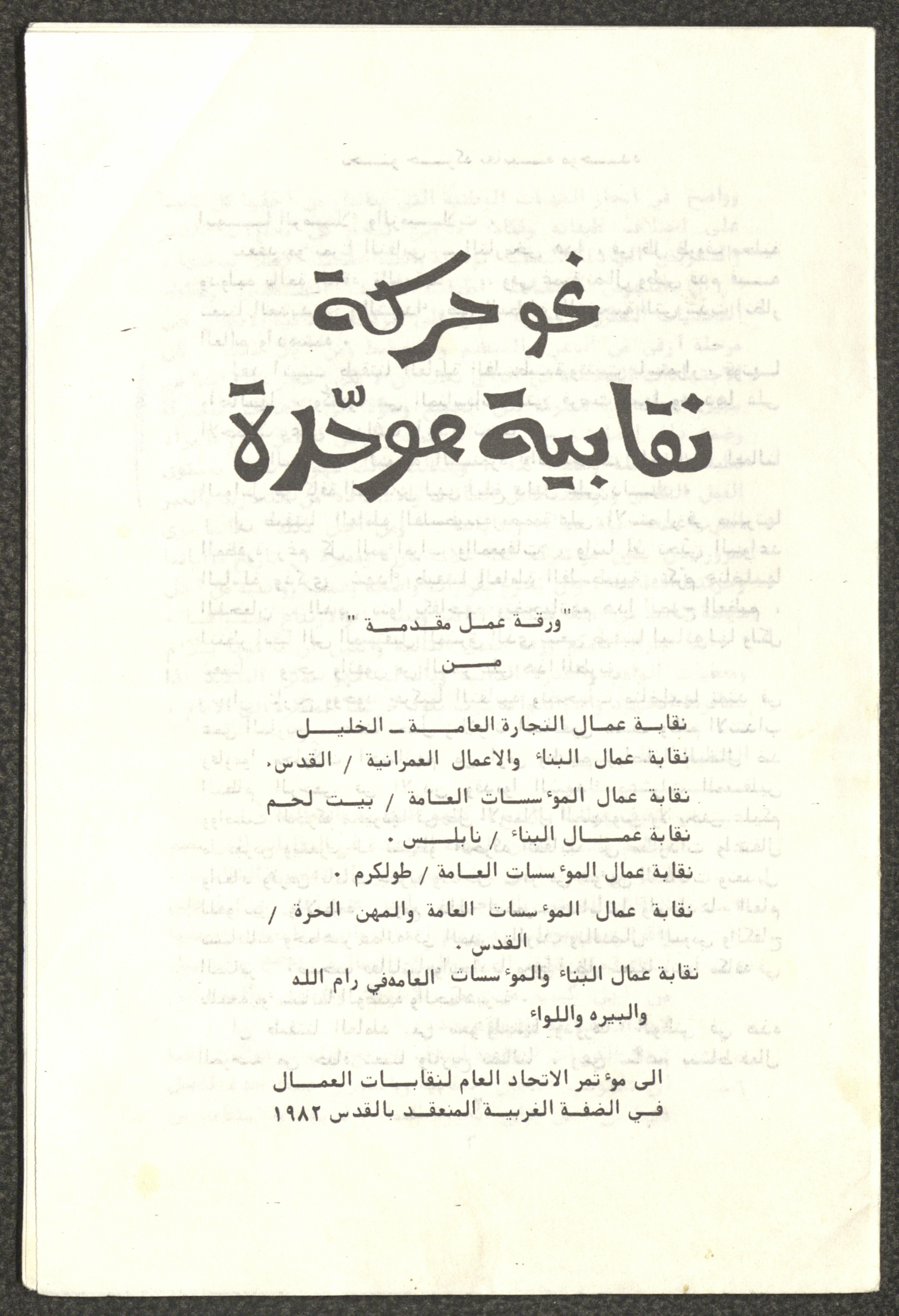 Working Paper Titled "Towards a Unified Trade Union Movement", Jerusalem, 1982