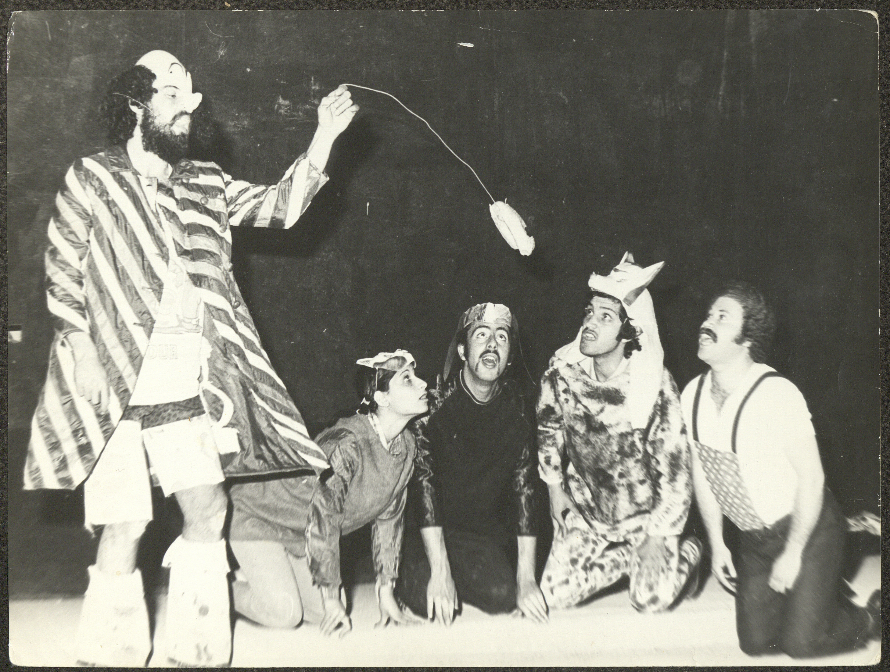 Taken in 1979, this photograph shows a performance of the play "Taghreebet Saeed ibn Fadlallah (The Exile of Saeed ibn Fadlallah)", which was collectively written and directed by the Wonder Box troupe in the same year.