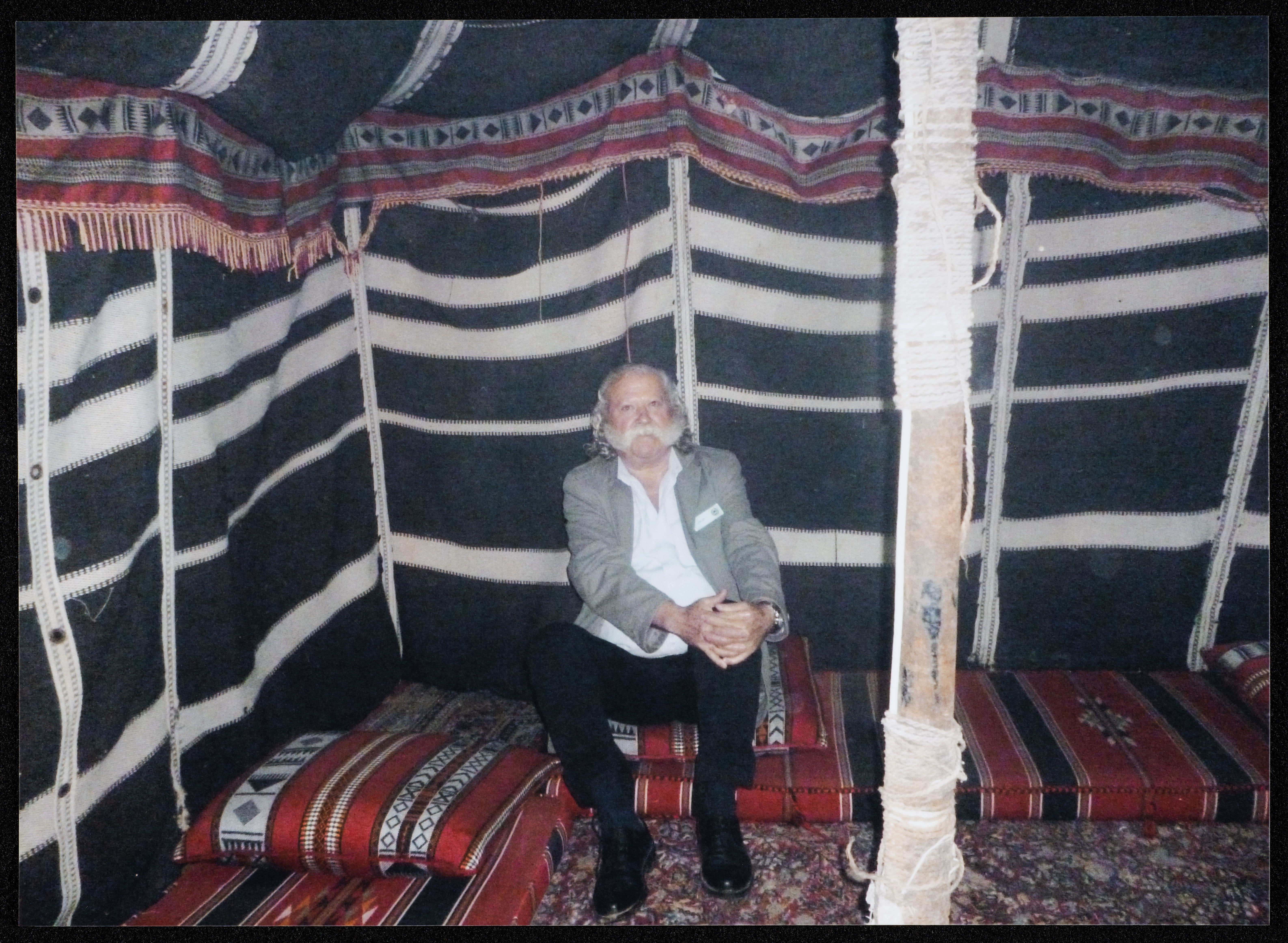 Taken between 17 and 27 March 2013, this photograph shows Adel Tartir sitting in one of the Bedouin tents in Sharjah during his participation in the 23rd session of the Sharjah Theatre Days Festival.