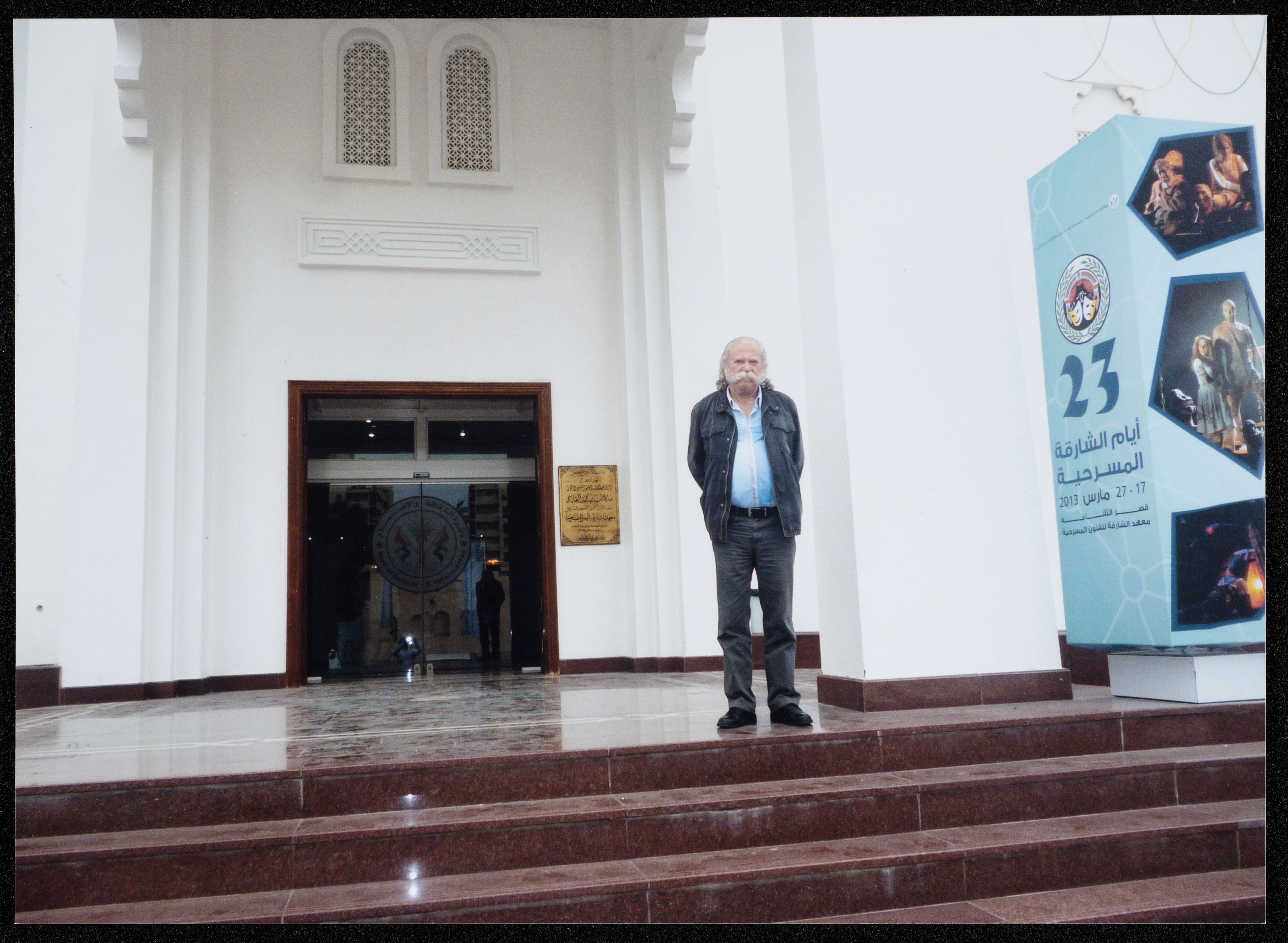 Taken between 17 and 27 March 2013, this photograph shows Adel Tartir in front of the Cultural Palace in Sharjah during his participation in the 23rd session of the Sharjah Theatre Days Festival.