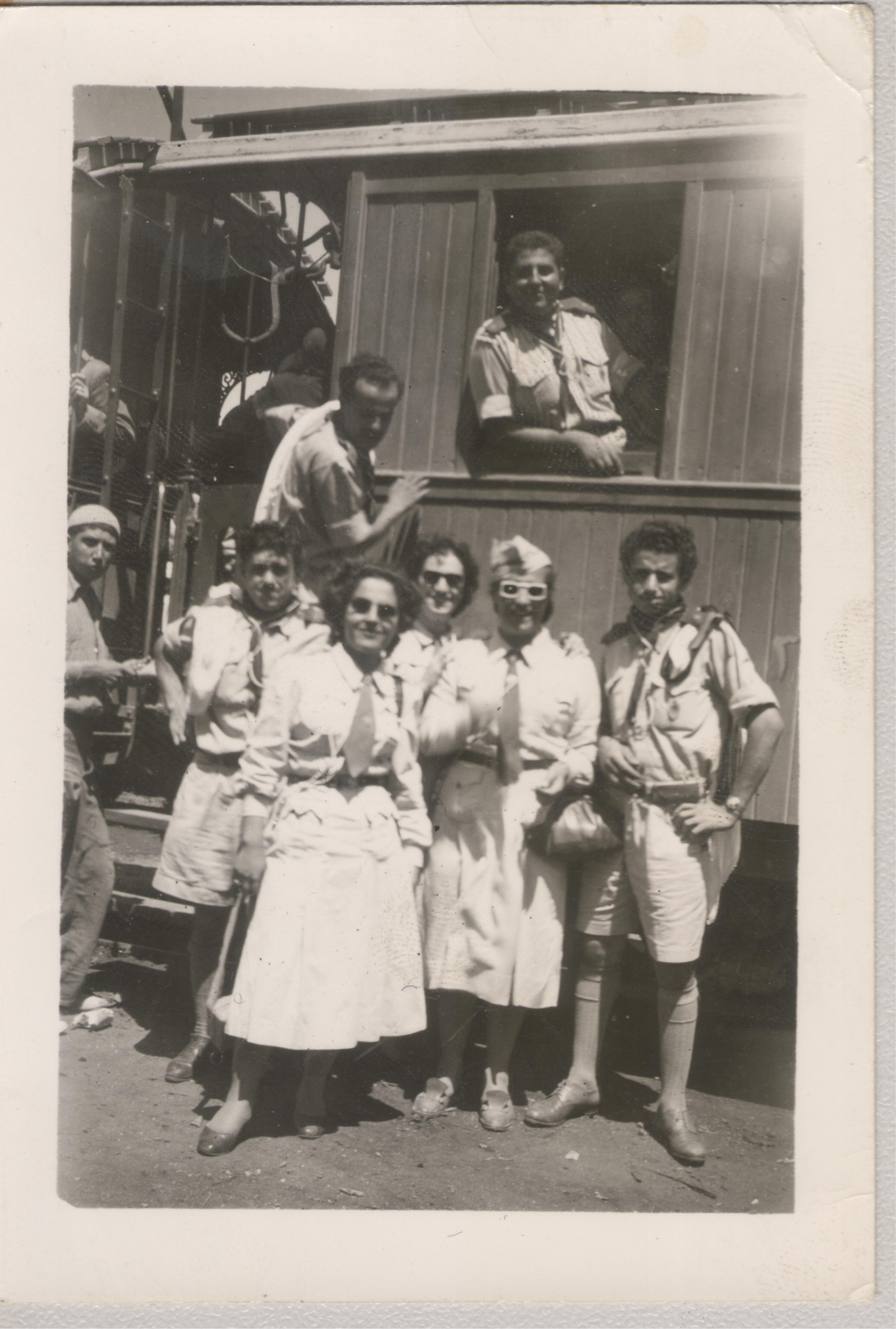A black-and-white photograph of members of the First Ramallah Scout Group (Sareyyet Ramallah).
