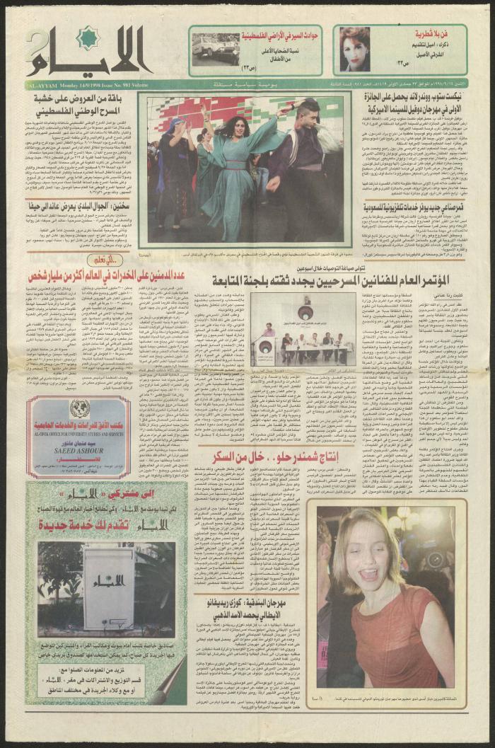 "باقة من العروض على خشبة المسرح الوطني الفلسطيني"، قصاصة من جريدة، 14 أيلول 1998