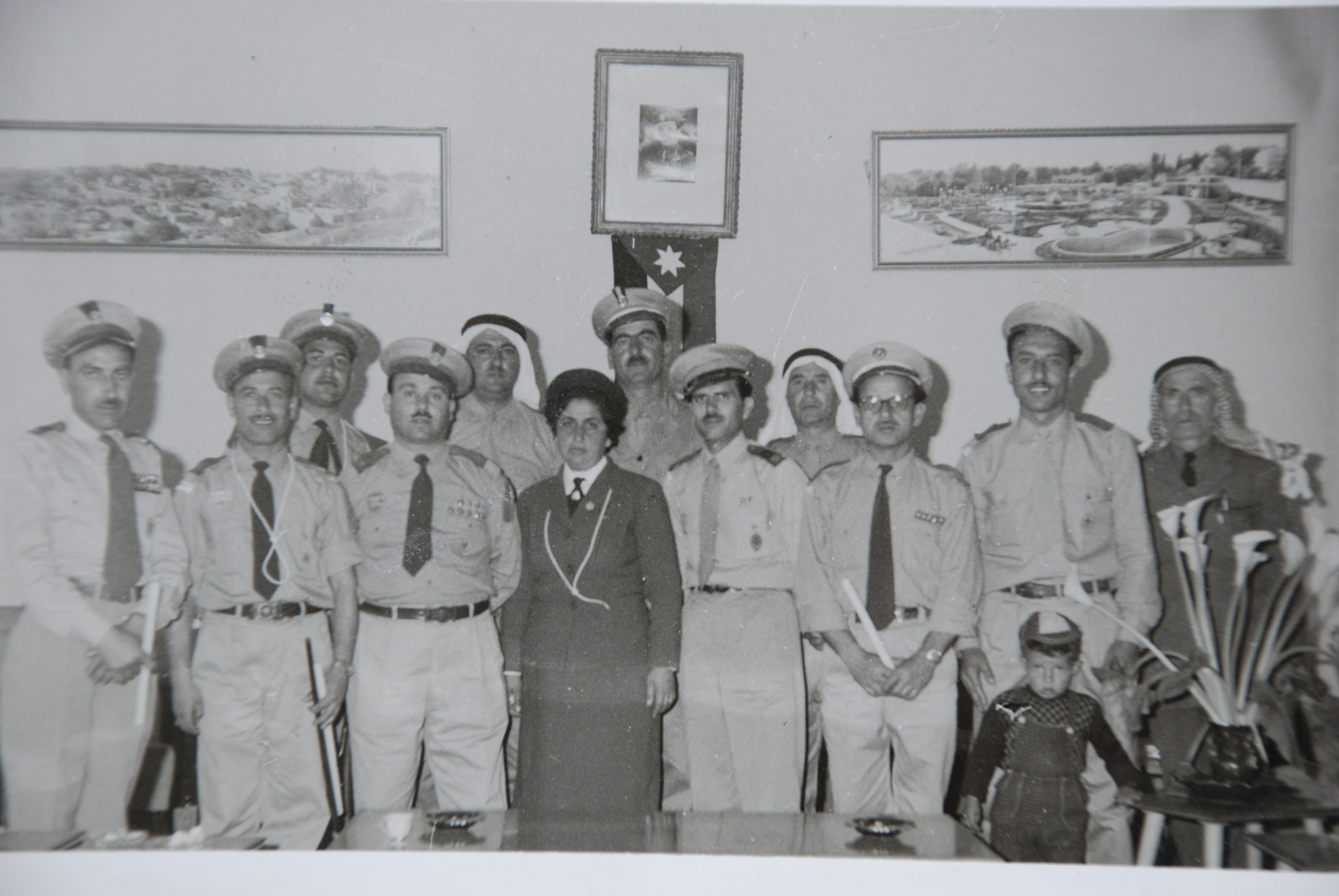 A black-and-white photograph of members of the First Ramallah Scout Group (Sareyyet Ramallah).