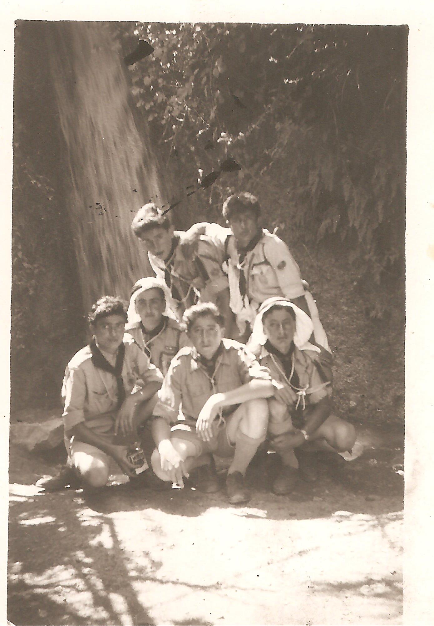 A black-and-white photograph of members of the First Ramallah Scout Group (Sareyyet Ramallah).
