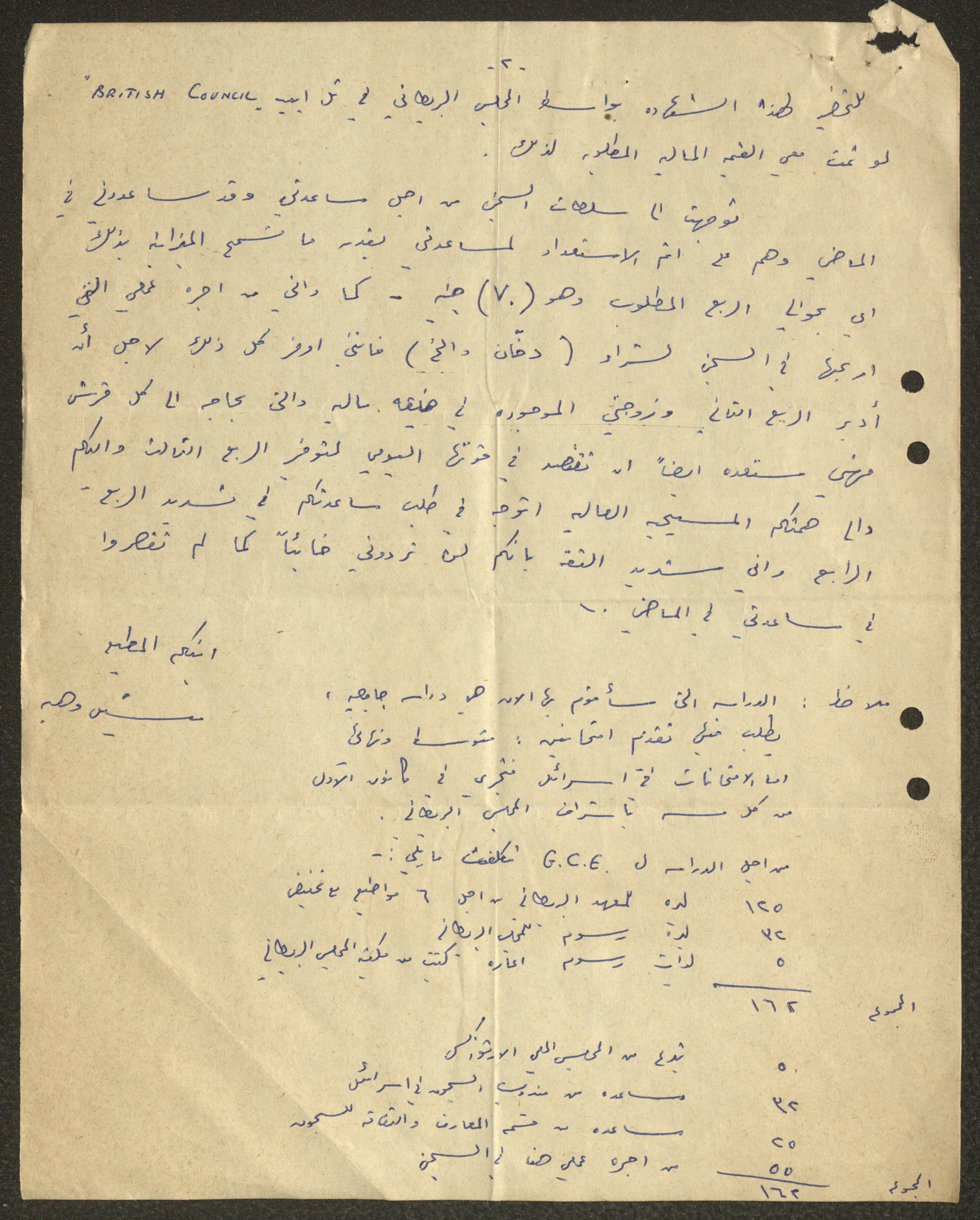 Issued on 7 August 1956, this document shows a letter that was addressed from Michel Wahbeh to the chairman and members of the National Orthodox Communal Council in Haifa regarding a request for financial assistance.