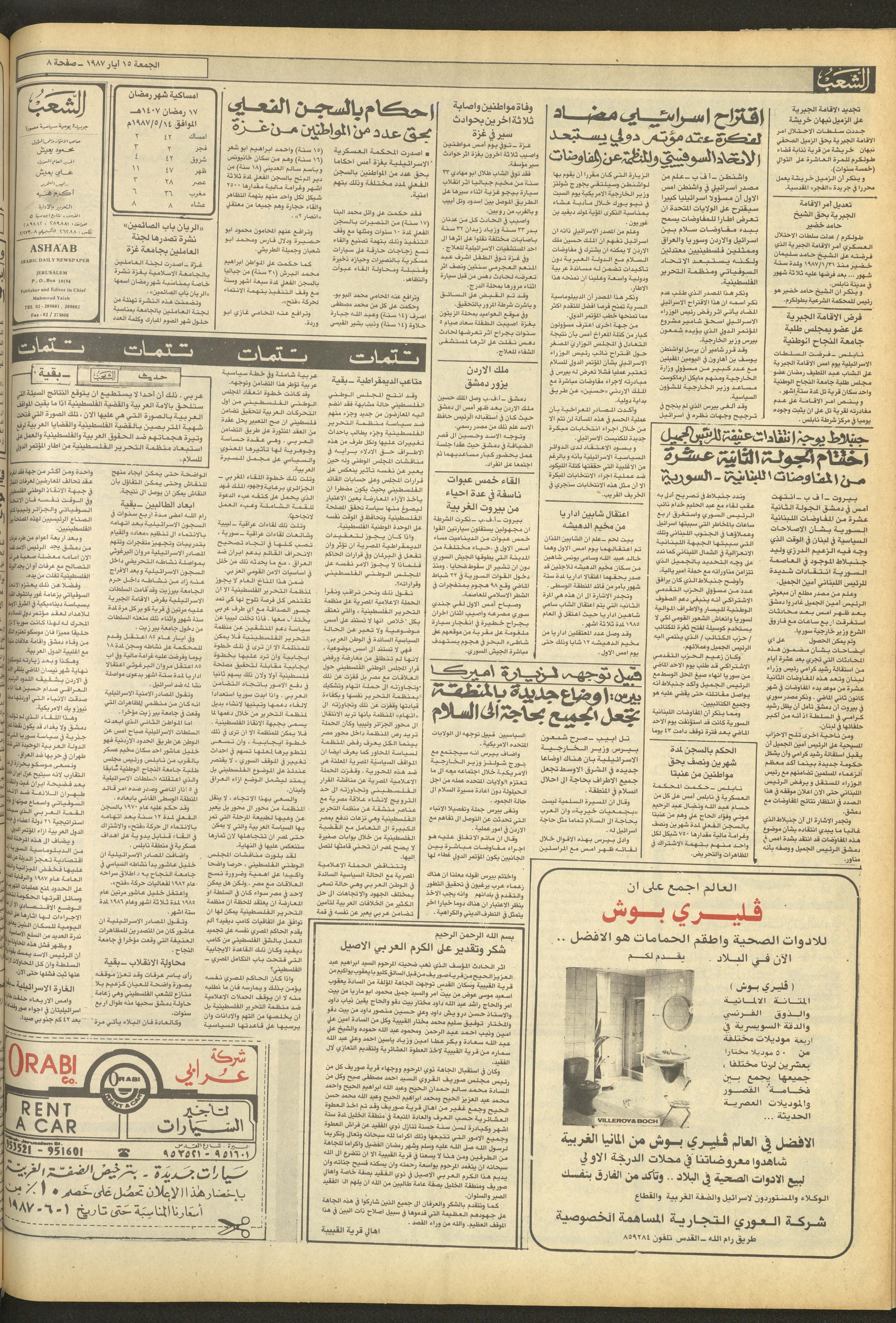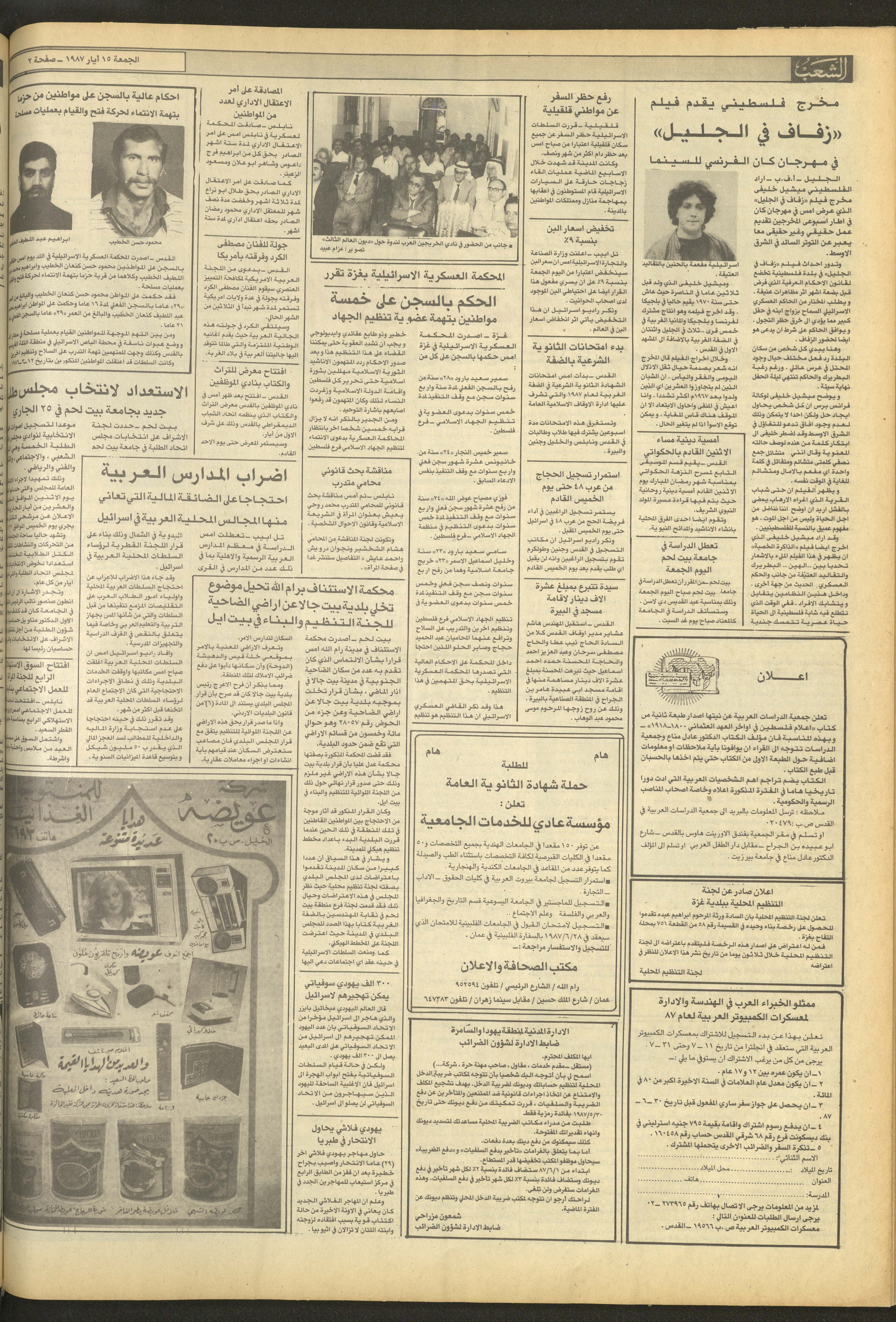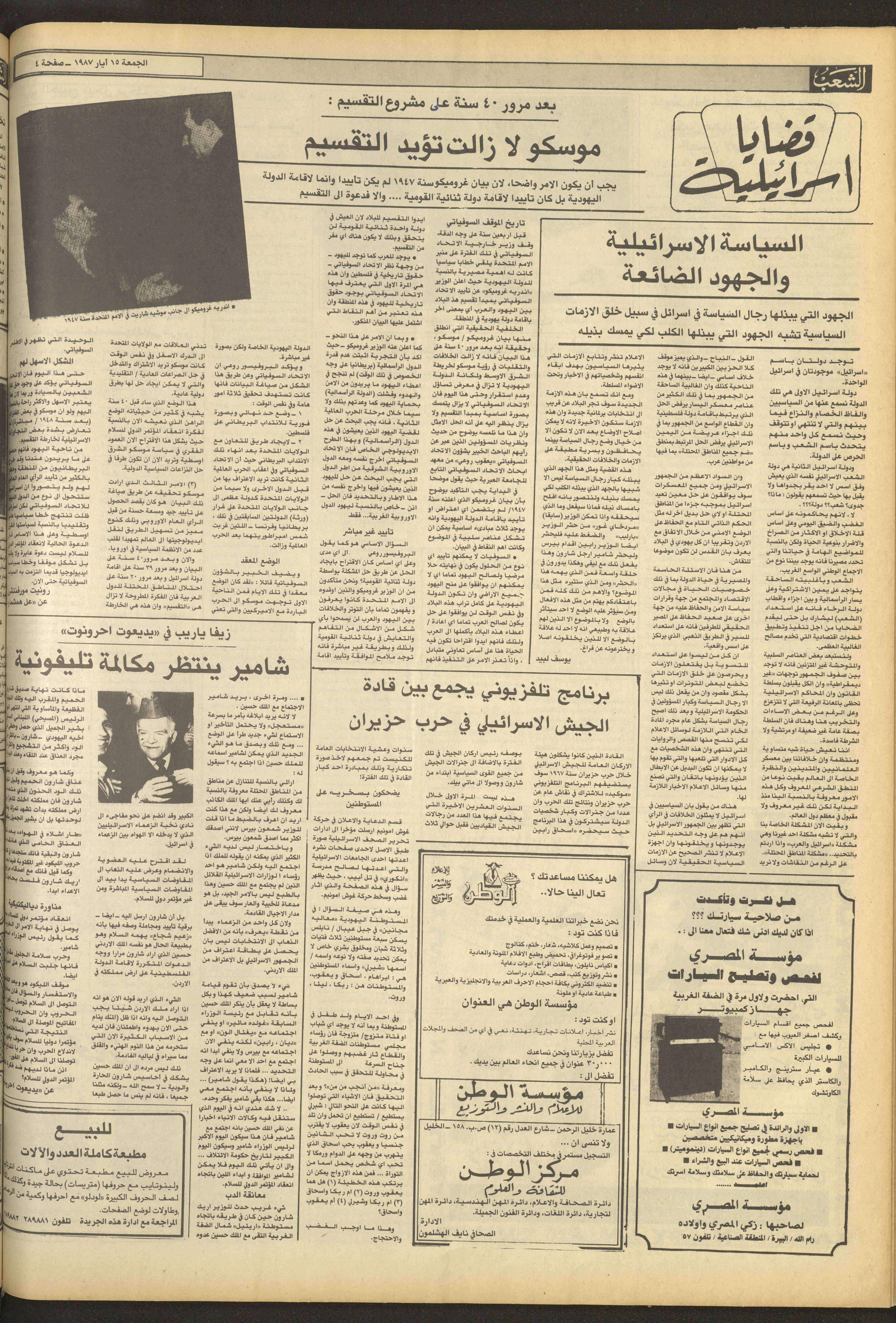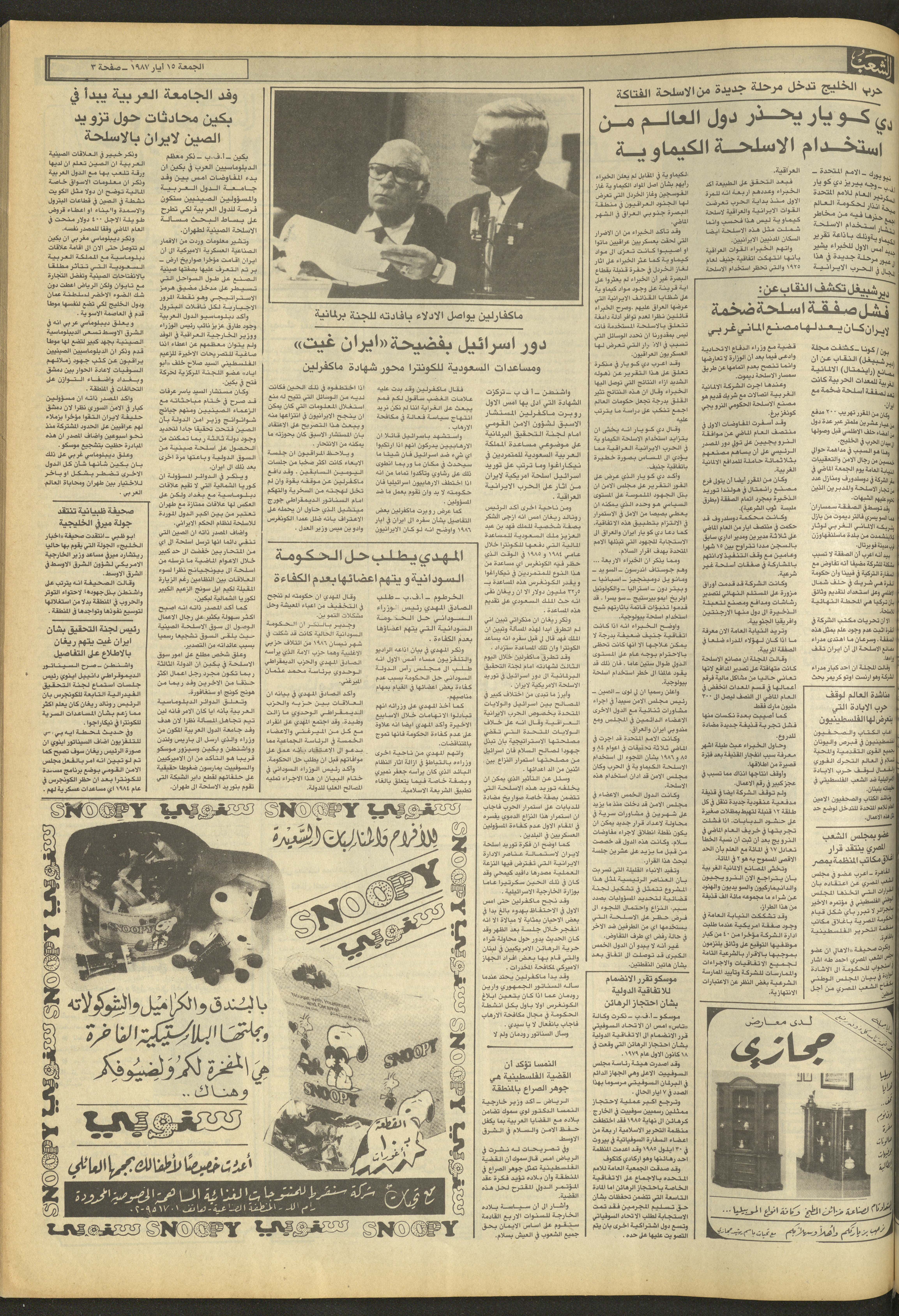 العدد 4701 من جريدة الشعب، 15 أيار 1987