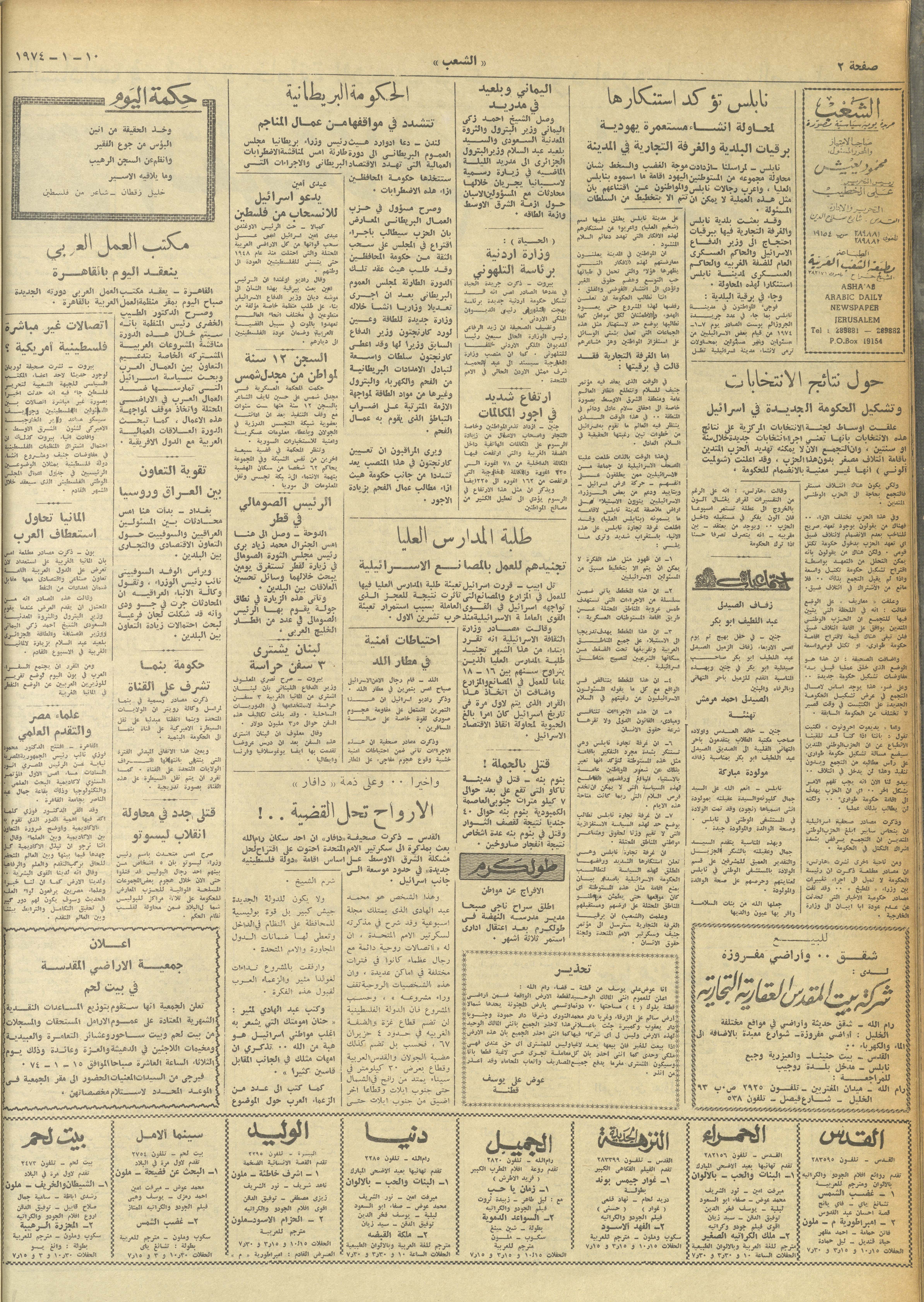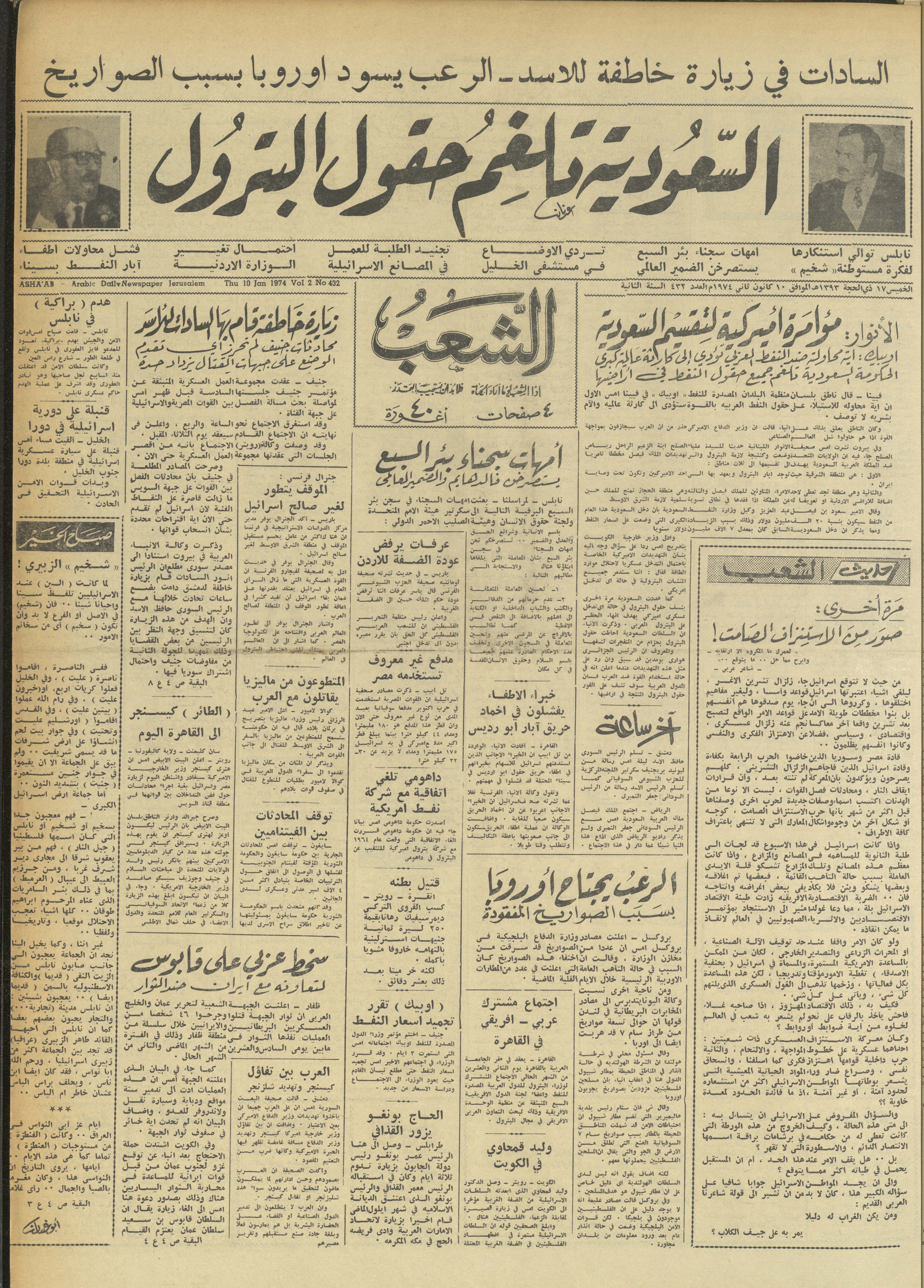 العدد 432 من جريدة الشعب، 10 كانون الثاني 1974