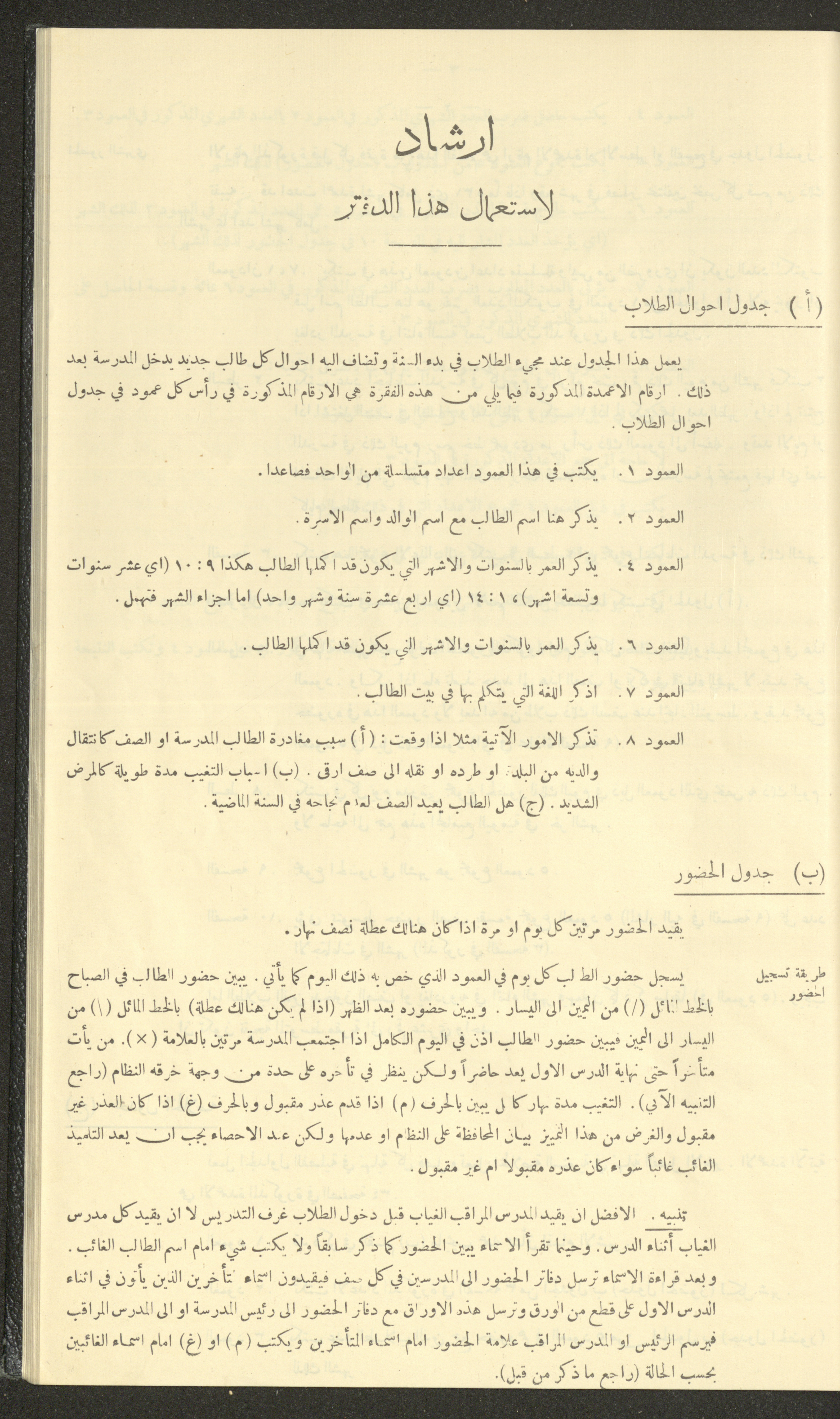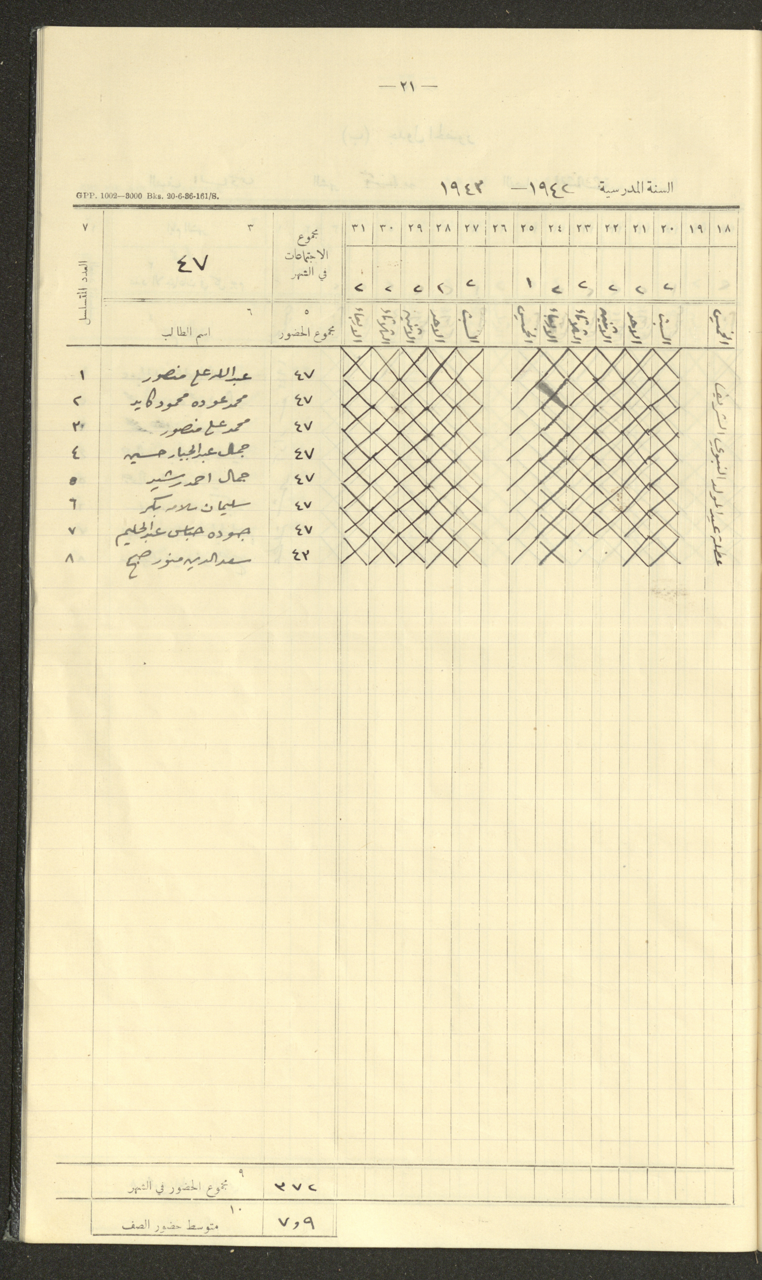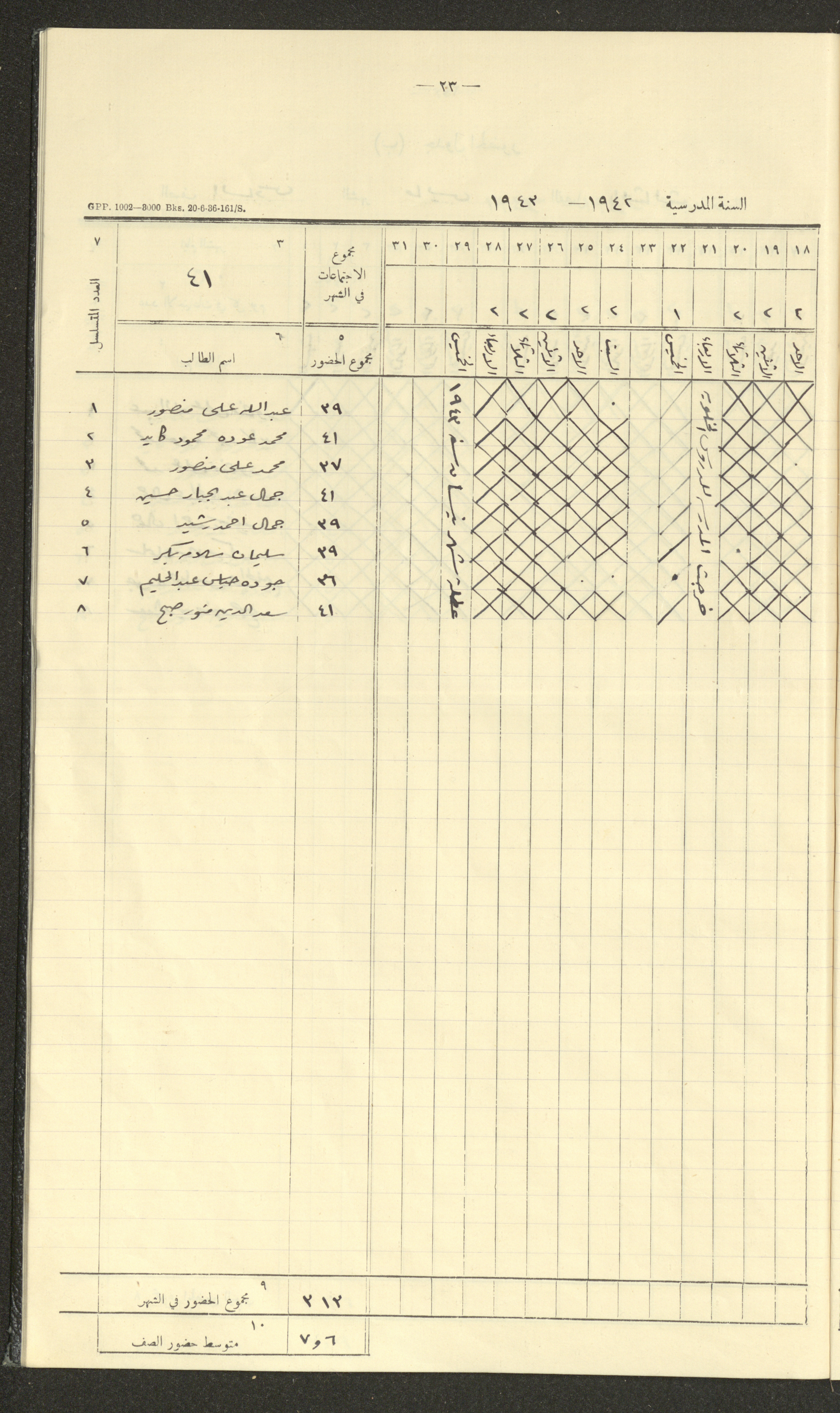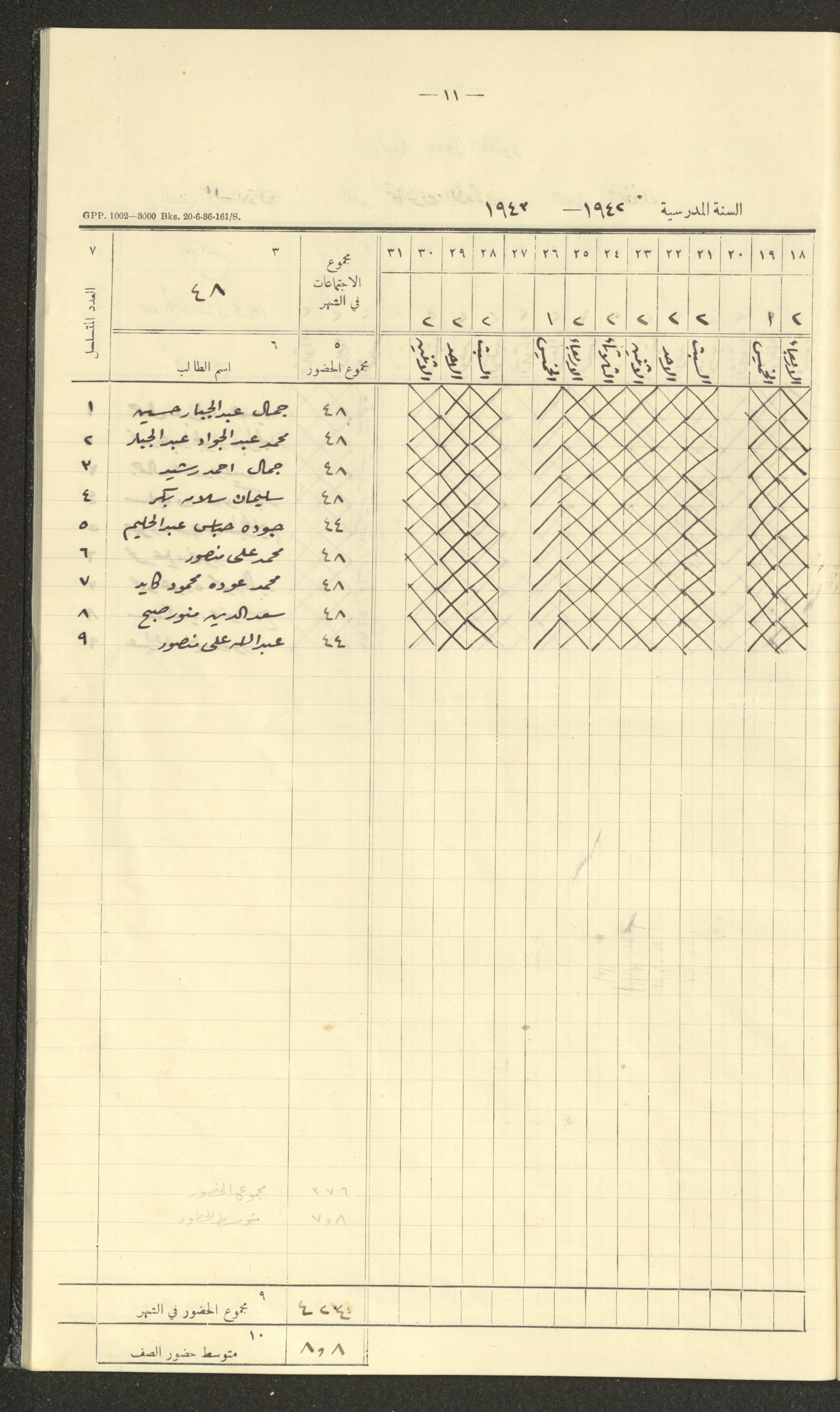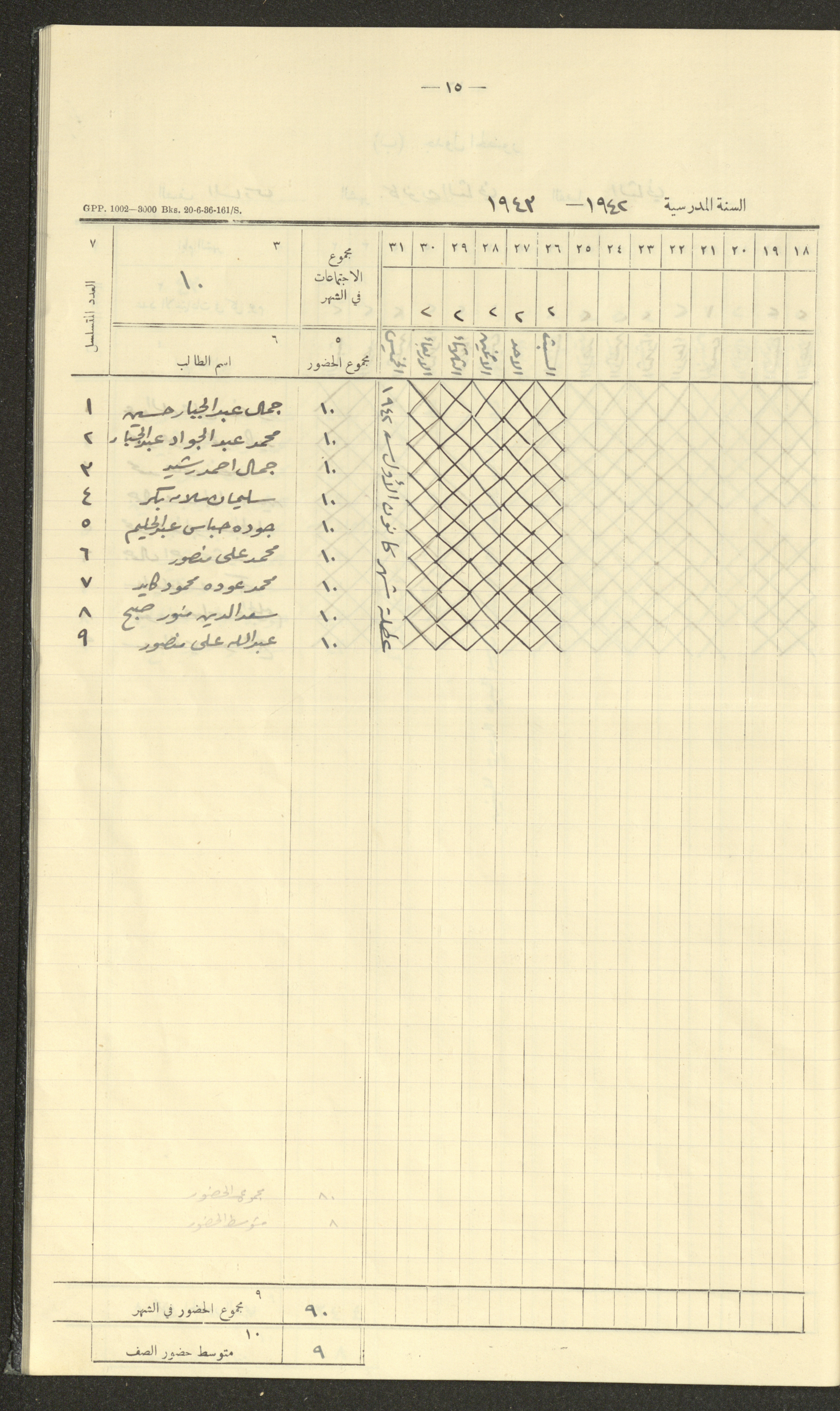 جداول حضور طلاب، مدرسة دير دبوان، 1942-1943