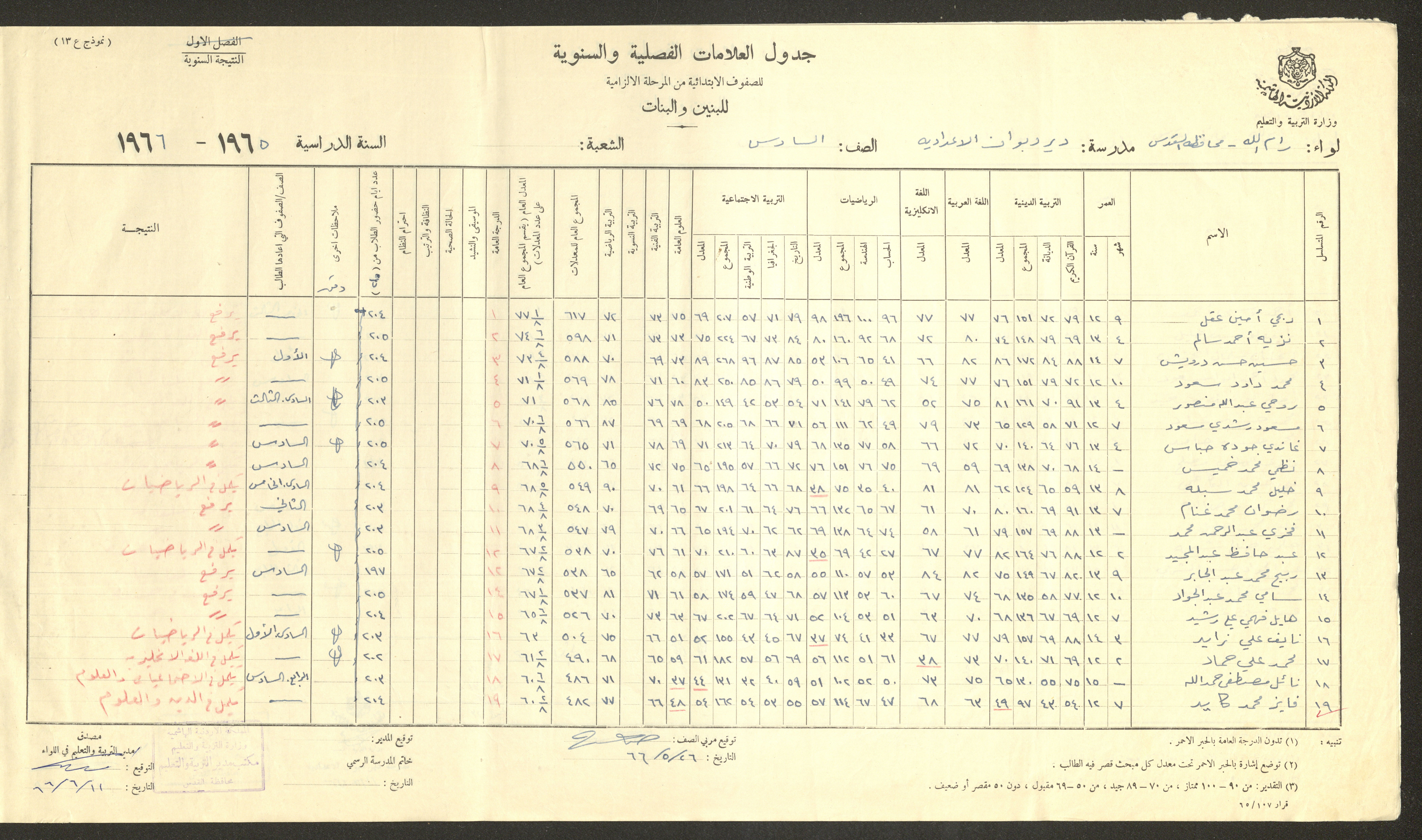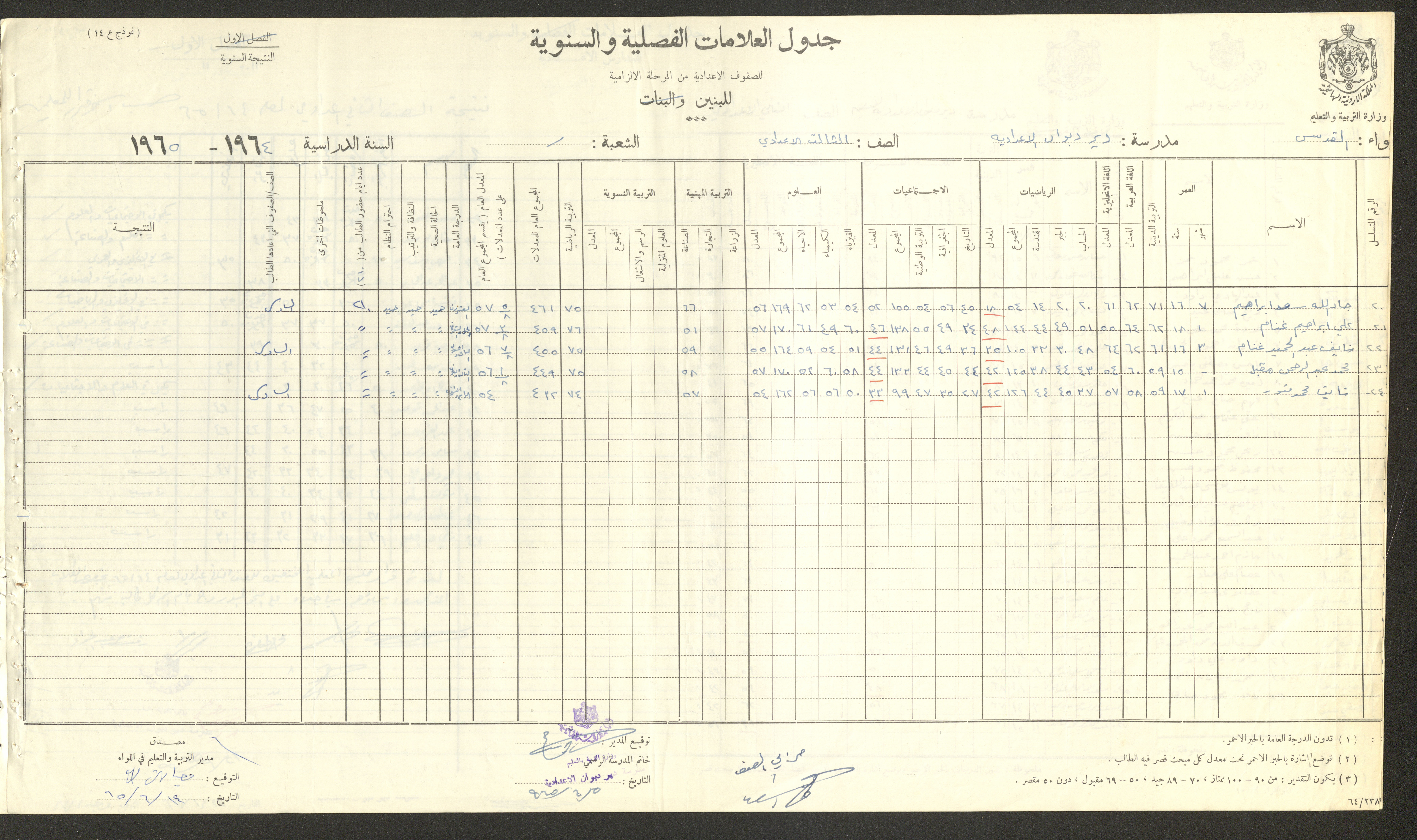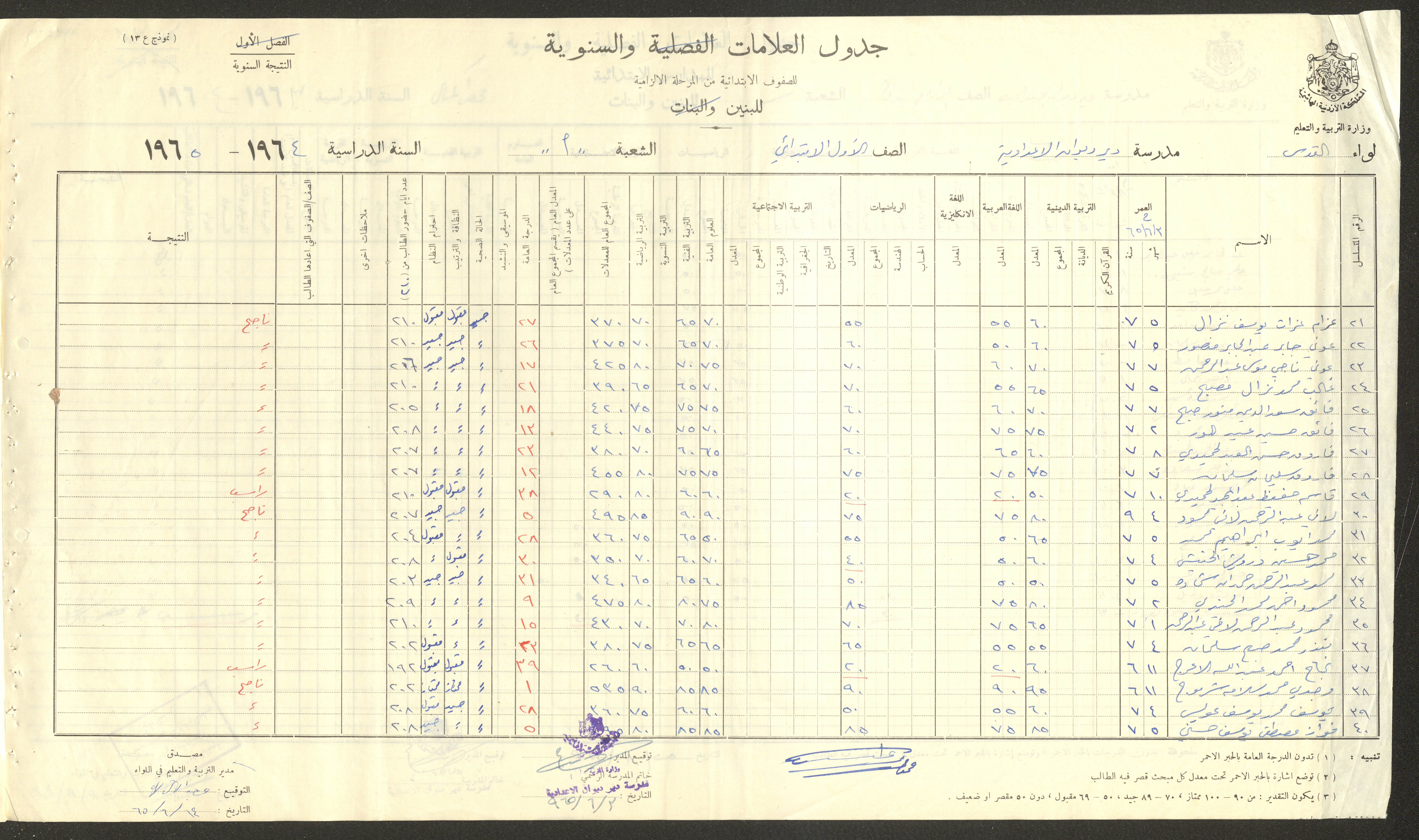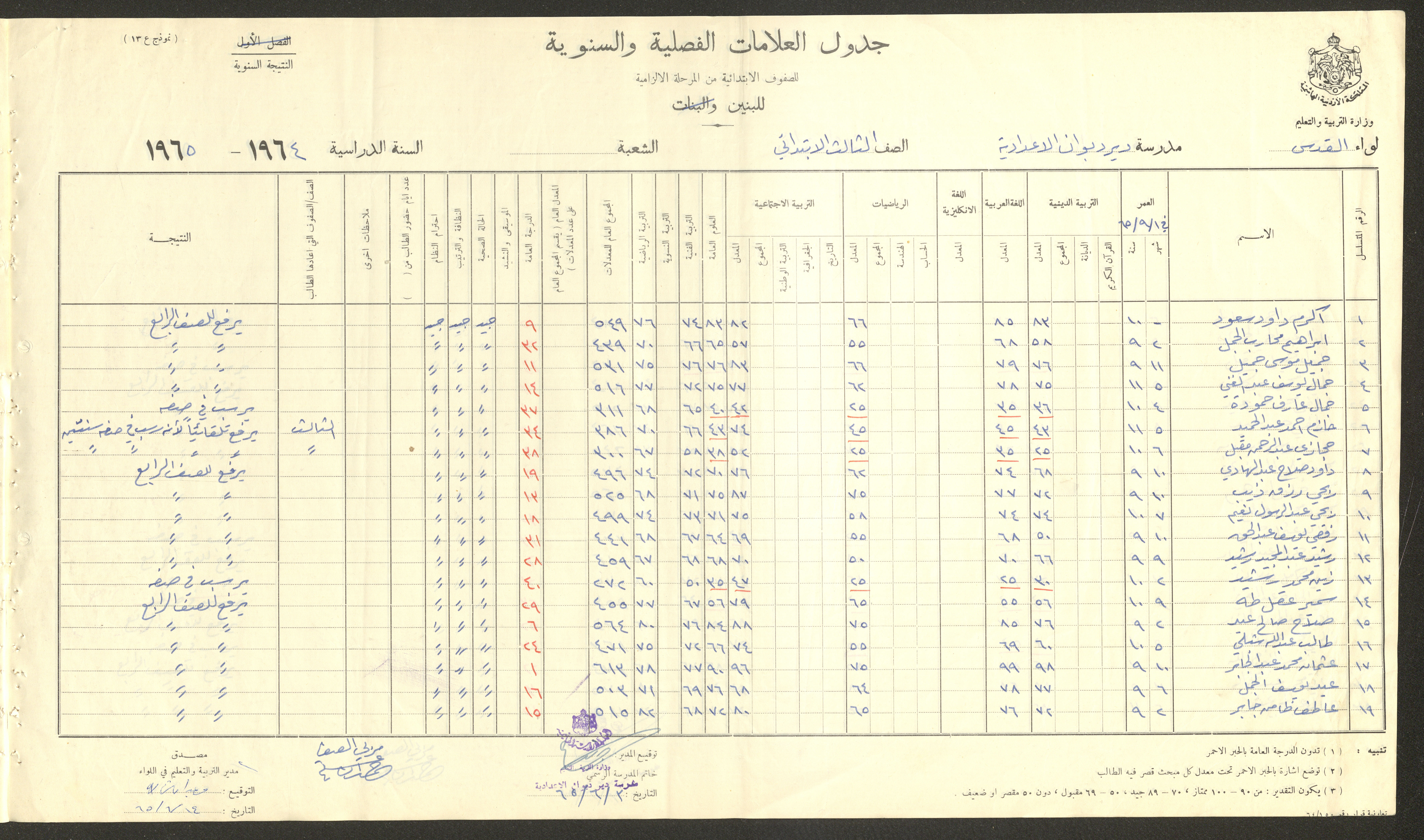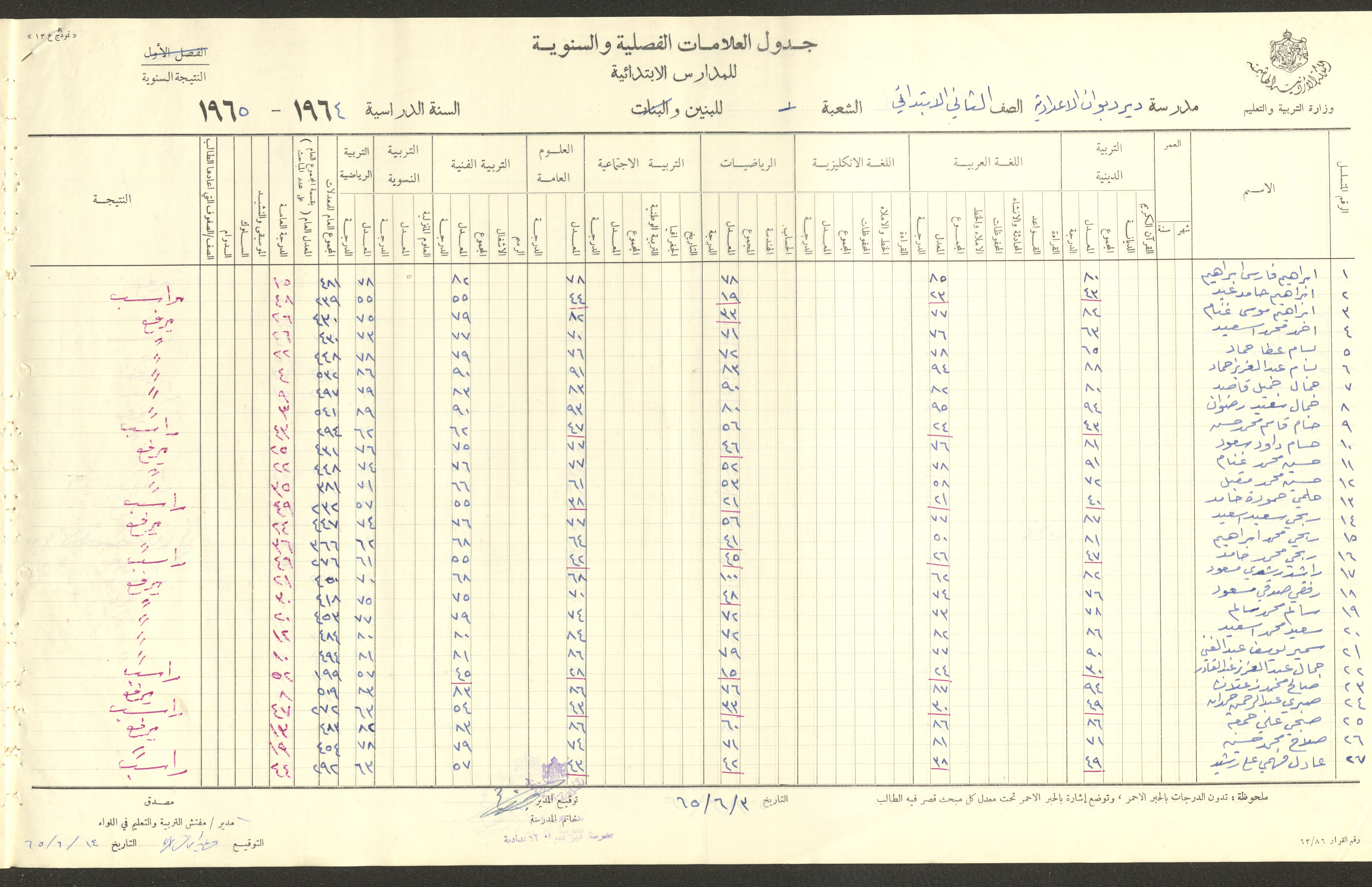 Students Marks Sheets, Deir Dibwan School, 1962-65