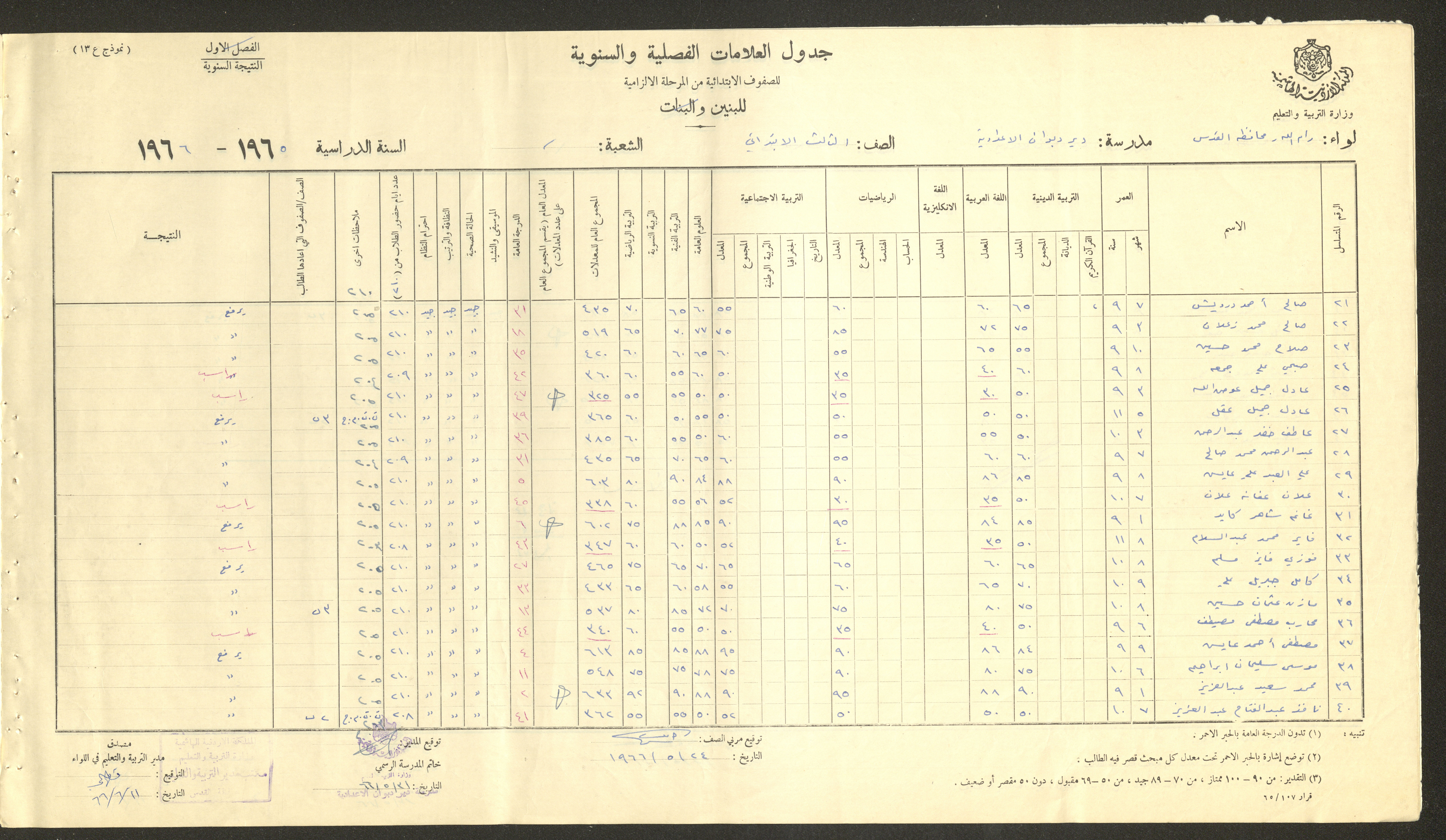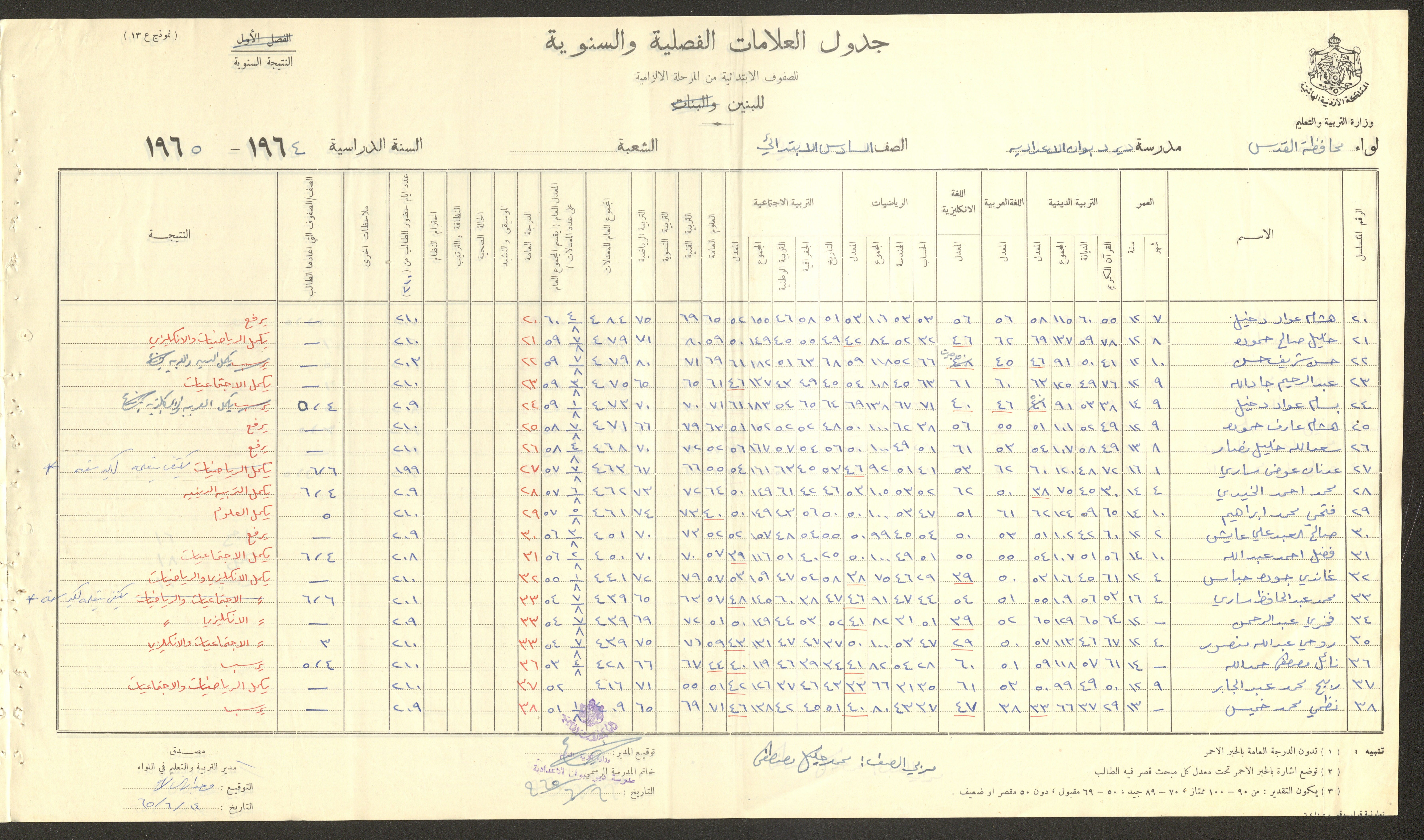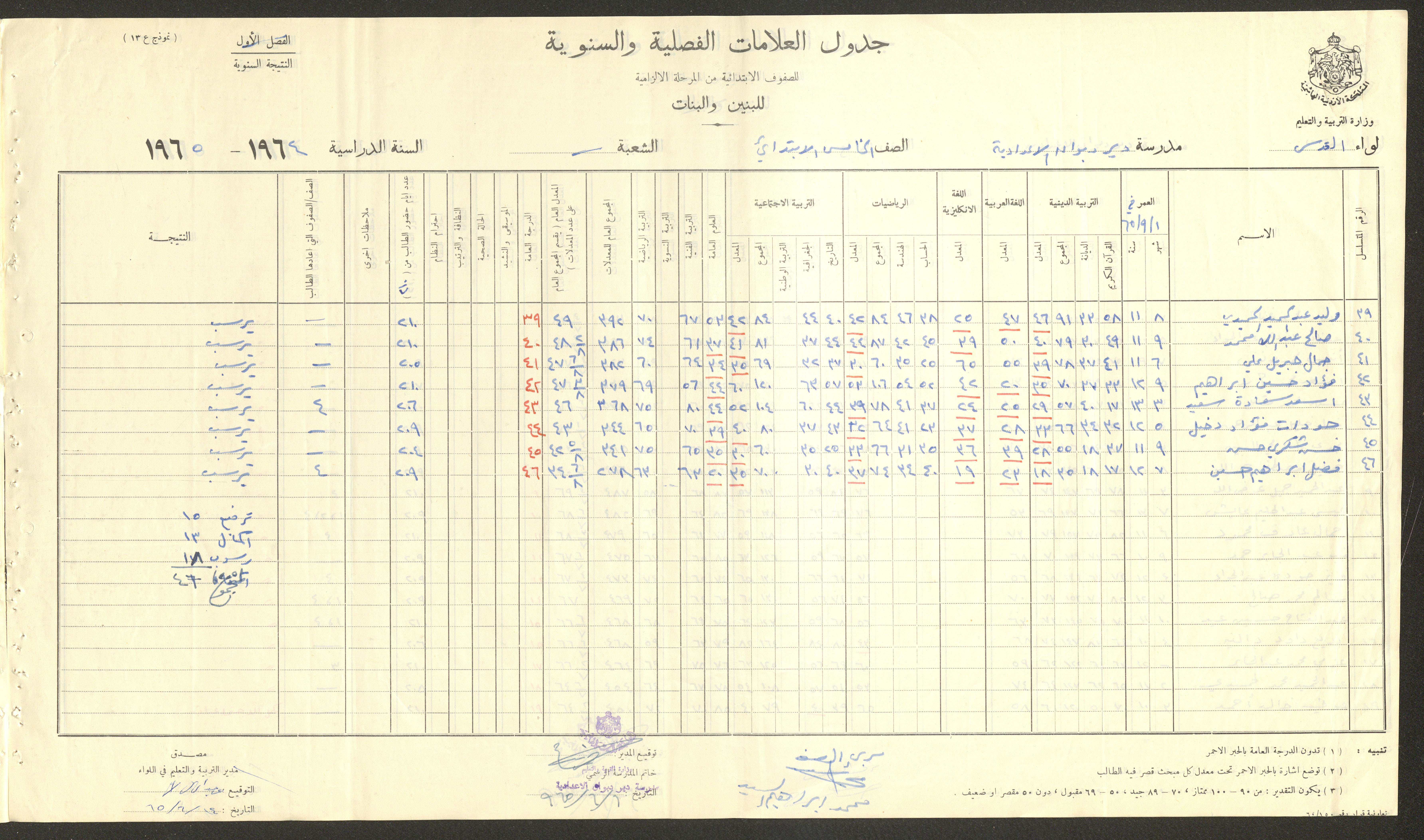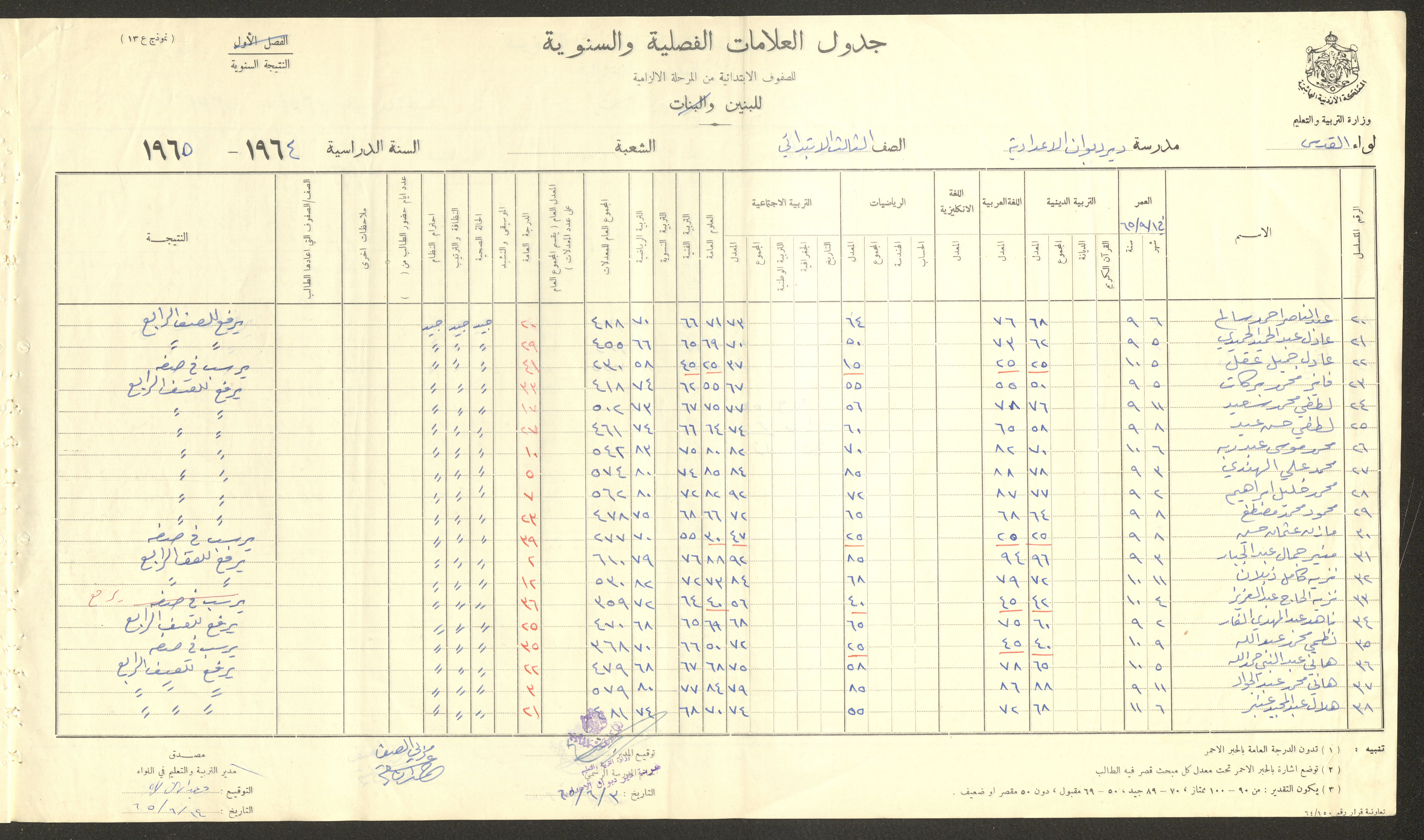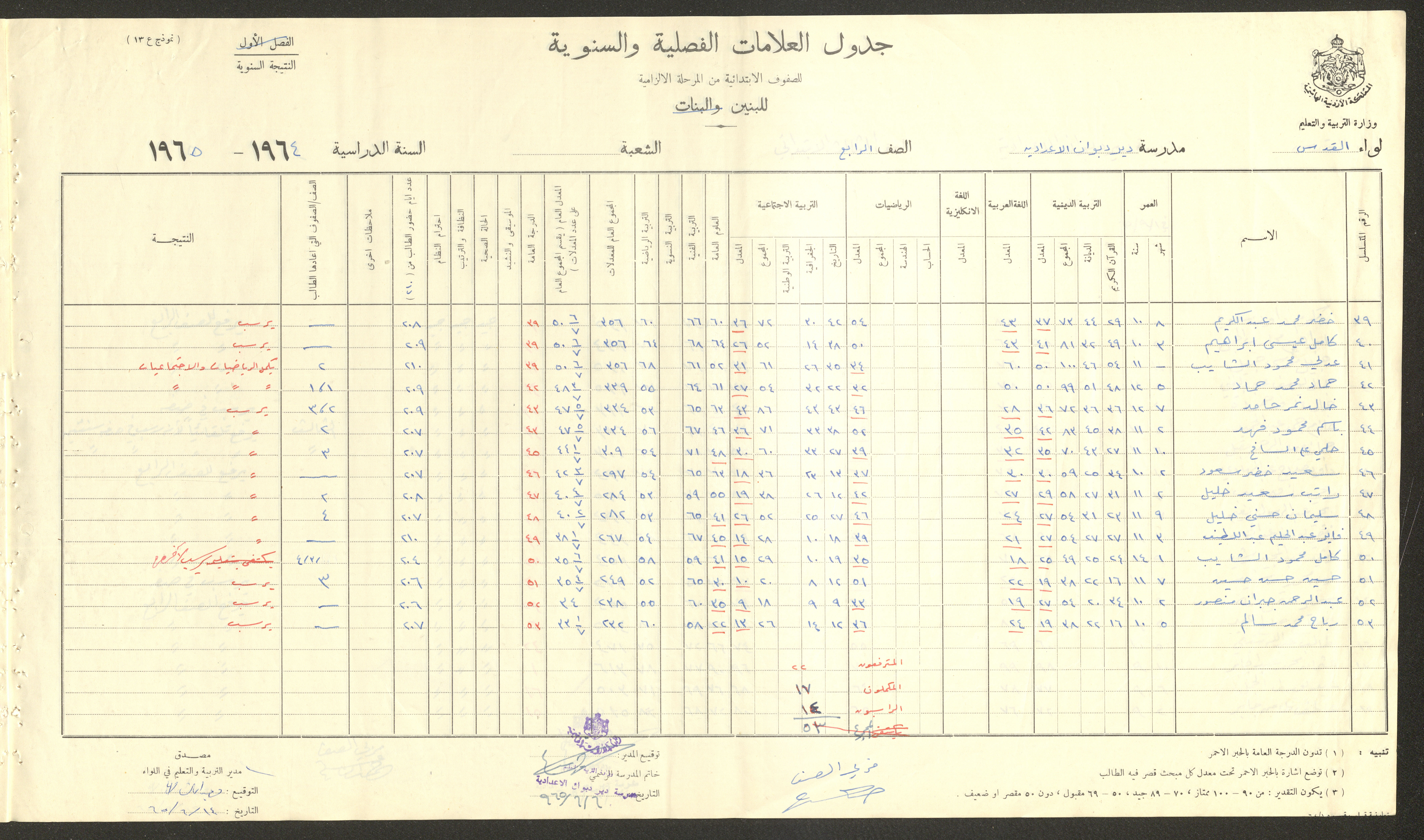 Students Marks Sheets, Deir Dibwan School, 1962-65