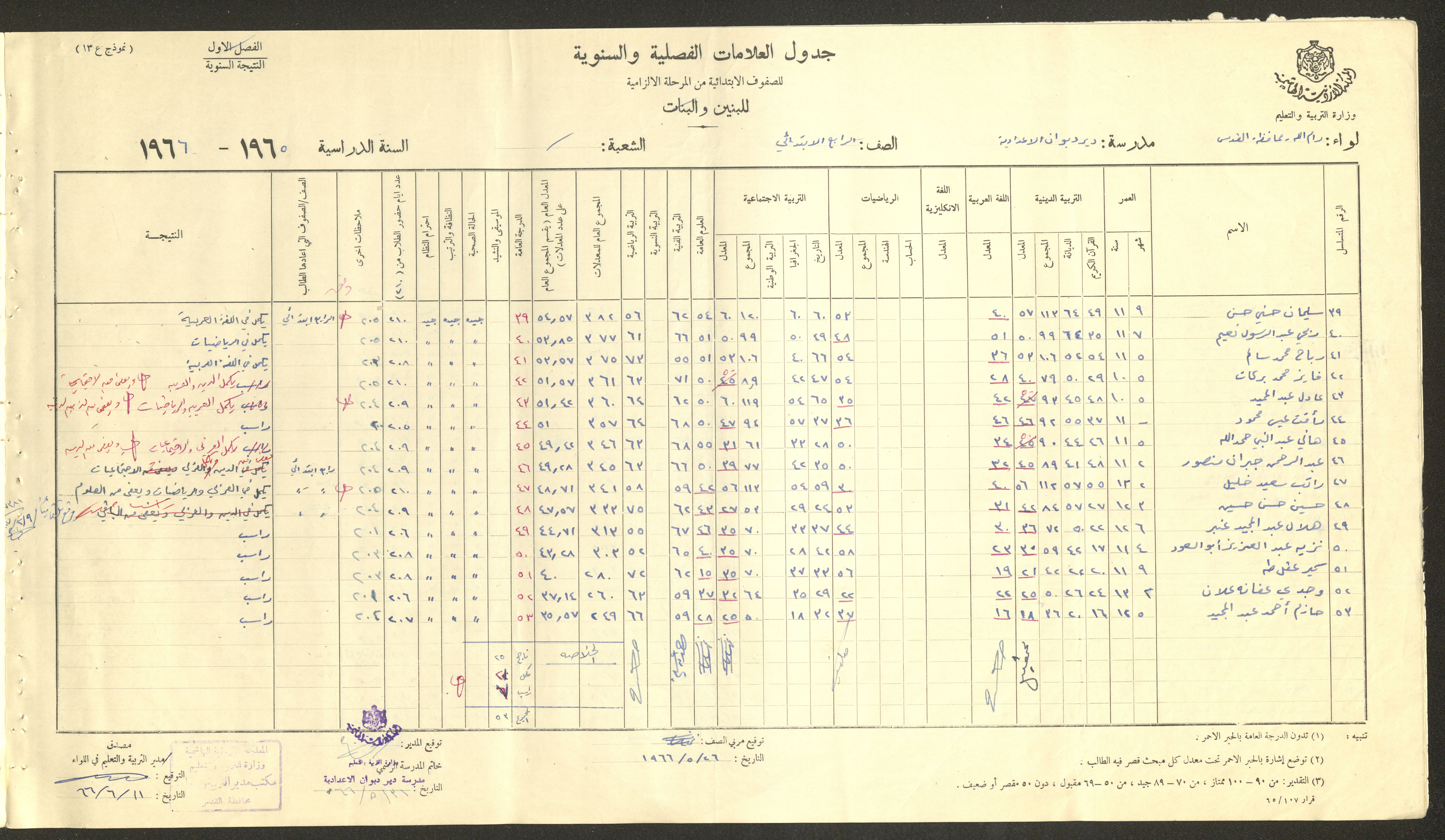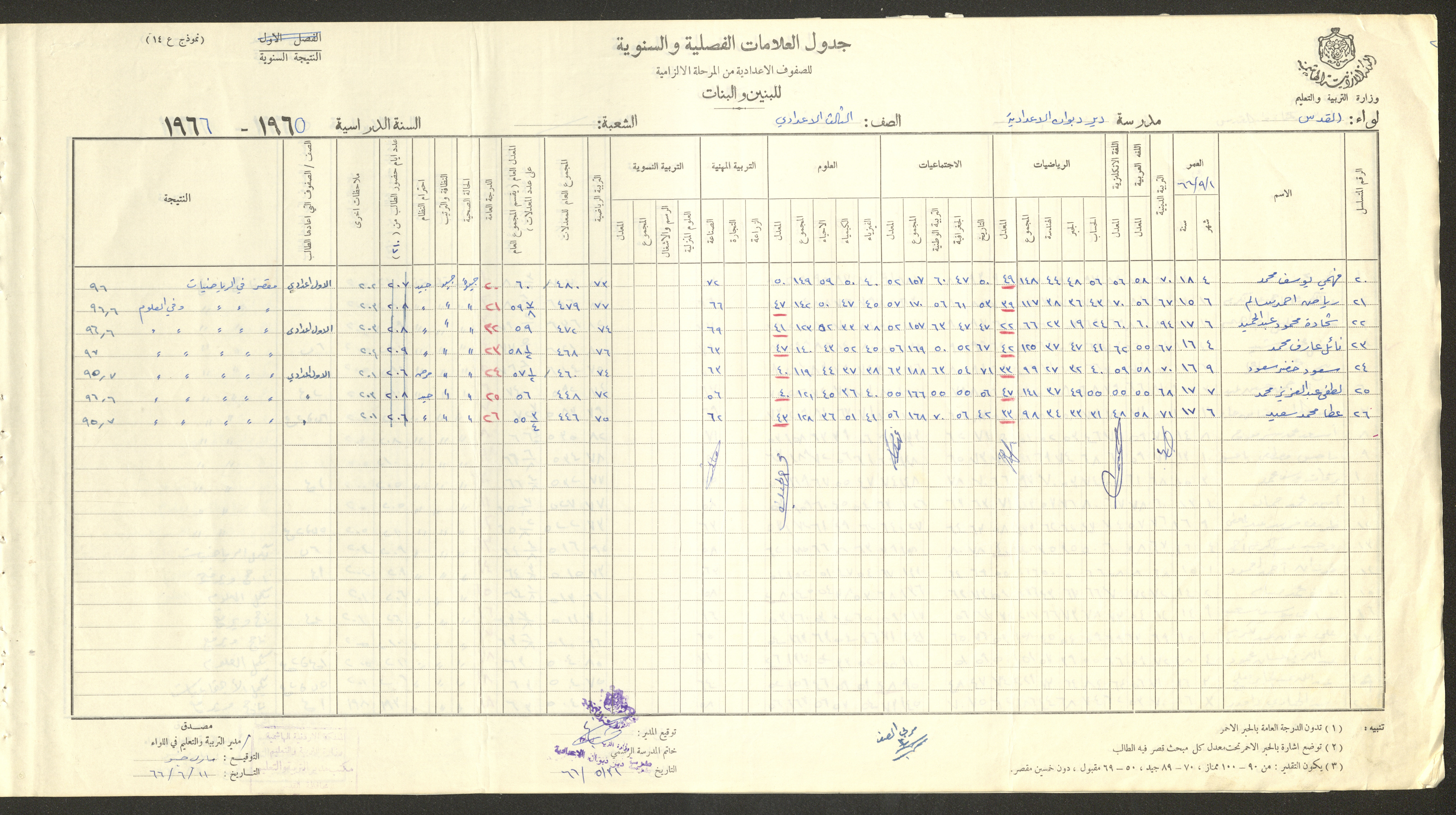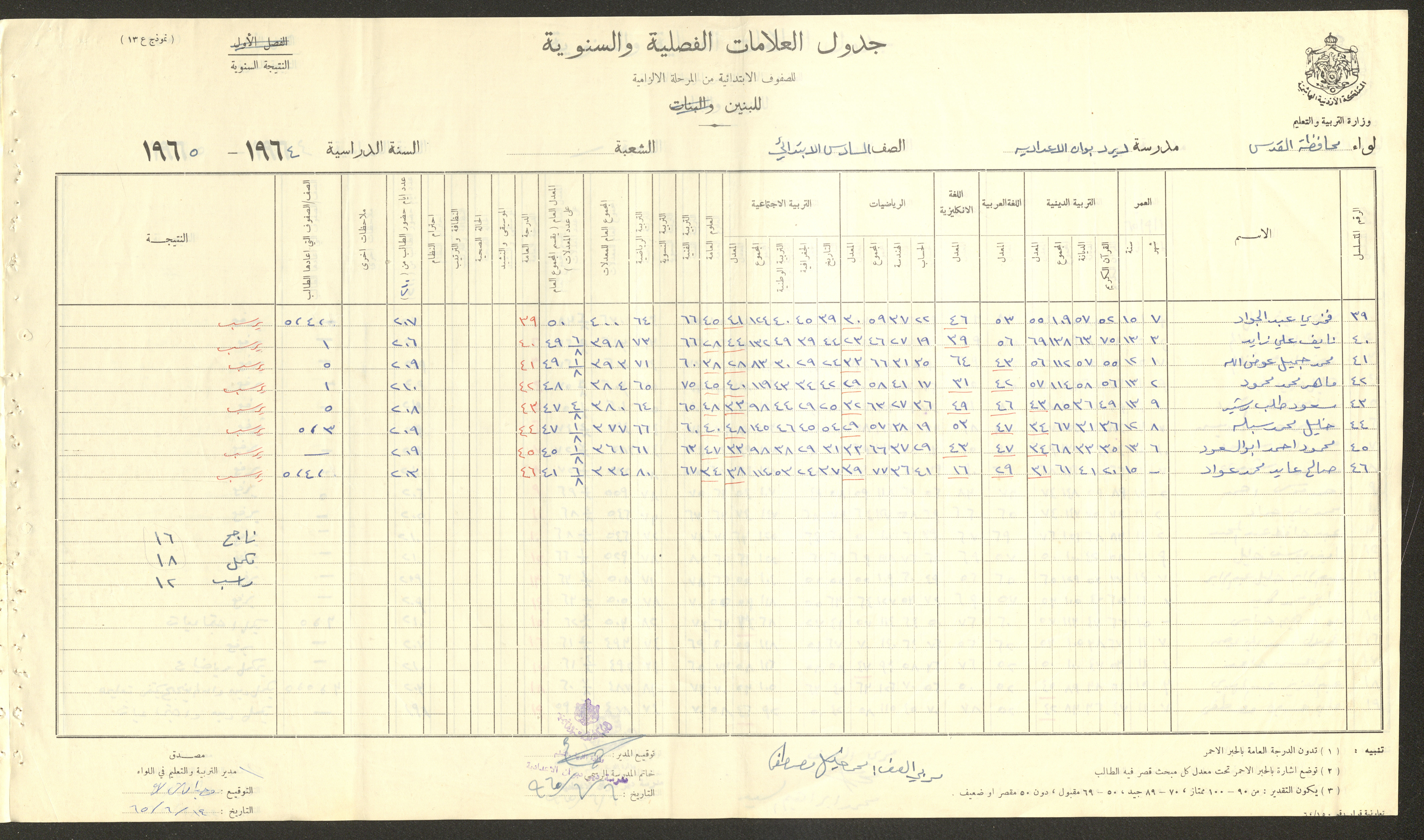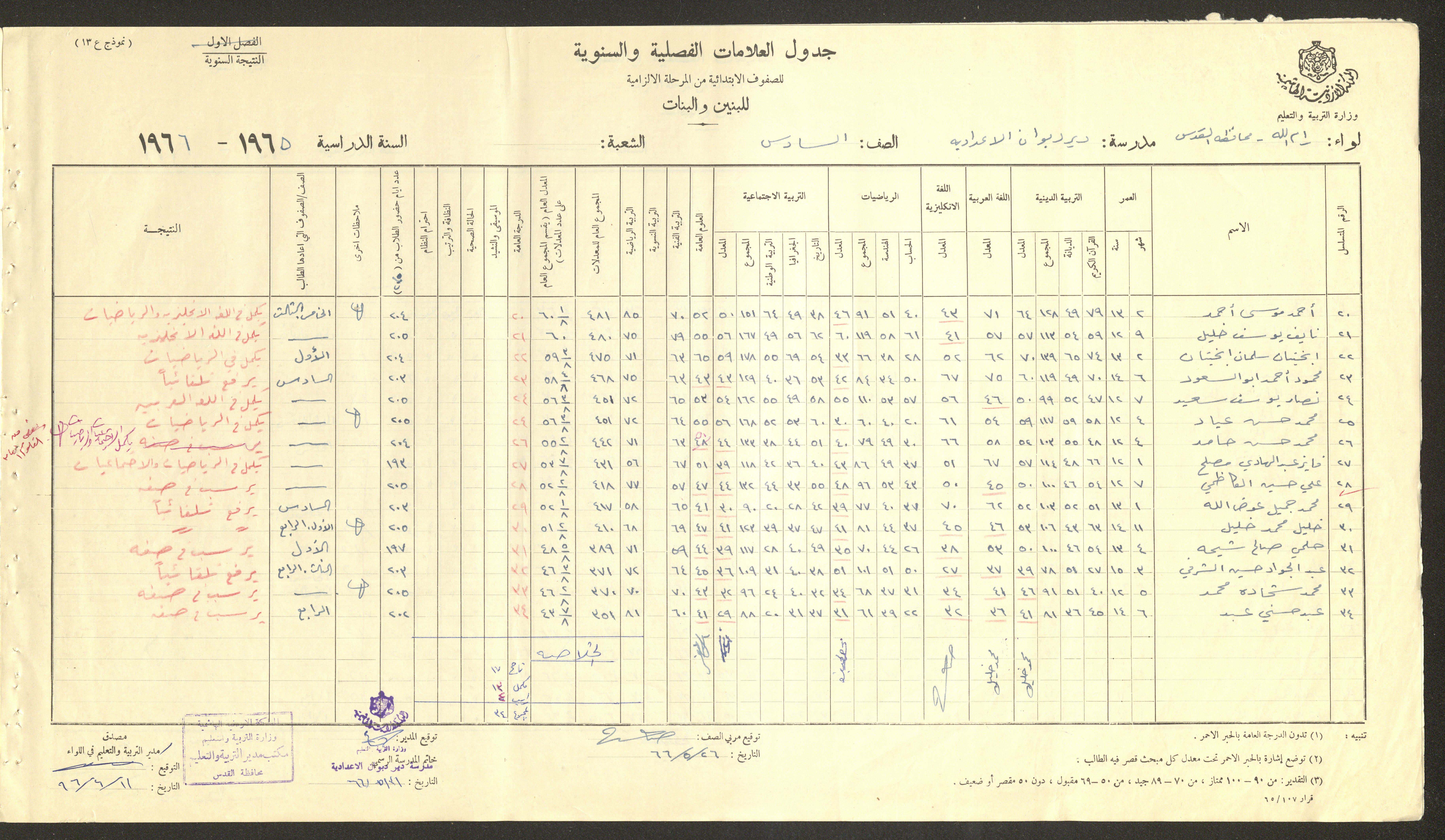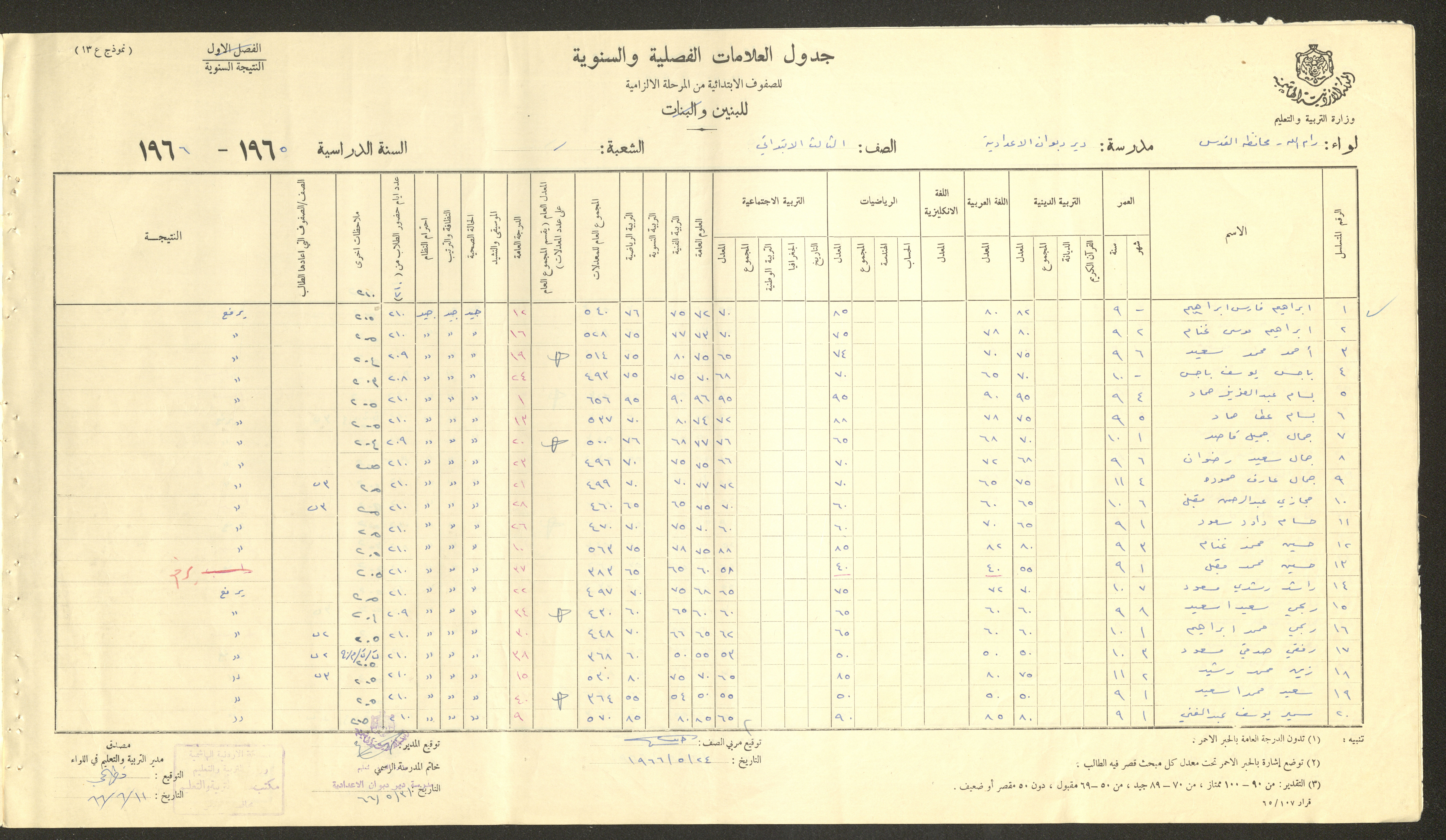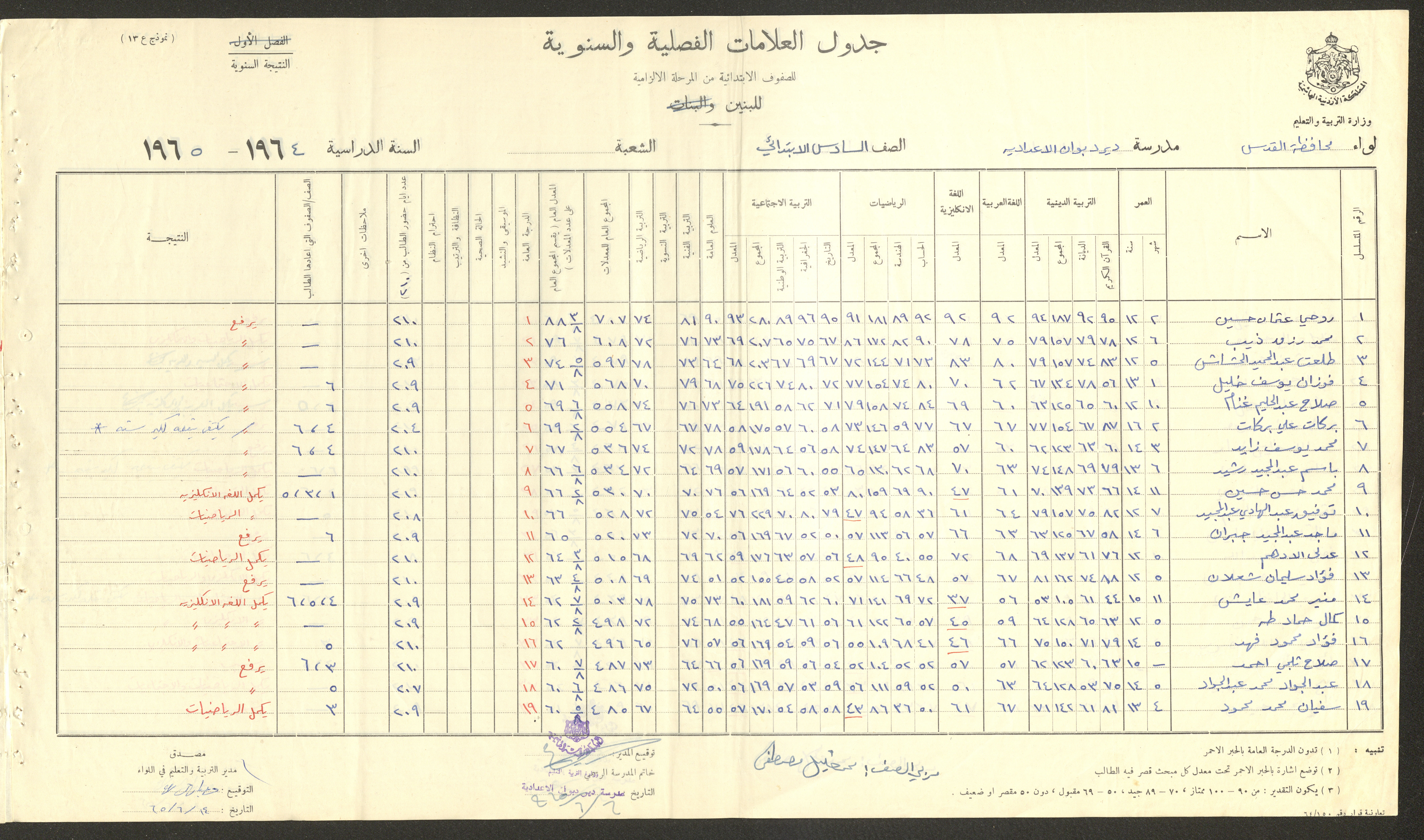 Students Marks Sheets, Deir Dibwan School, 1962-65