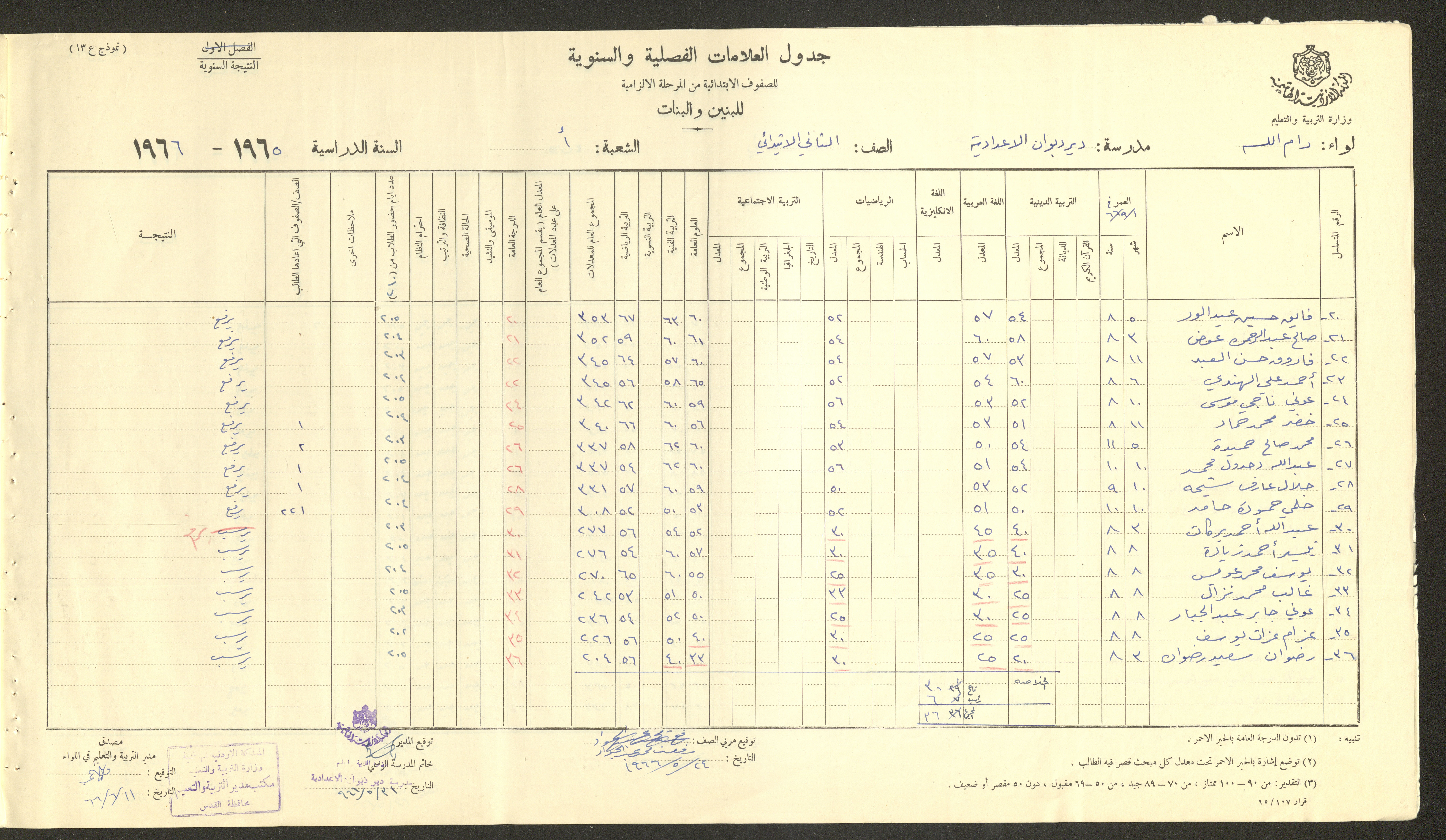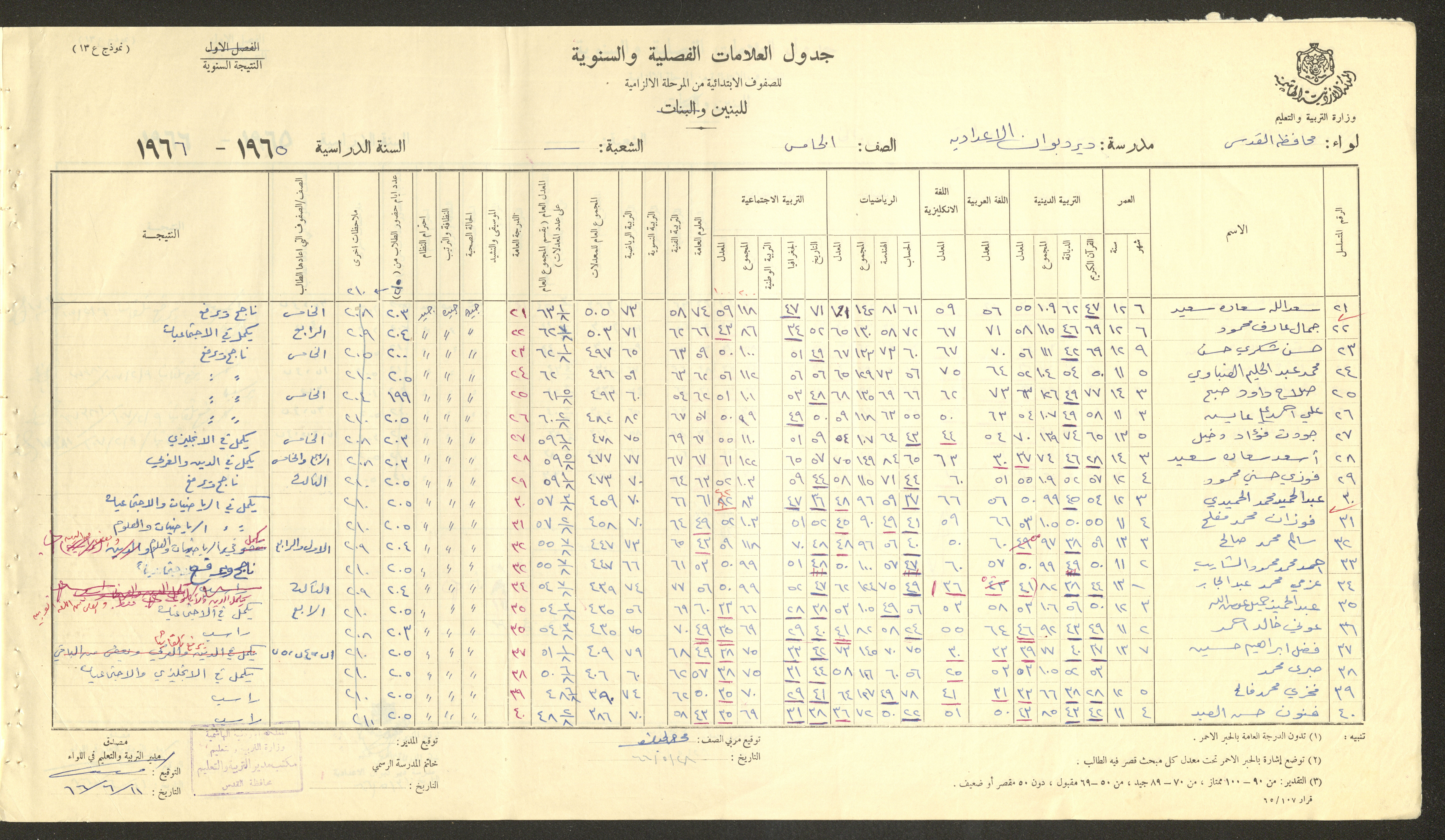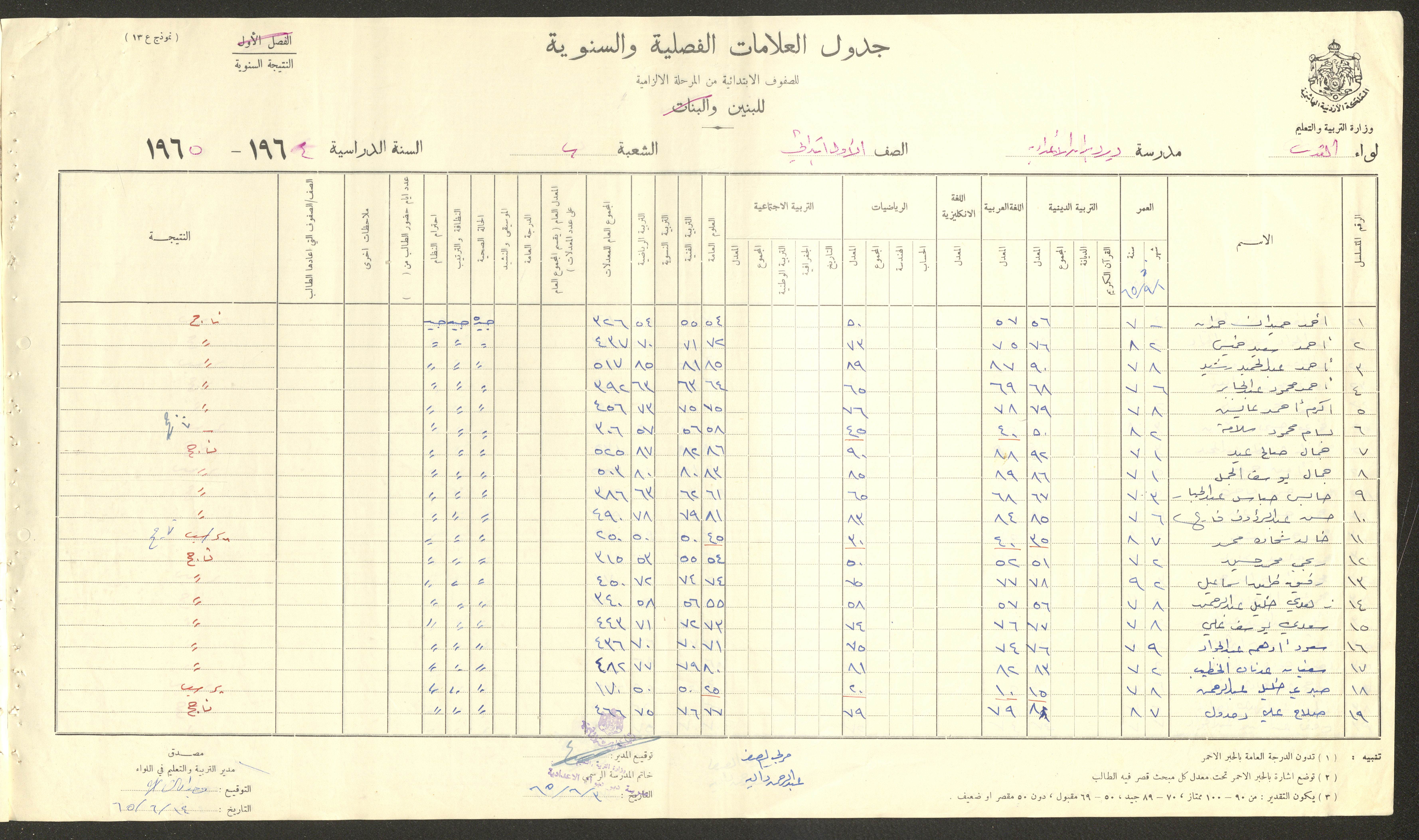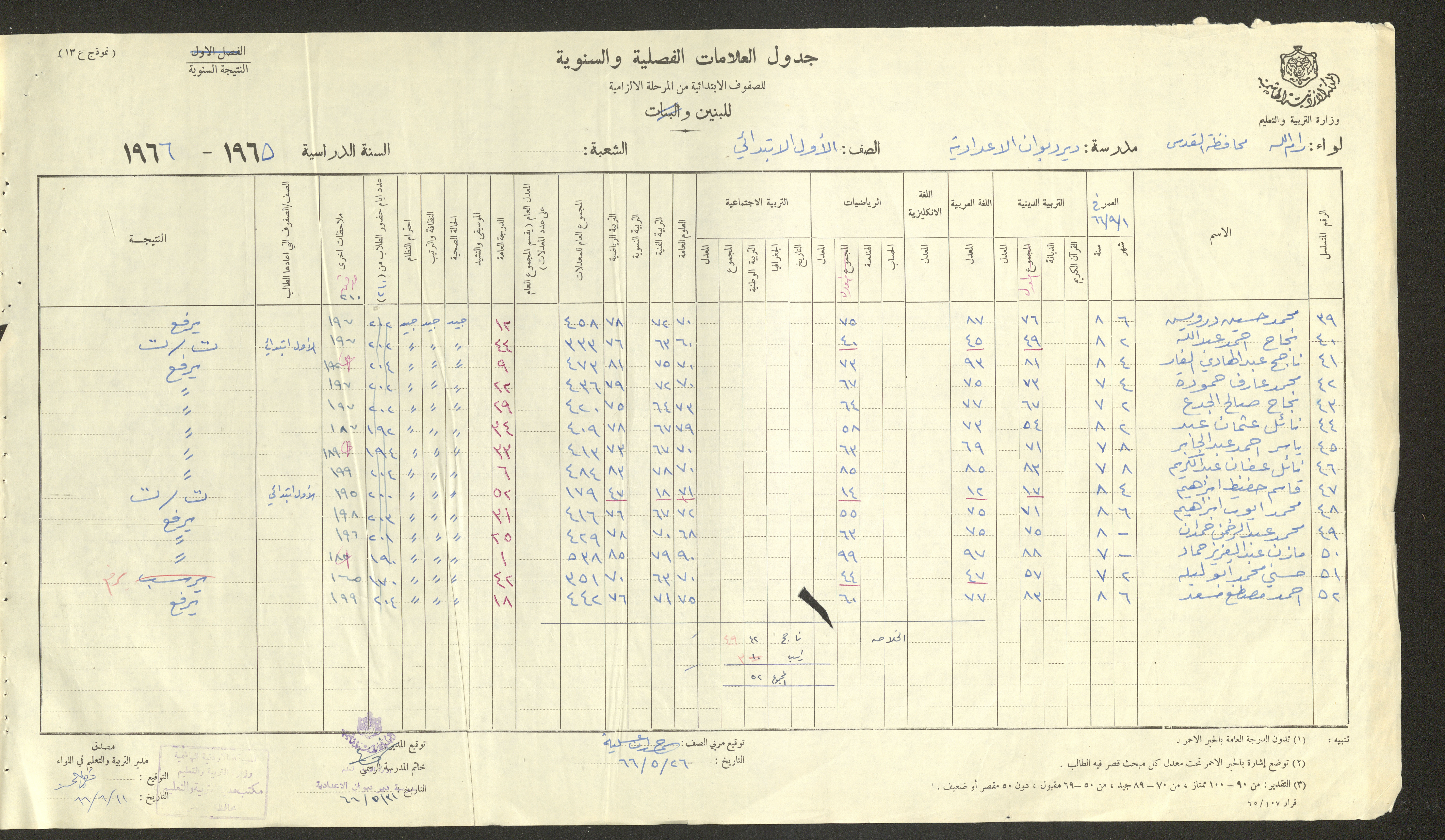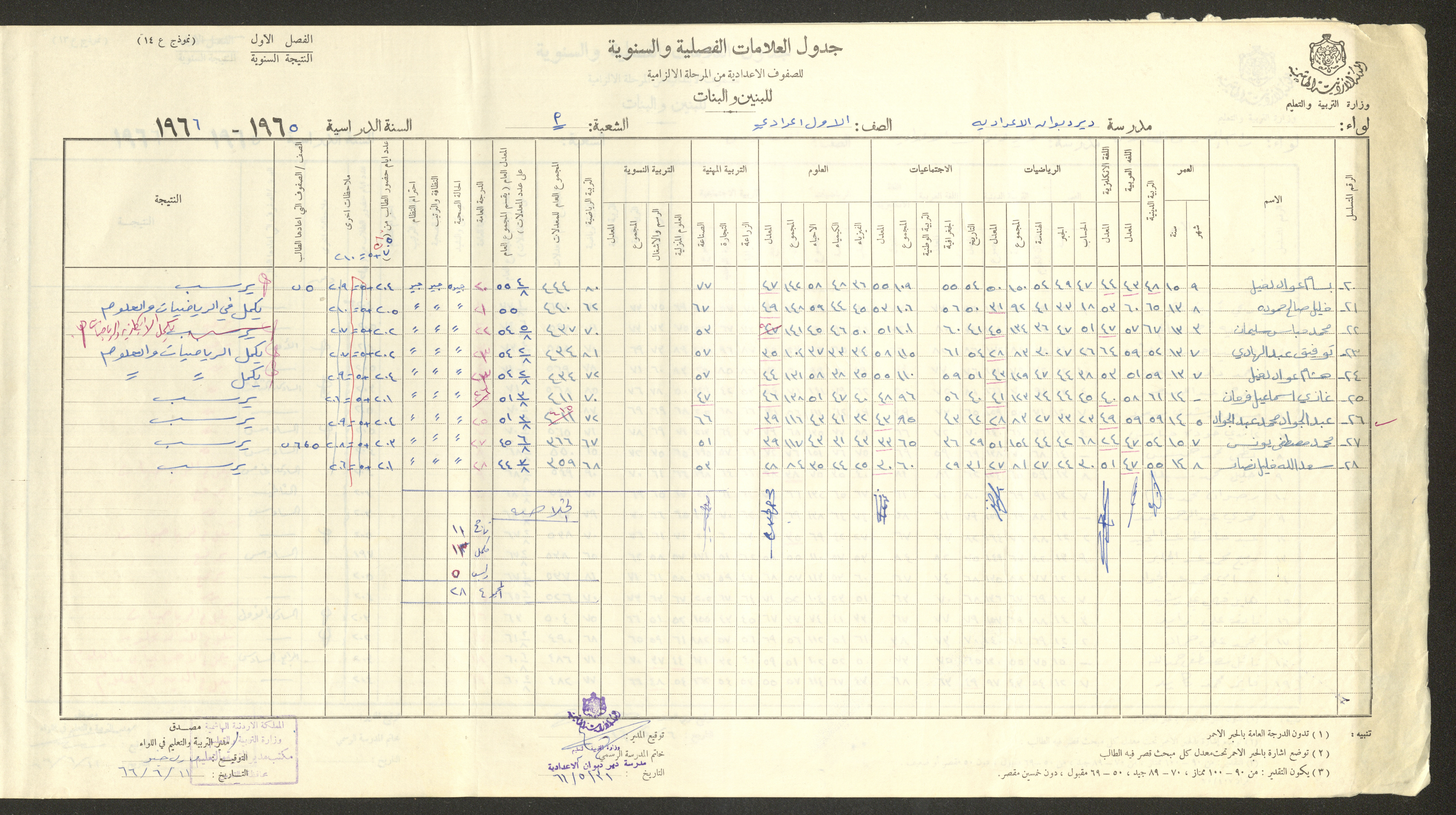 Students Marks Sheets, Deir Dibwan School, 1962-65