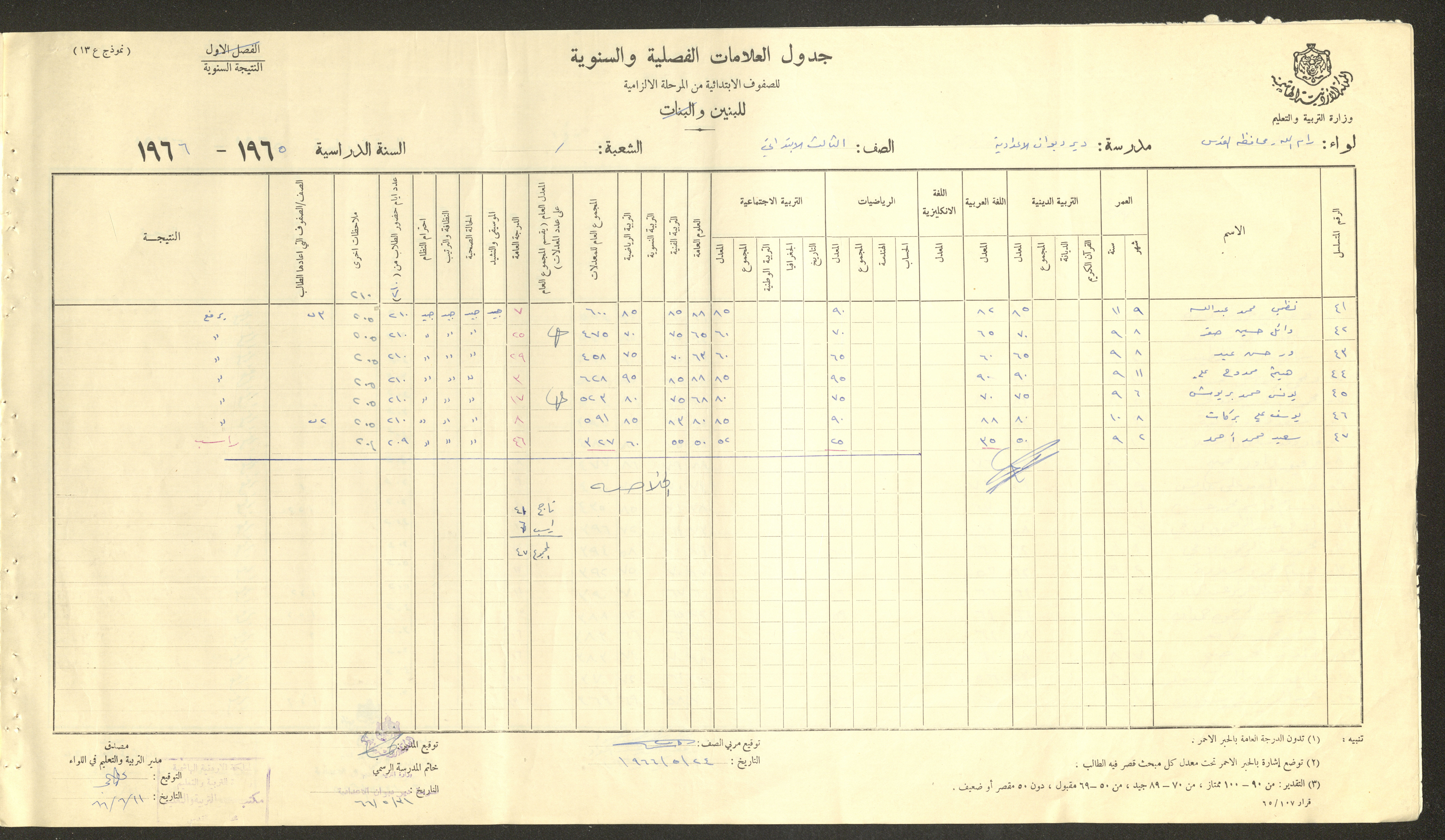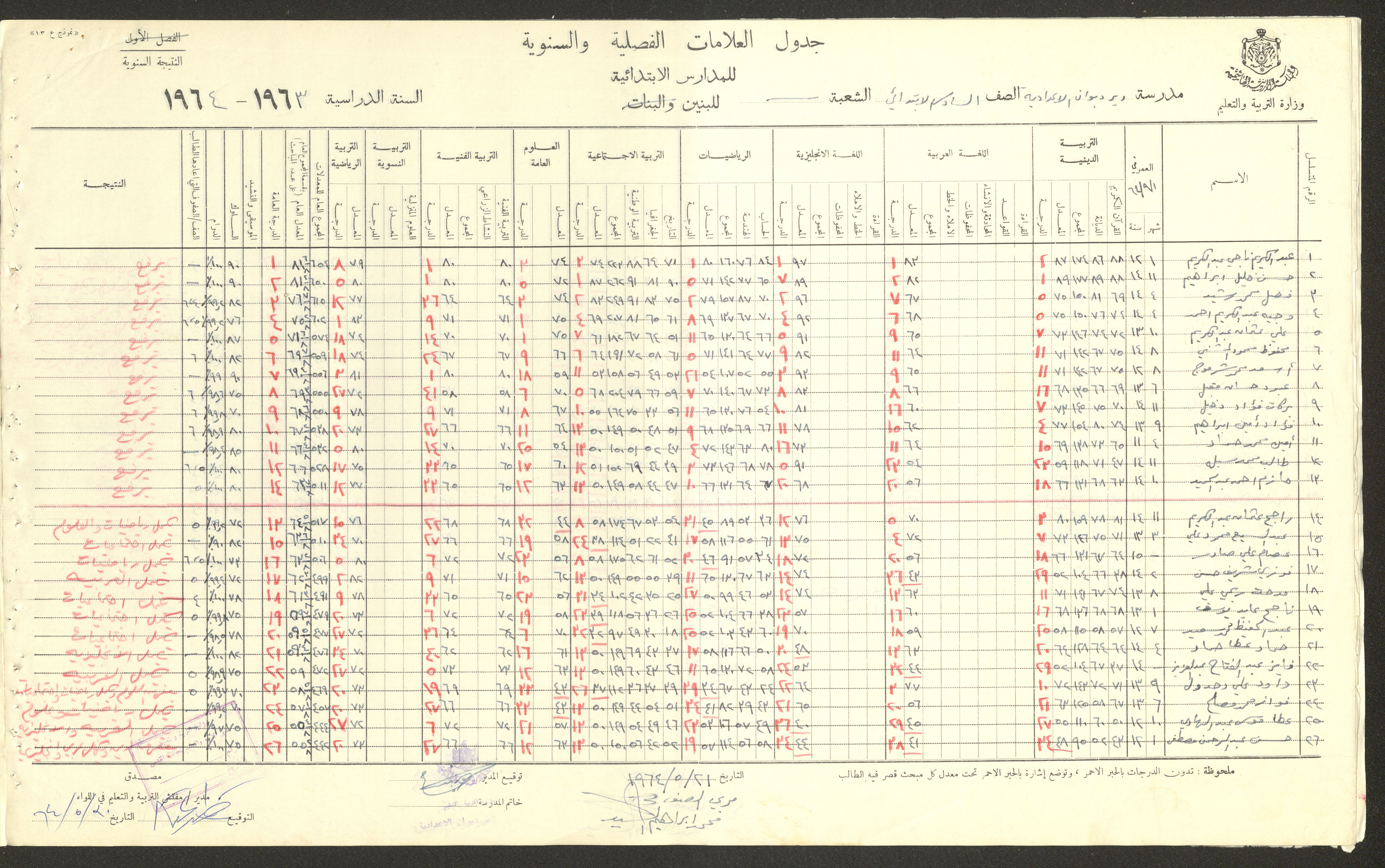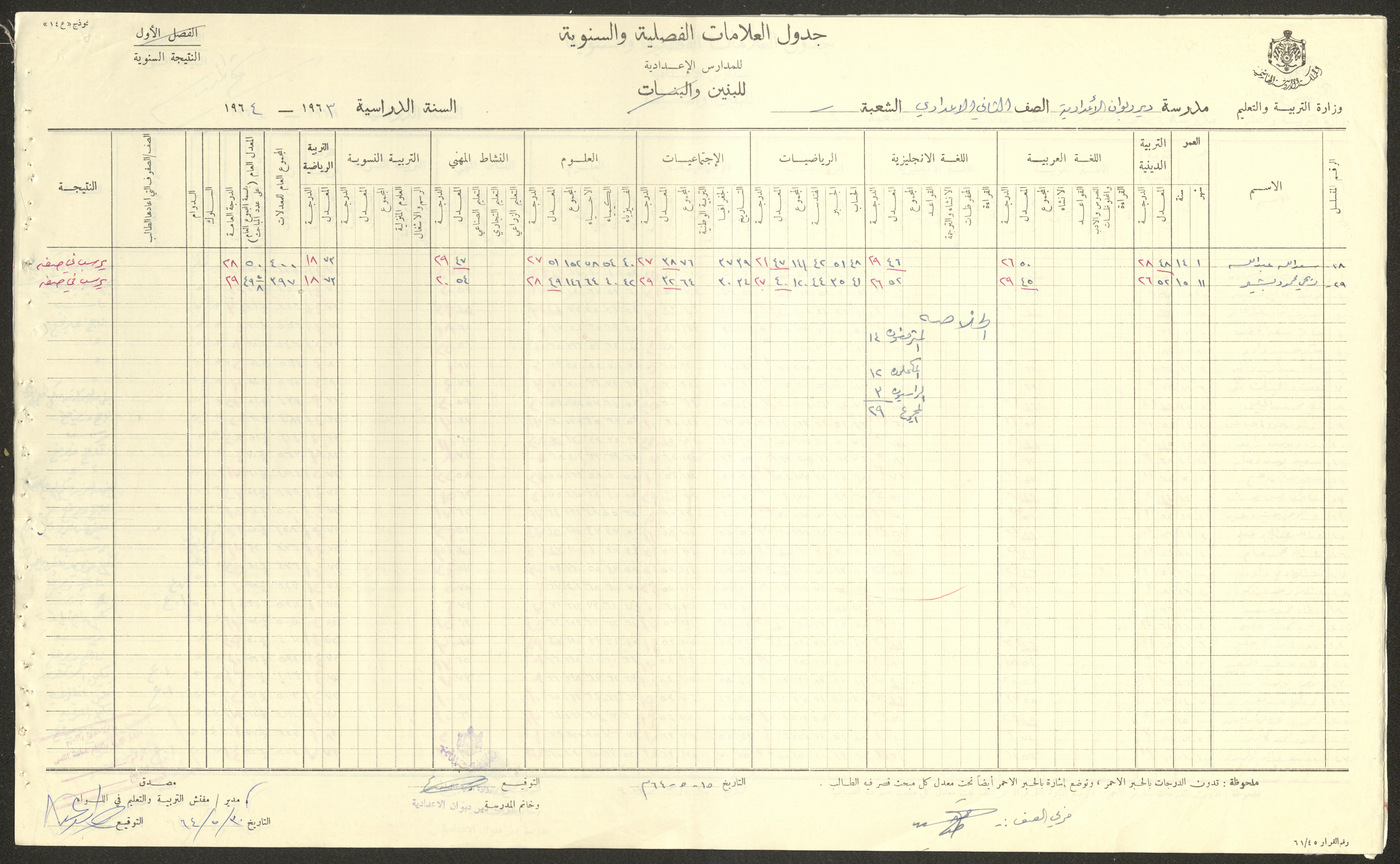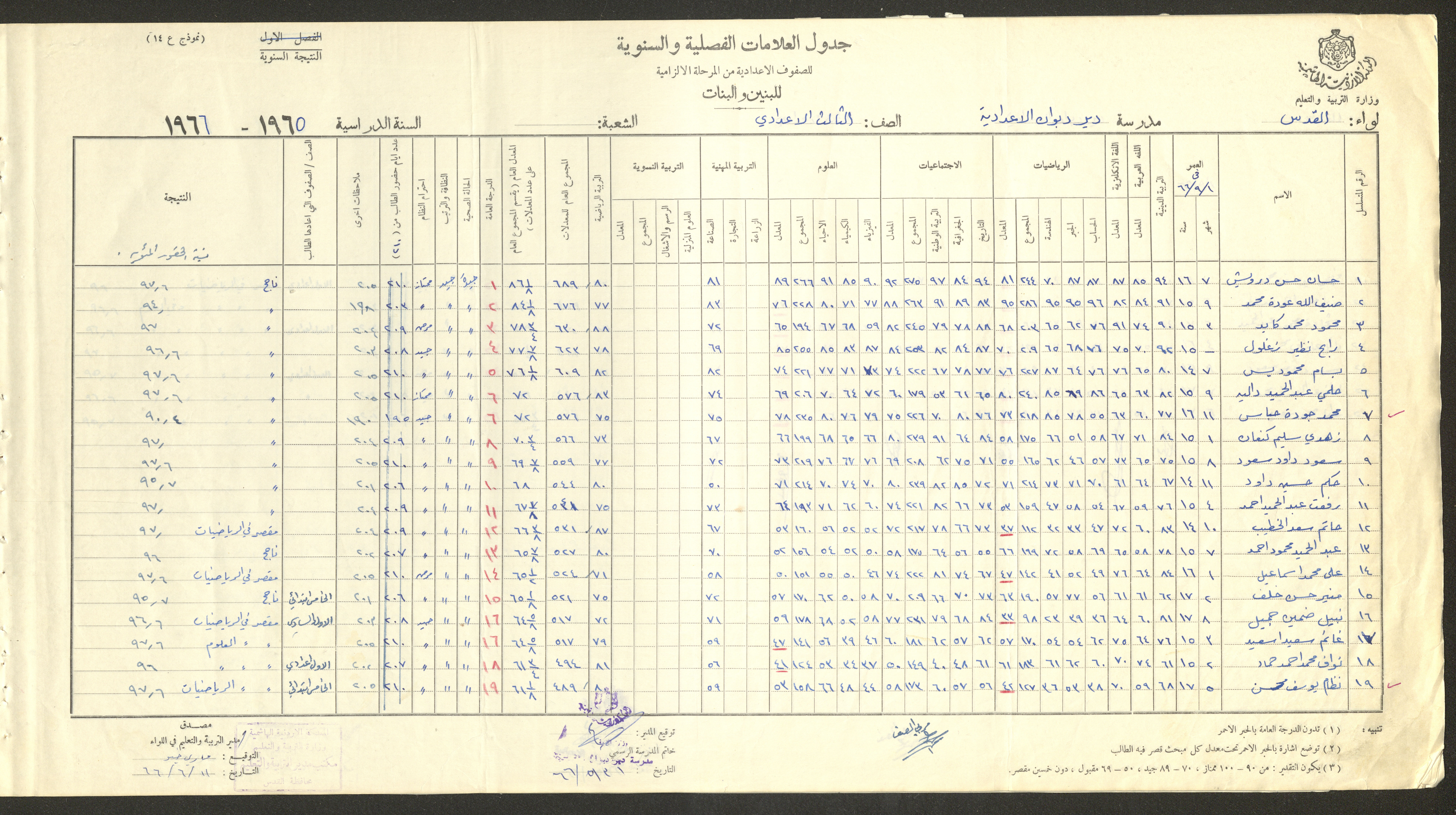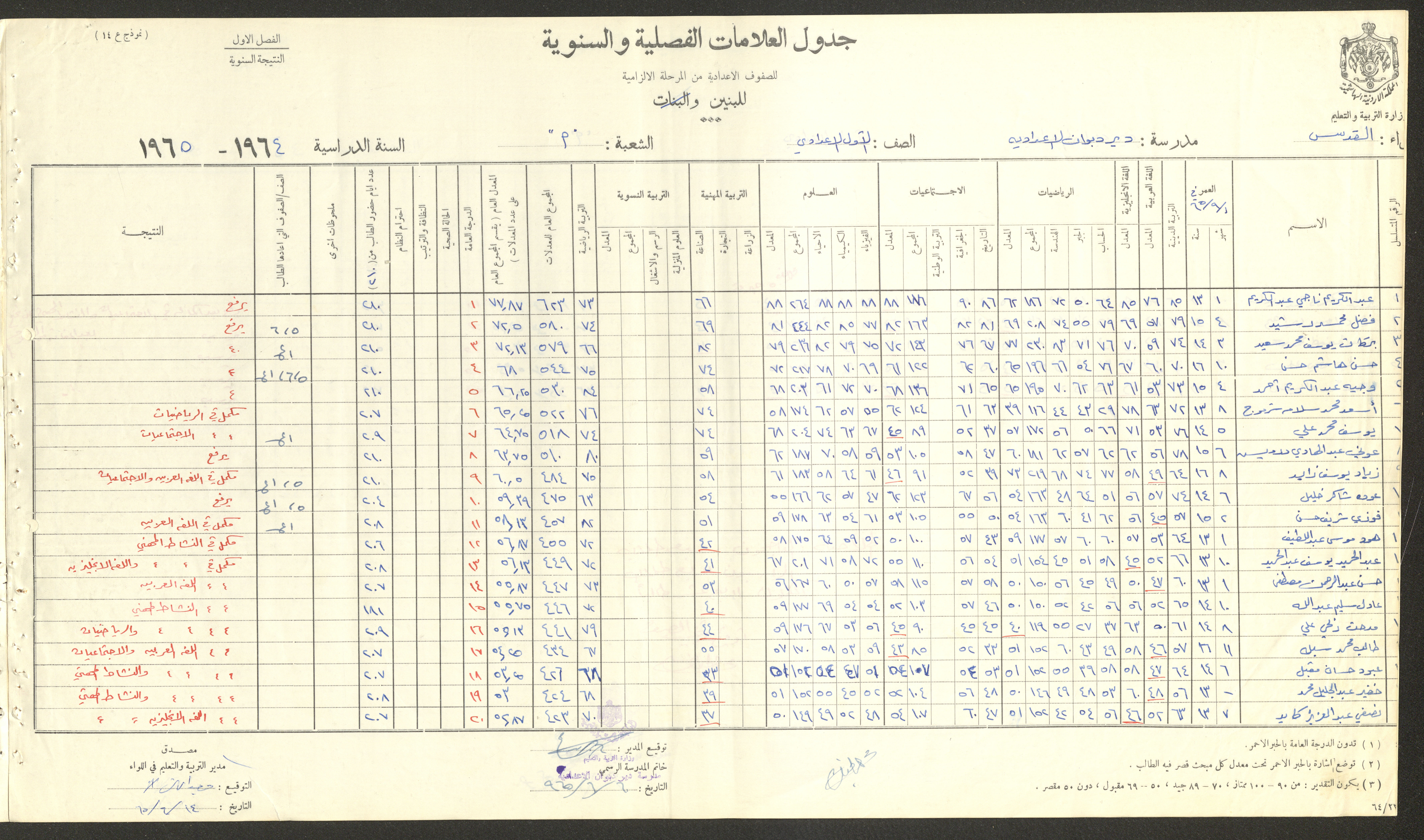 Students Marks Sheets, Deir Dibwan School, 1962-65