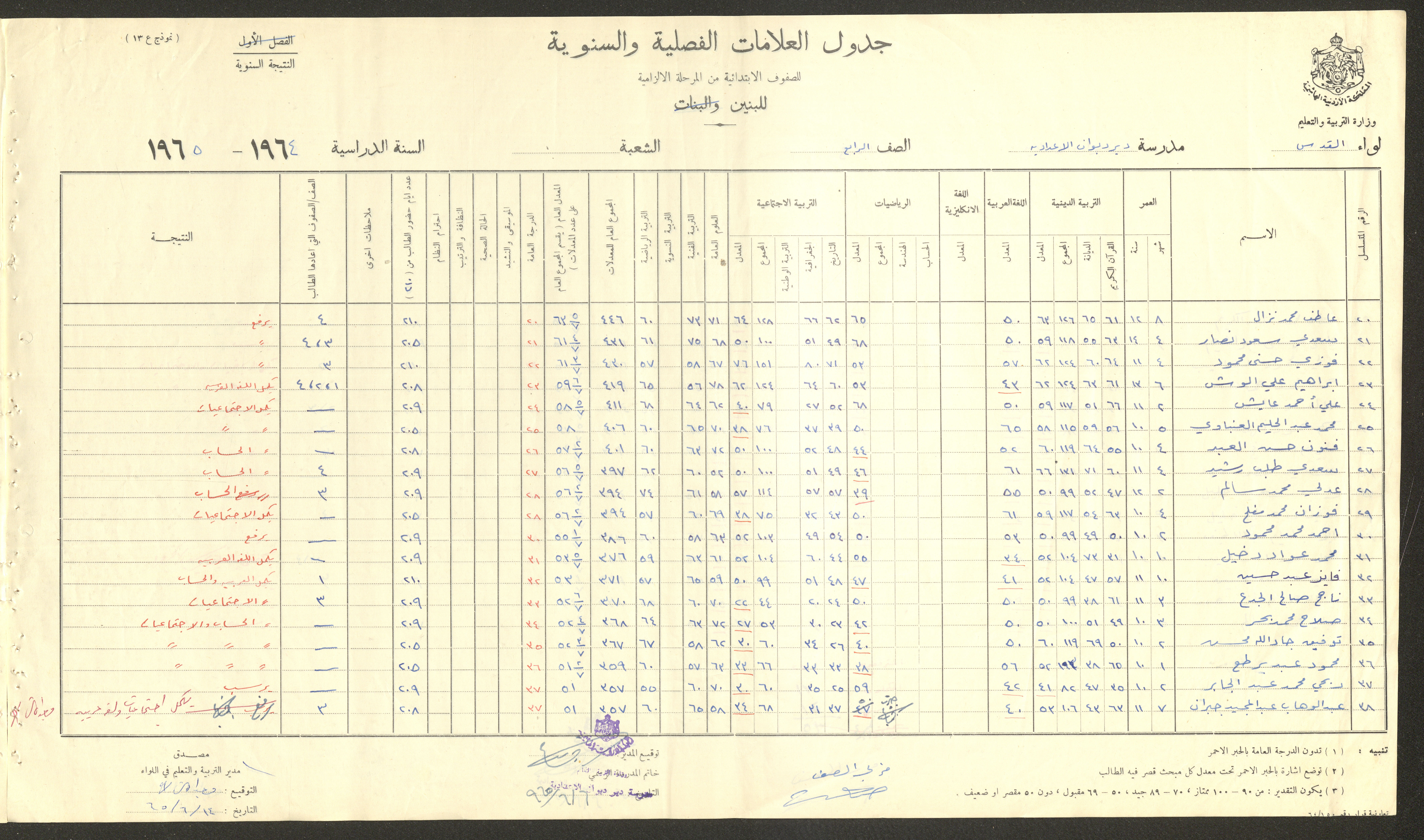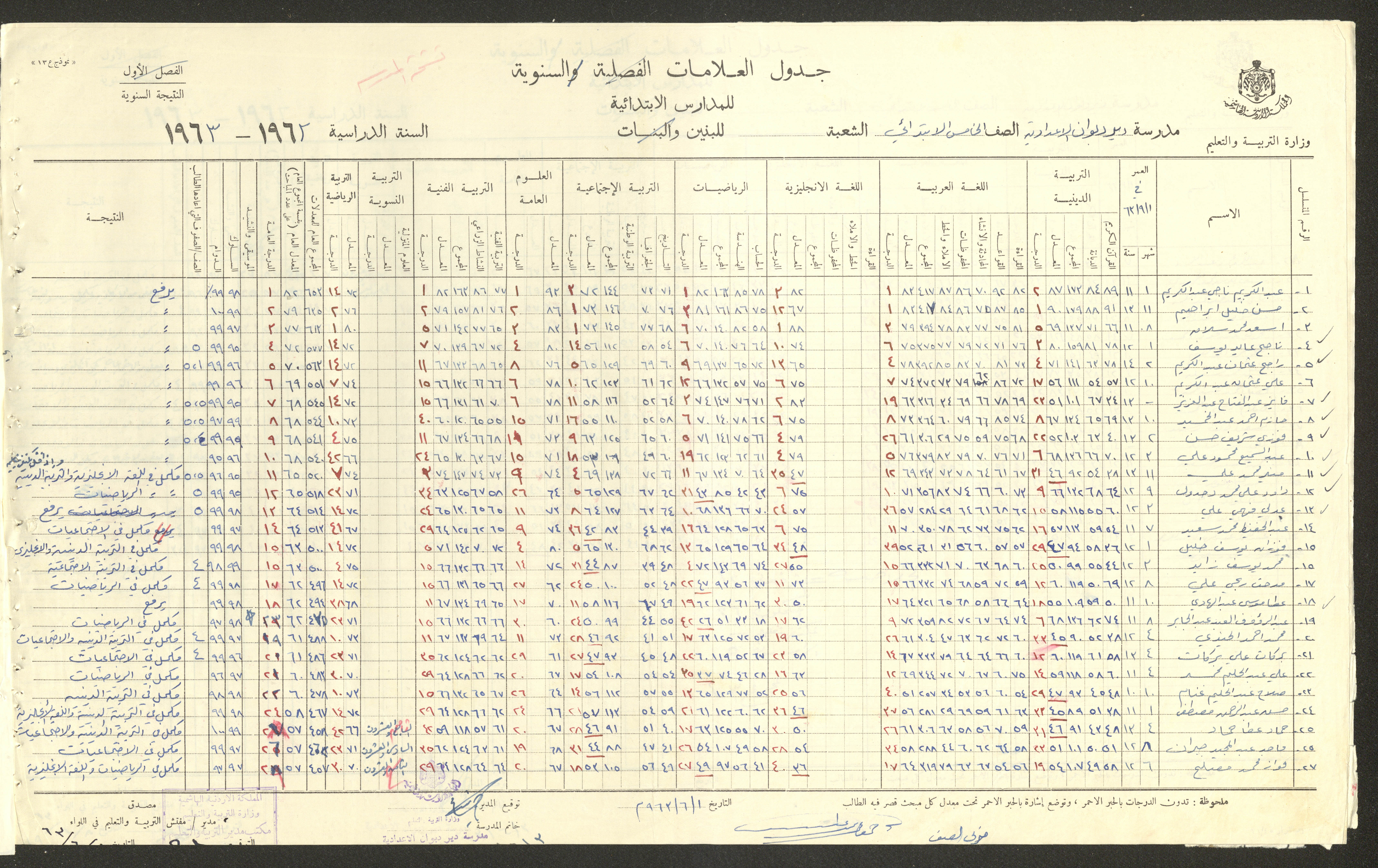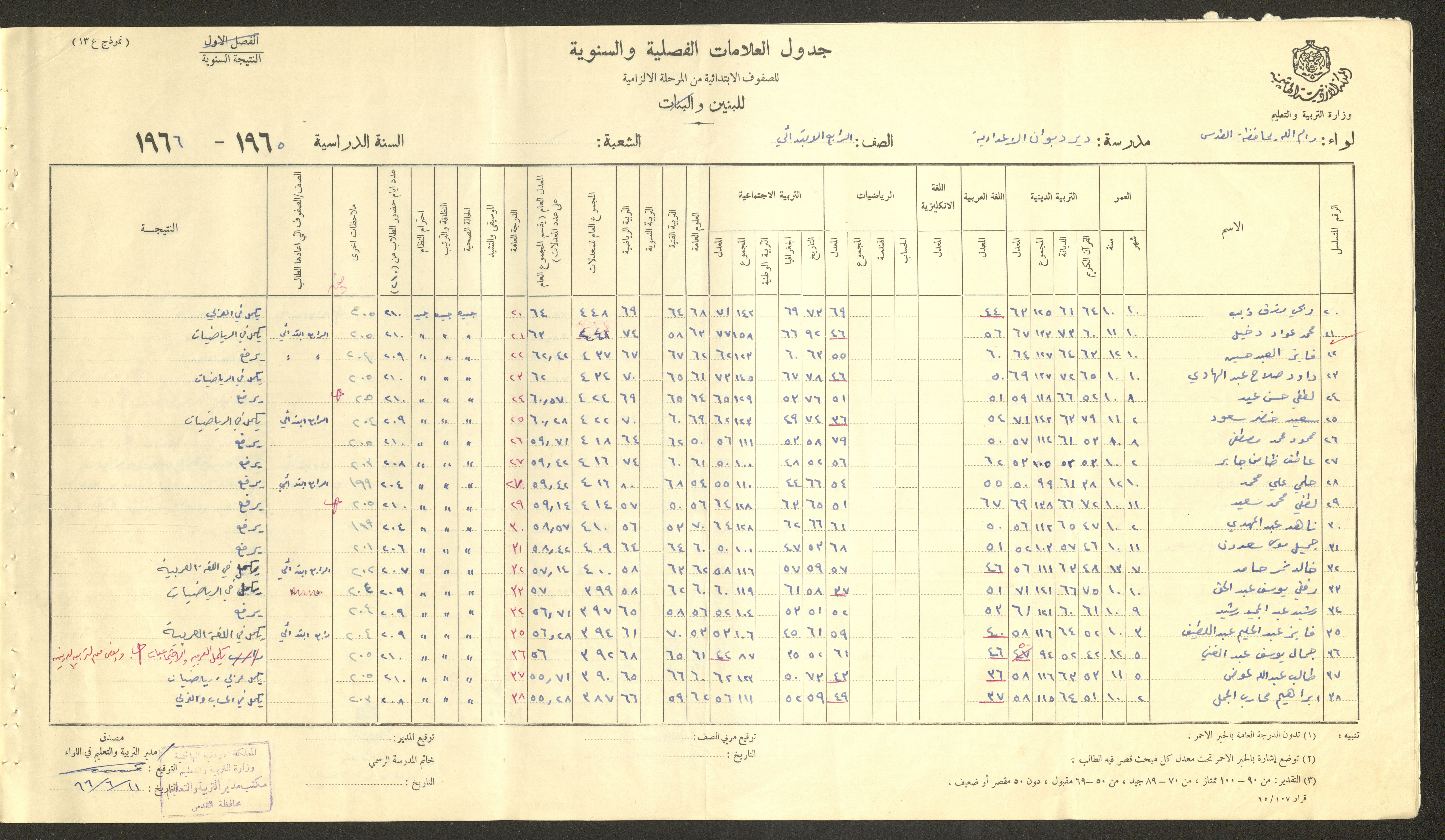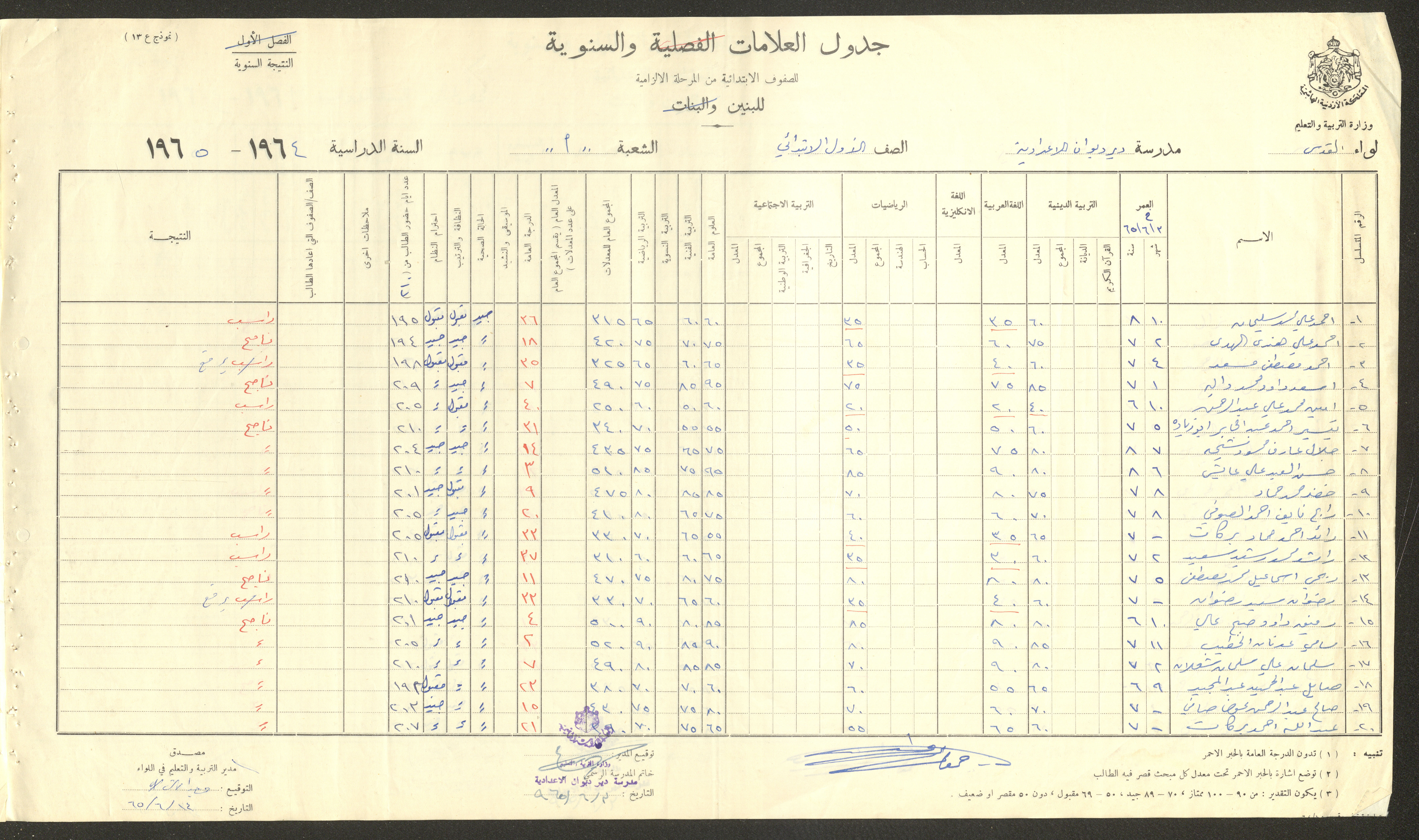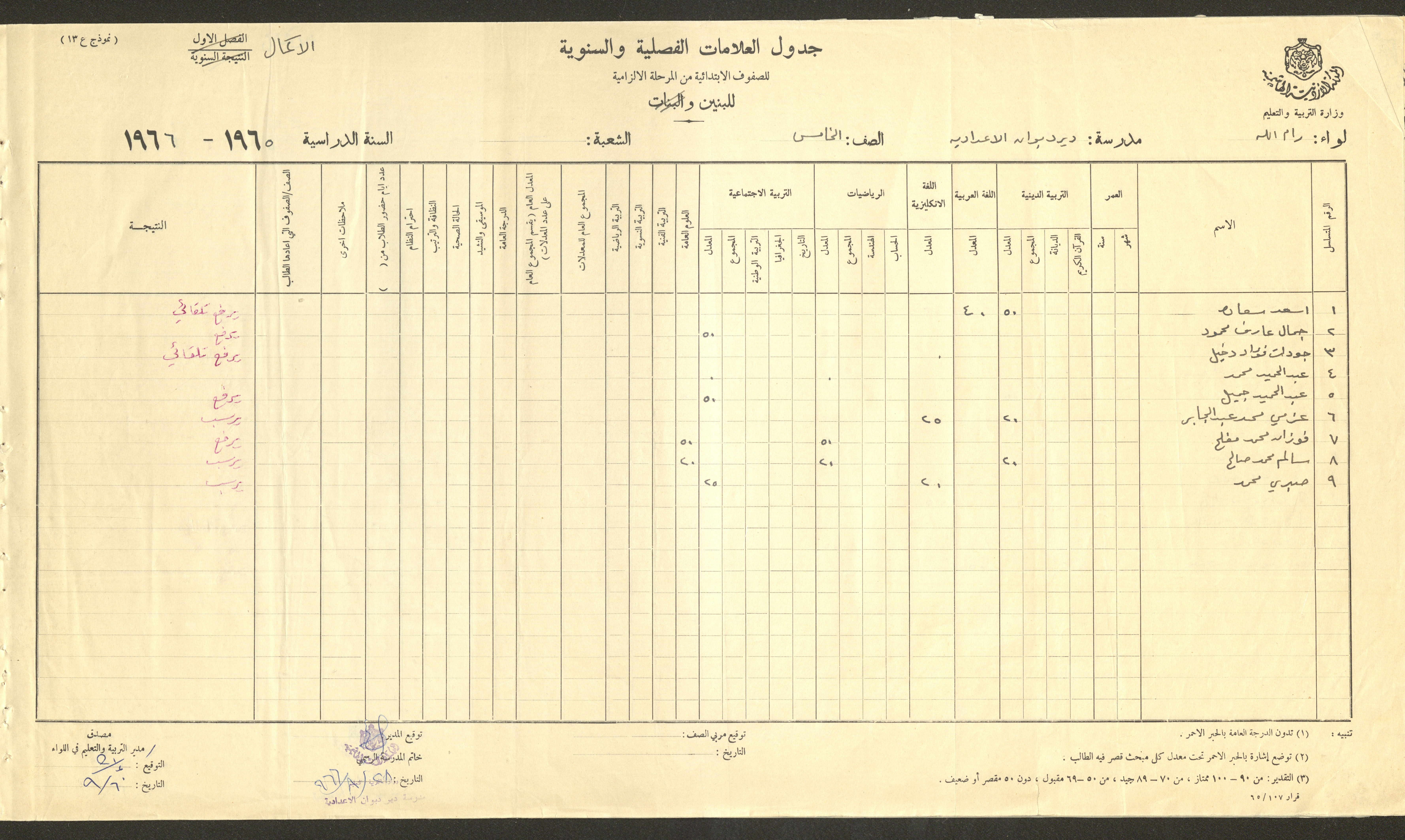 Students Marks Sheets, Deir Dibwan School, 1962-65
