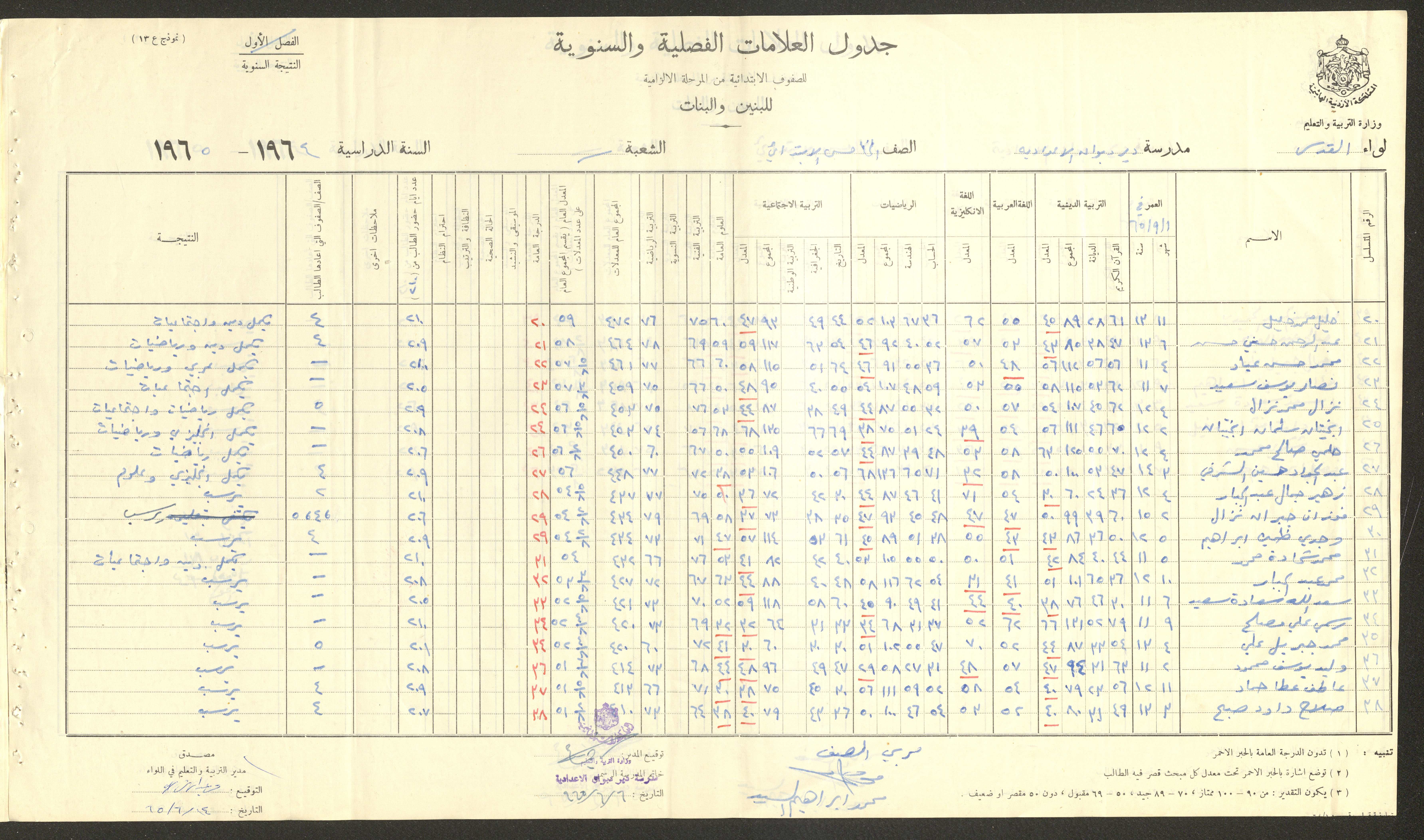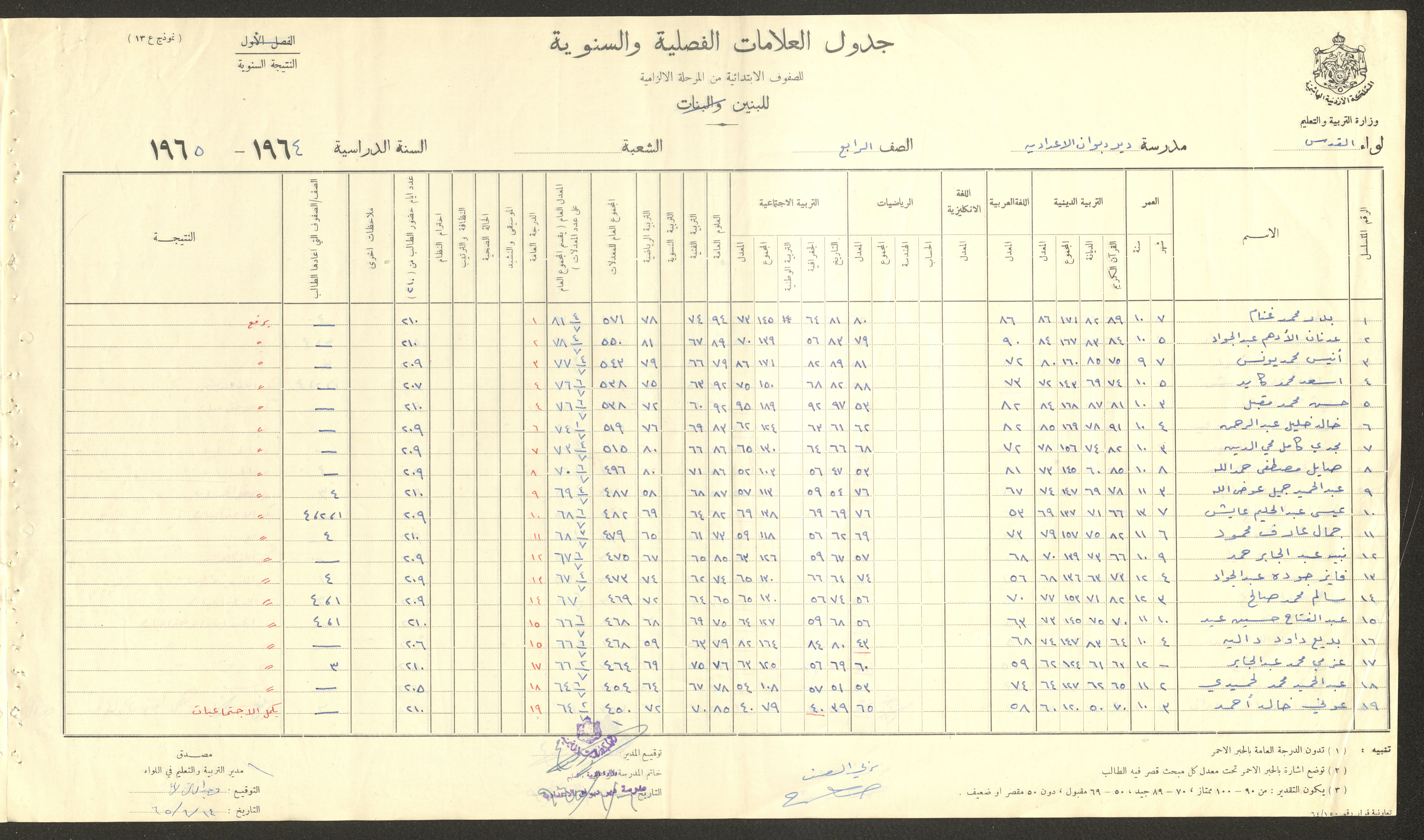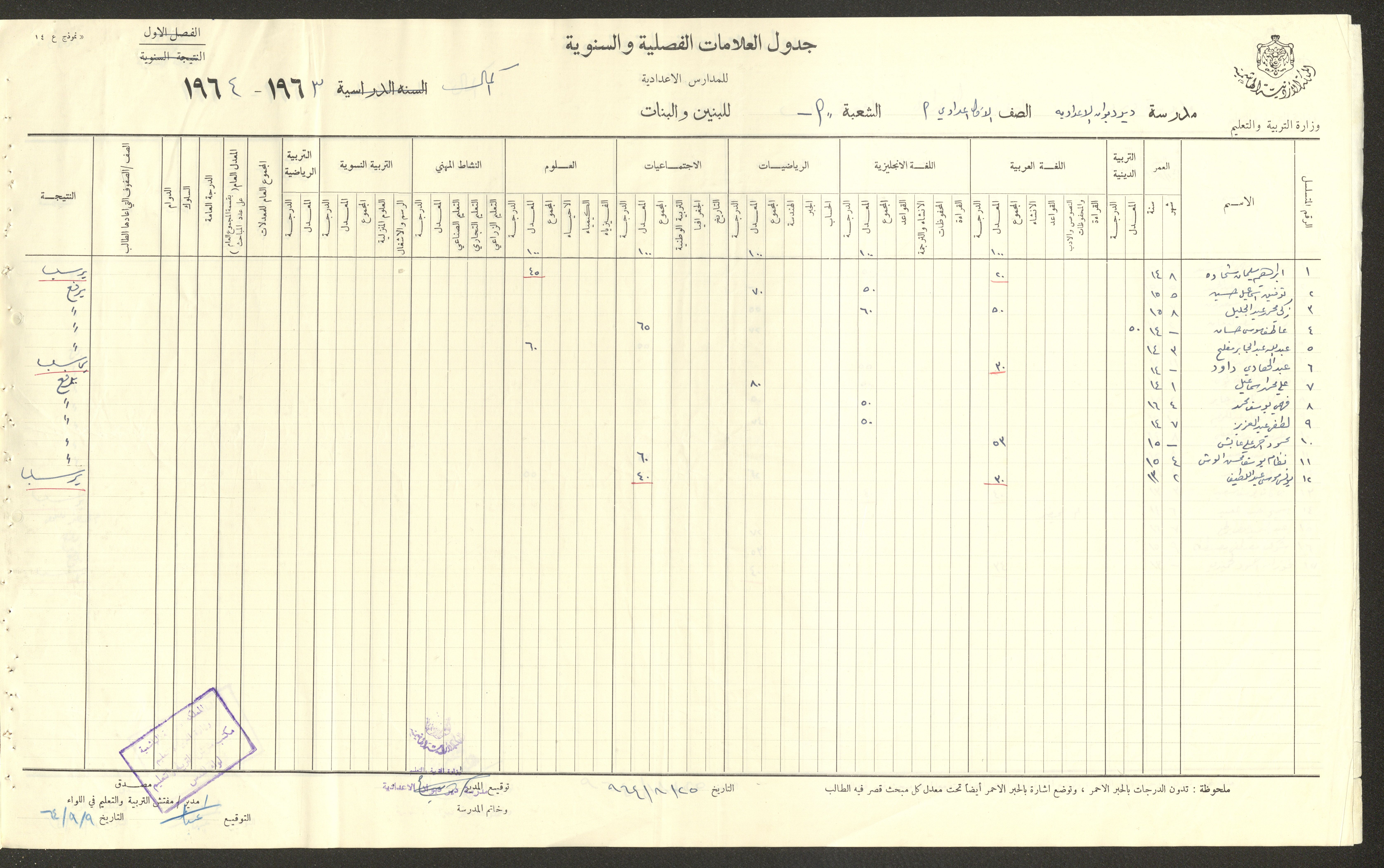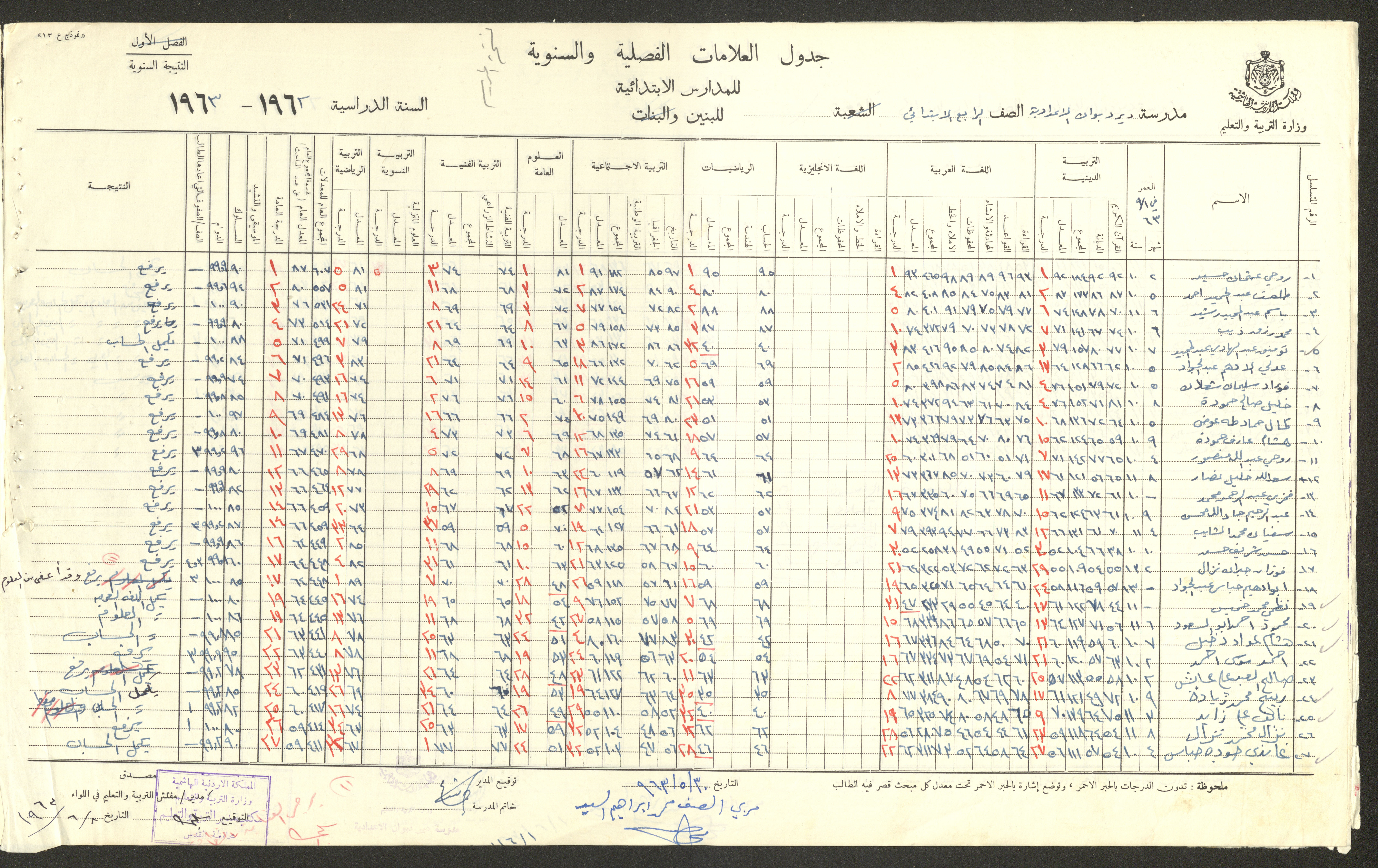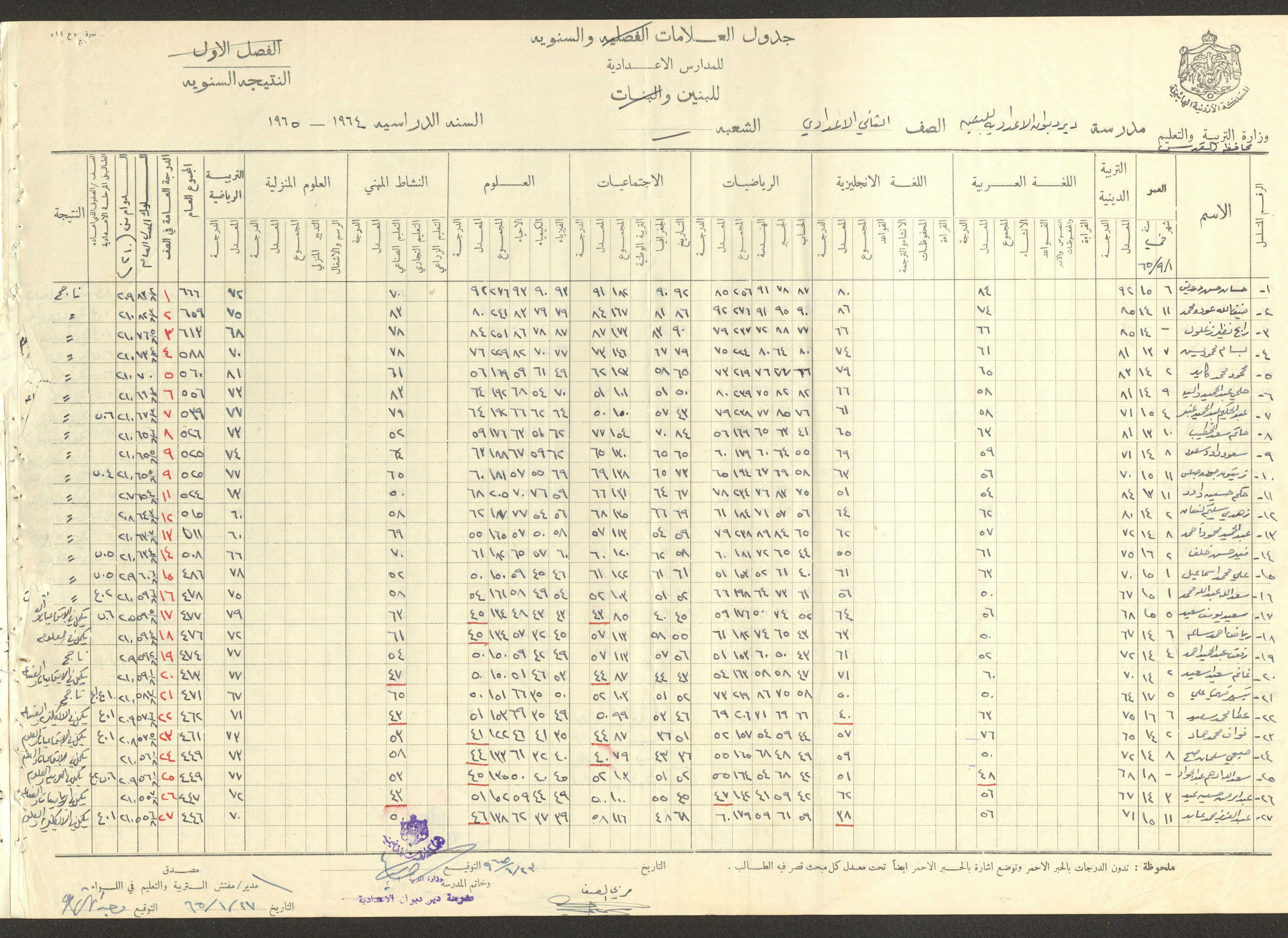 Students Marks Sheets, Deir Dibwan School, 1962-65