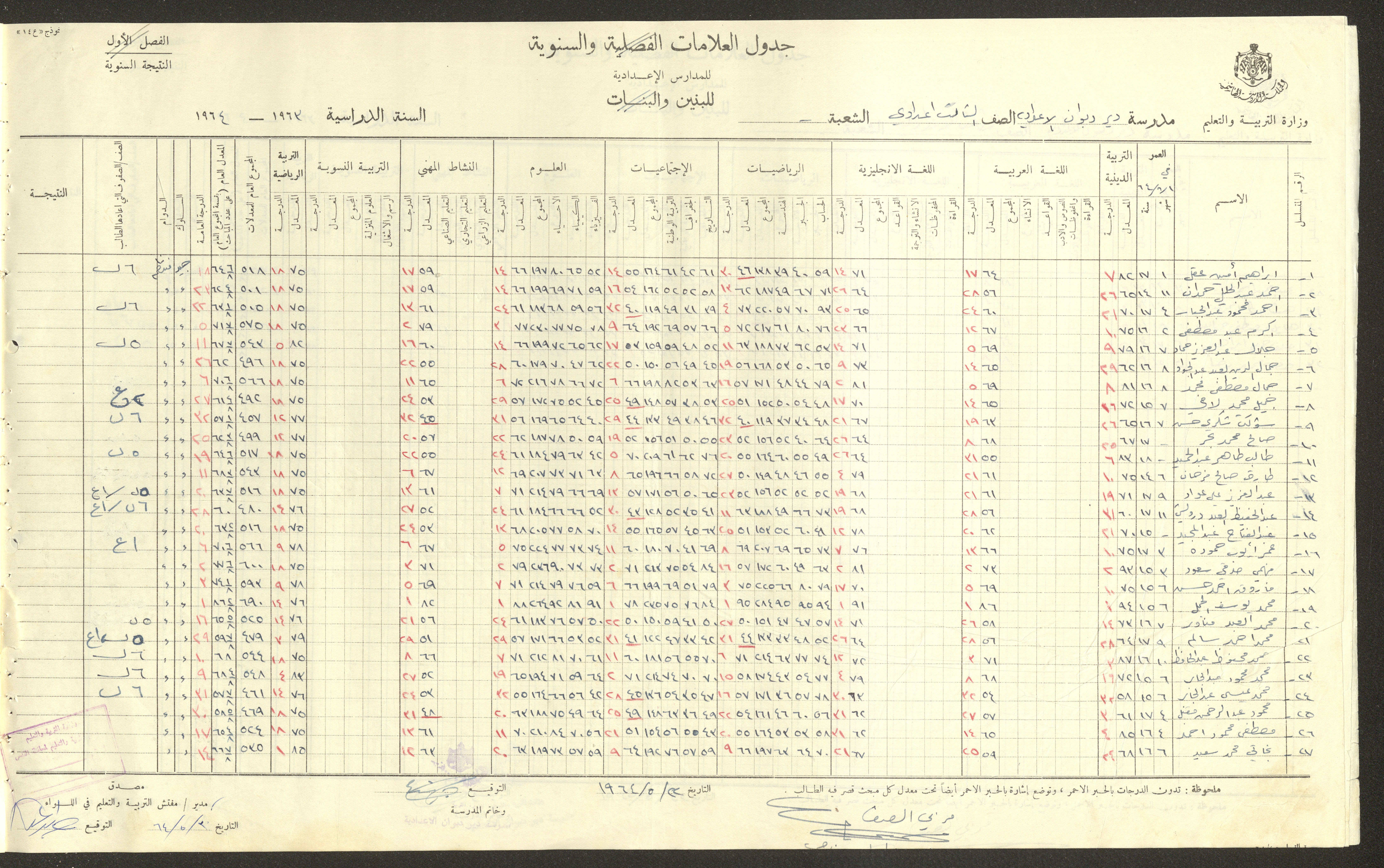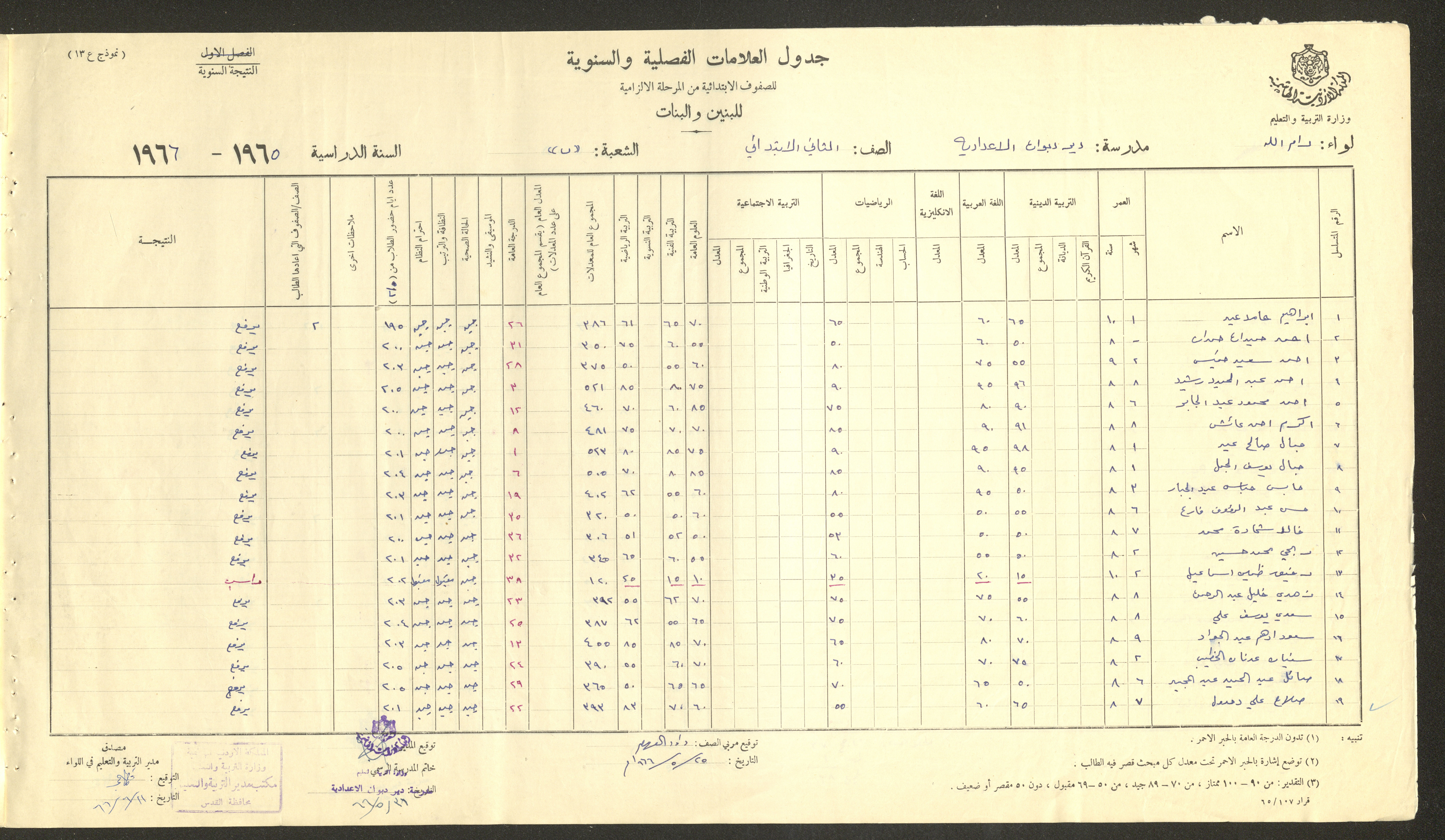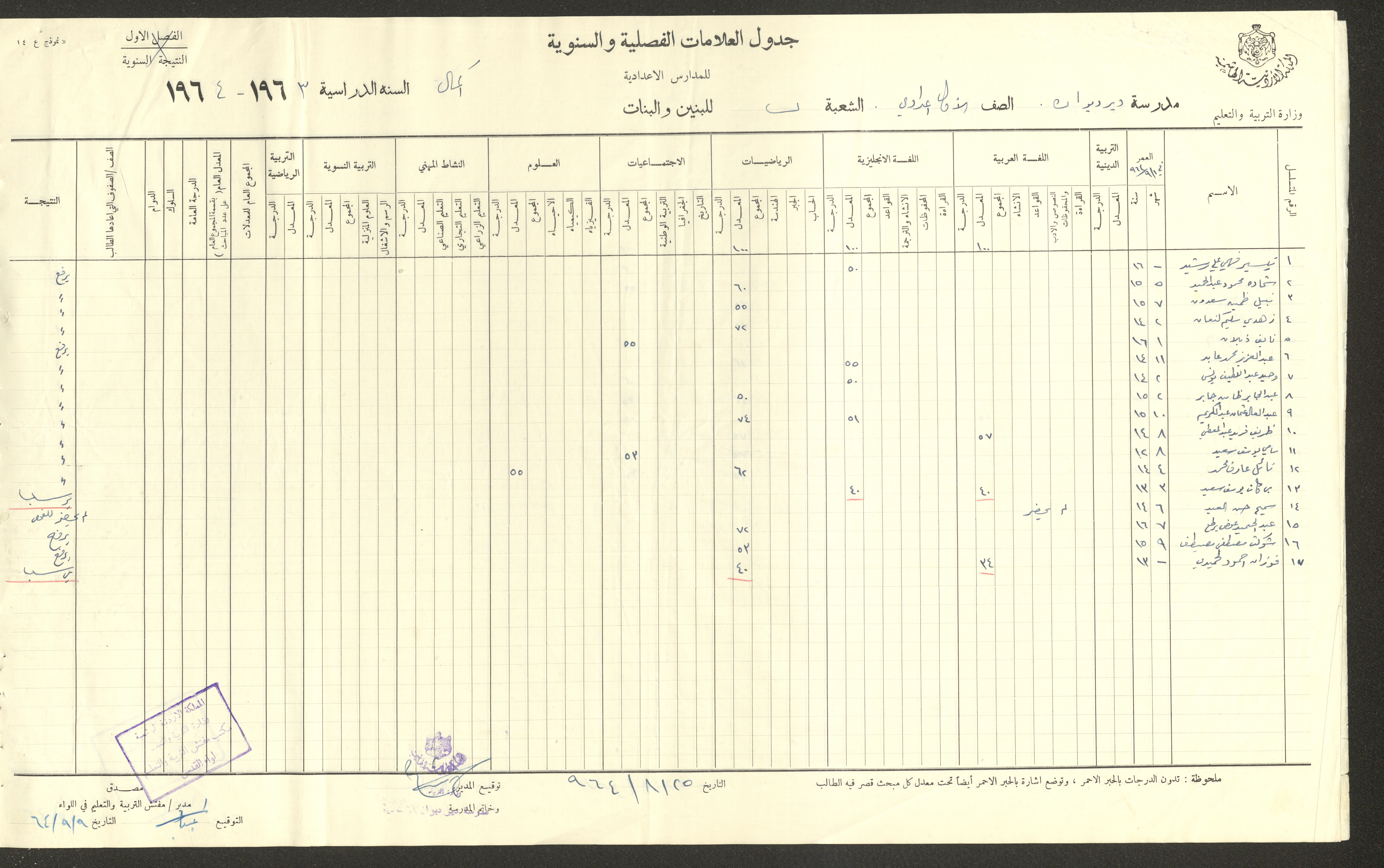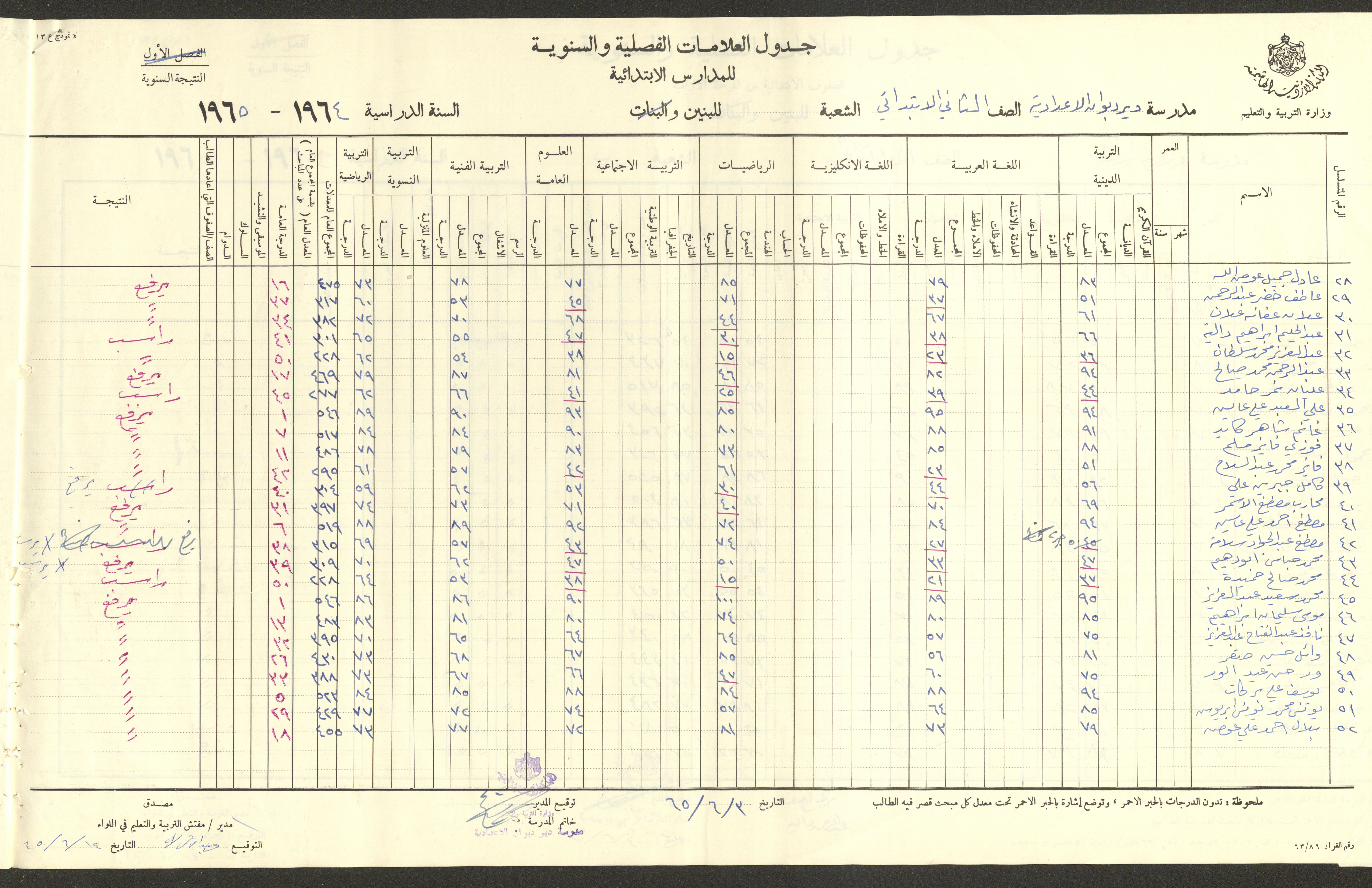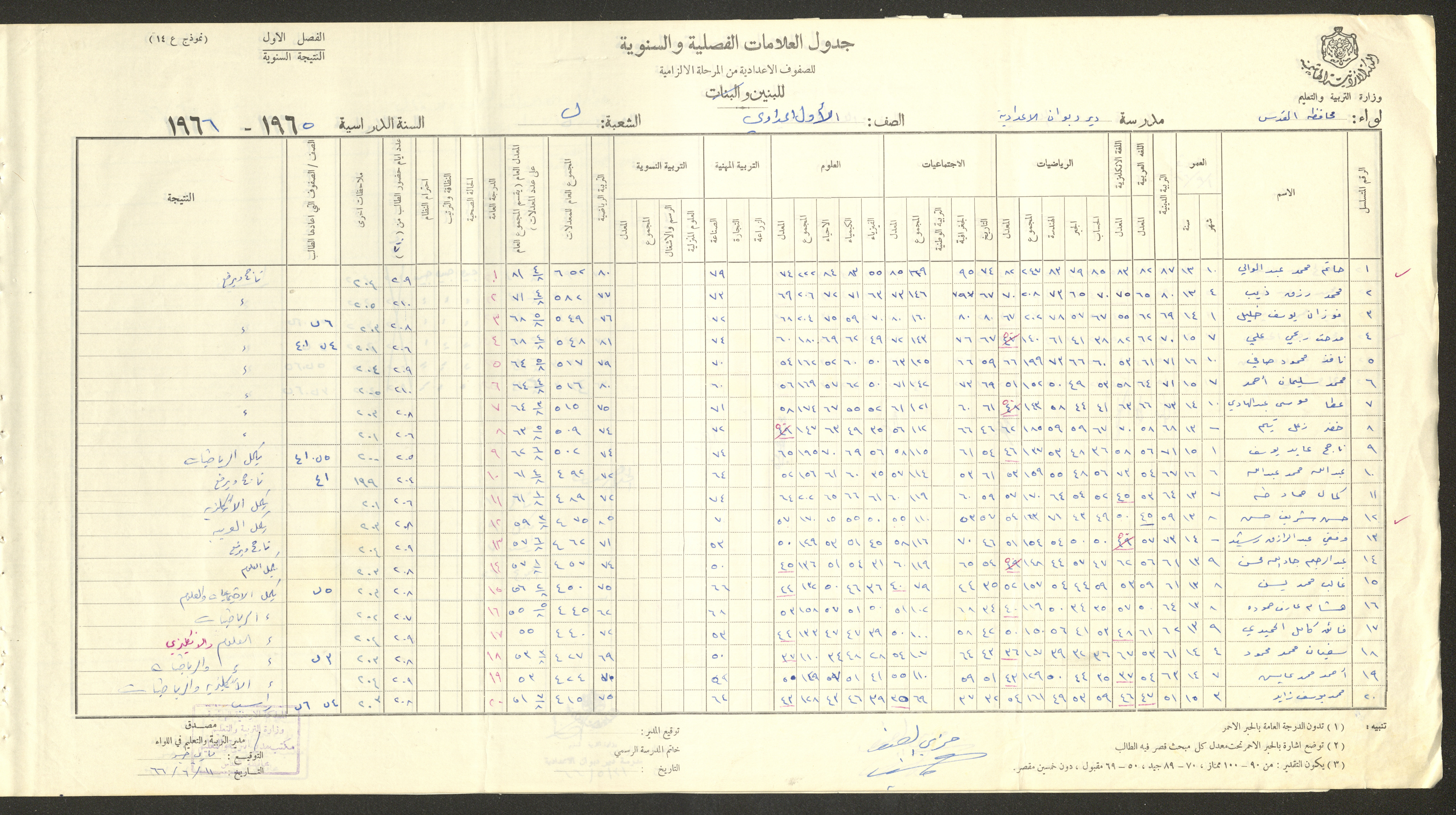 Students Marks Sheets, Deir Dibwan School, 1962-65