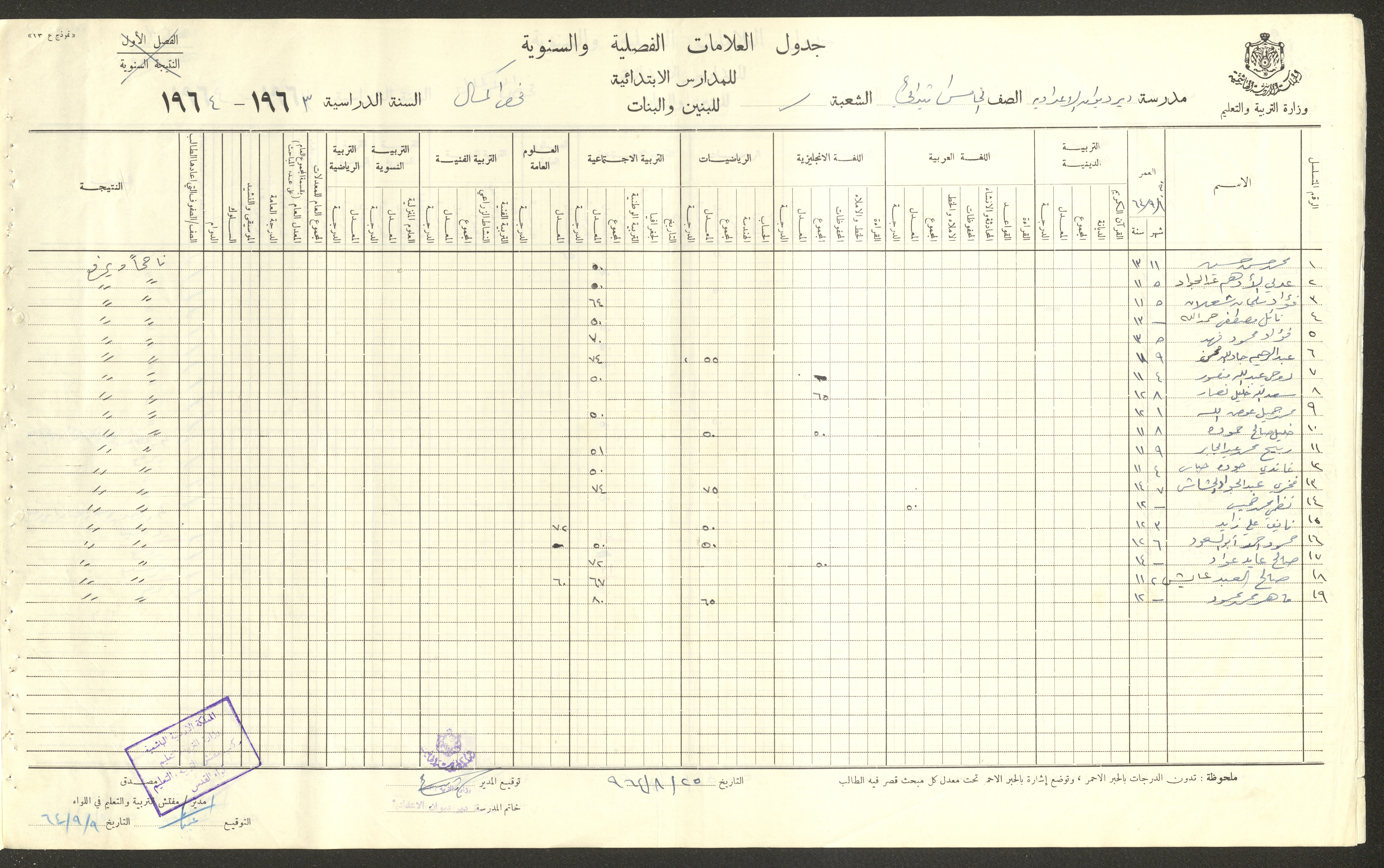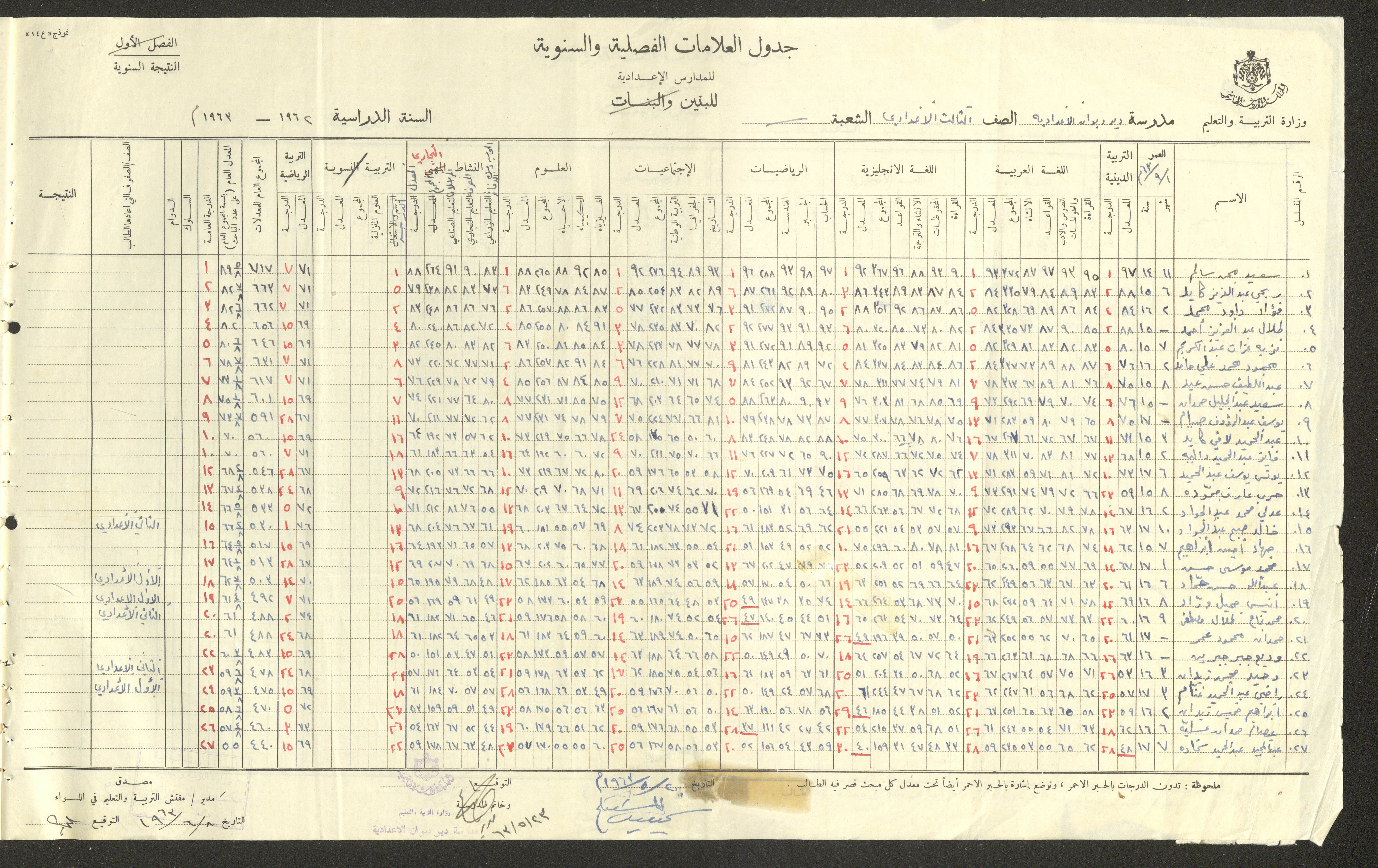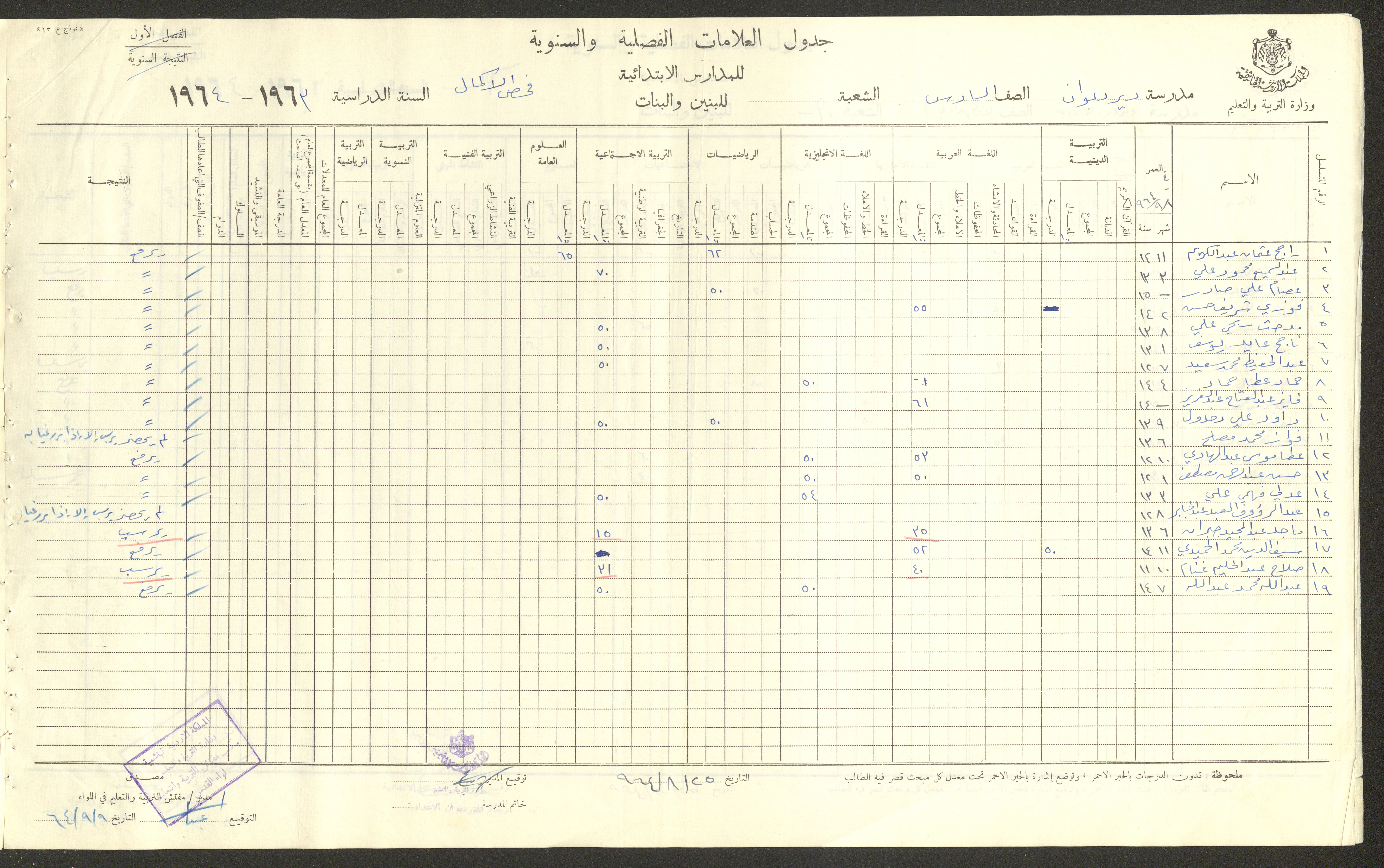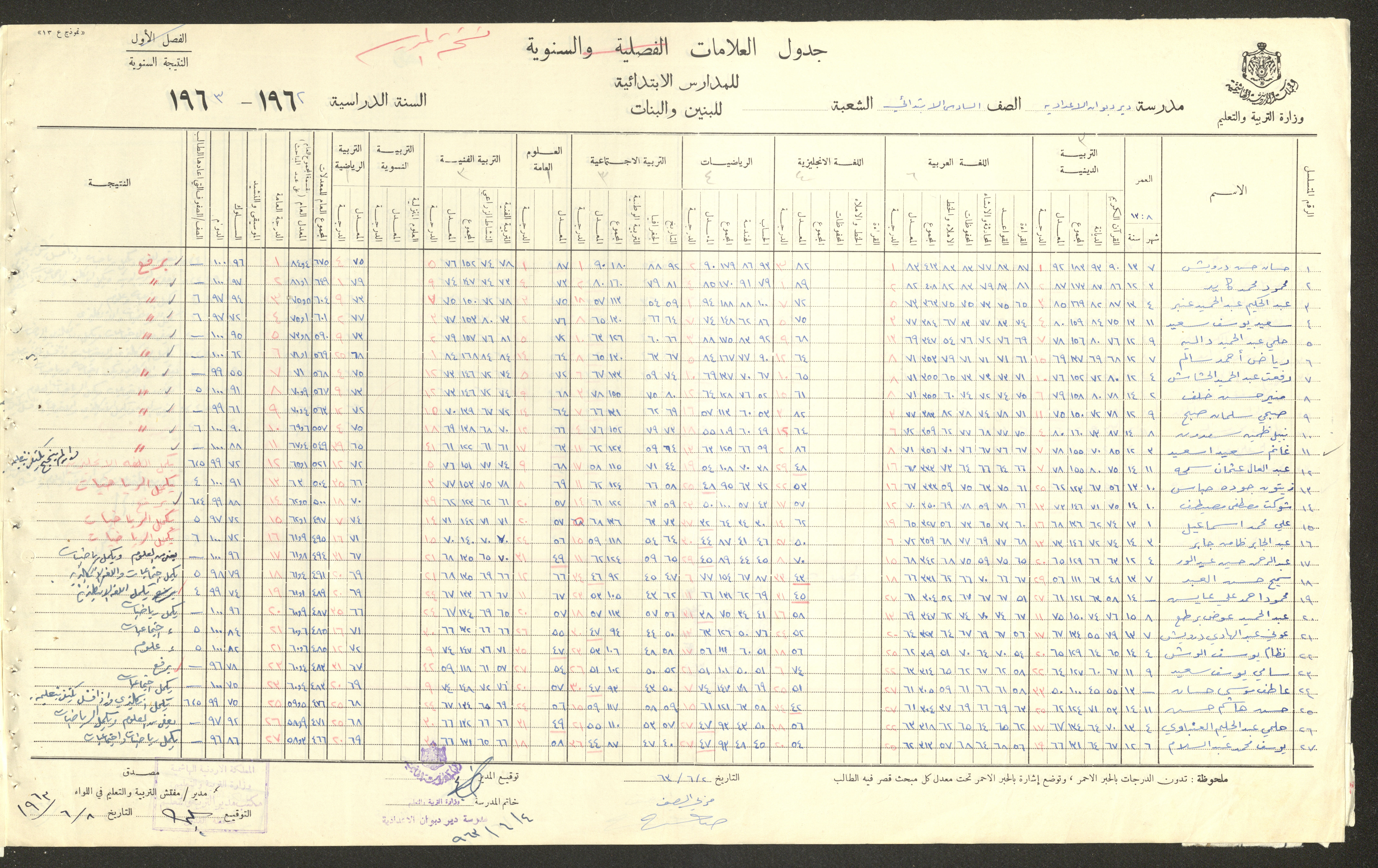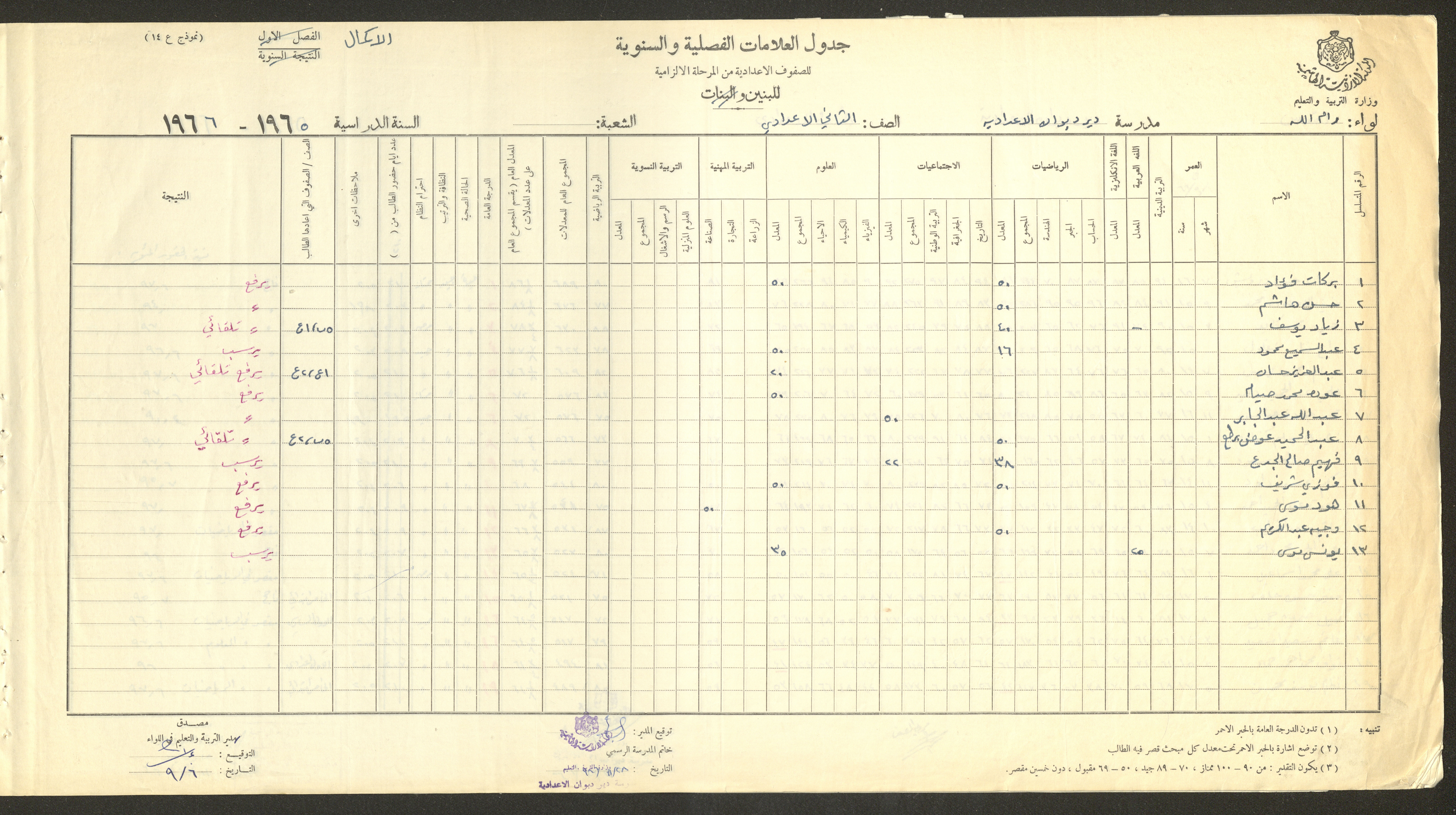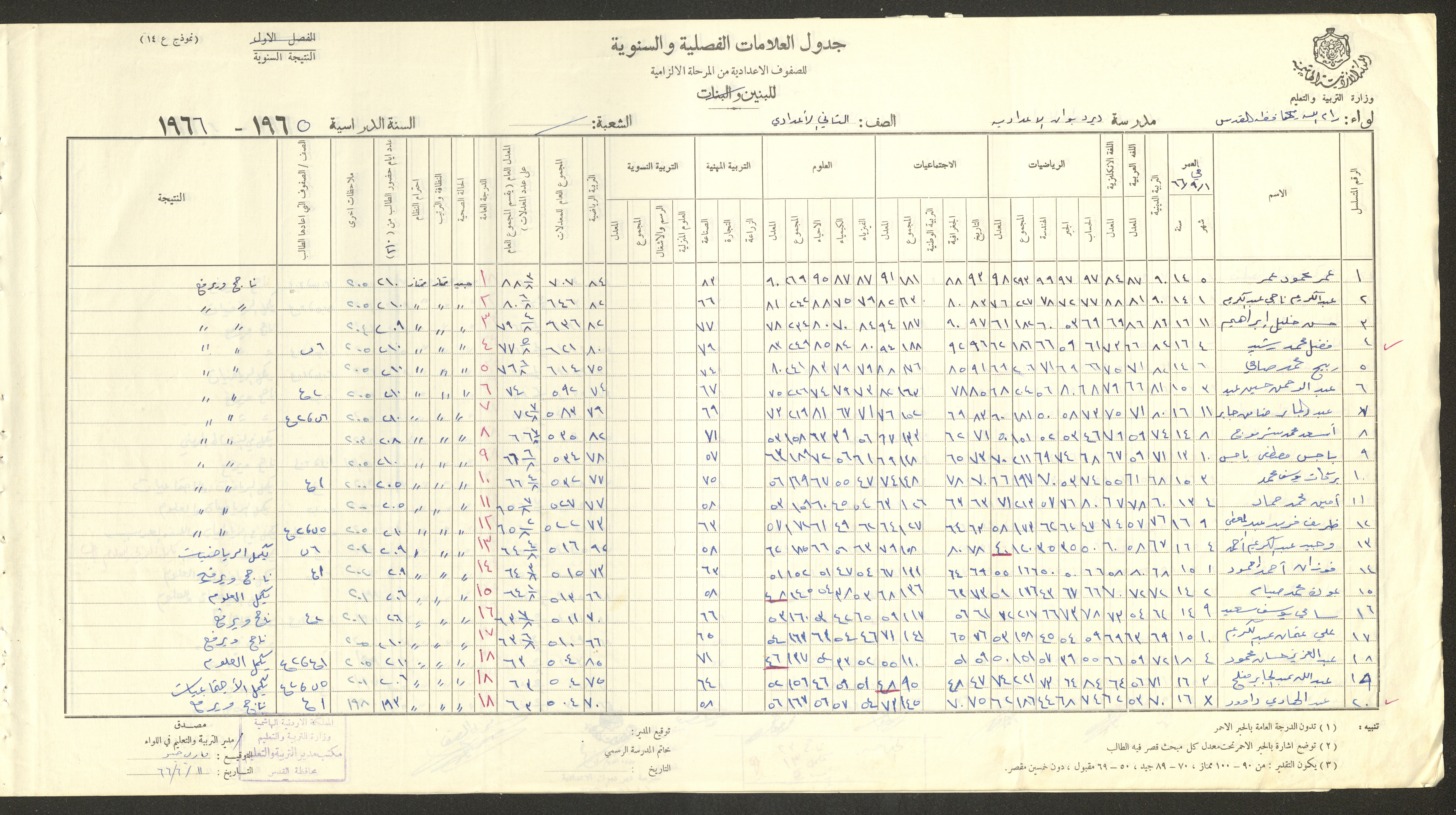 Students Marks Sheets, Deir Dibwan School, 1962-65
