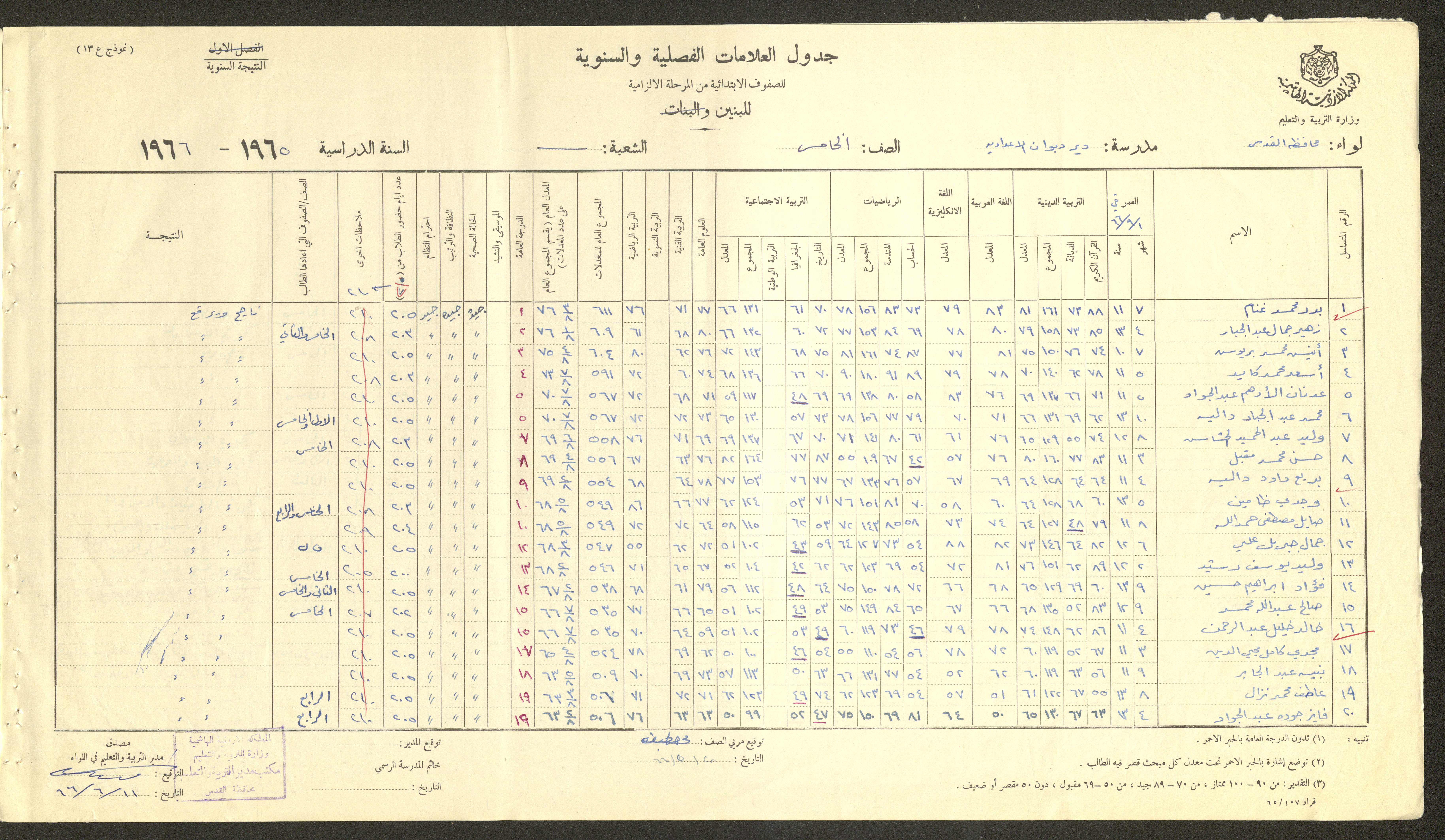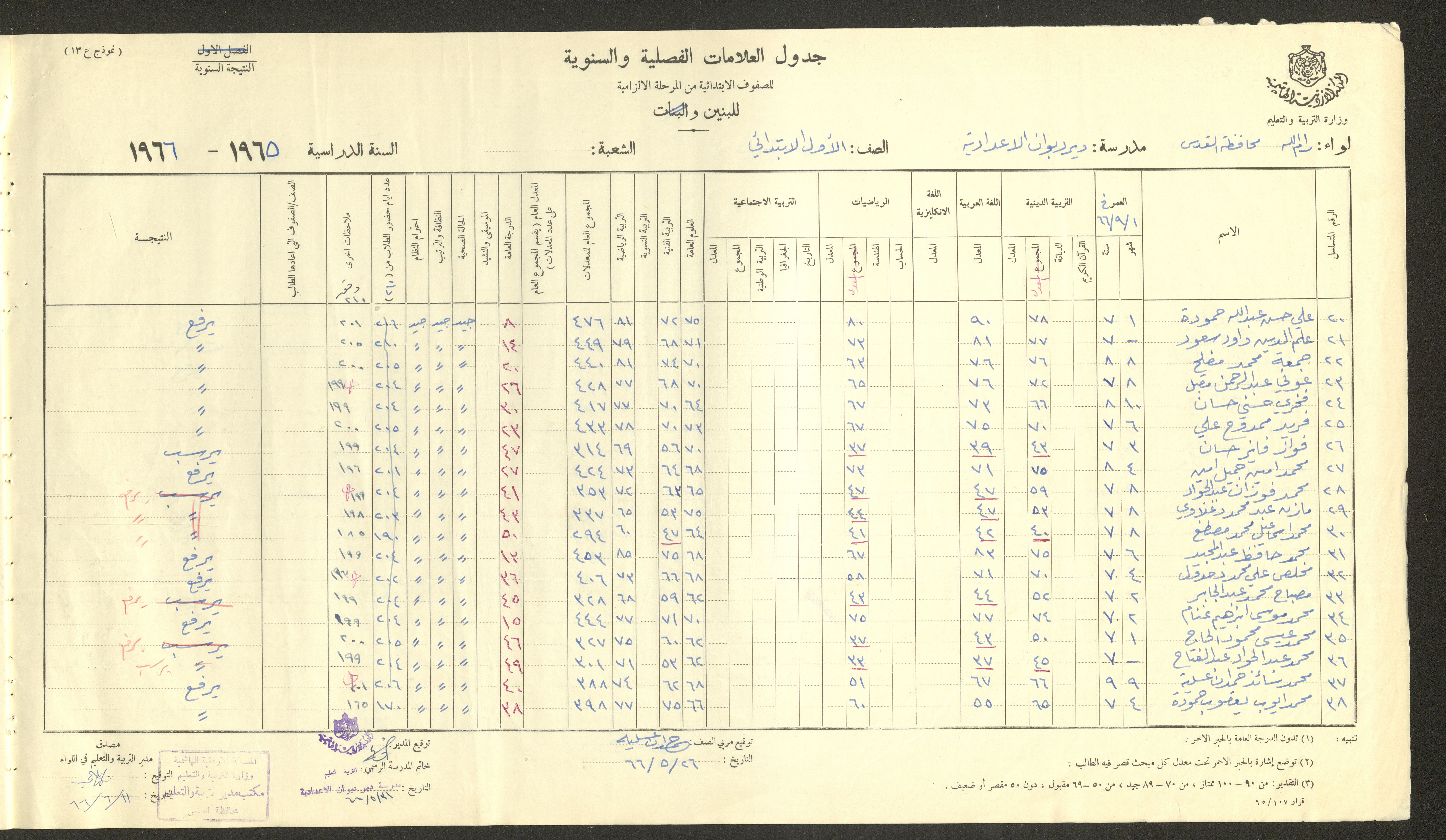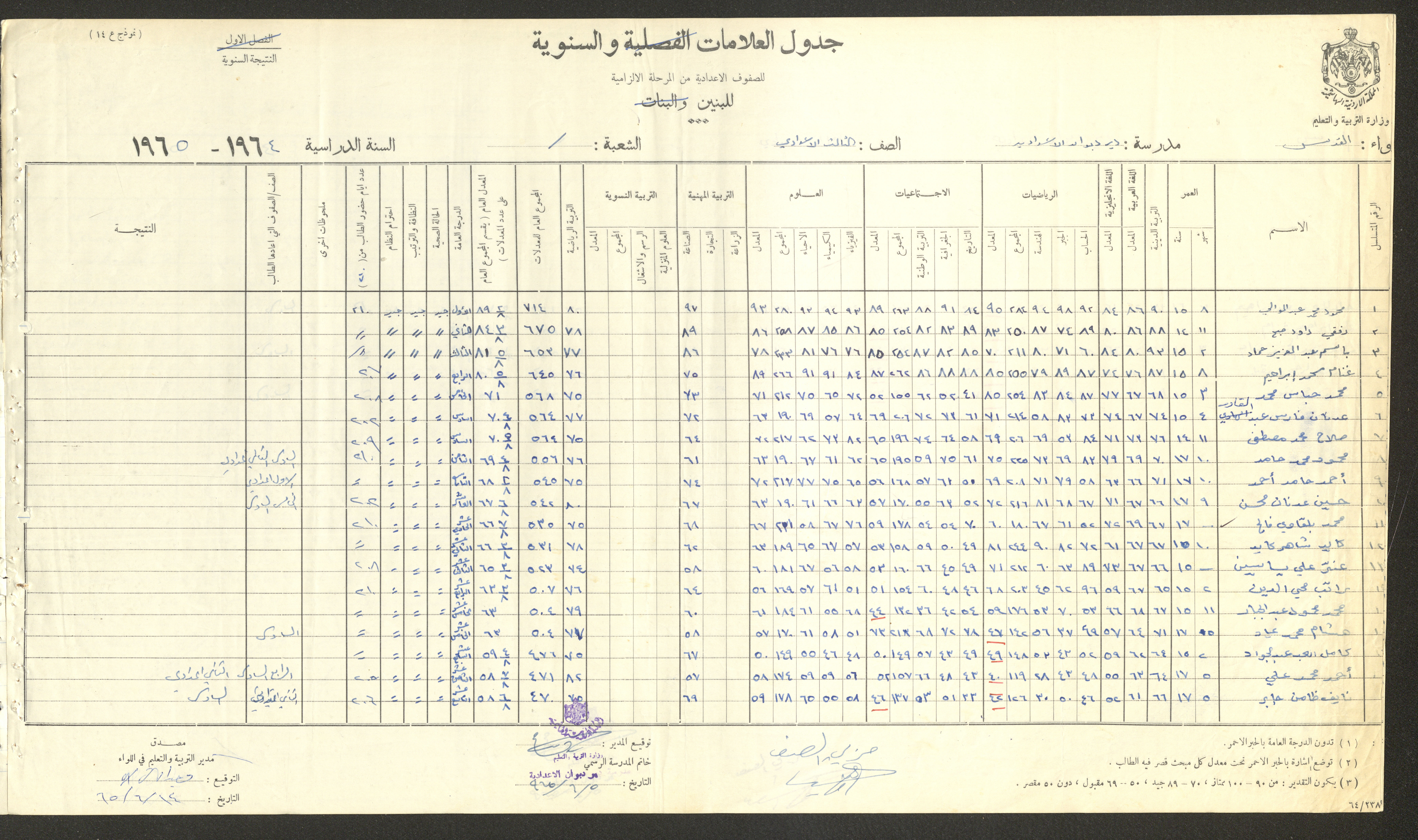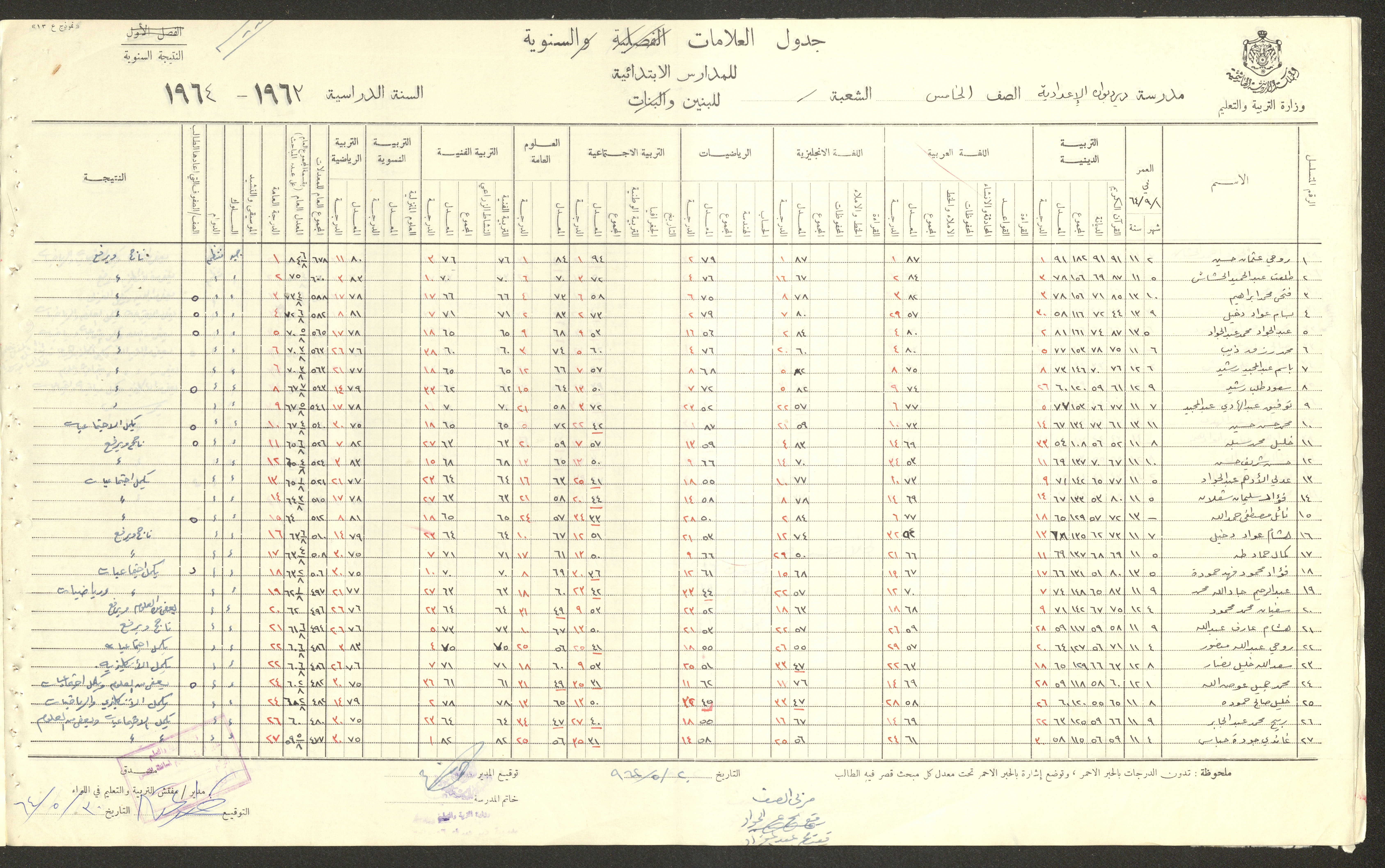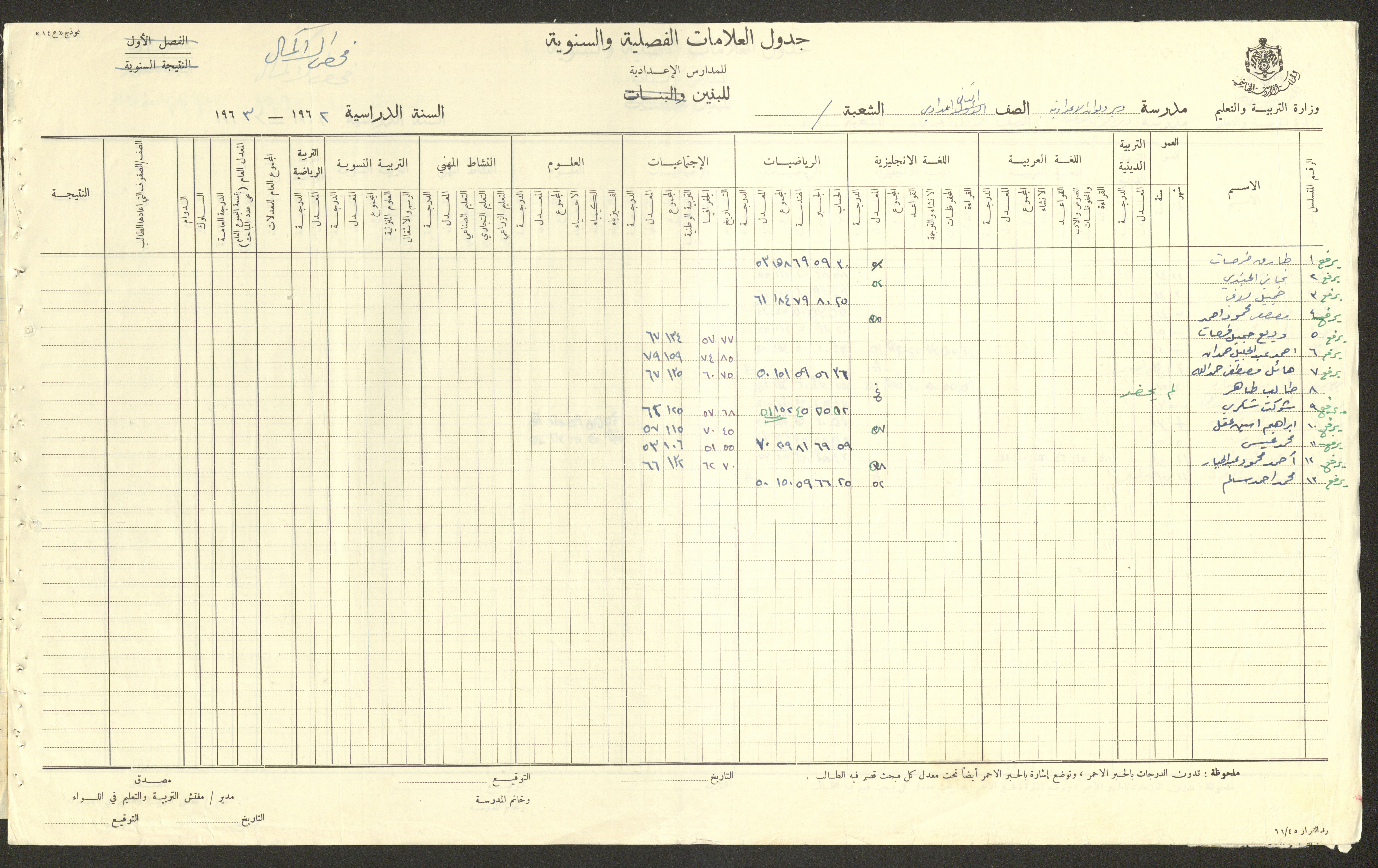Students Marks Sheets, Deir Dibwan School, 1962-65