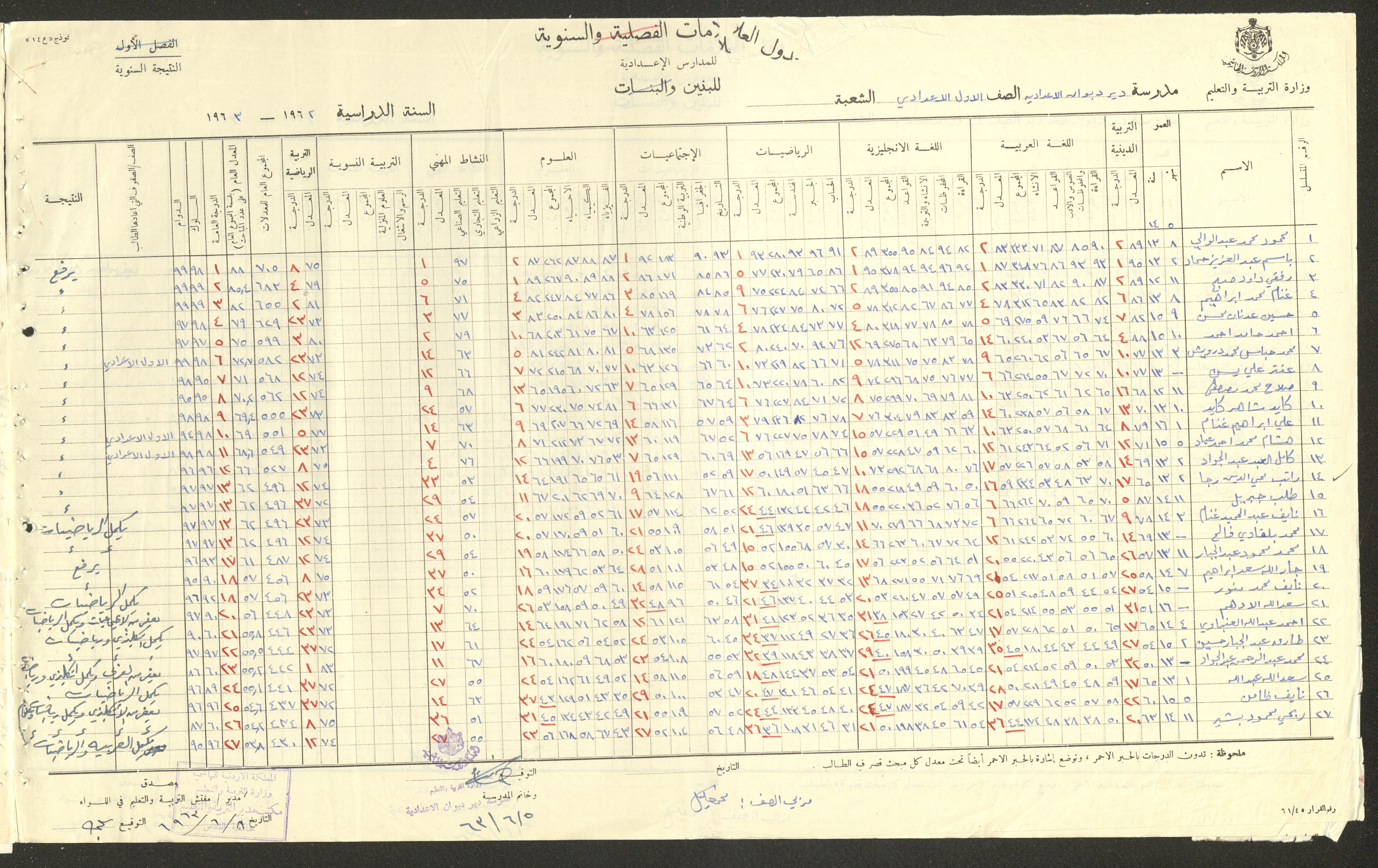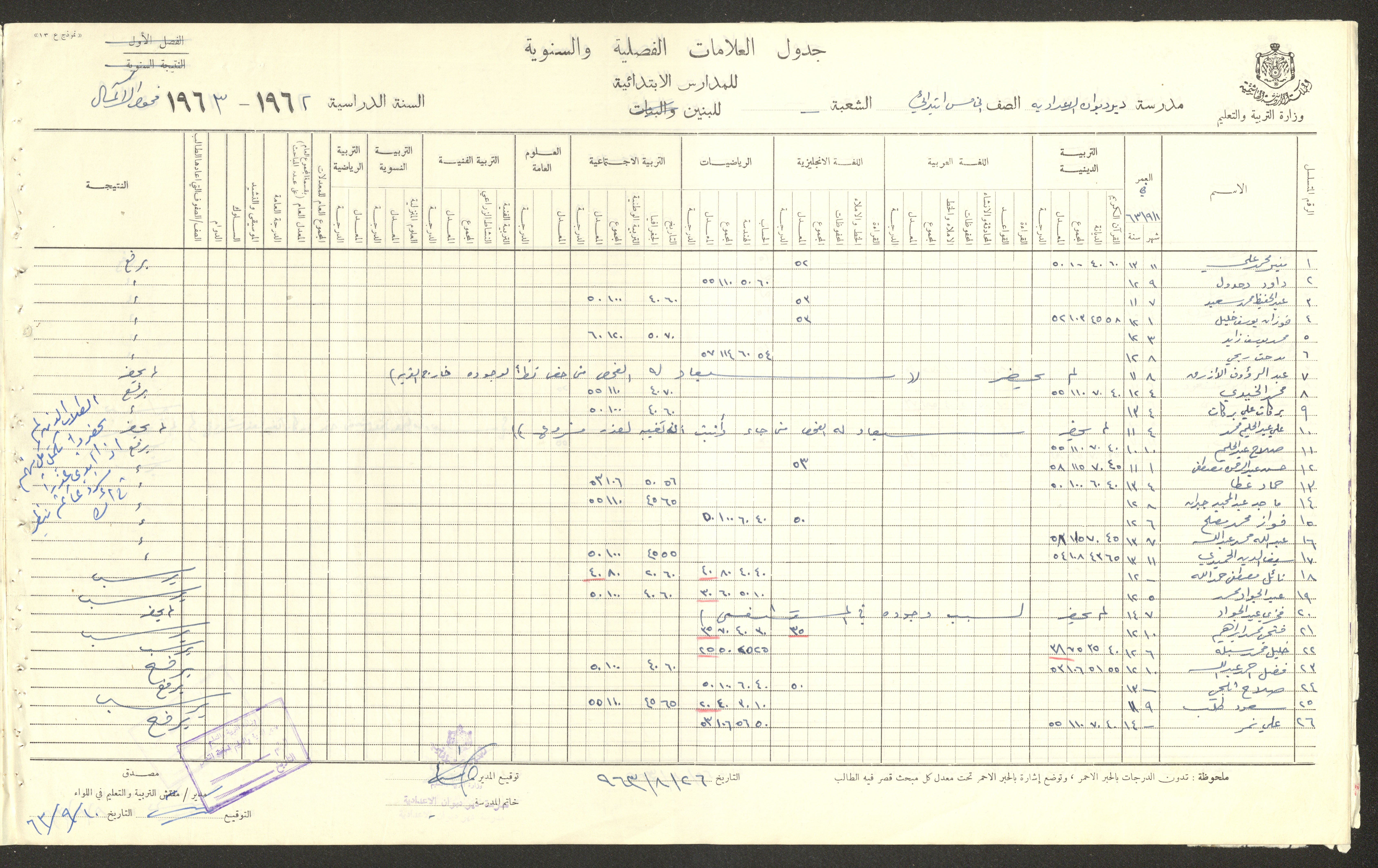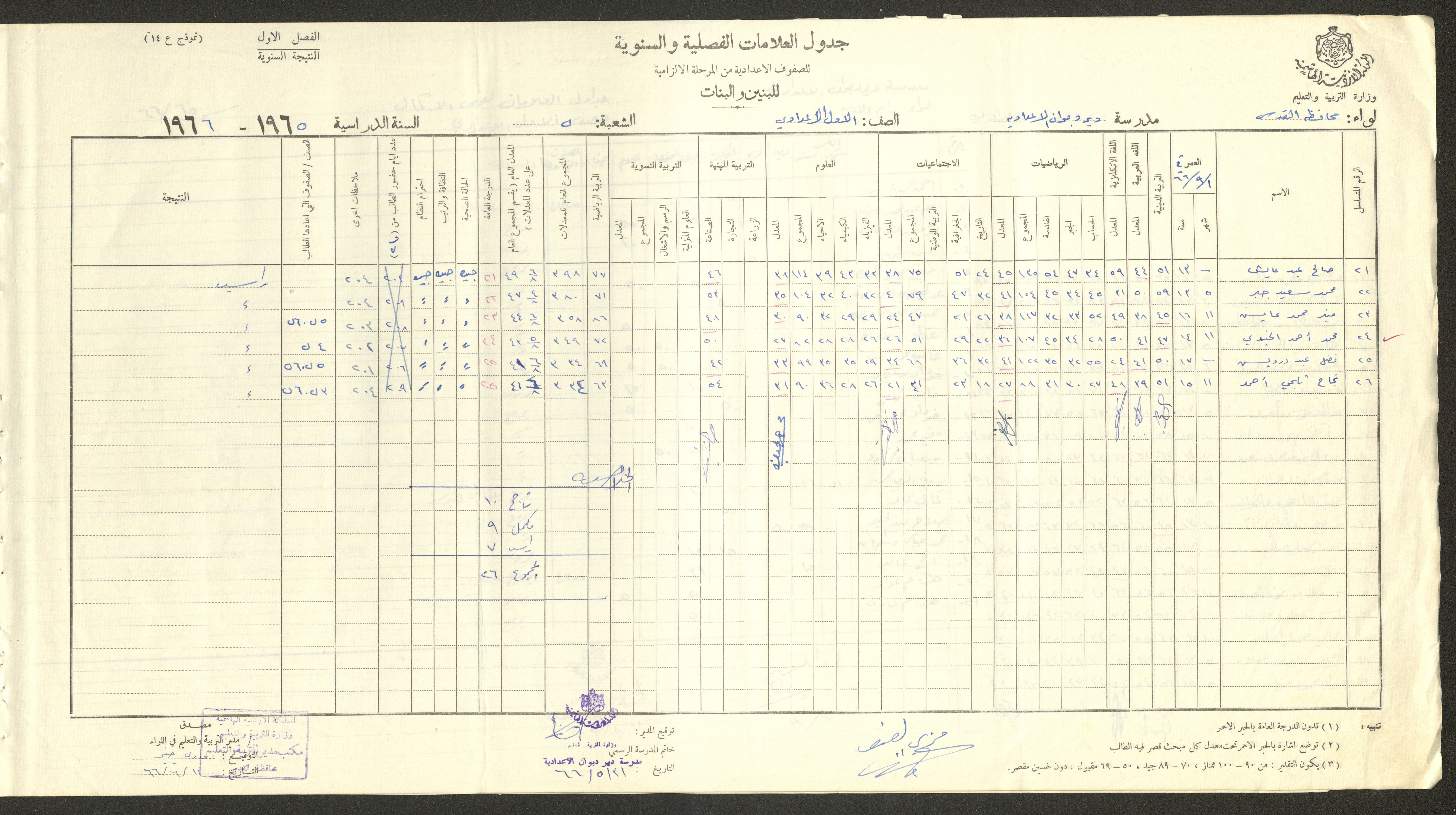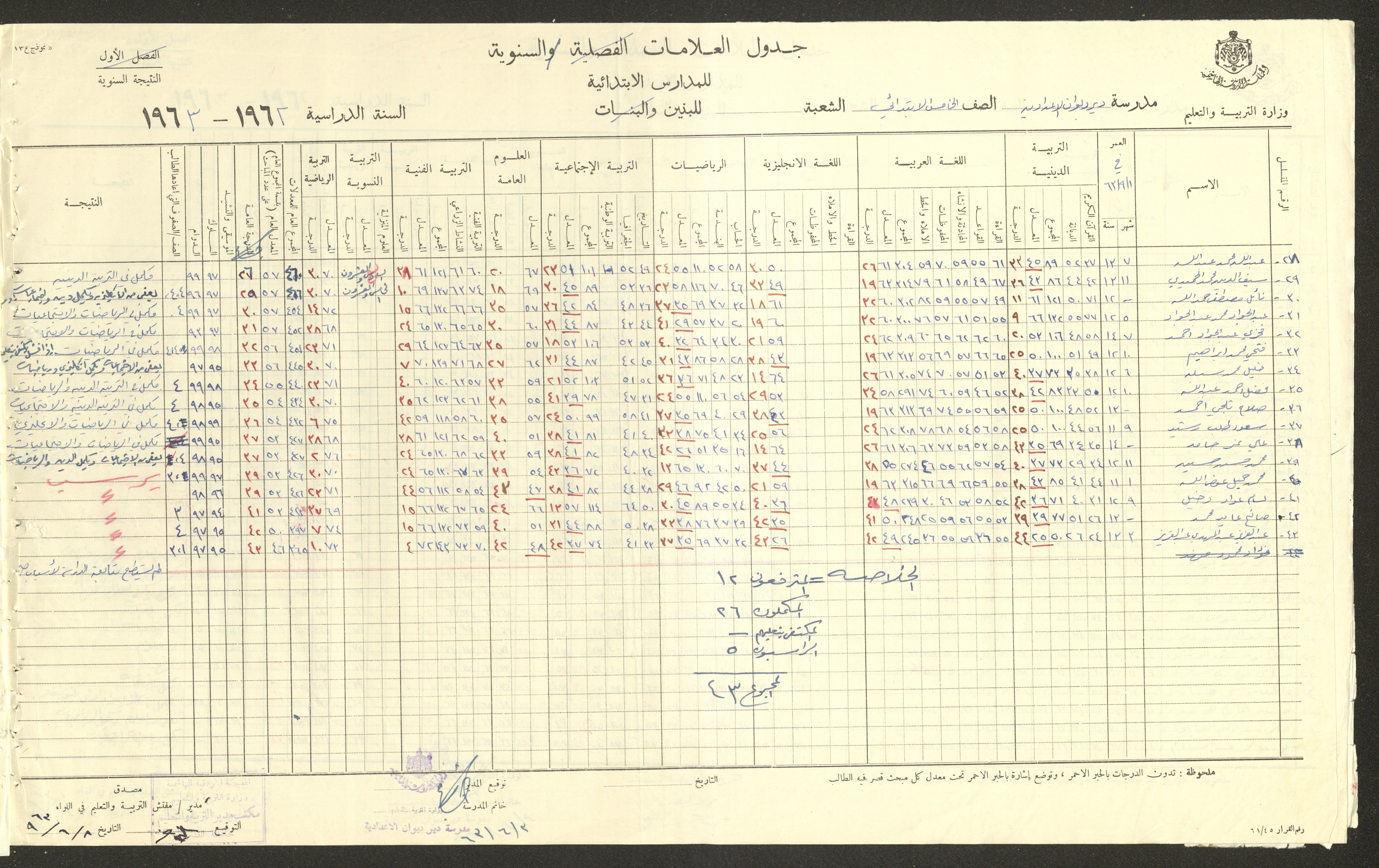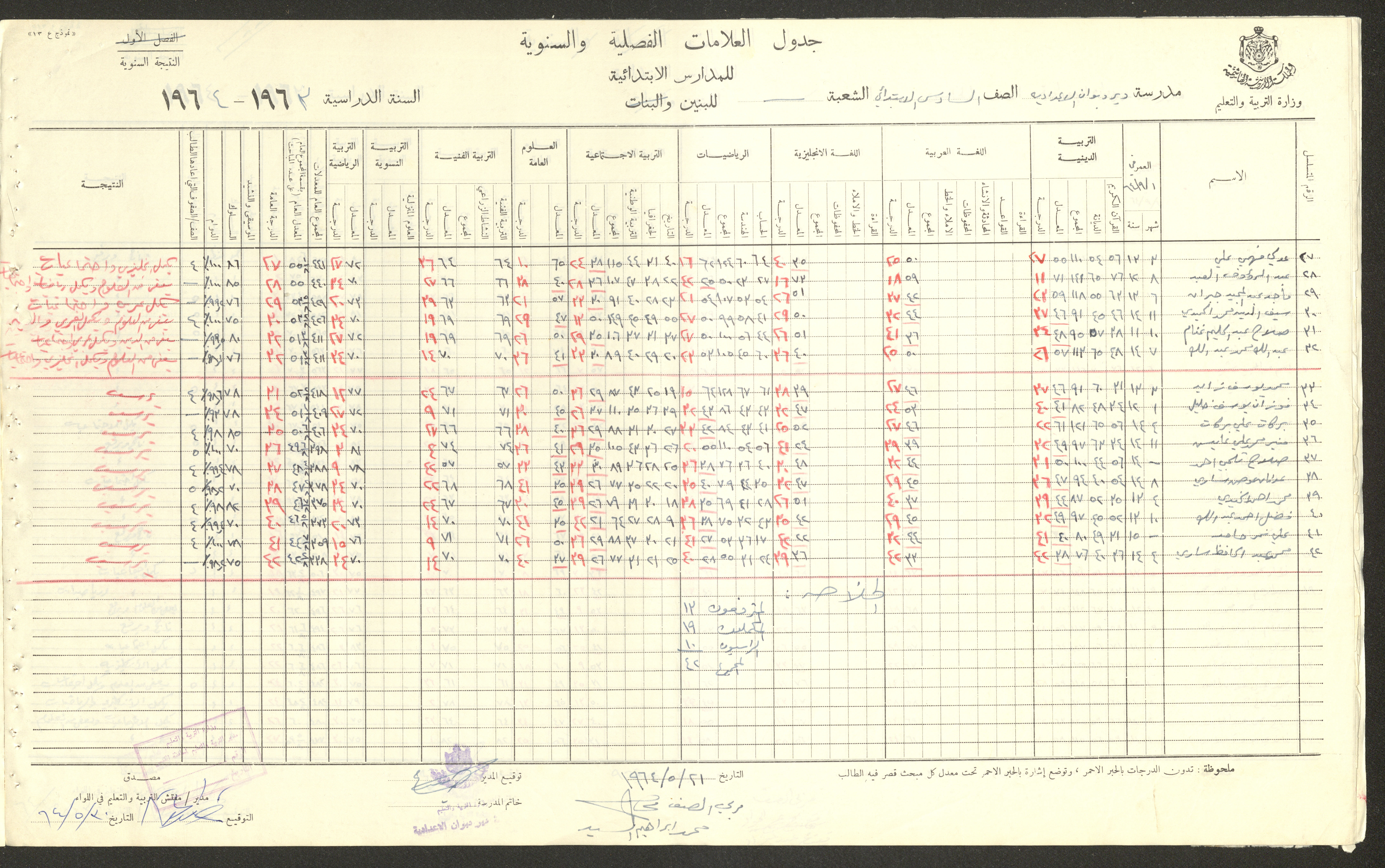 Students Marks Sheets, Deir Dibwan School, 1962-65