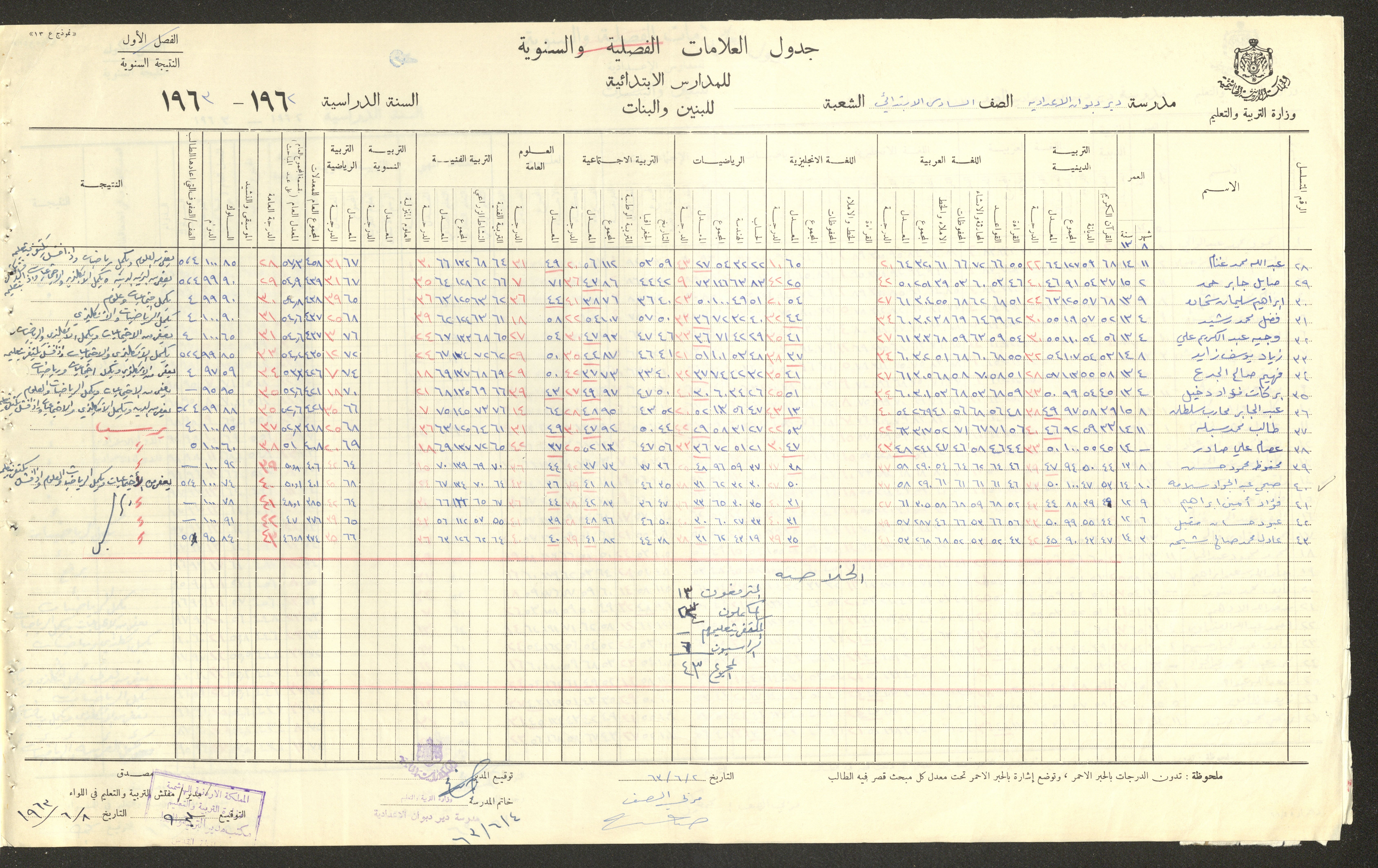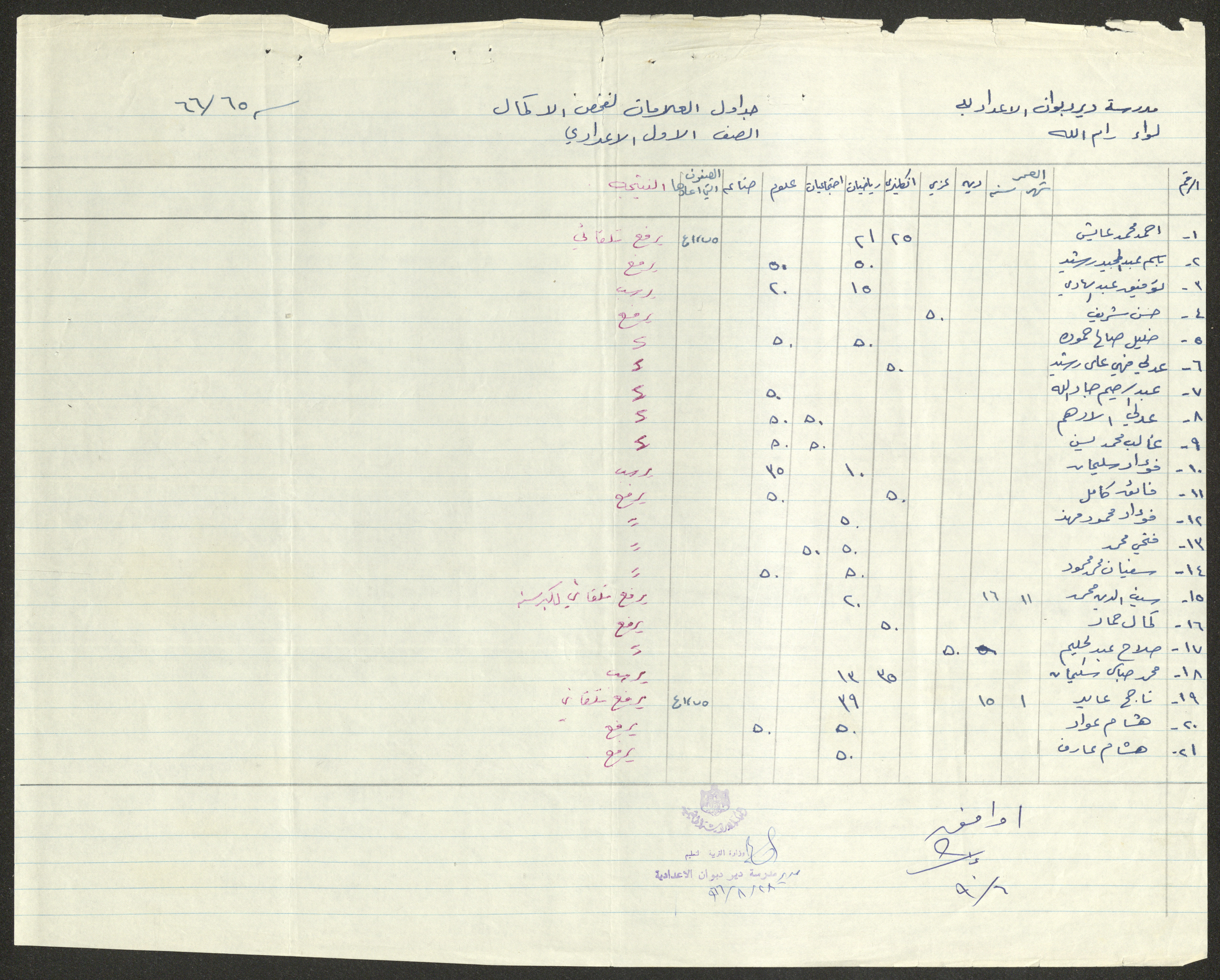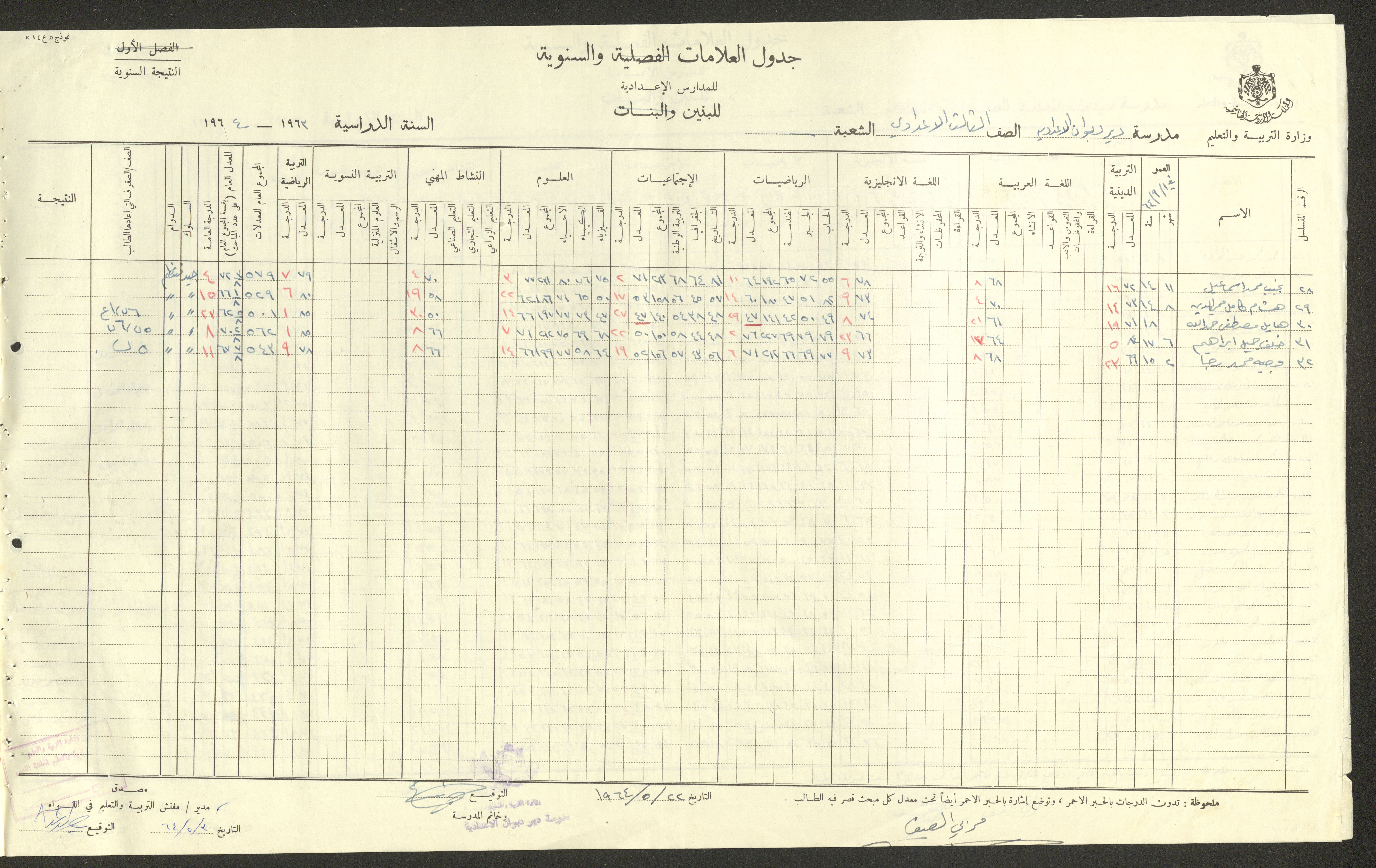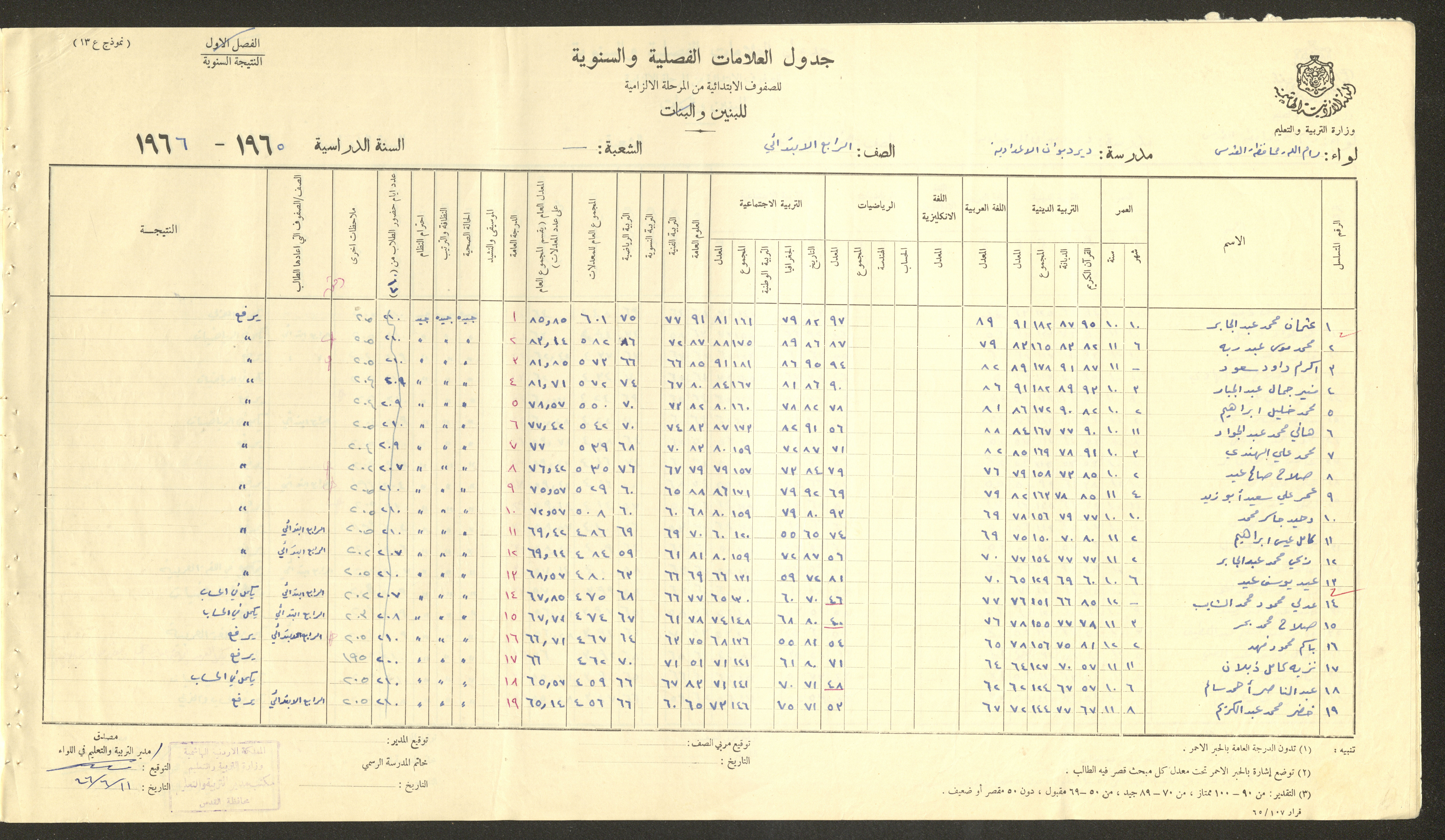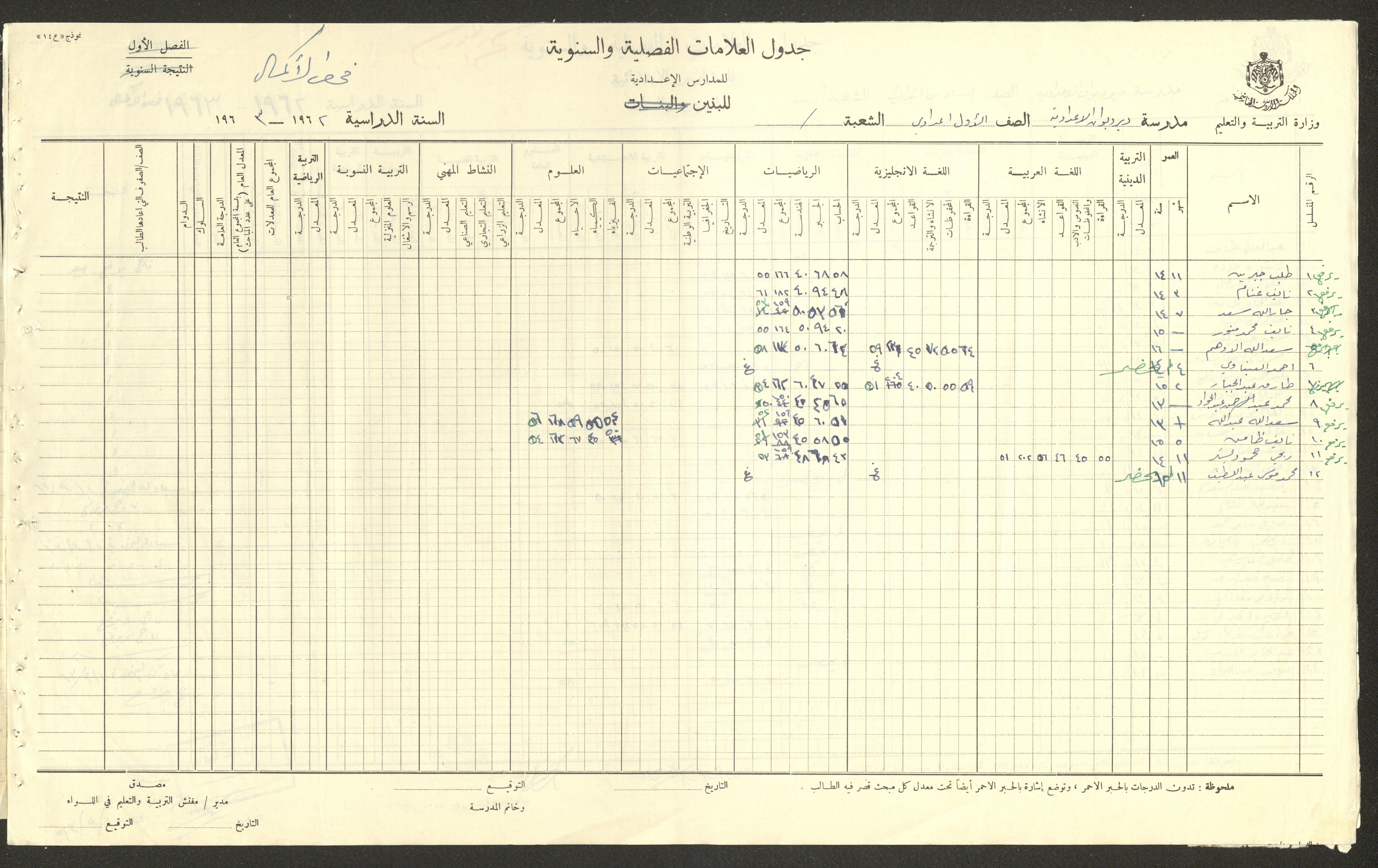 Students Marks Sheets, Deir Dibwan School, 1962-65