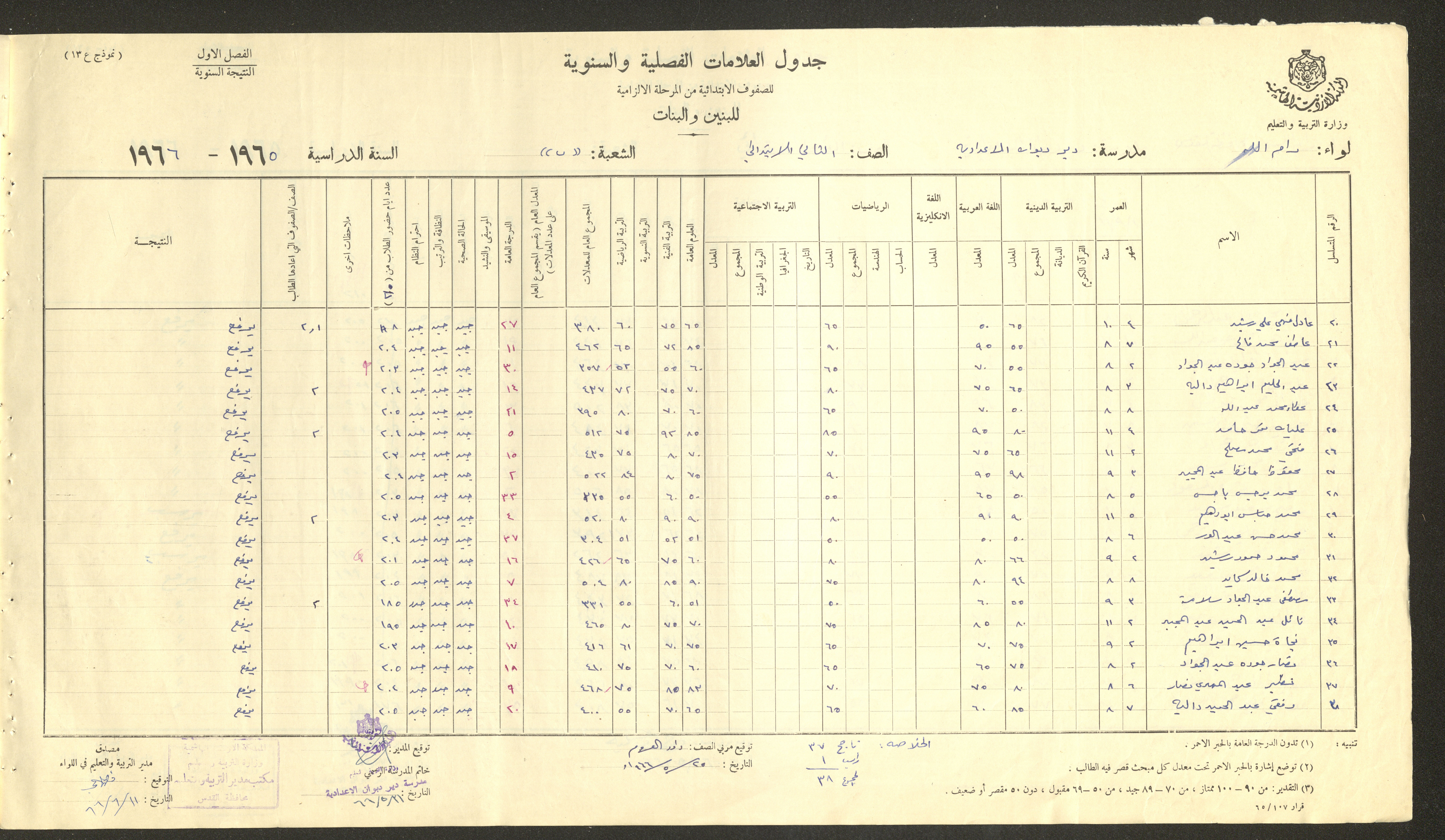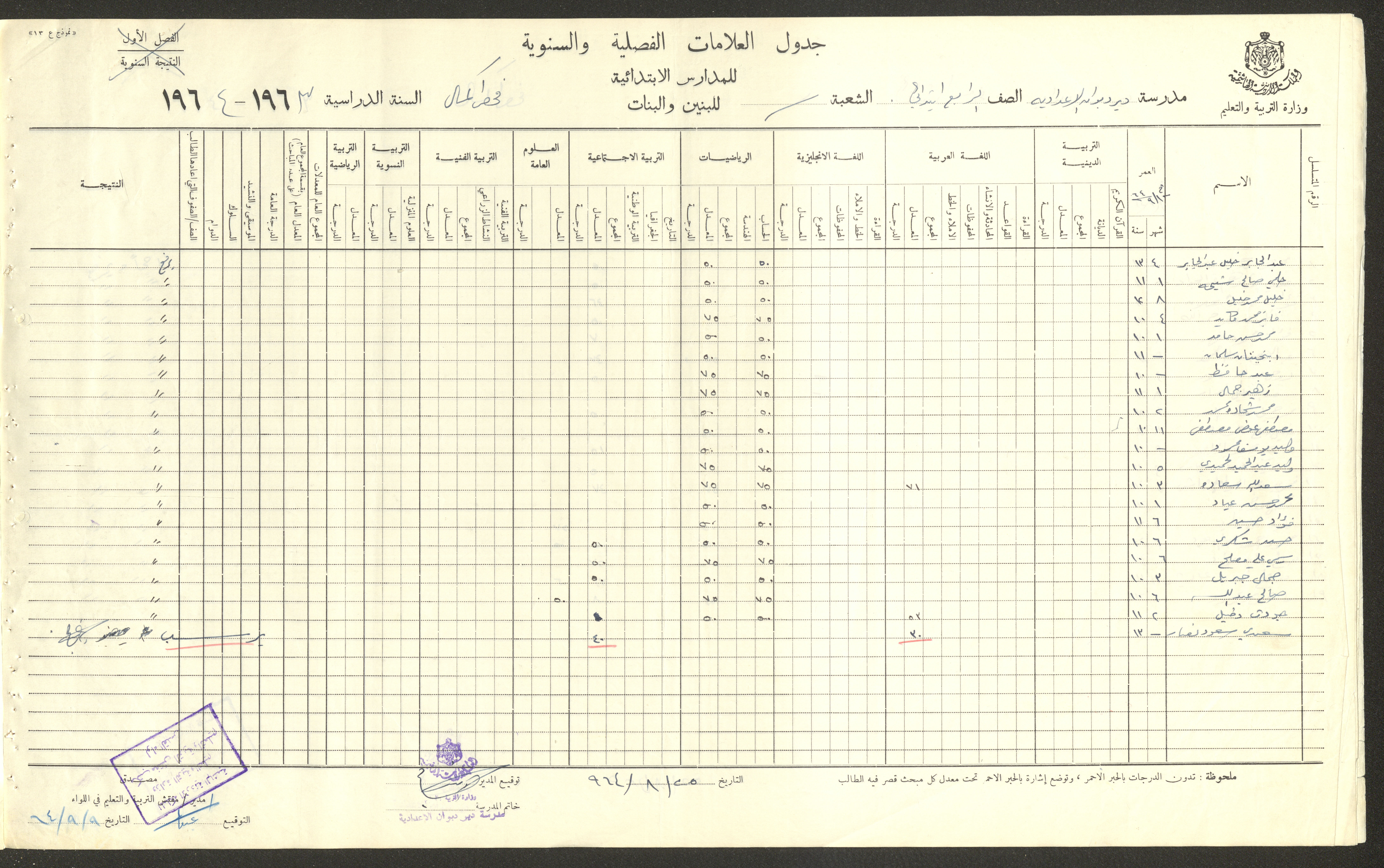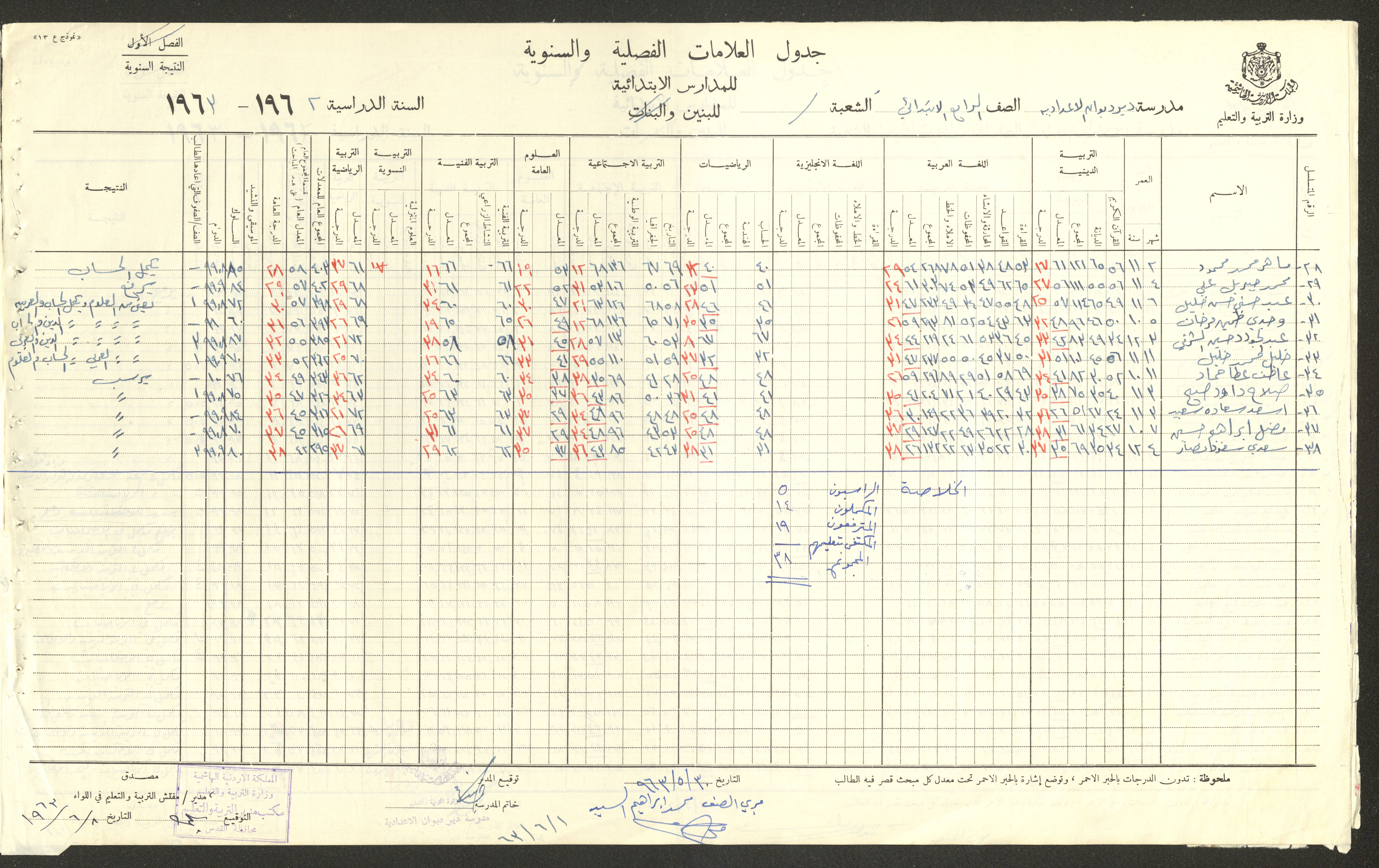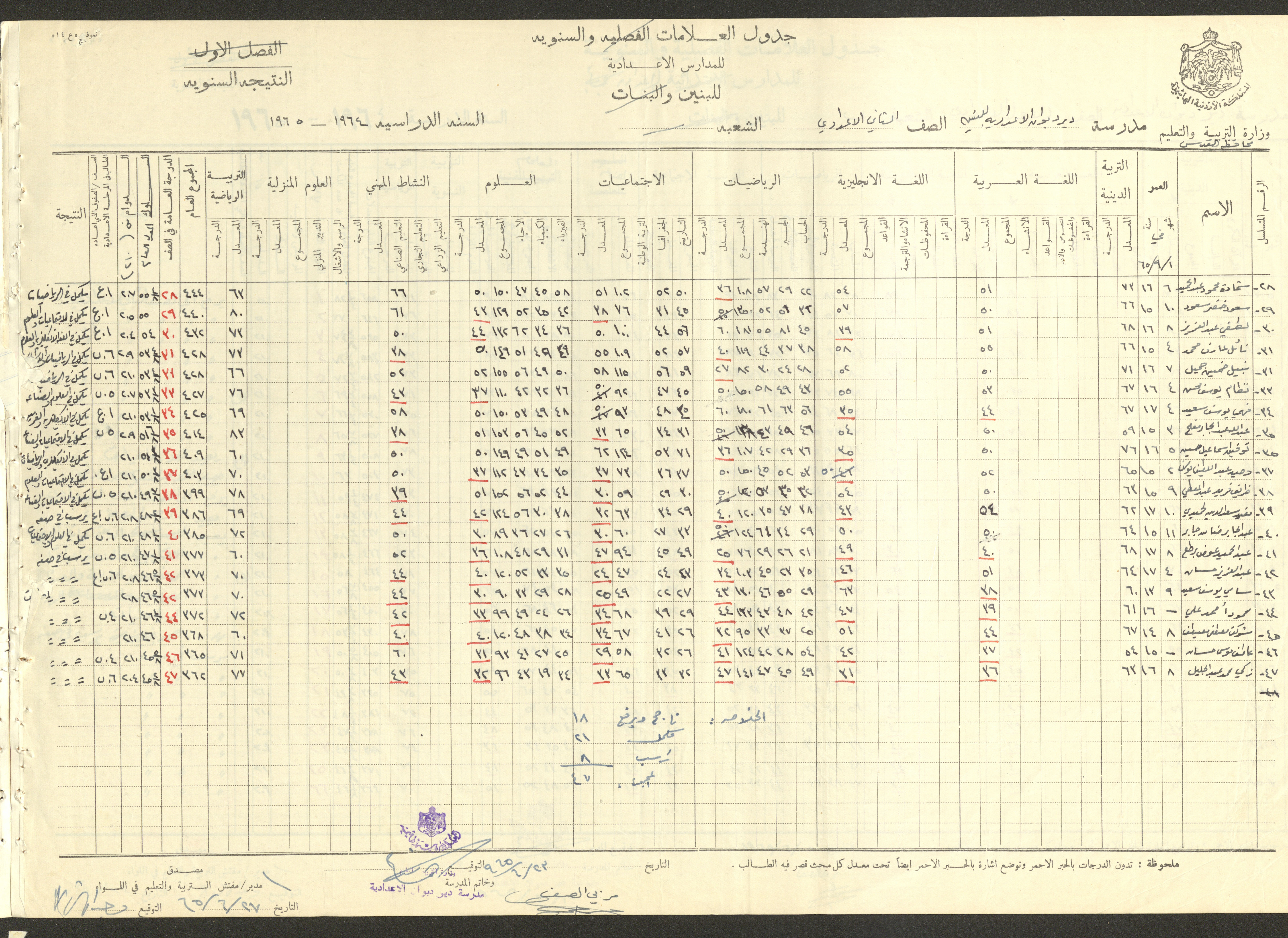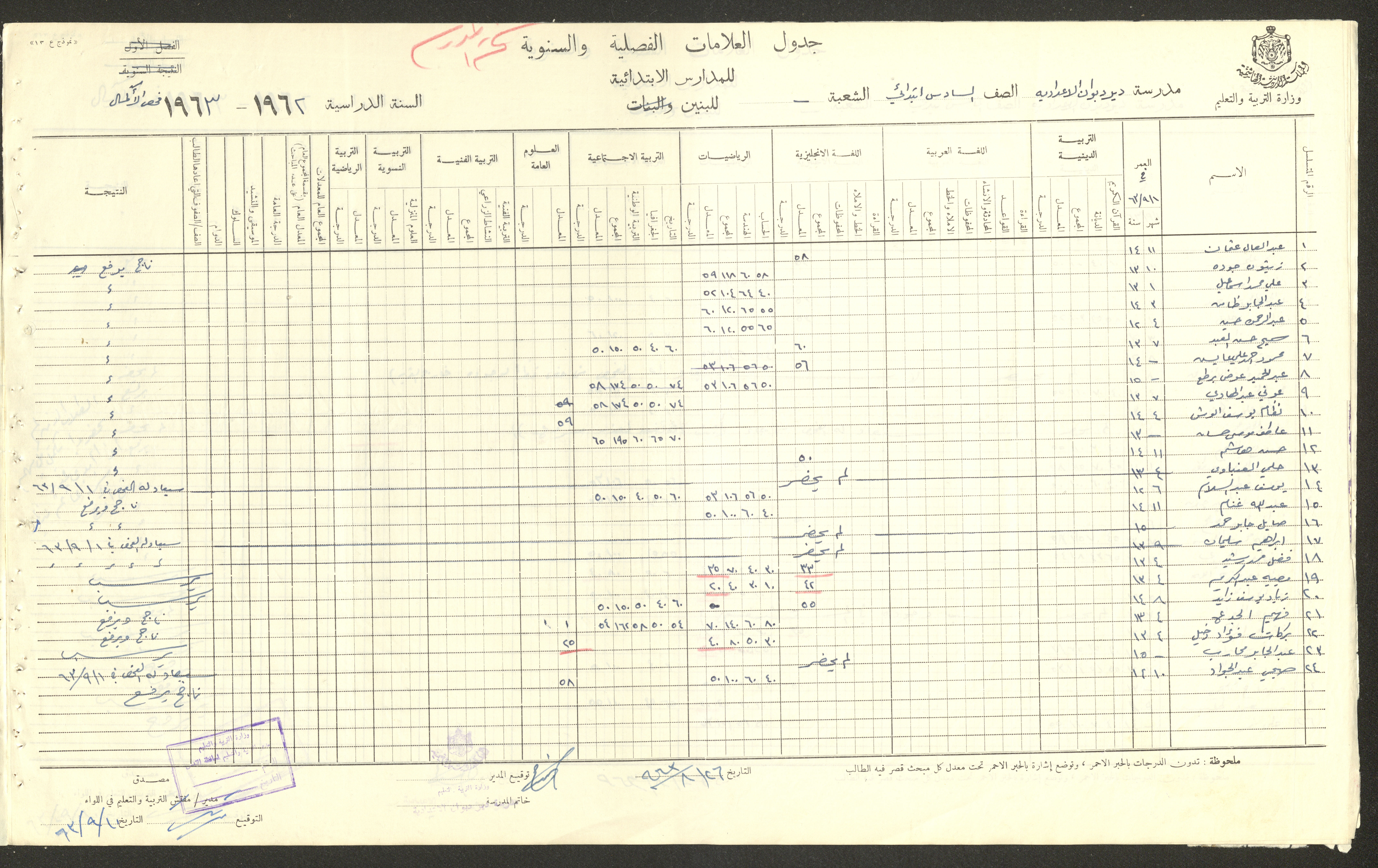 Students Marks Sheets, Deir Dibwan School, 1962-65