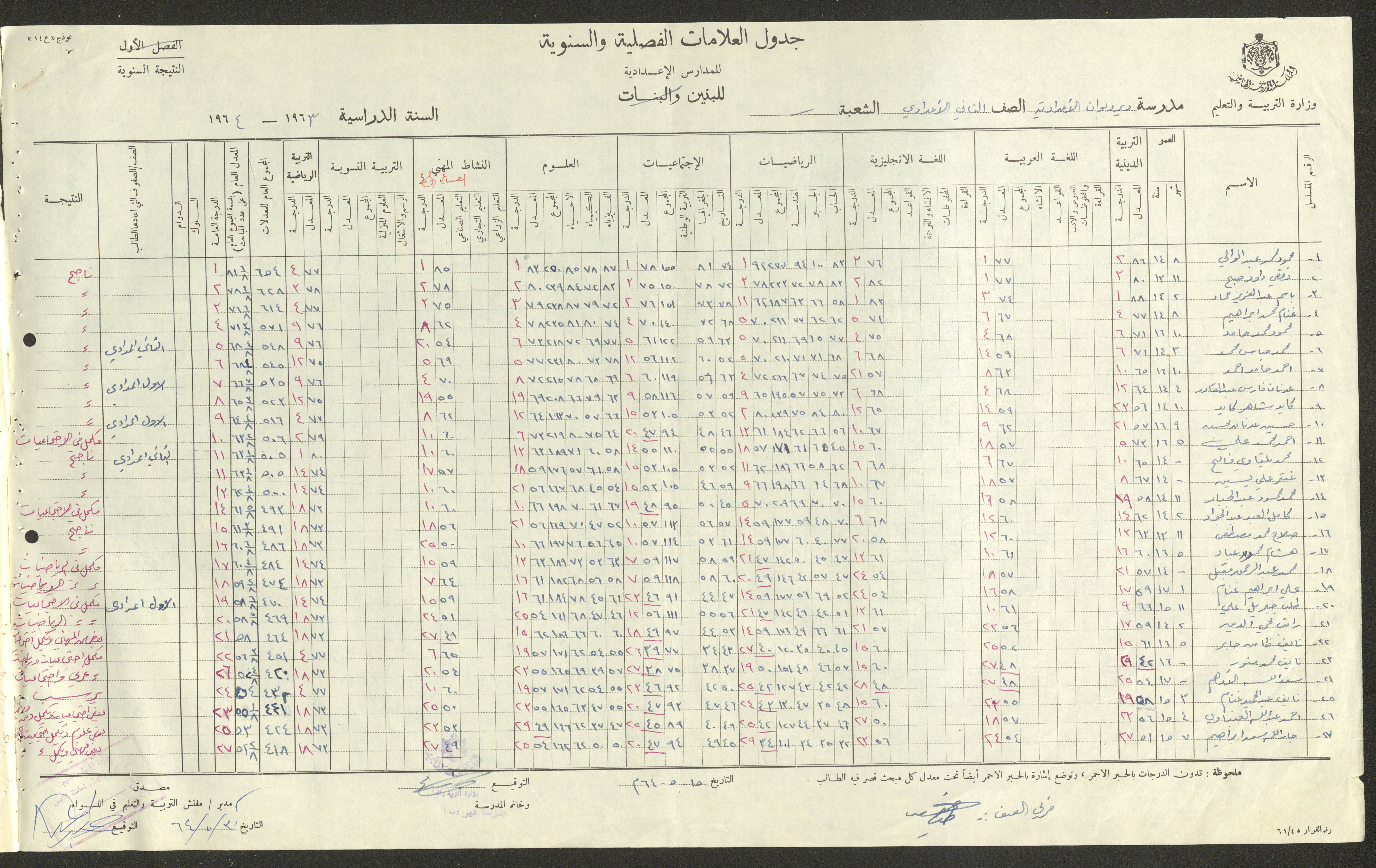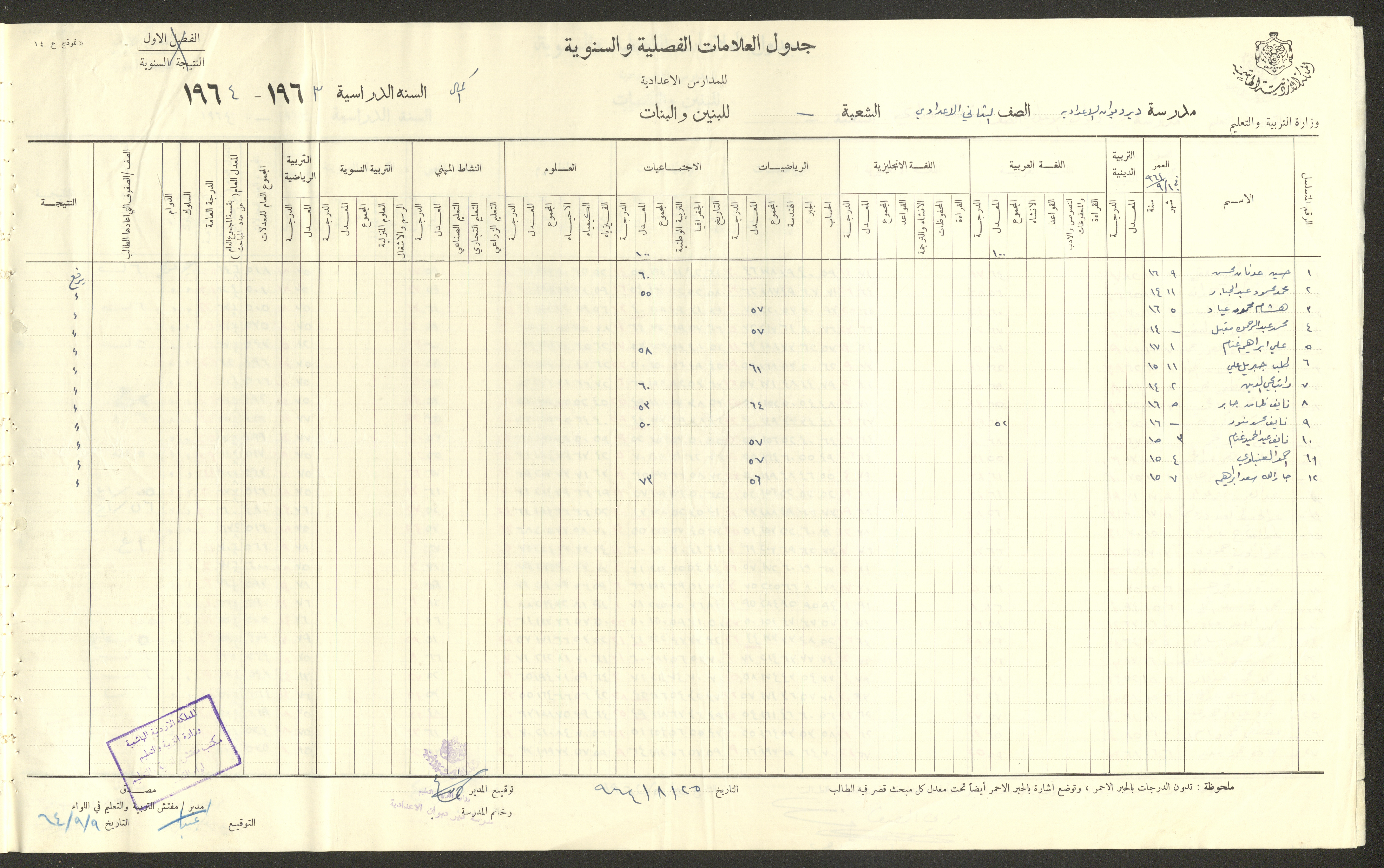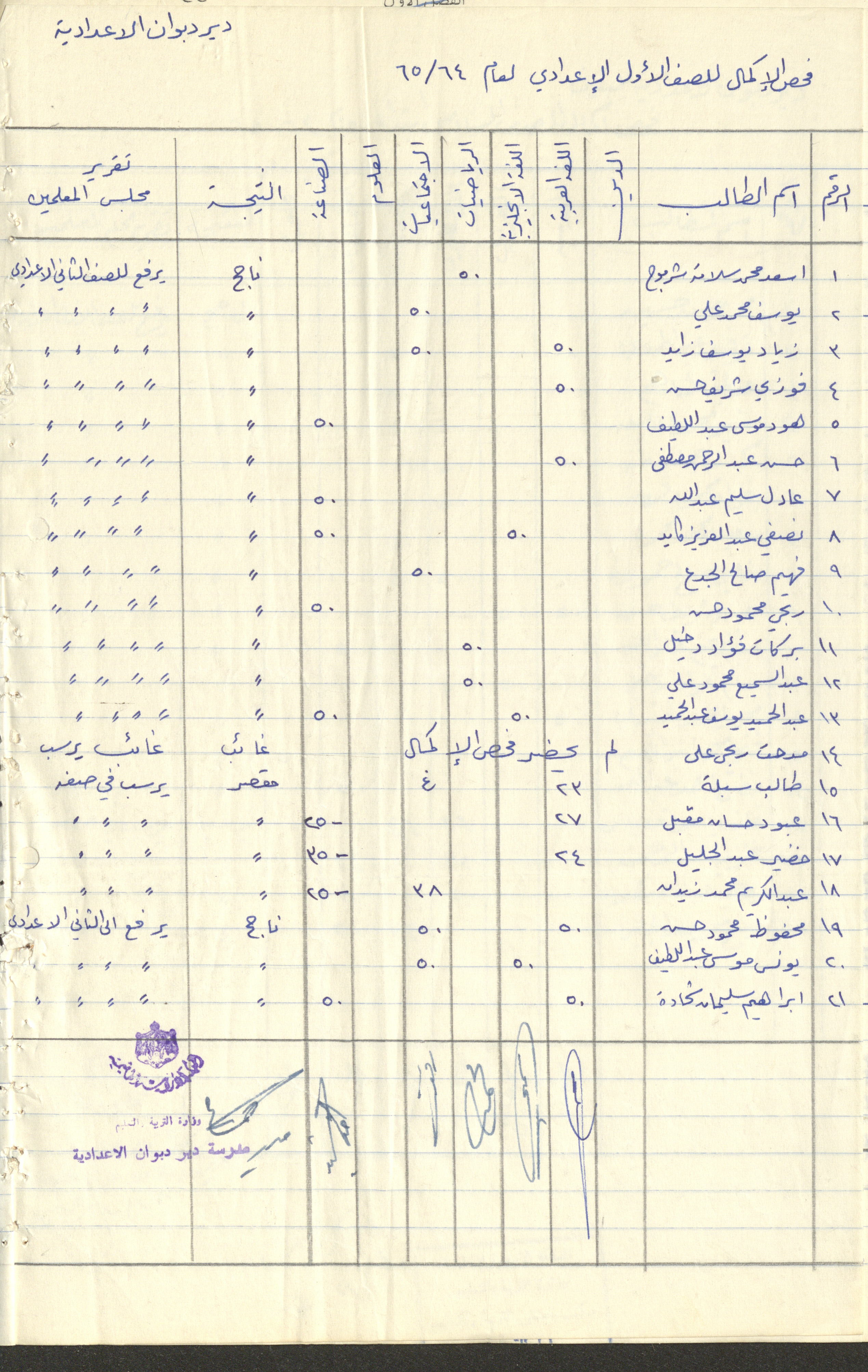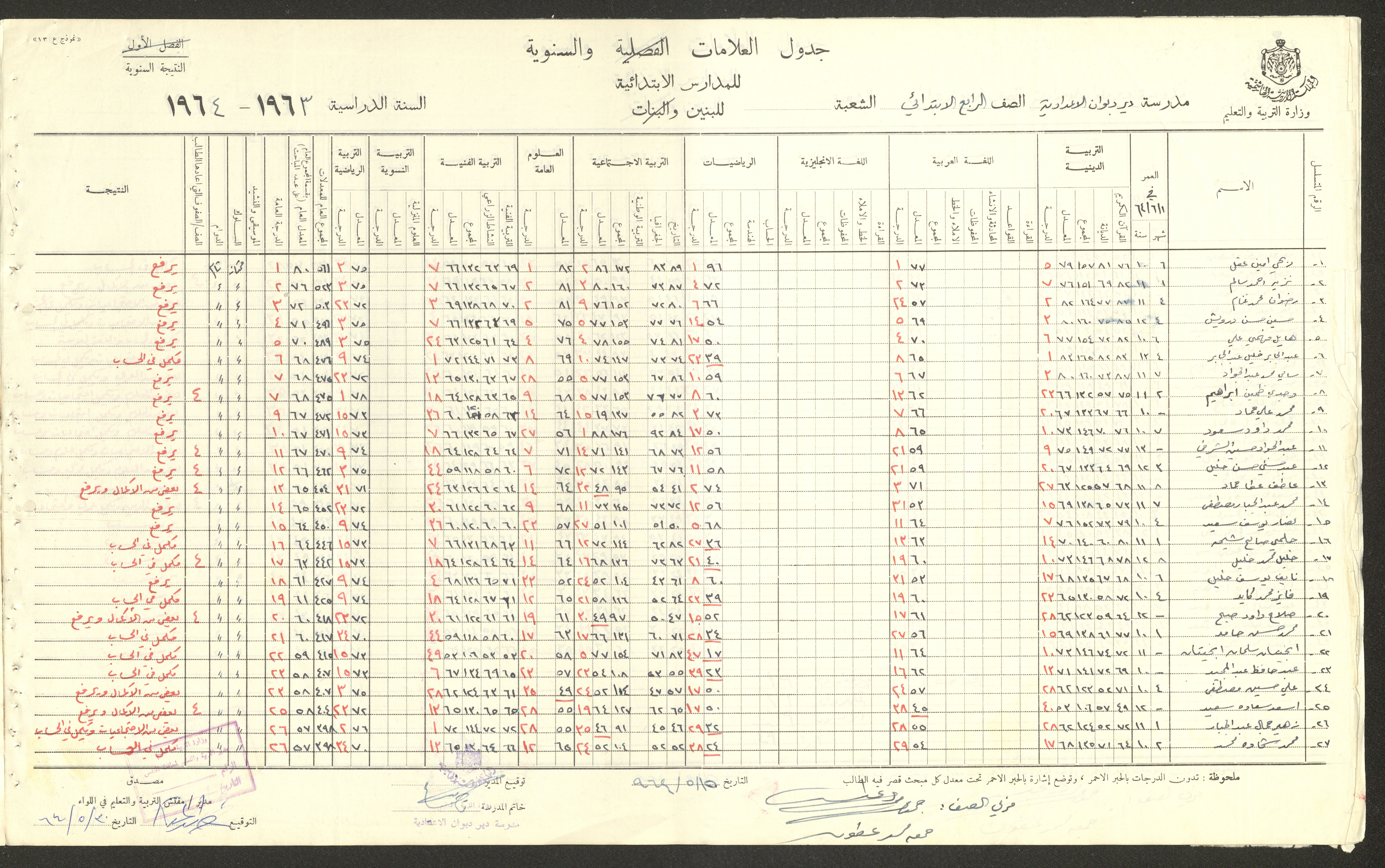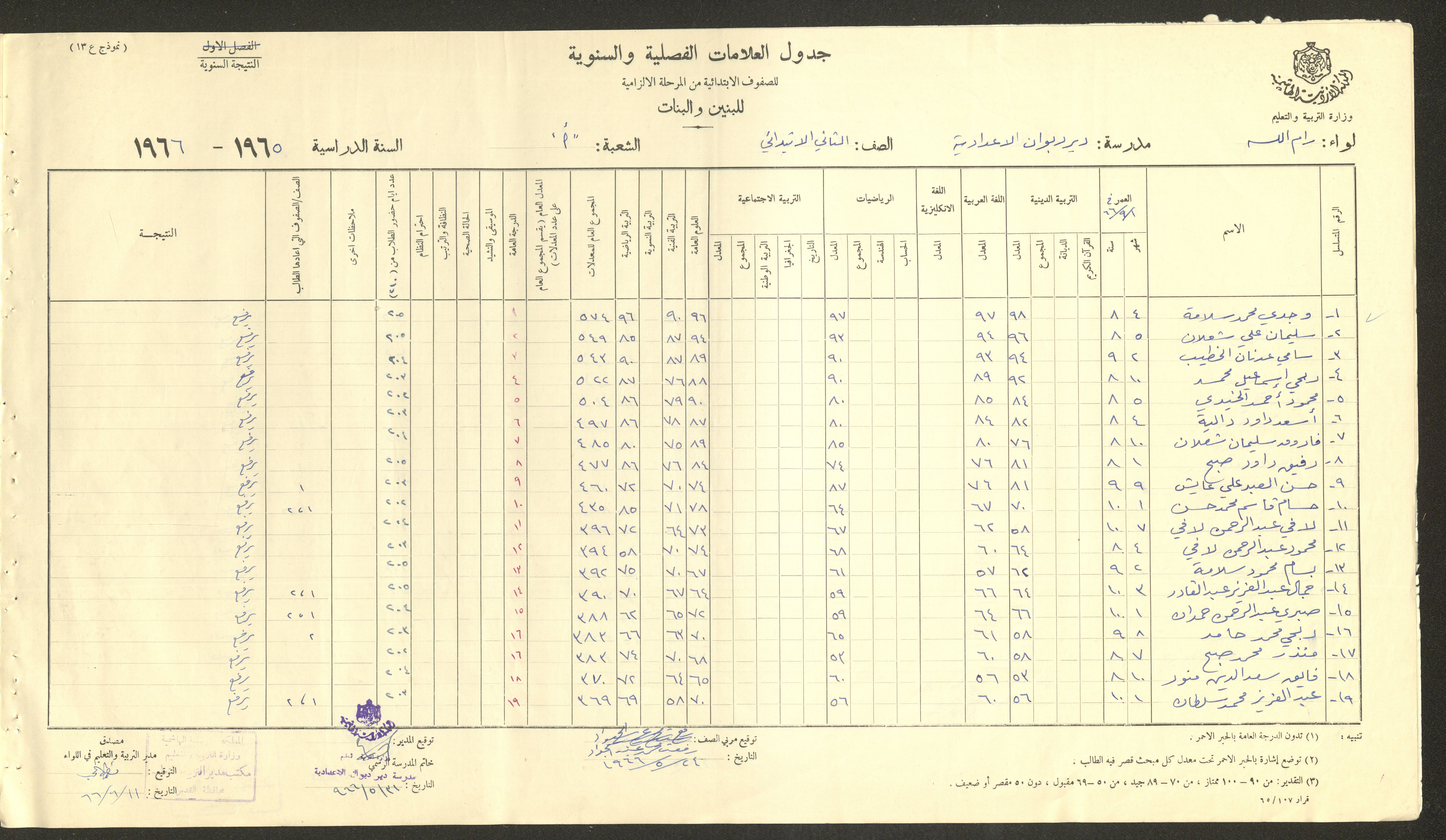 Students Marks Sheets, Deir Dibwan School, 1962-65