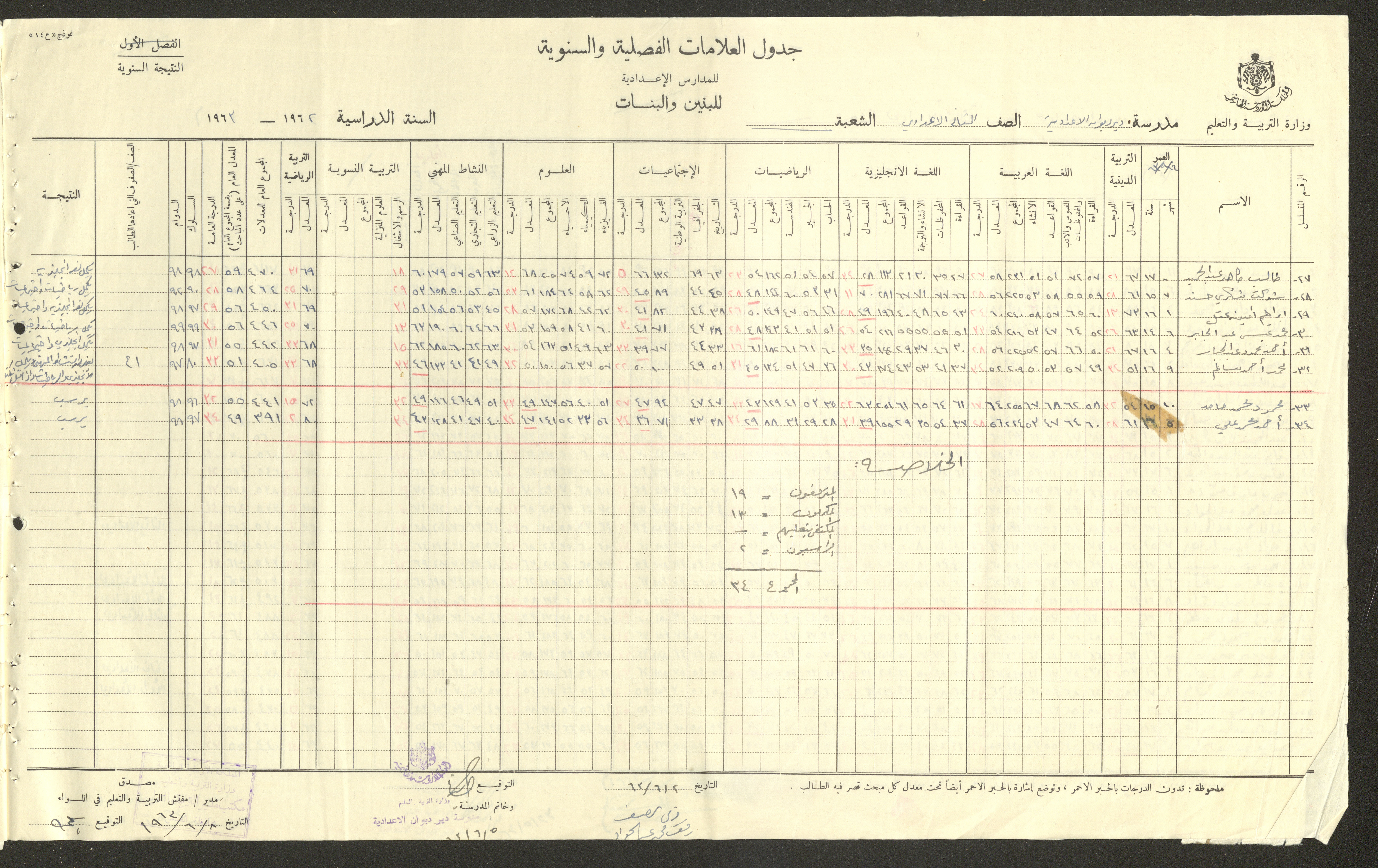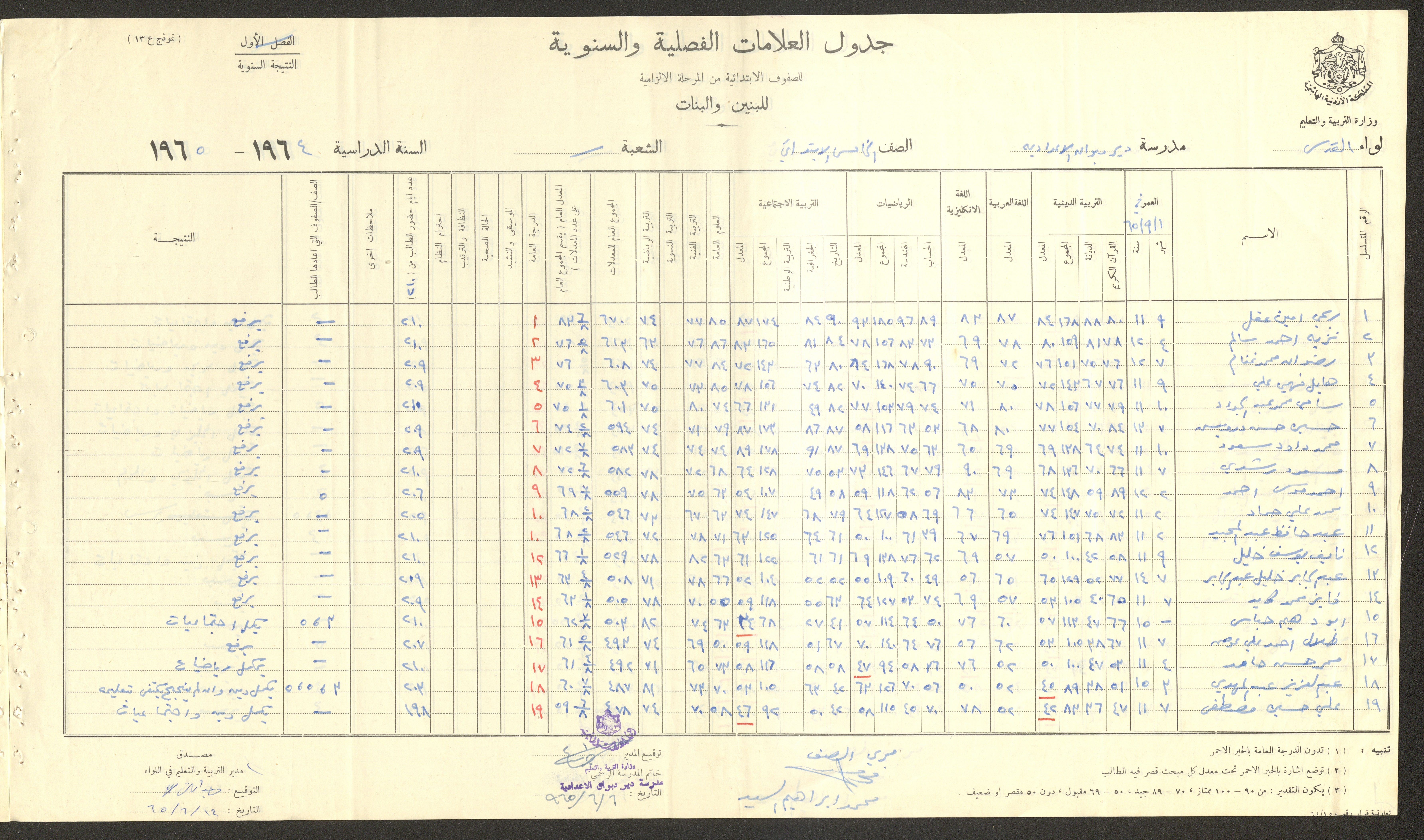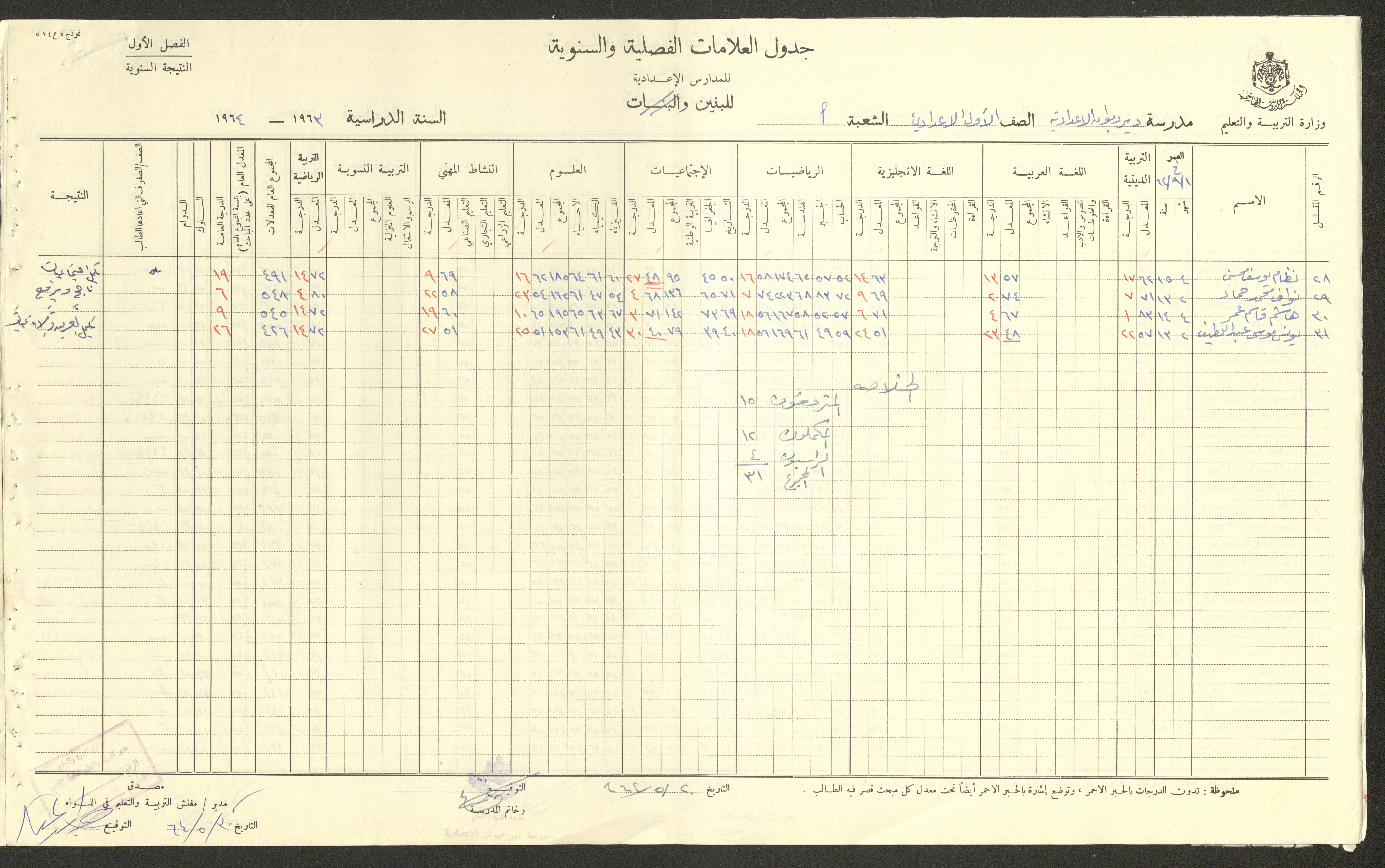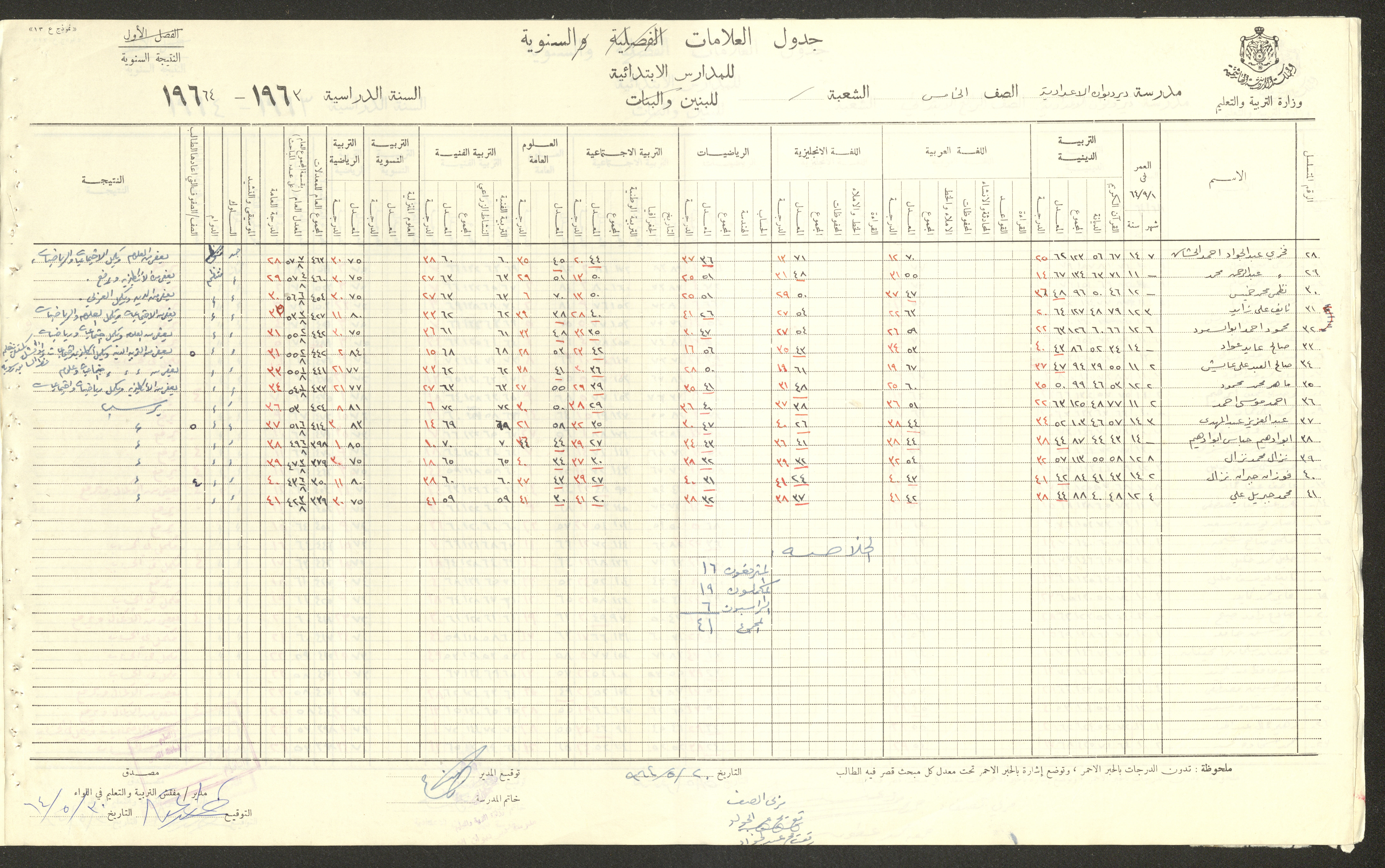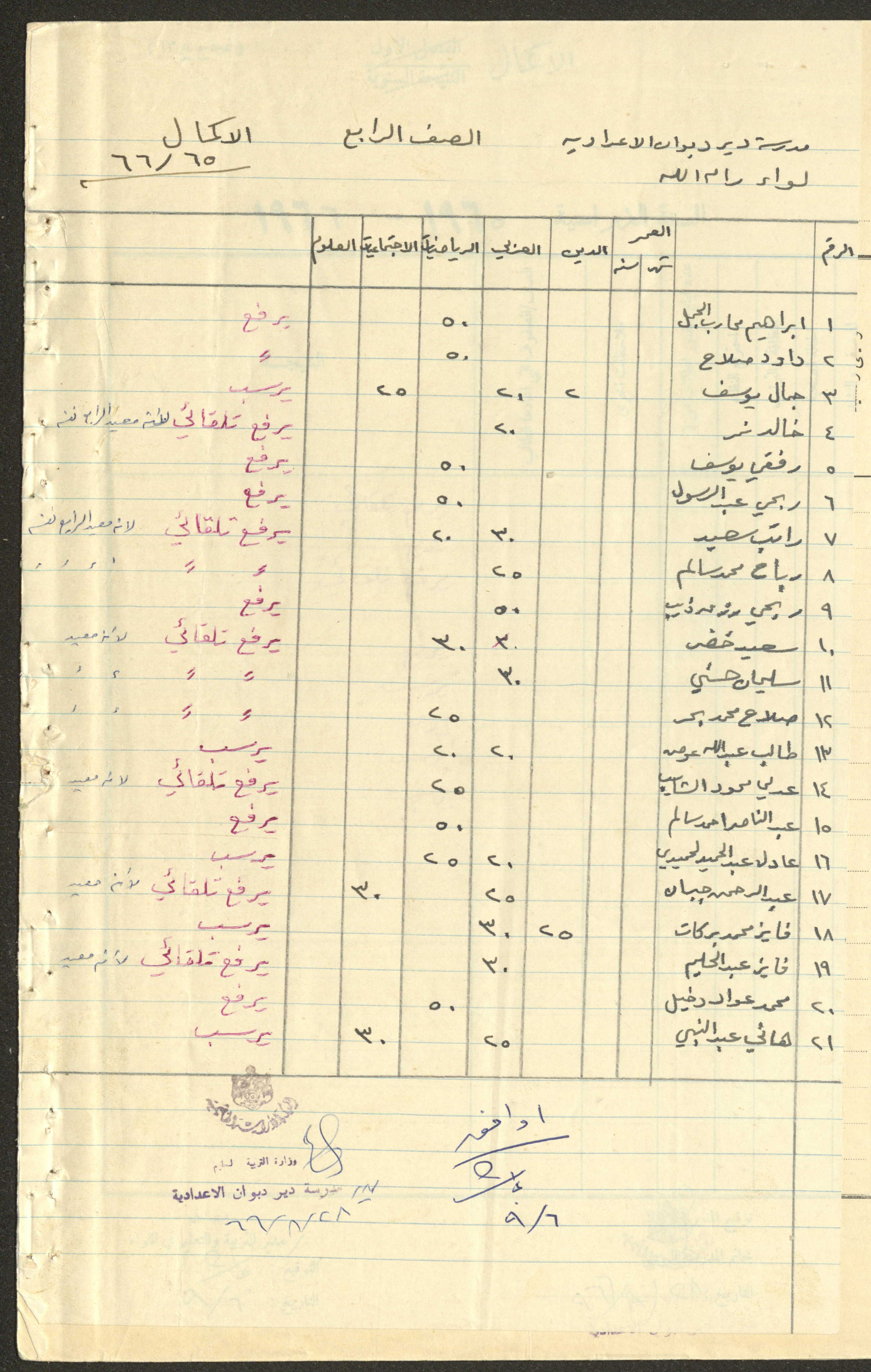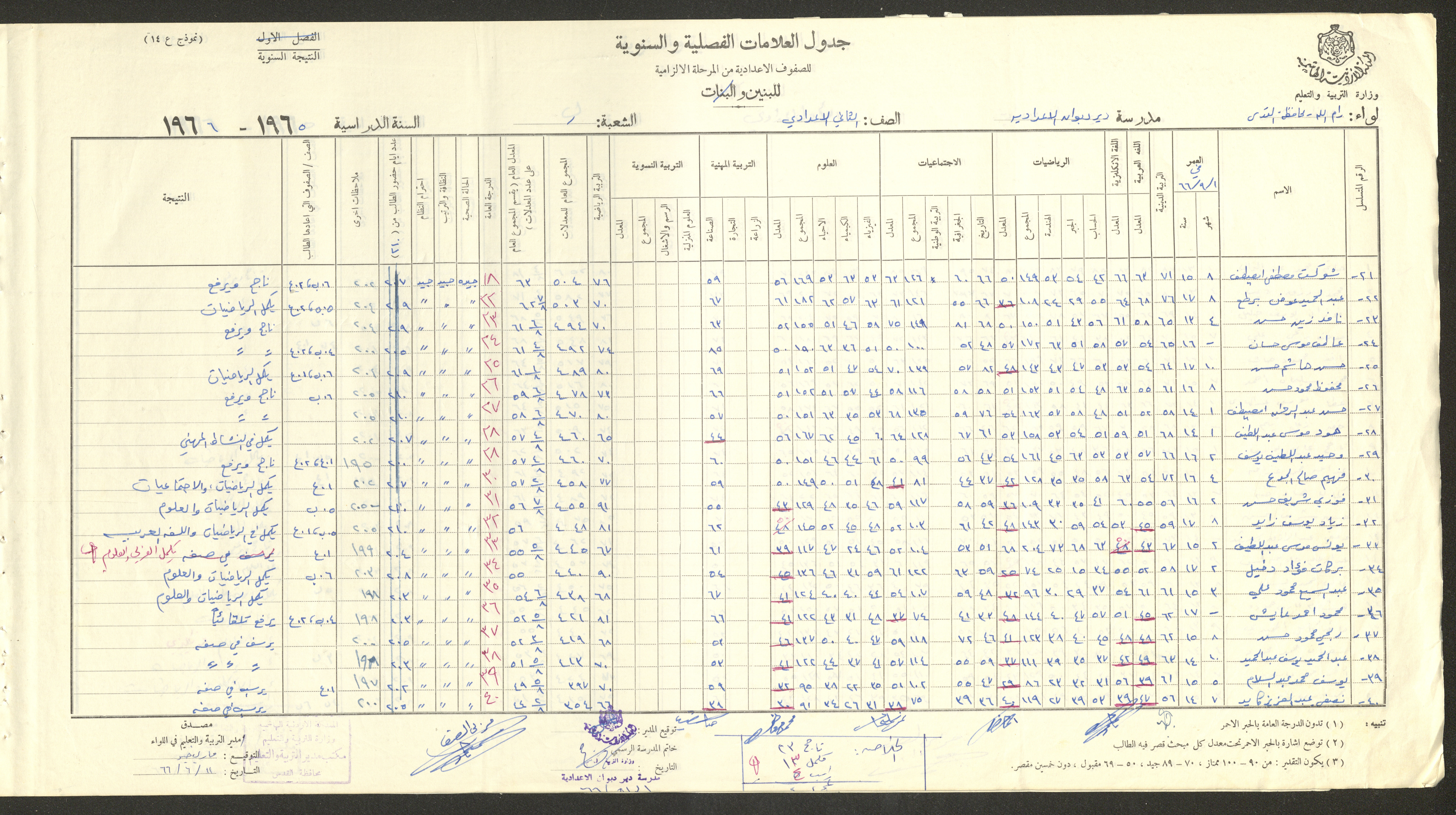 Students Marks Sheets, Deir Dibwan School, 1962-65