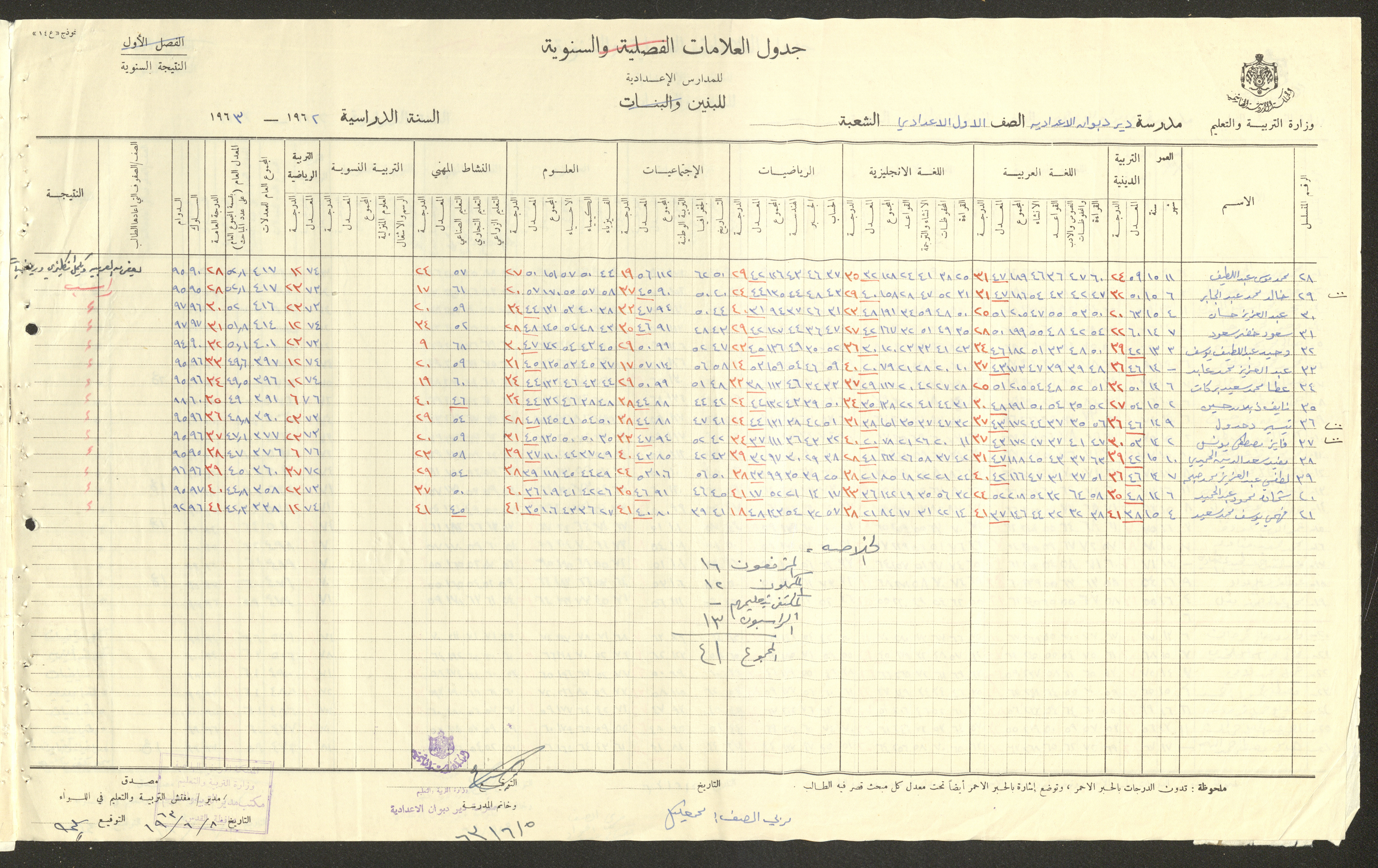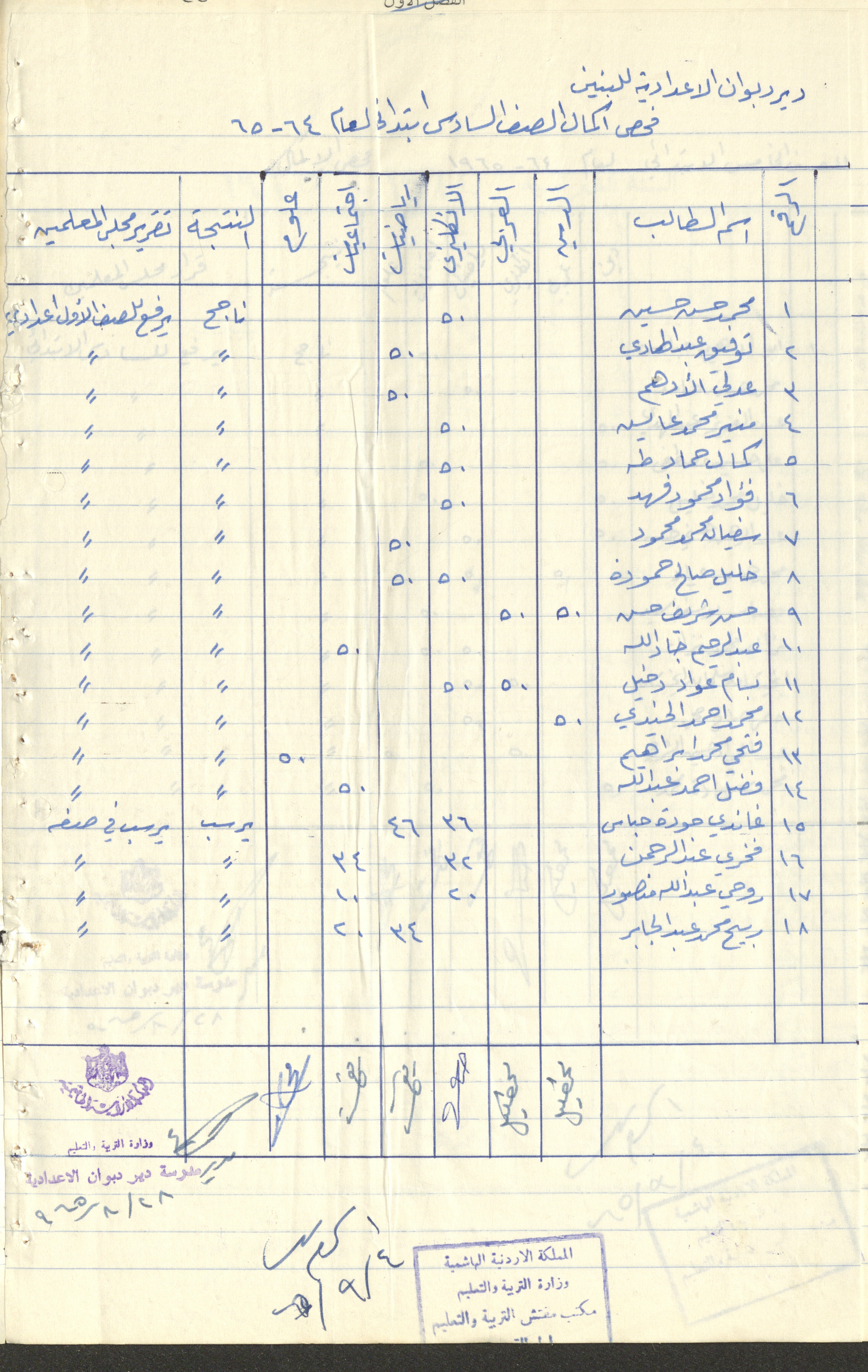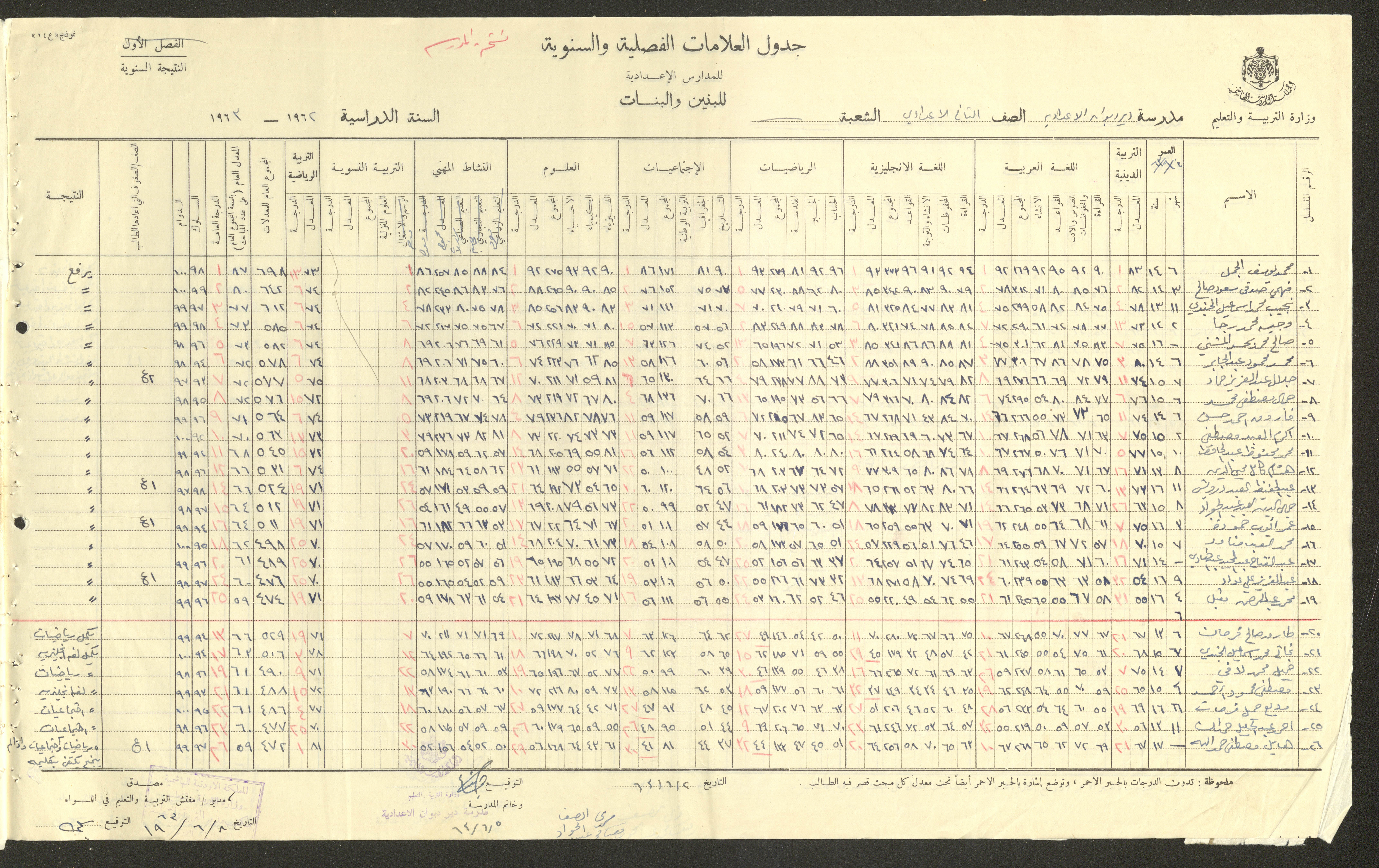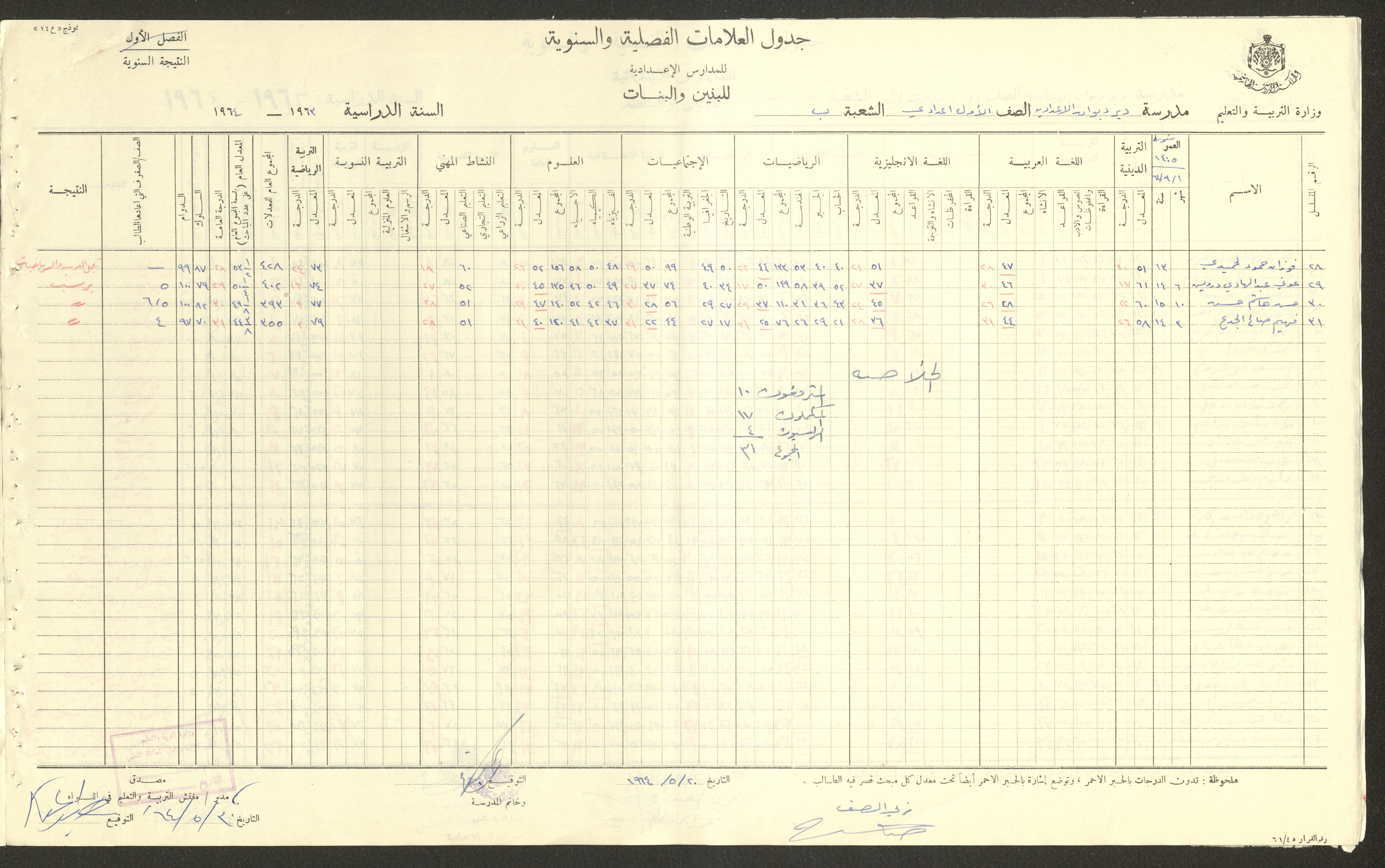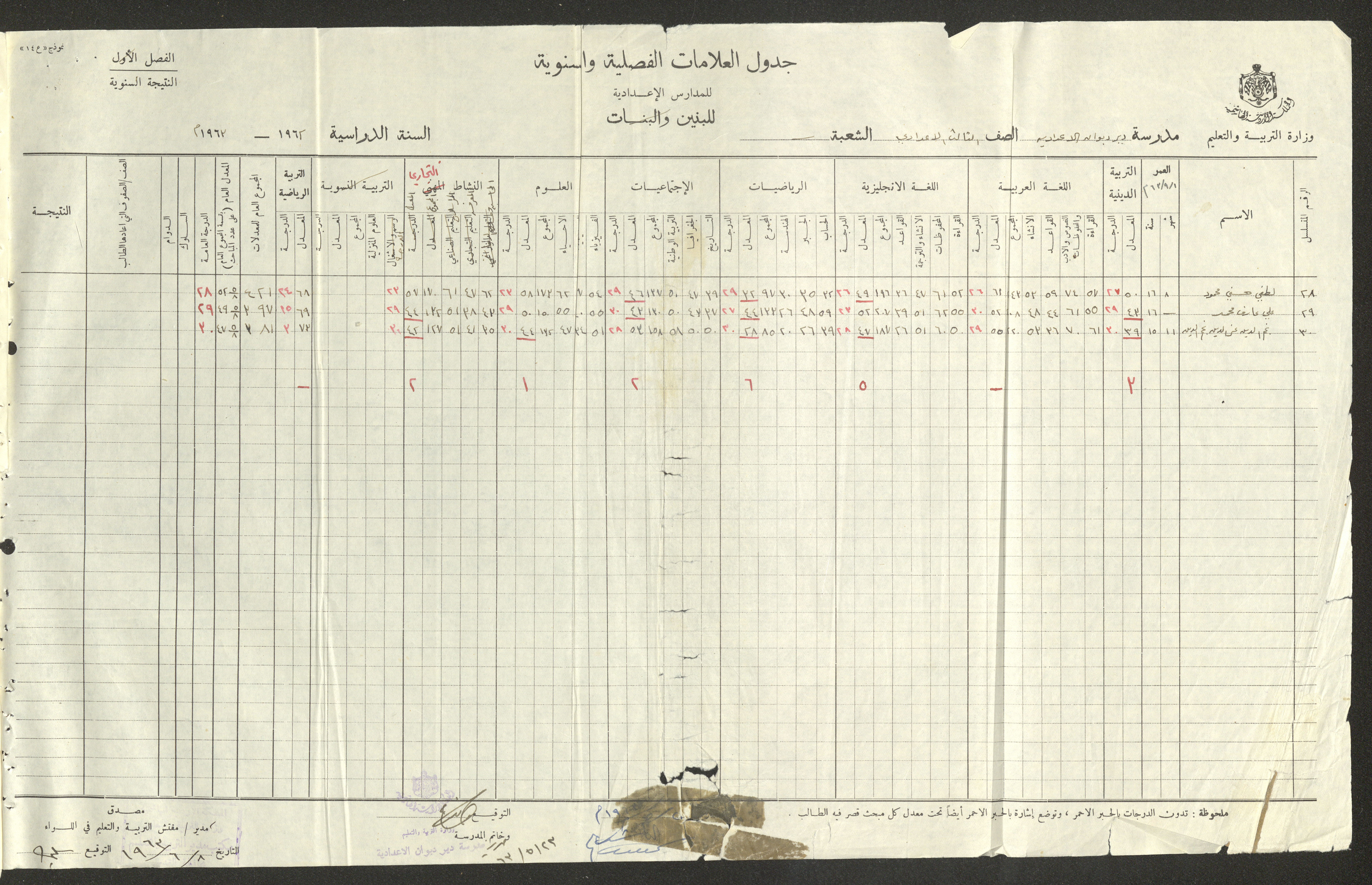 Students Marks Sheets, Deir Dibwan School, 1962-65