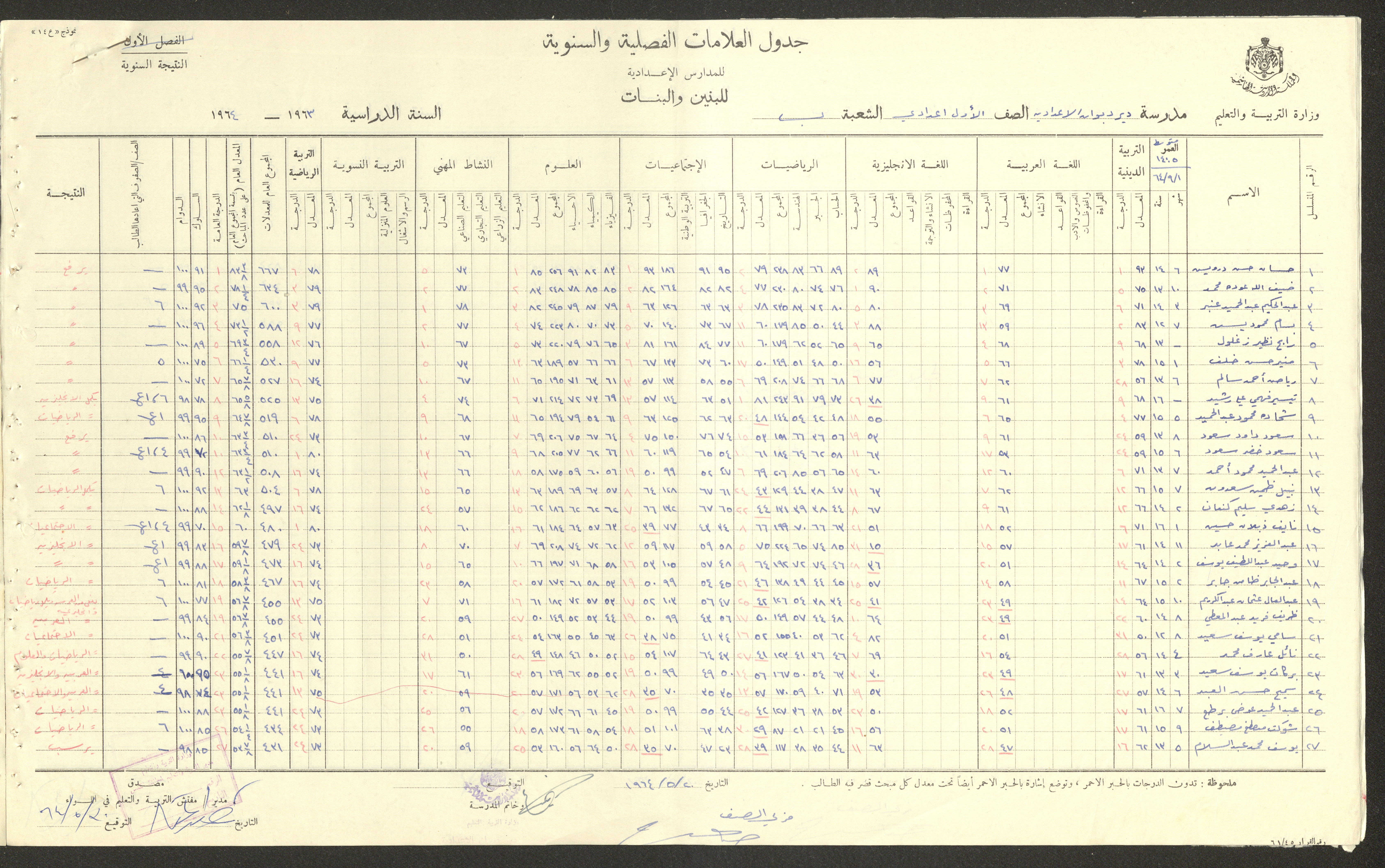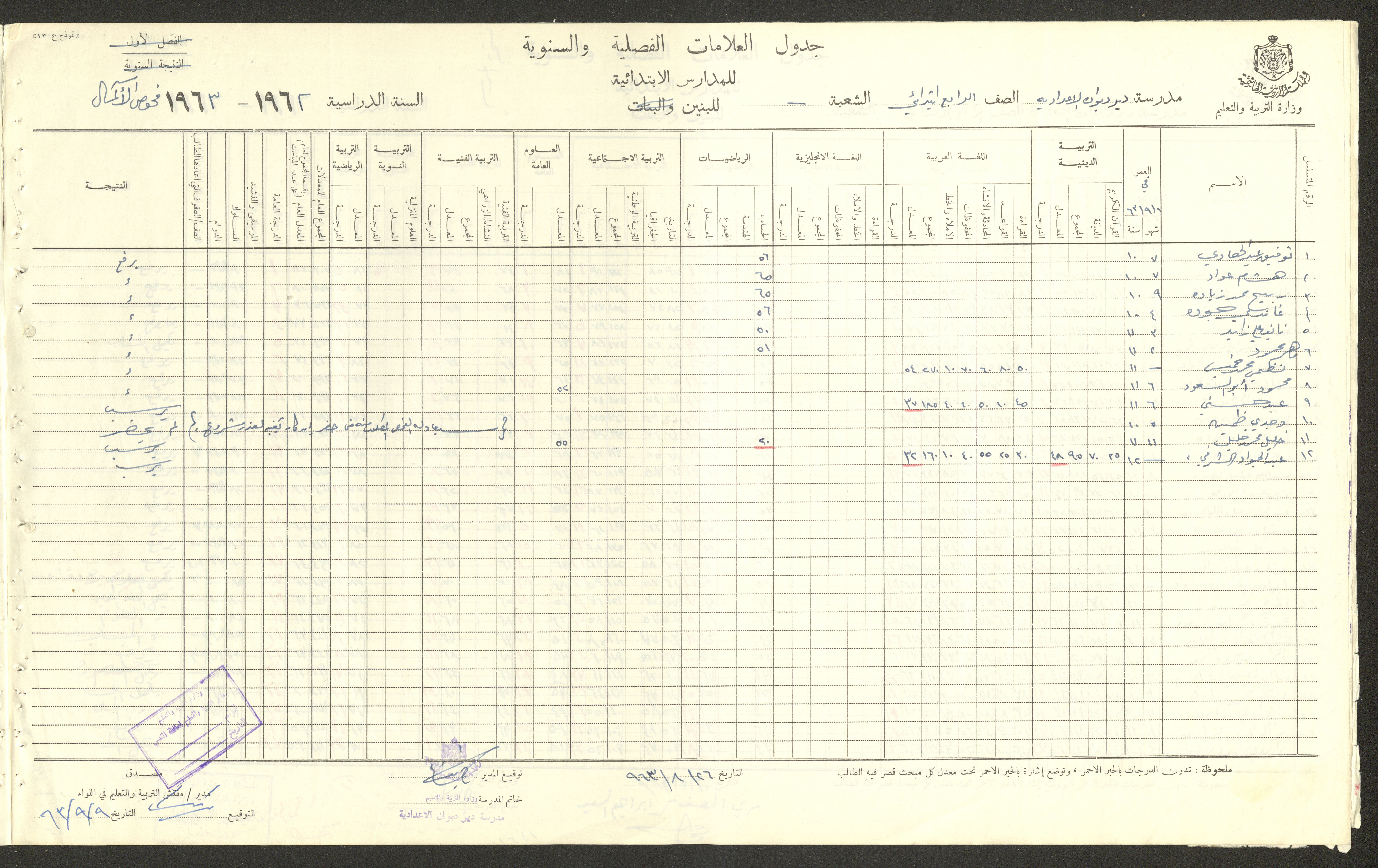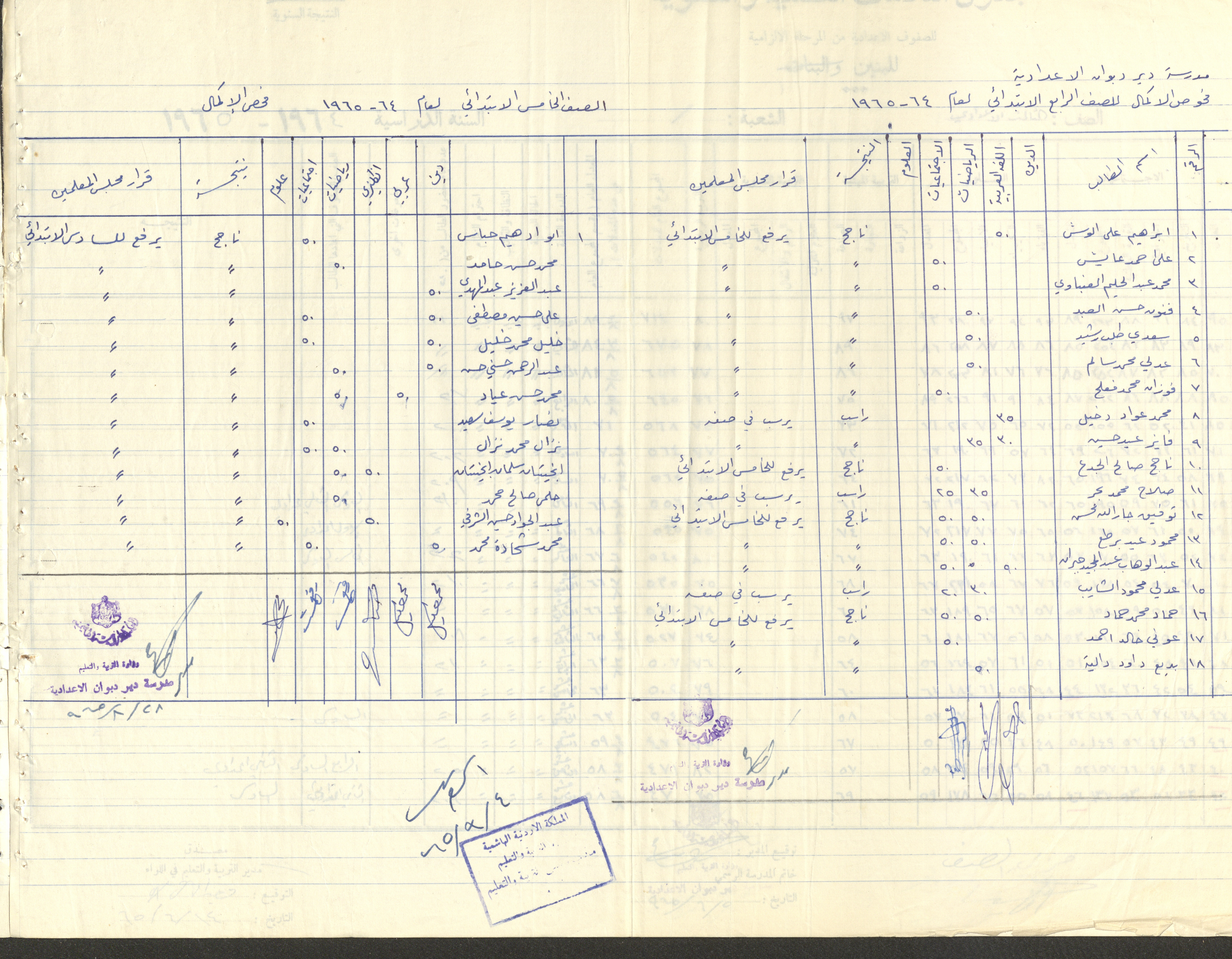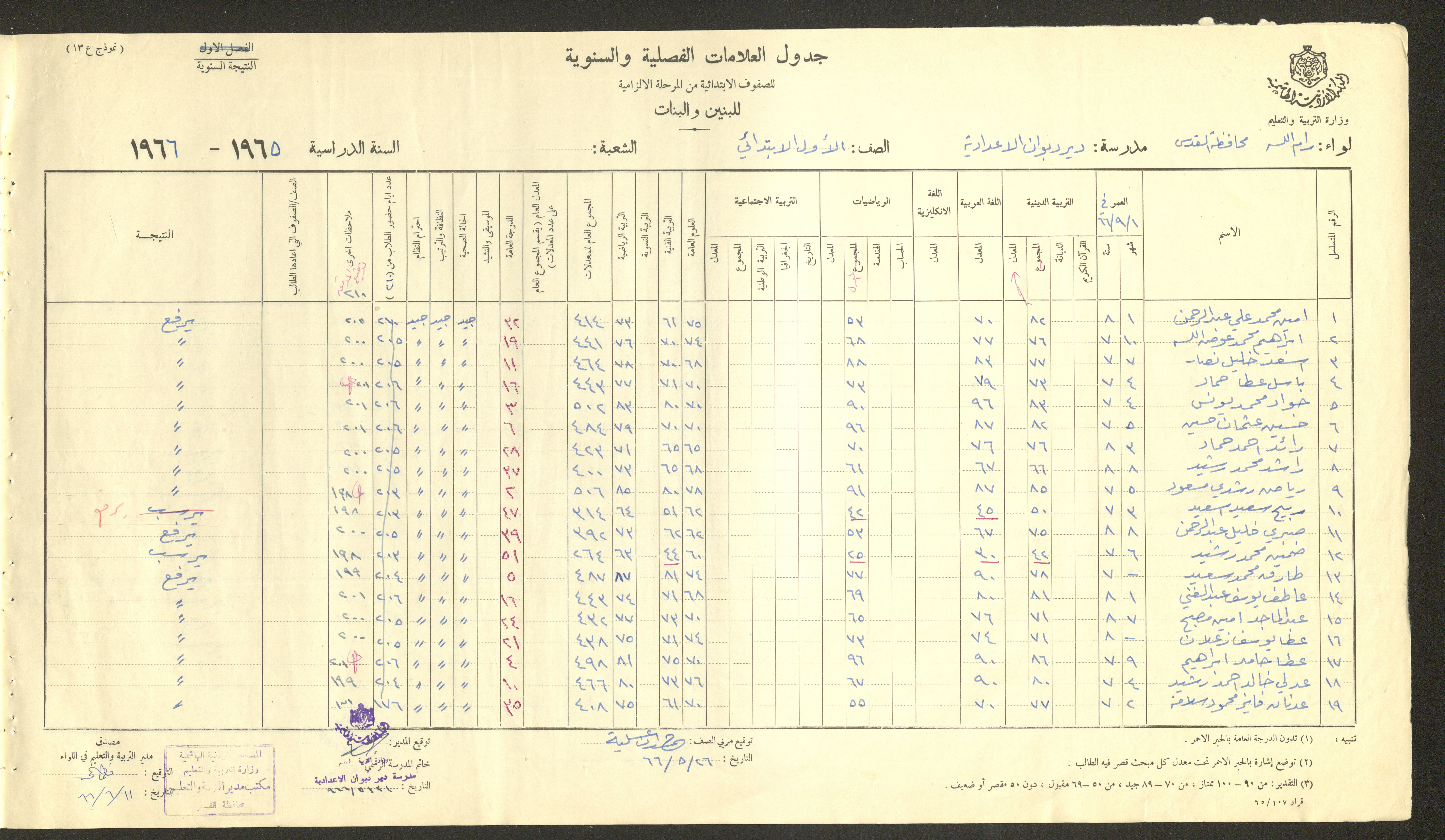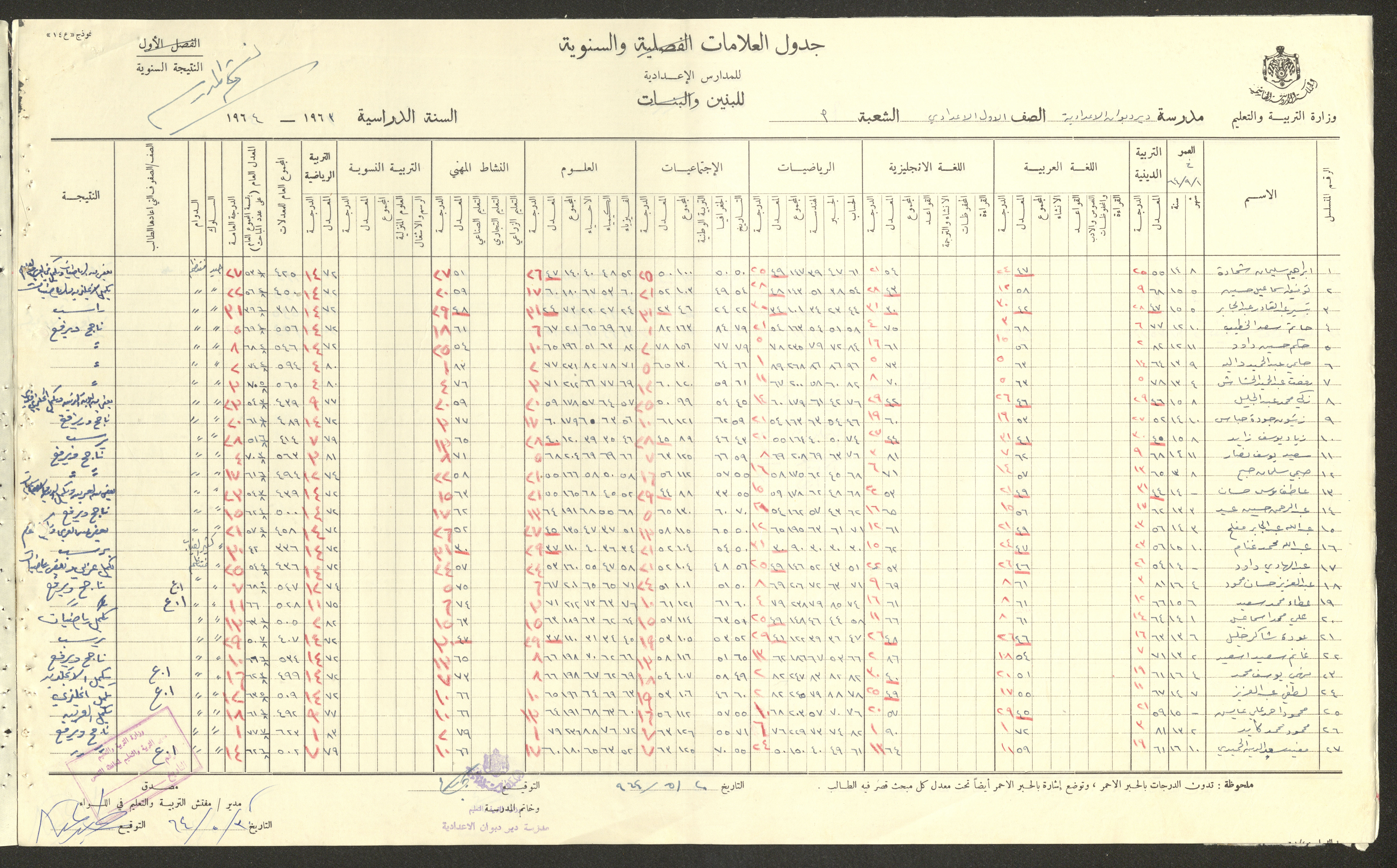 Students Marks Sheets, Deir Dibwan School, 1962-65