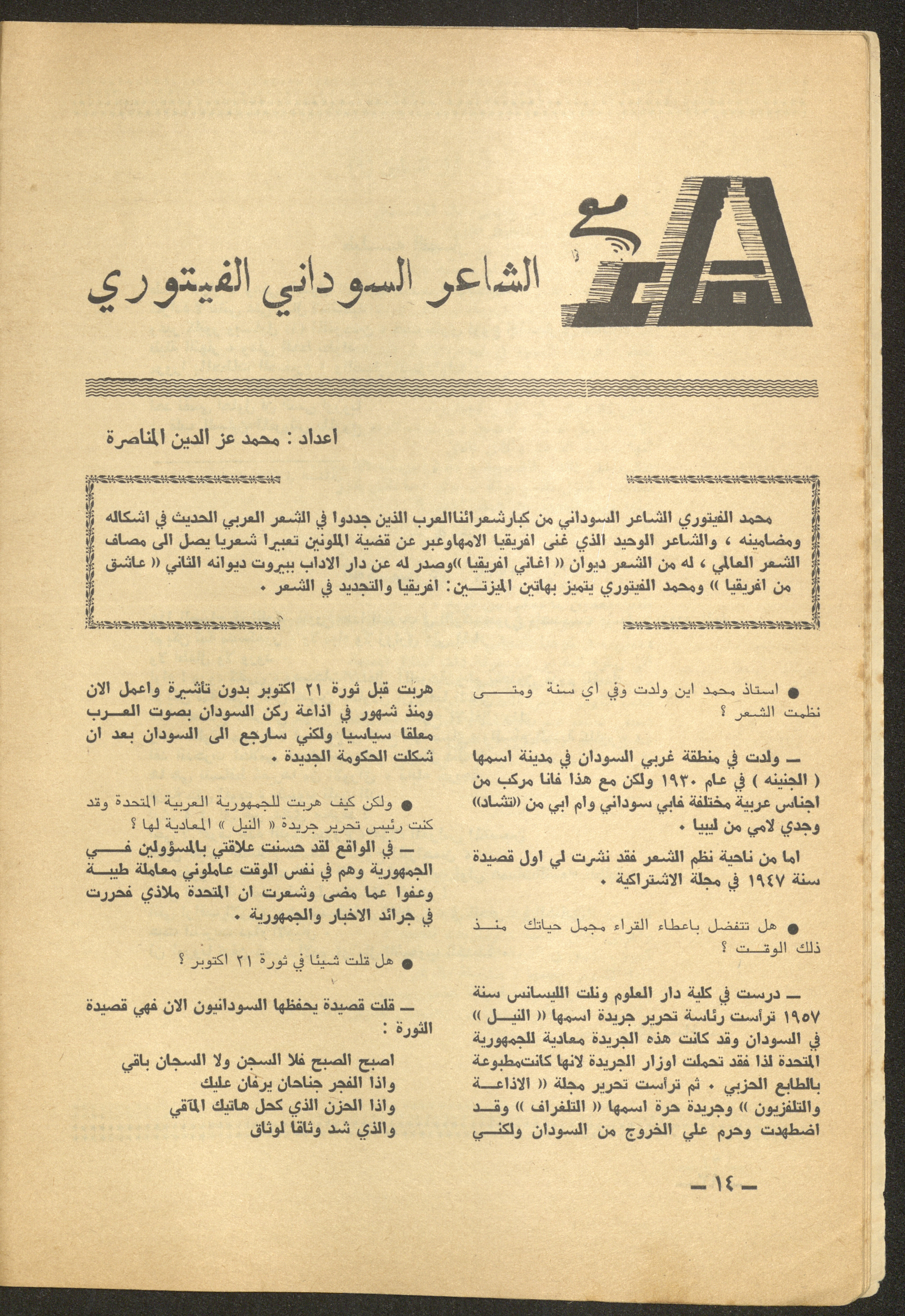 Issue 6 of al-Ofuq al-Jadeed Magazine, June 1965
