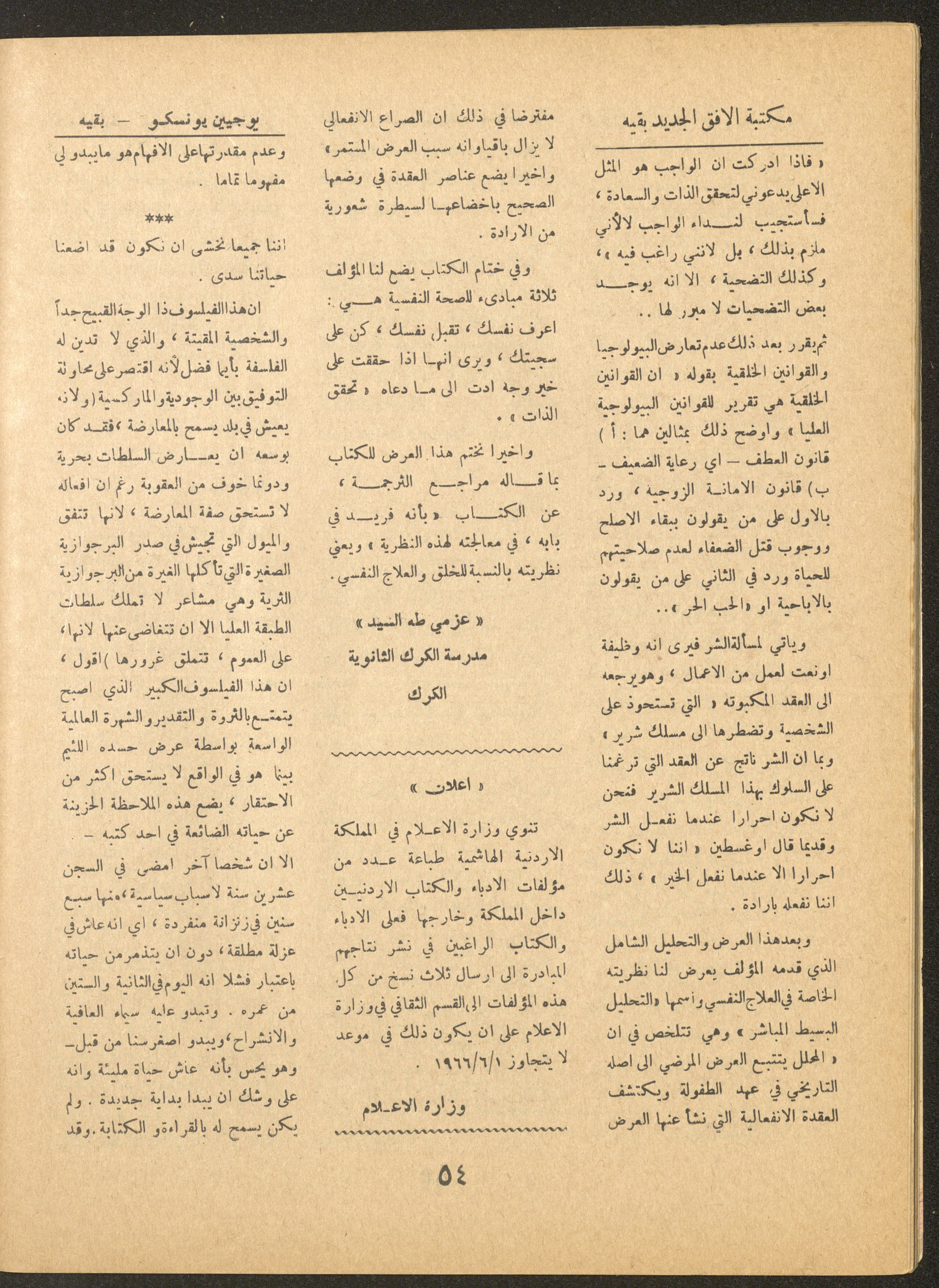 Issue 4 of al-Ofuq al-Jadeed Magazine, May 1966