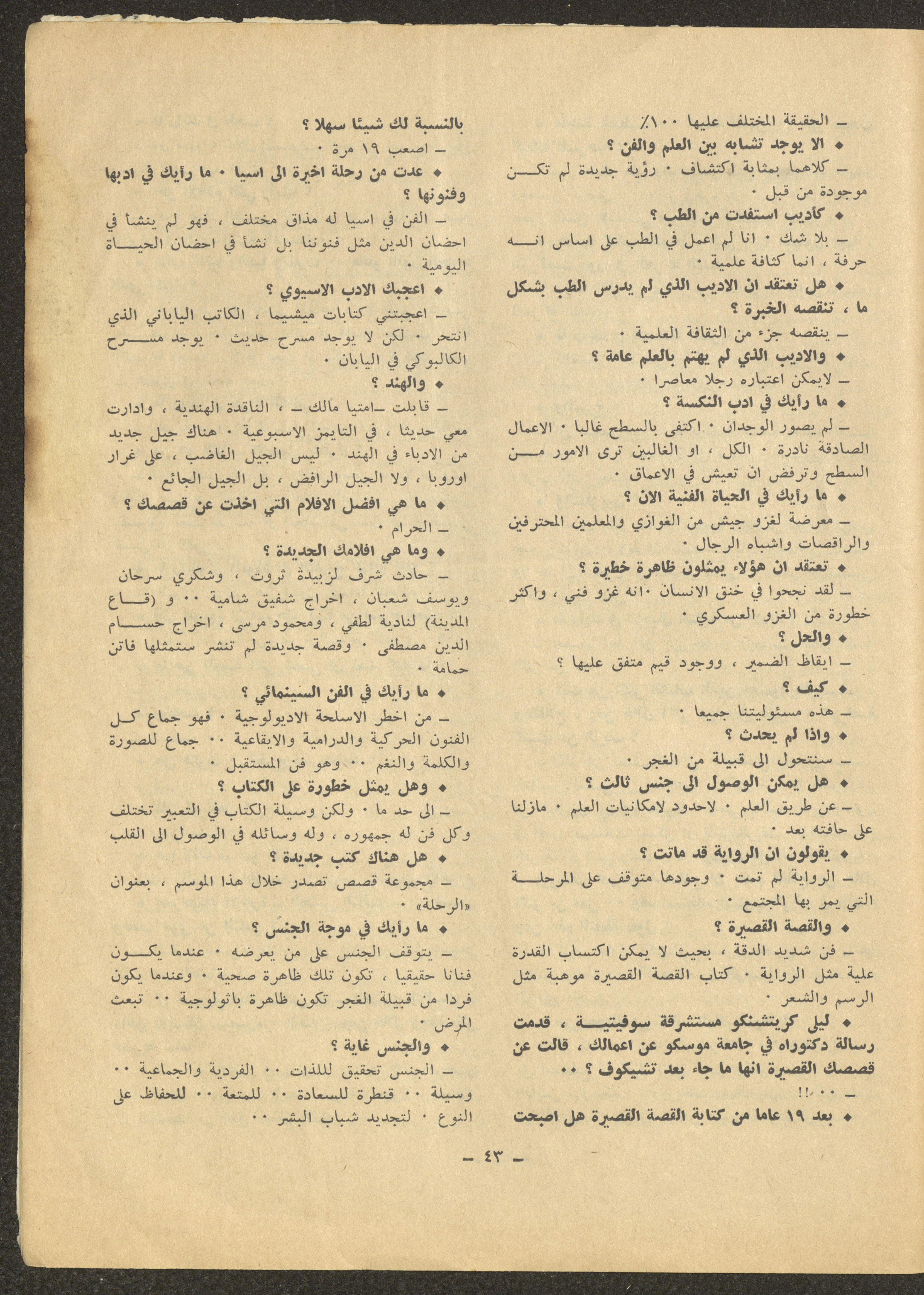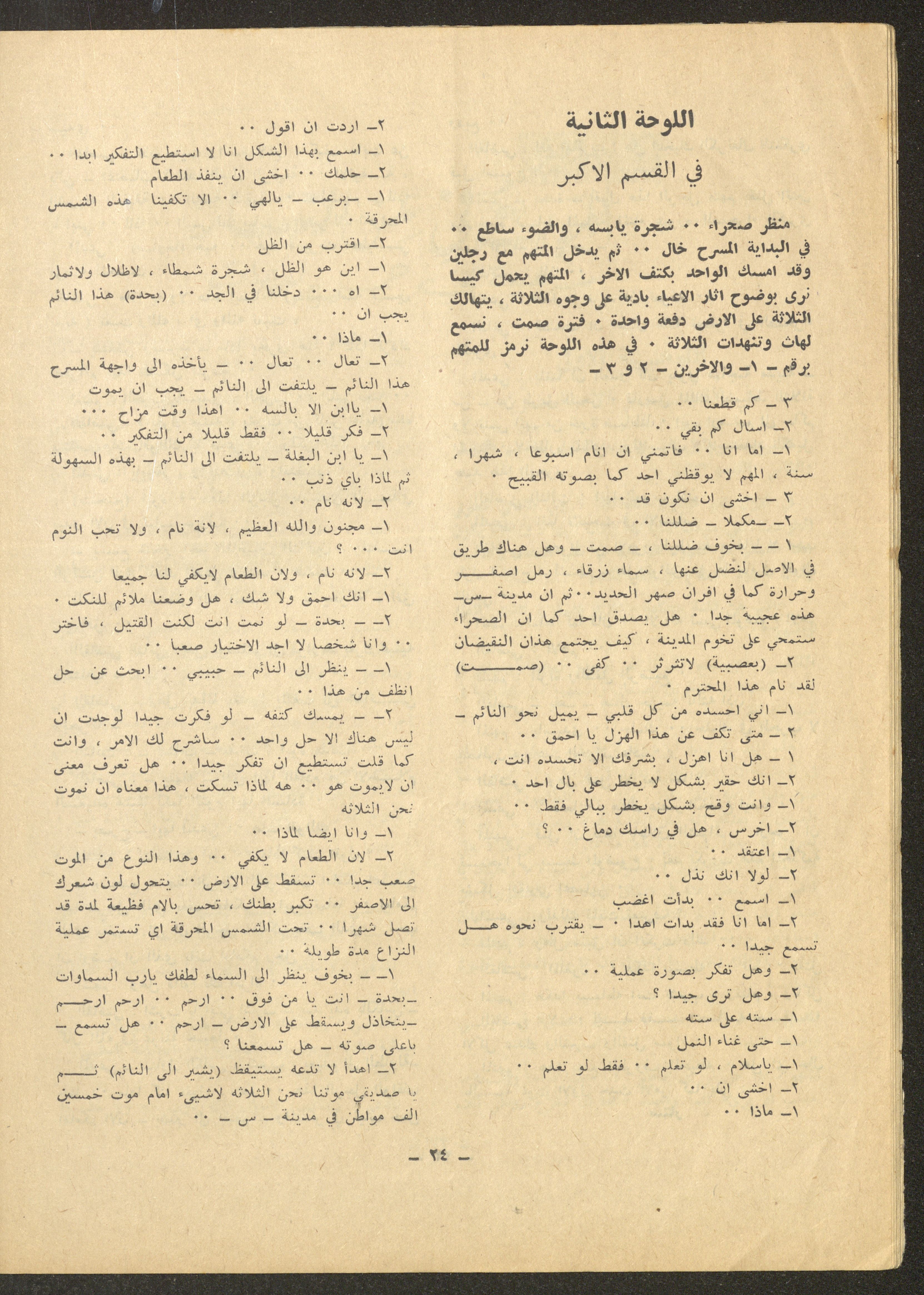 Published by al-Anba Newspaper under the supervision of Editor-in-Chief Mahmoud Abbasi, and printed at Dokma Press in Jerusalem in Arabic, this 50-page document shows the 3rd issue of ash-Sharq Magazine issued in August of 1971, which is a monthly Magazine concerned with matters of literature, thought and art. The price of the issue amounted to 2 liras and included photographs, articles, research, poems and stories, including: - "Exit from Paradise", a story by Mustafa Murrar. - "Death in the Middle of the Day", a play by Zaki Darwish. - "Adverse Experiences in Our Modern Poetry", an article by Mahmoud Ghanayem. - "The Past Tense Combines Hebrew and Arabic", research by Mahmoud Kanana. - "Asnano al-Halib (Milk Teeth)", a poem by Michel Haddad. - "Al-Ghurbato Wa Orson Qadeem (Exile and an Old Wedding)", a poem by Abdel-Latif Akl.