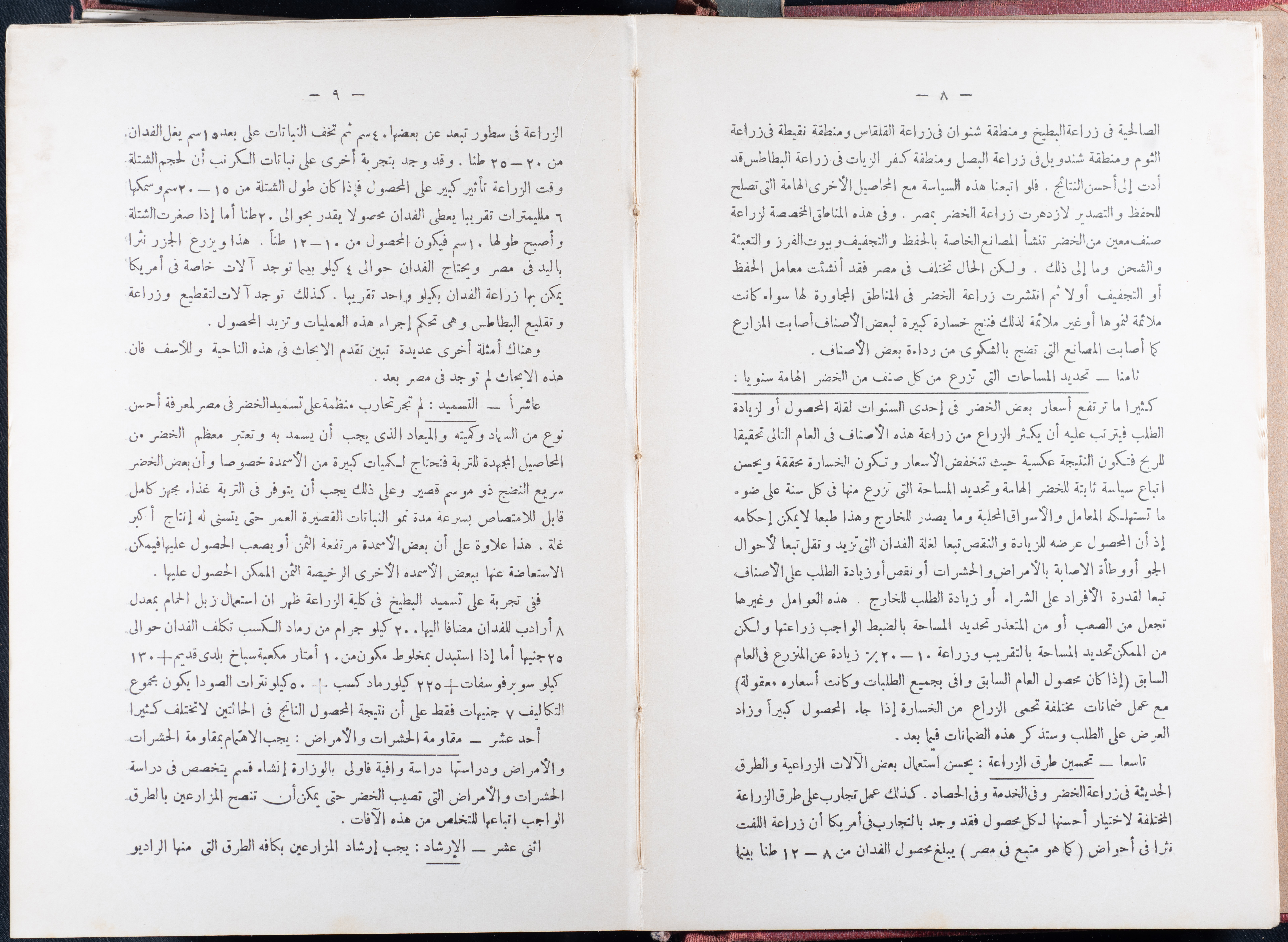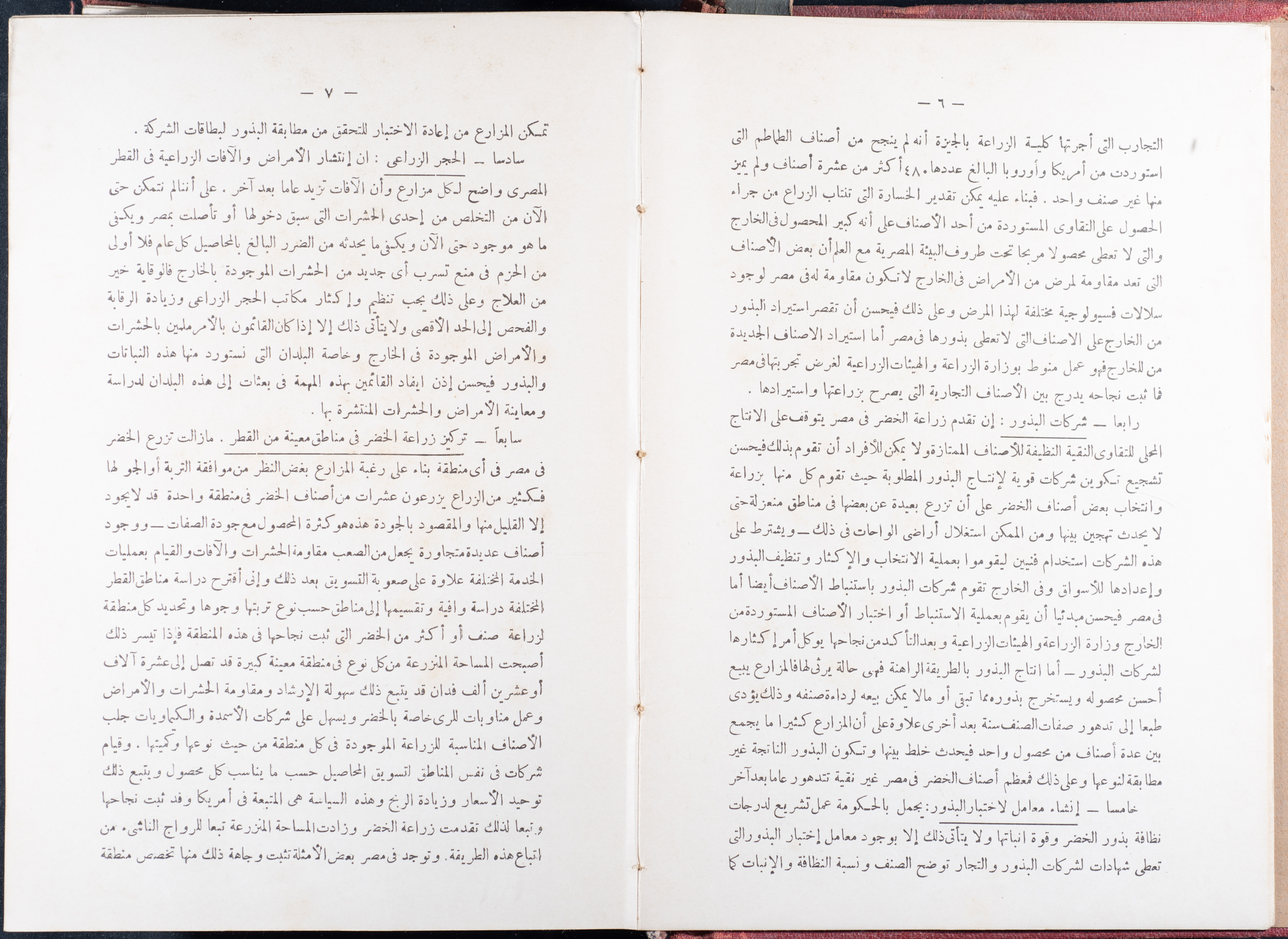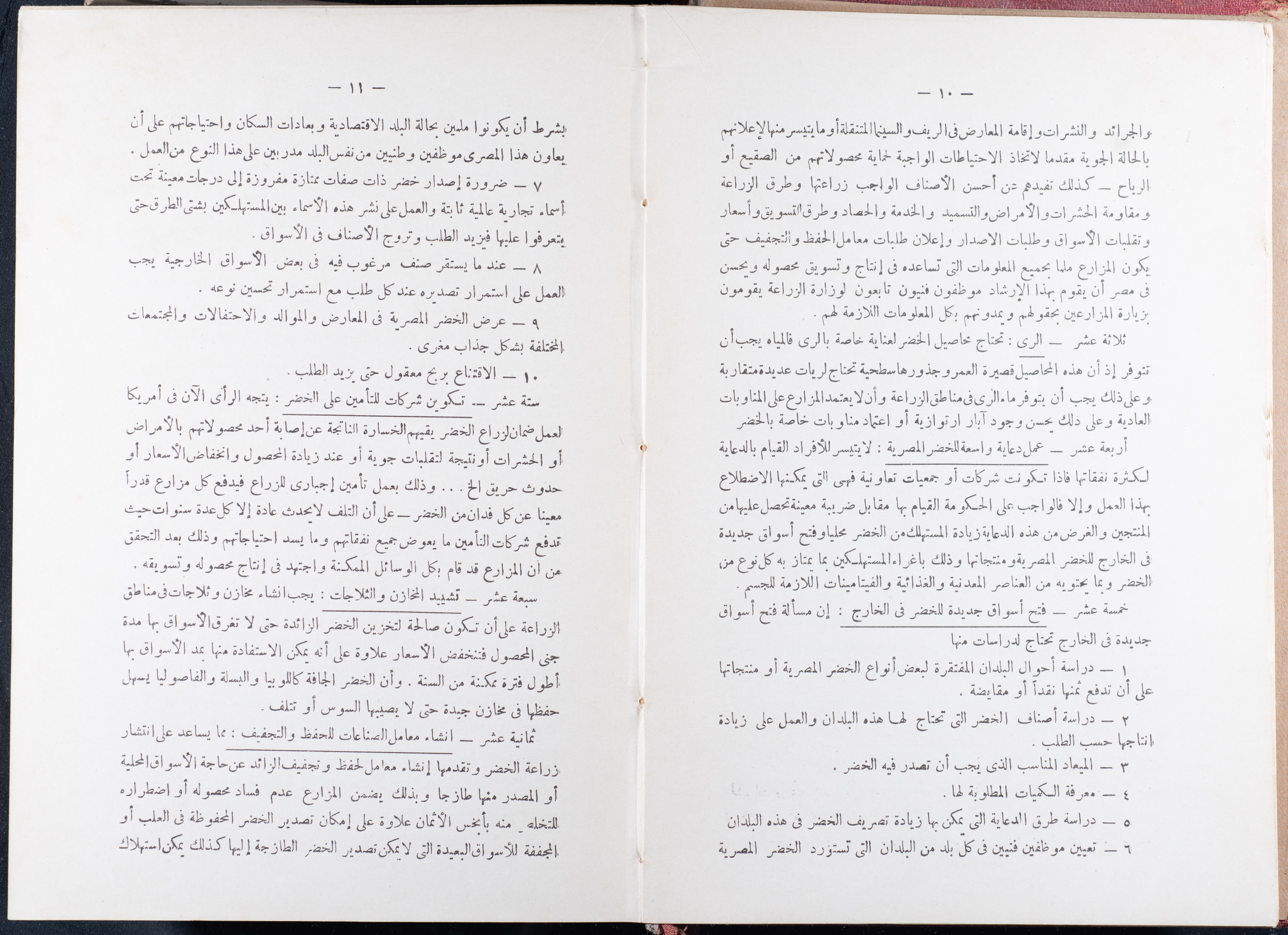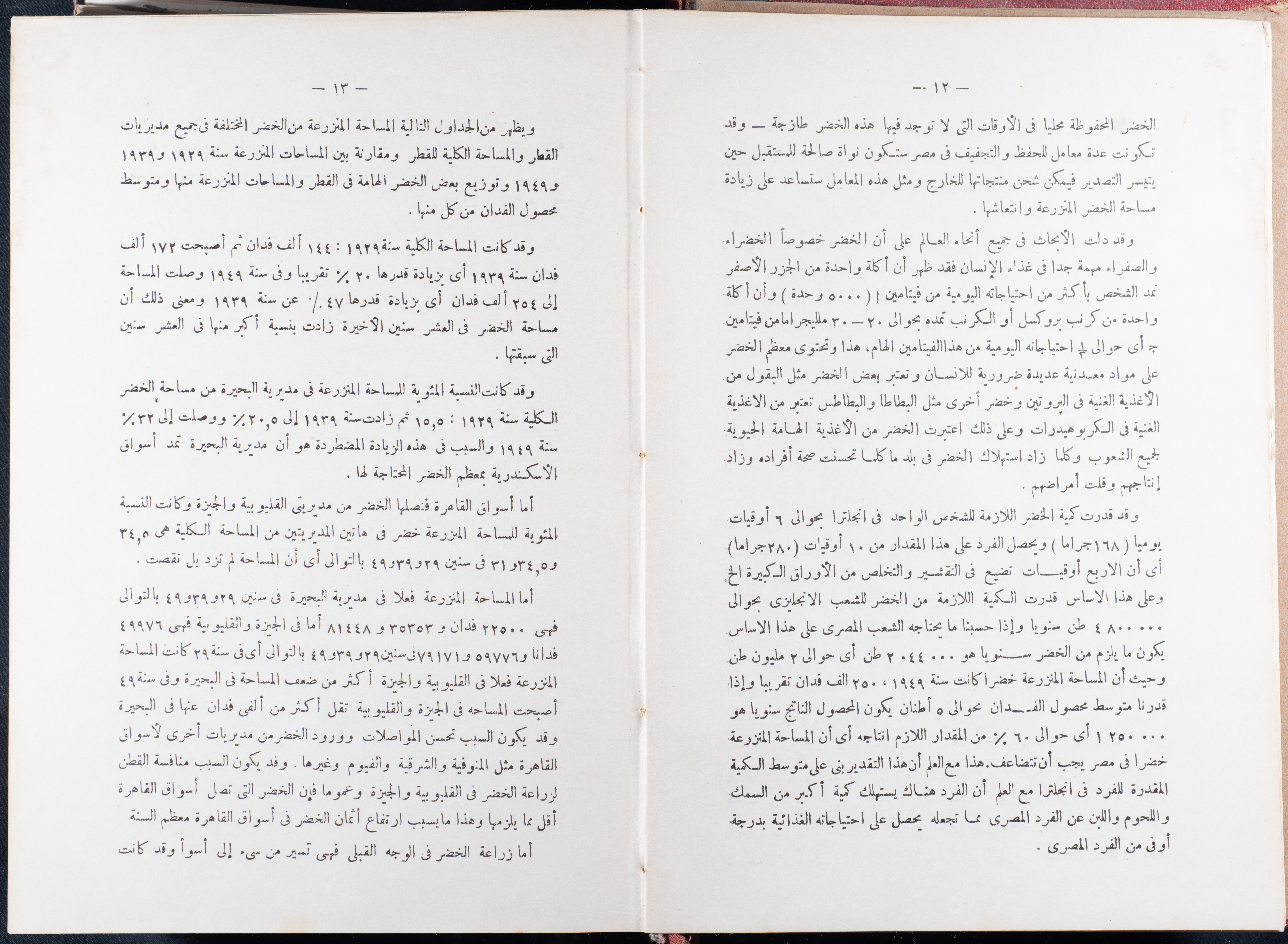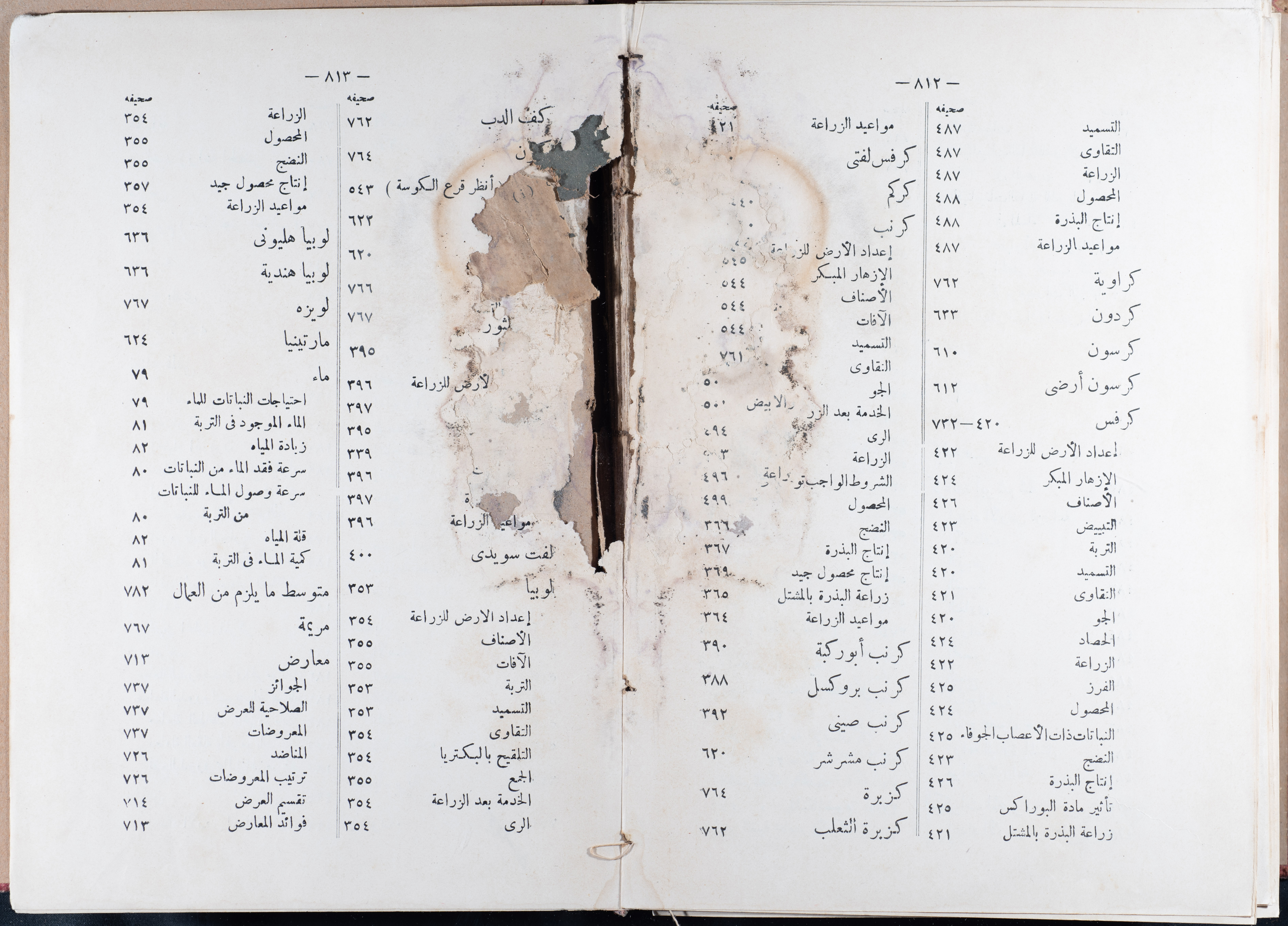 Found in the Wajeh Abdel-Baqi Collection and printed in Arabic, this 27-paged document shows the index of the book "Planting Greens" by Kamal Ramzi Istino, the fourth issue was issued by the Egyptian Angelo Library in Cairo in 1951.