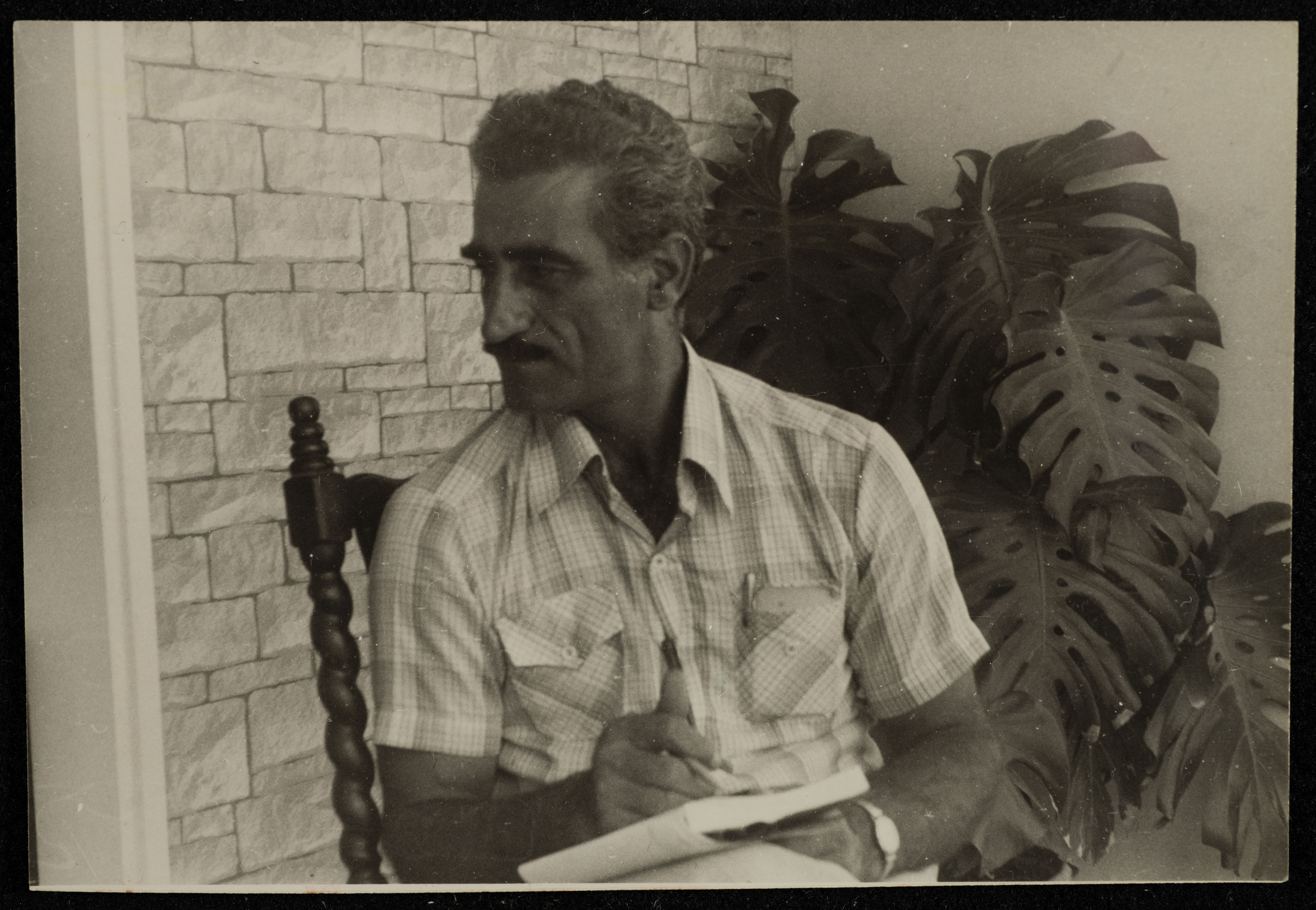 Taken in al-Baneh in al-Jalil, this photograph shows Hanna Ibrahim seated with a book in his hand.