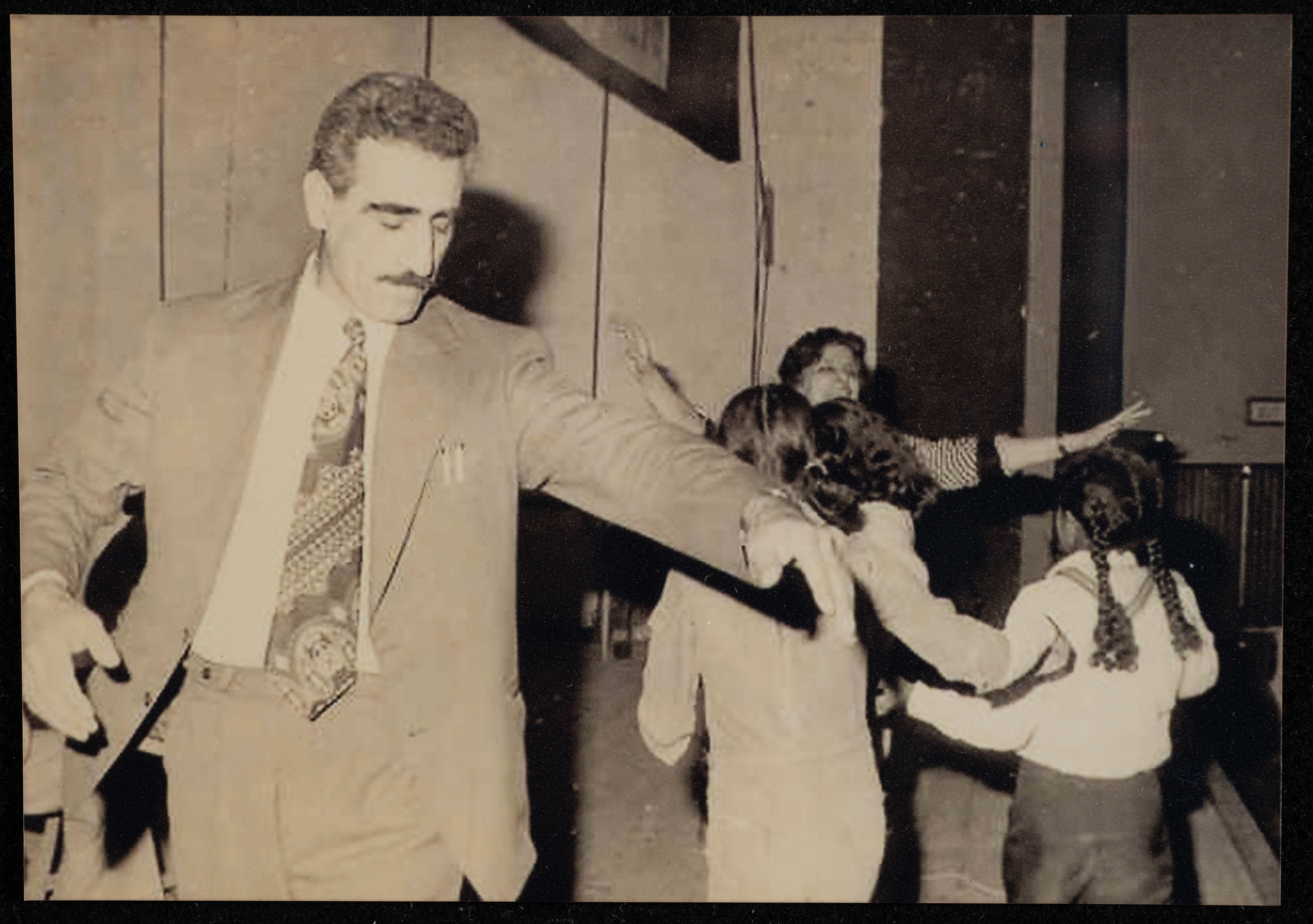 Taken in the 1970s, this photograph shows Hanna Ibrahim at a wedding party.
